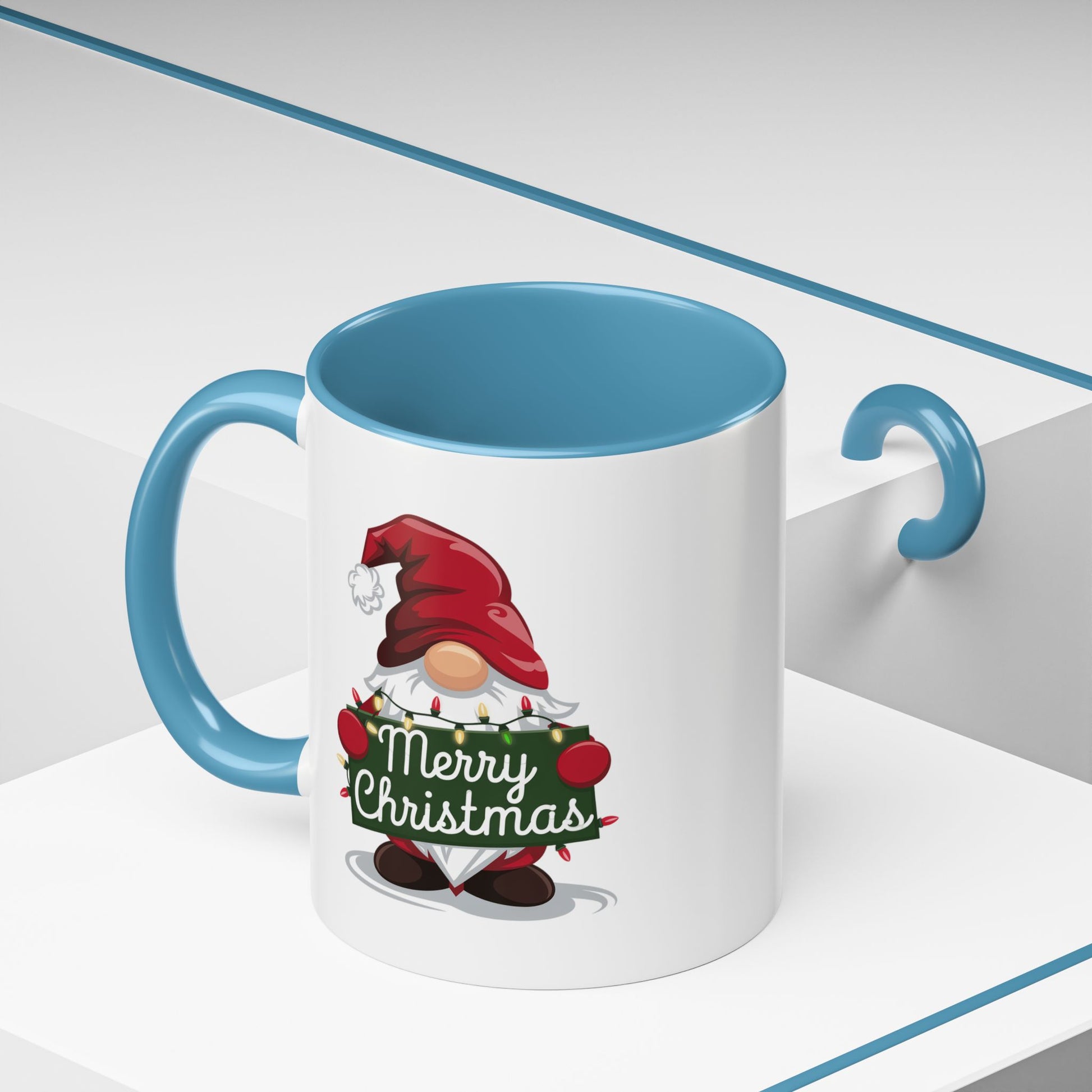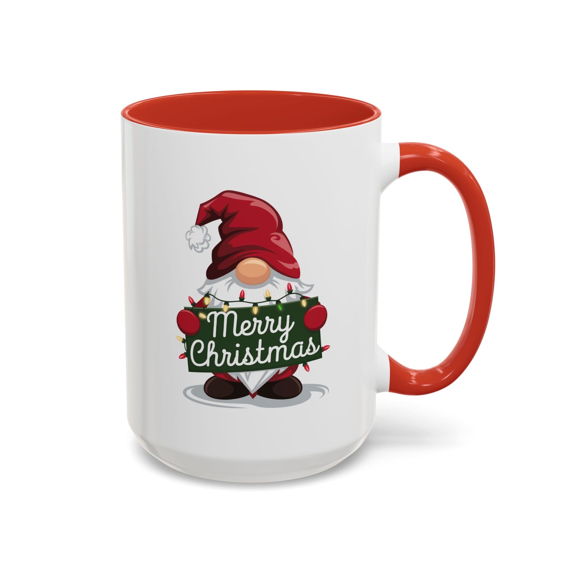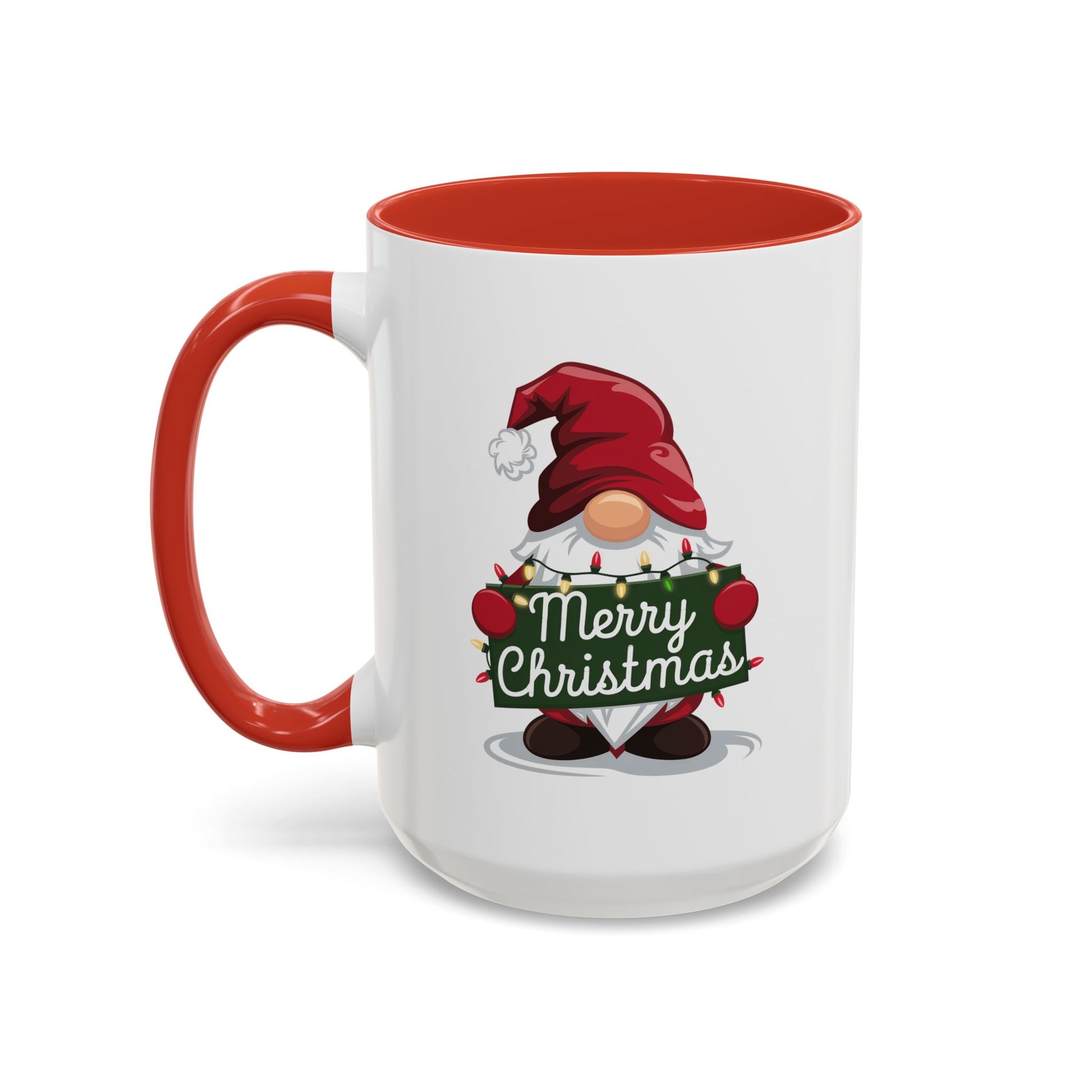 Christmas Mug - Merry Christmas White & Green Text Gnome Lights