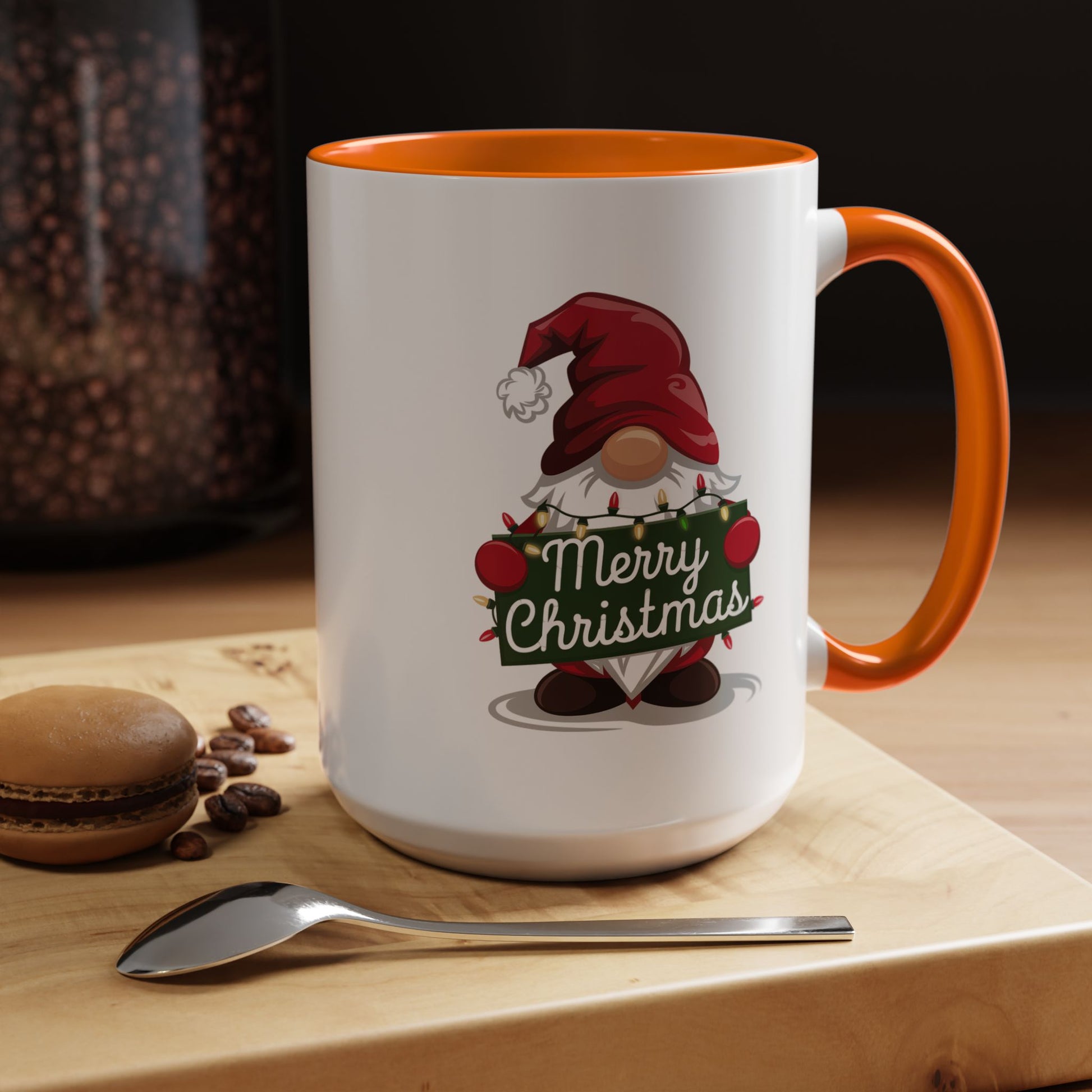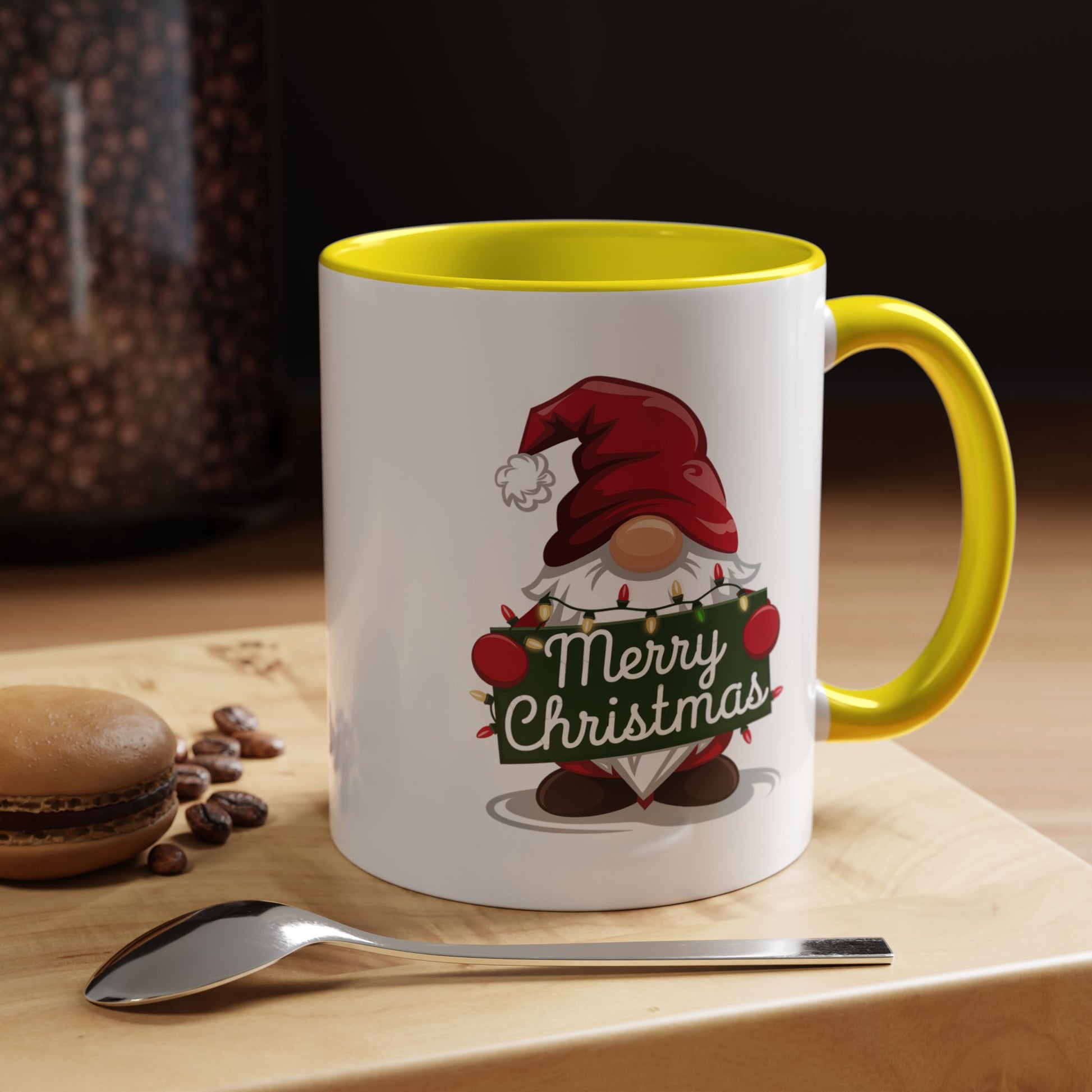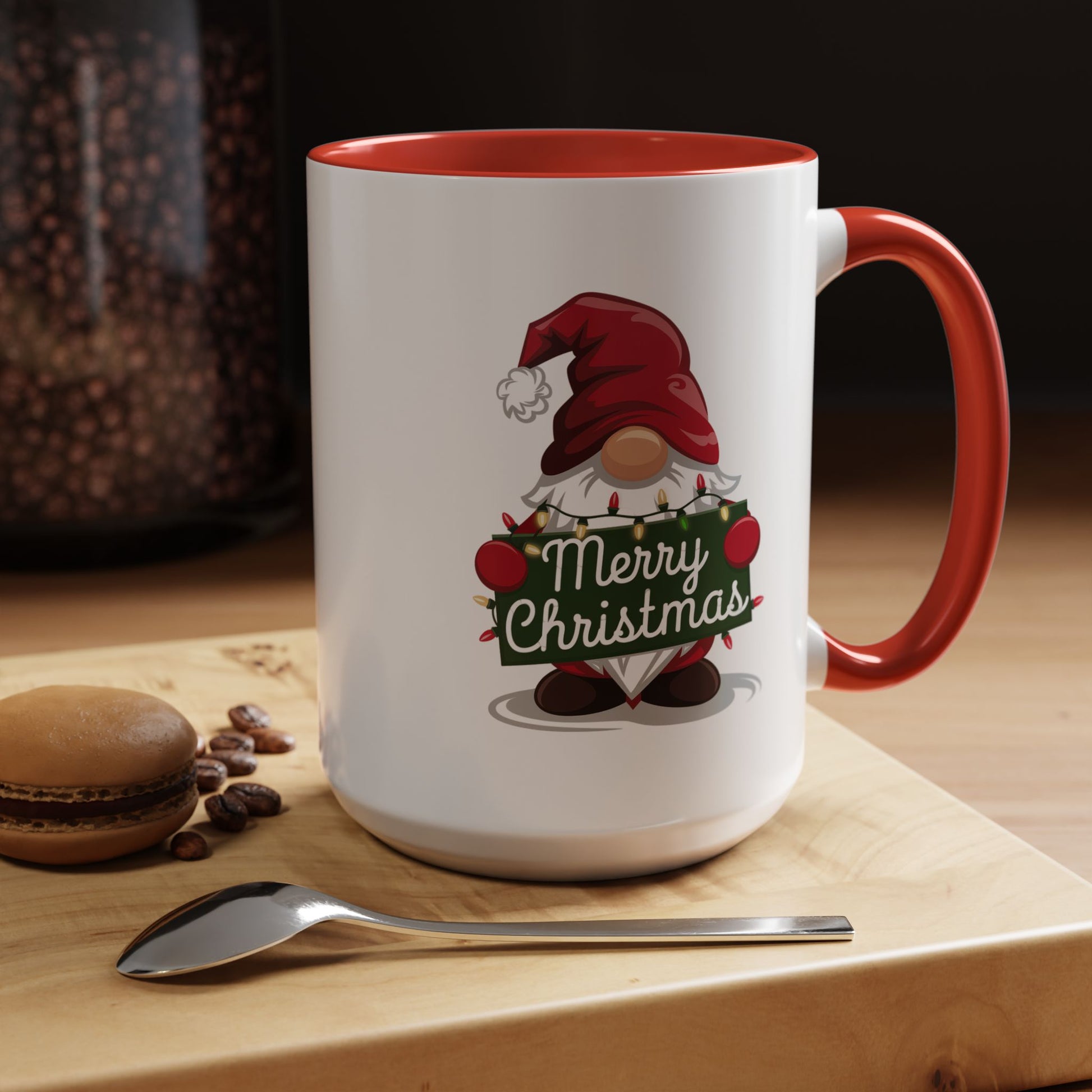 Christmas Mug - Merry Christmas White & Green Text Gnome Lights