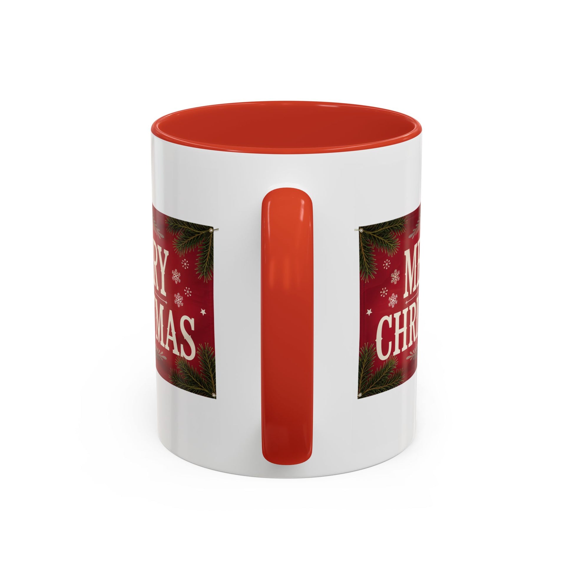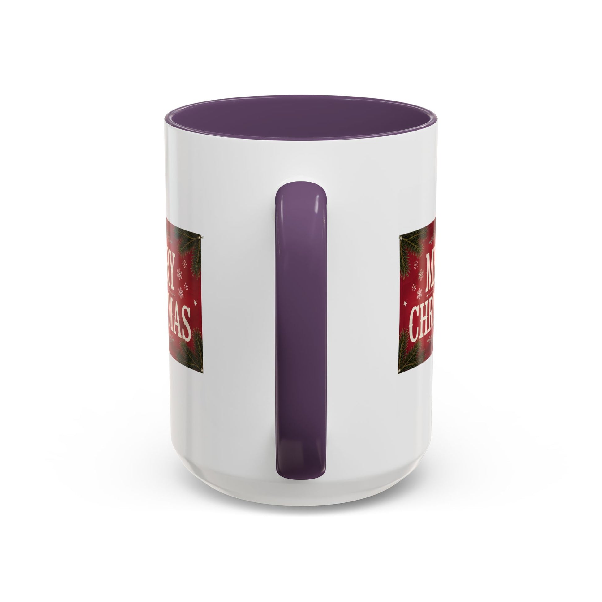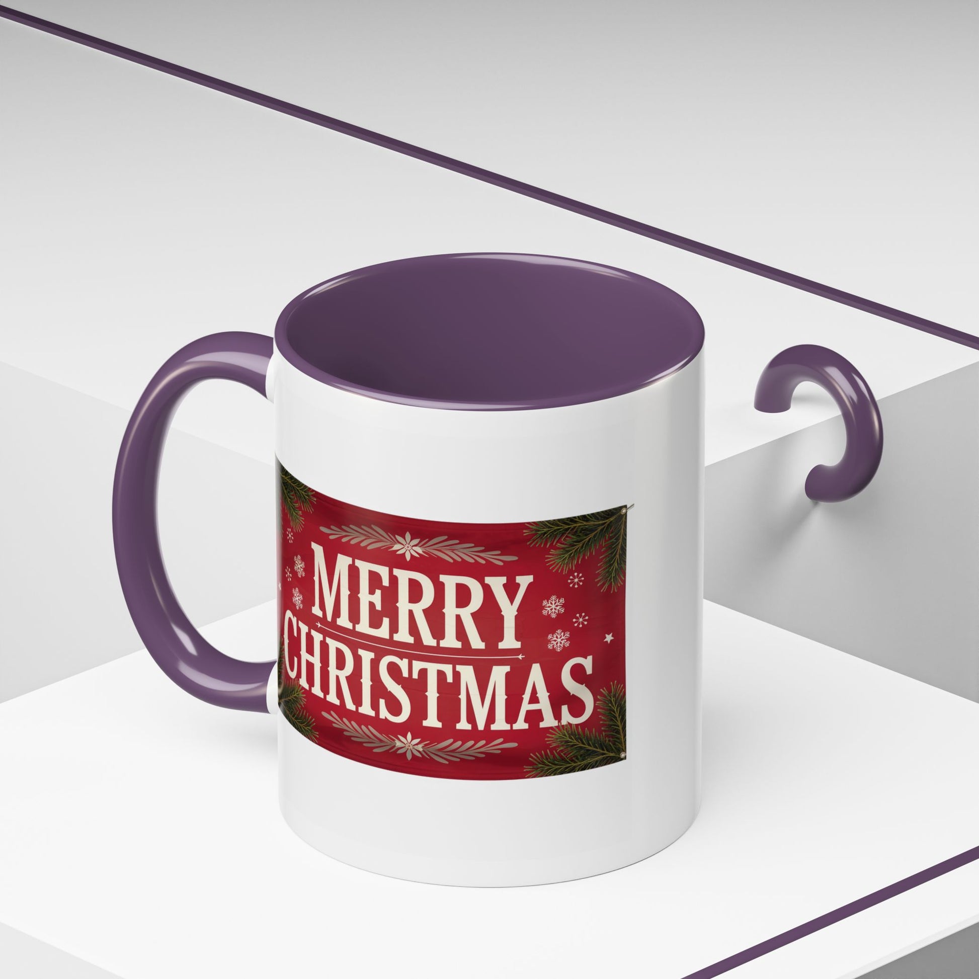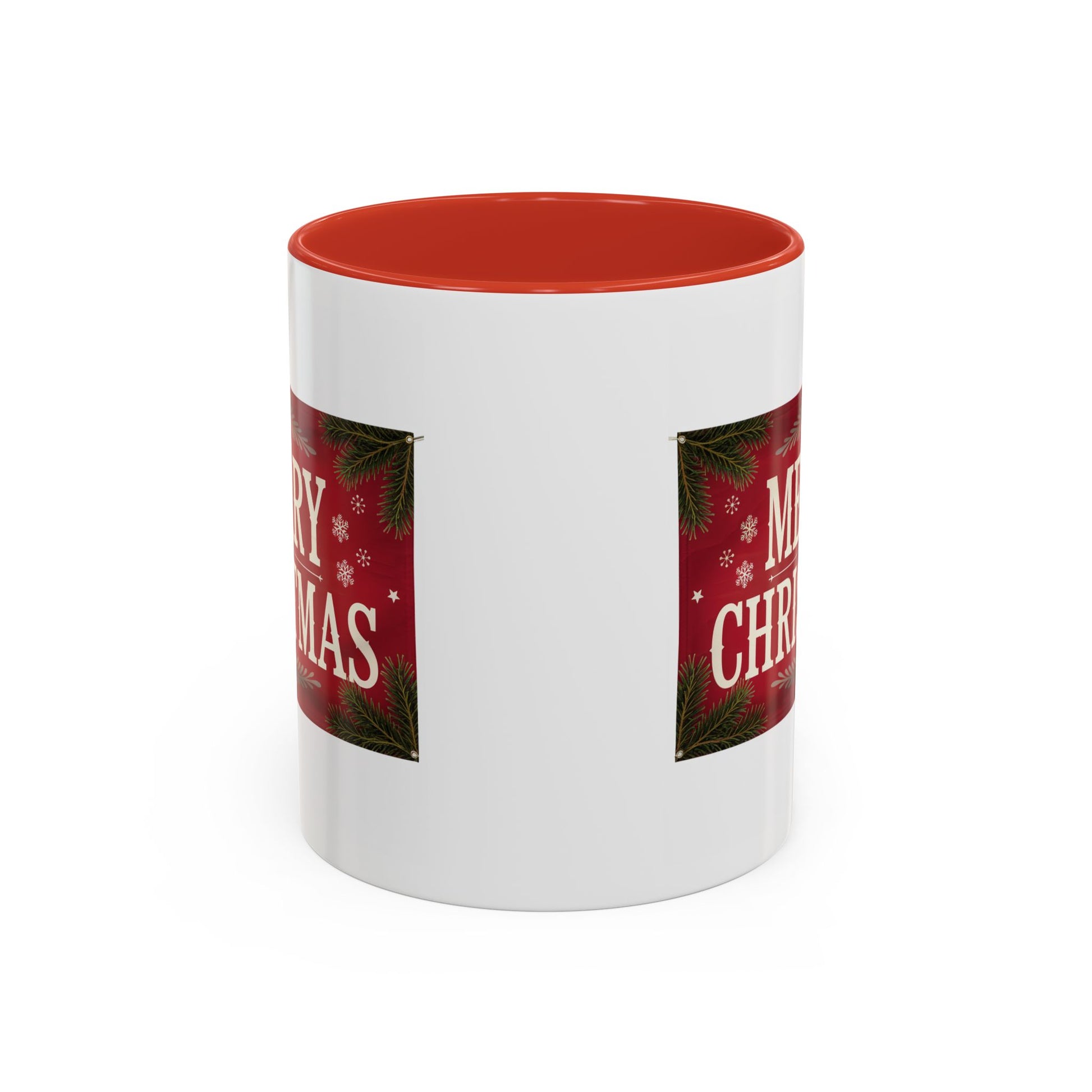 Christmas Mug - Merry Christmas Cream Text Maroon Background
