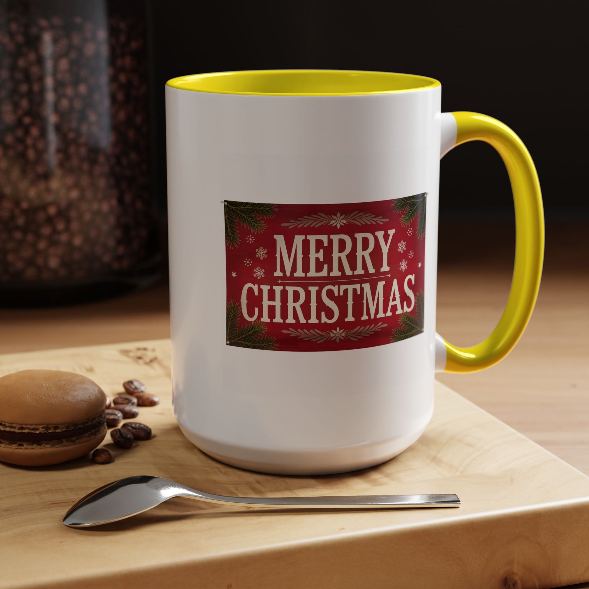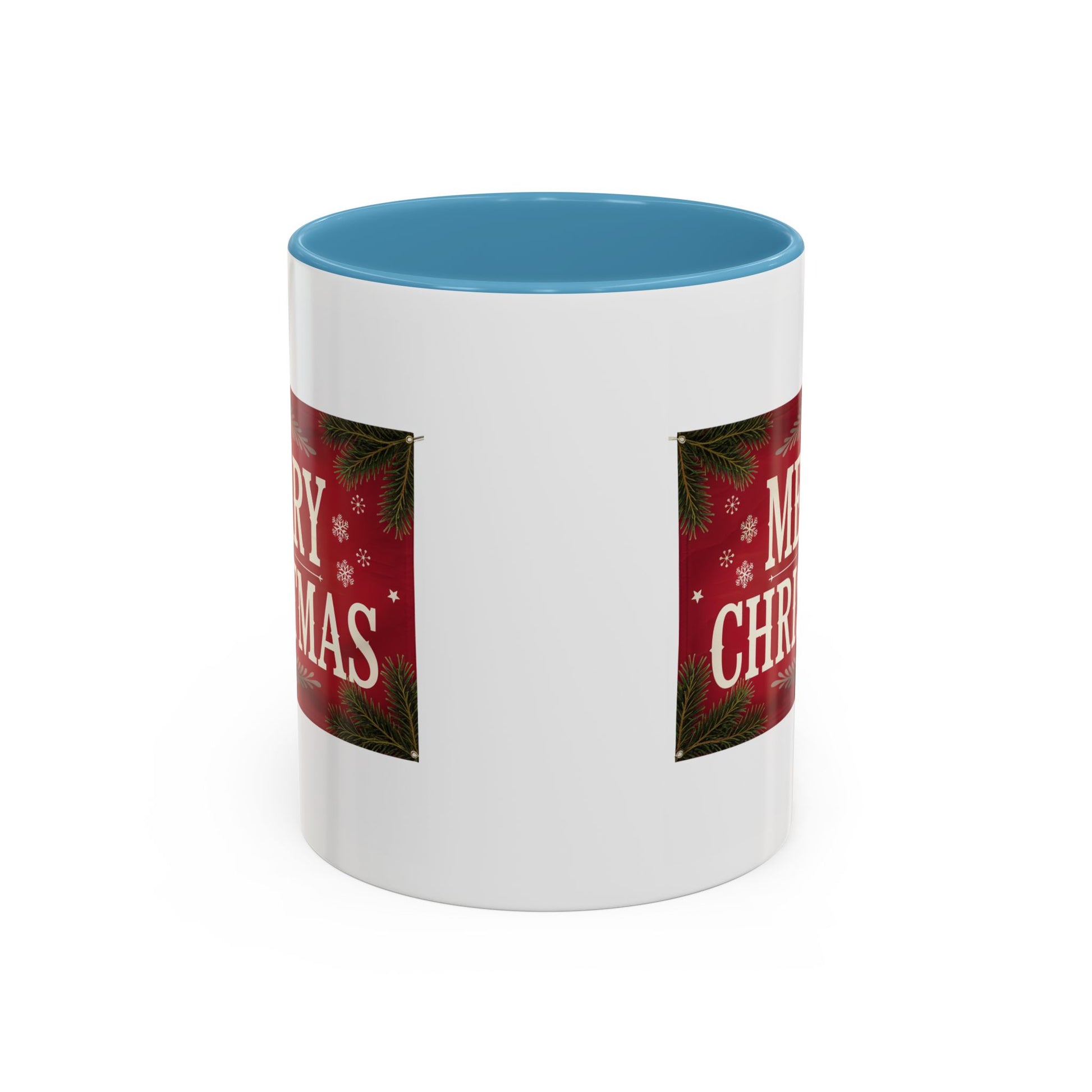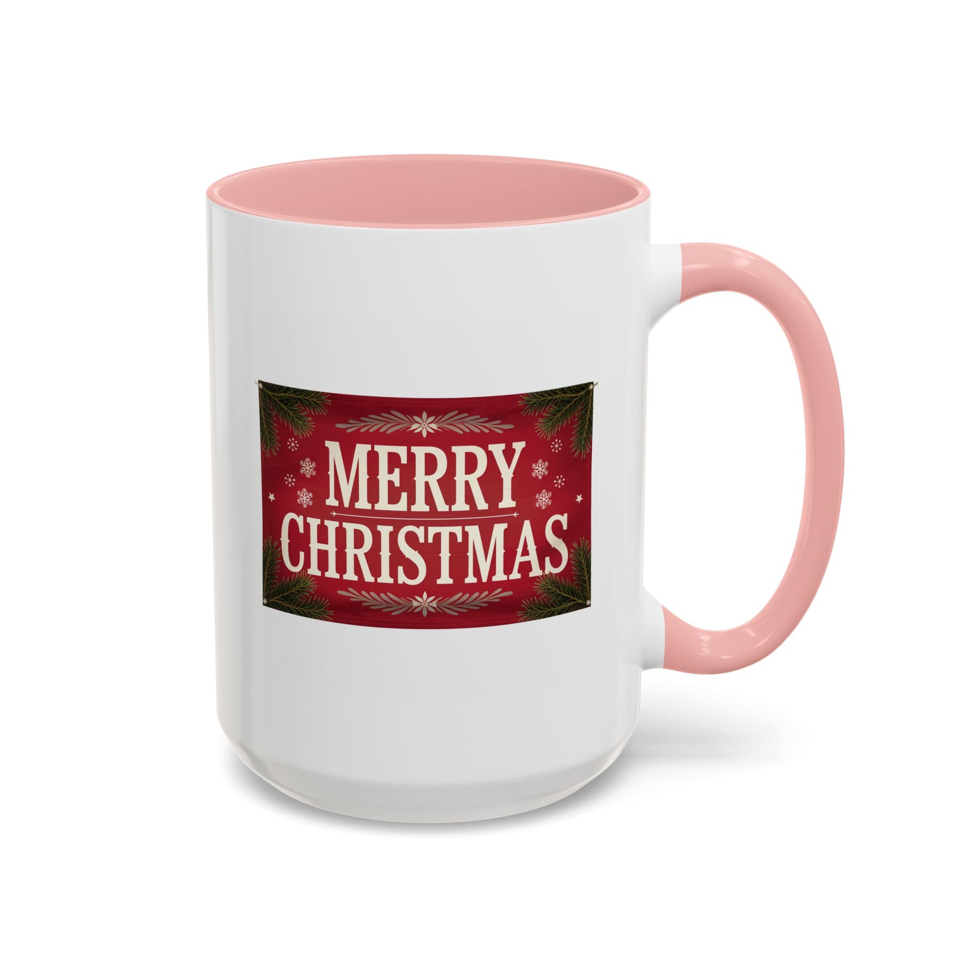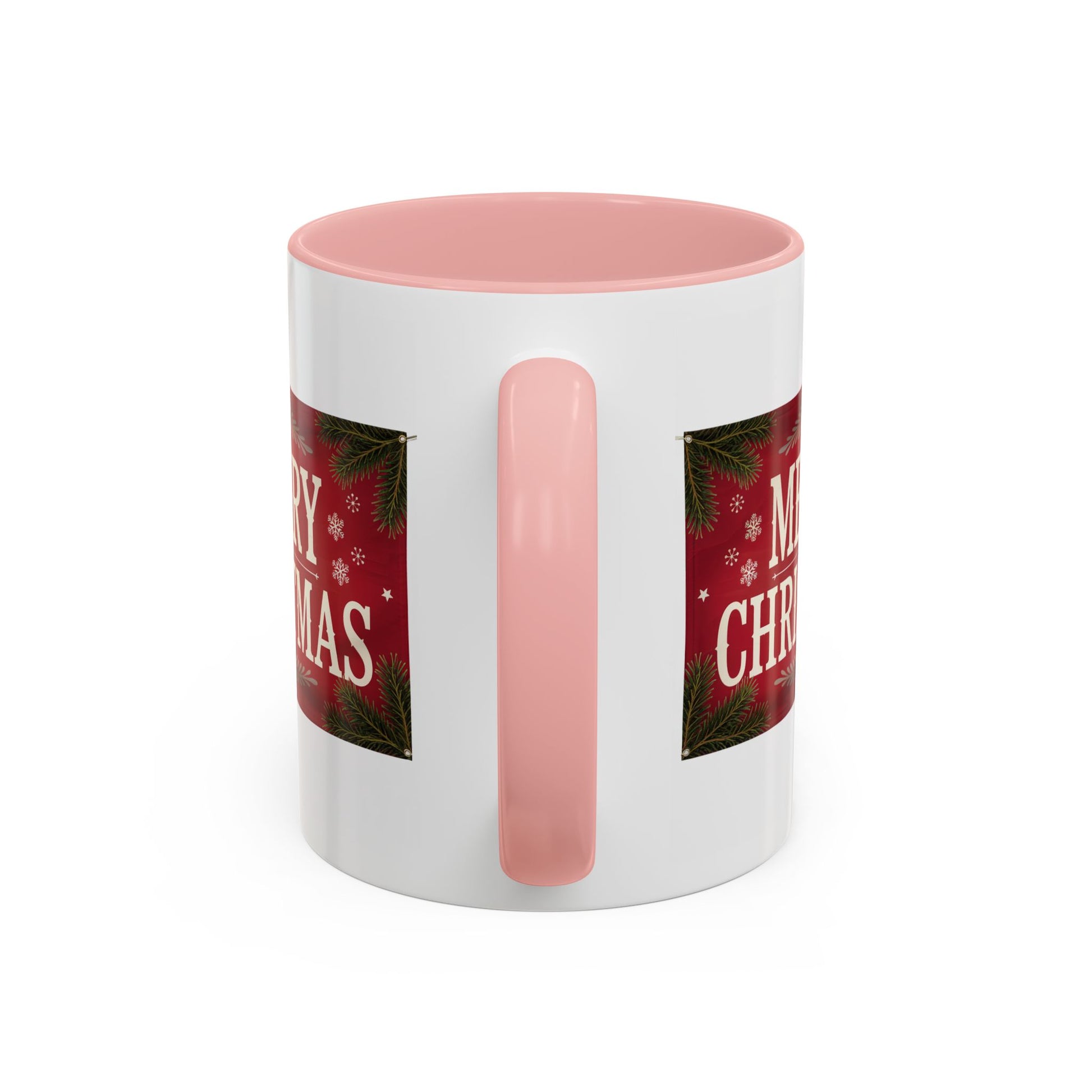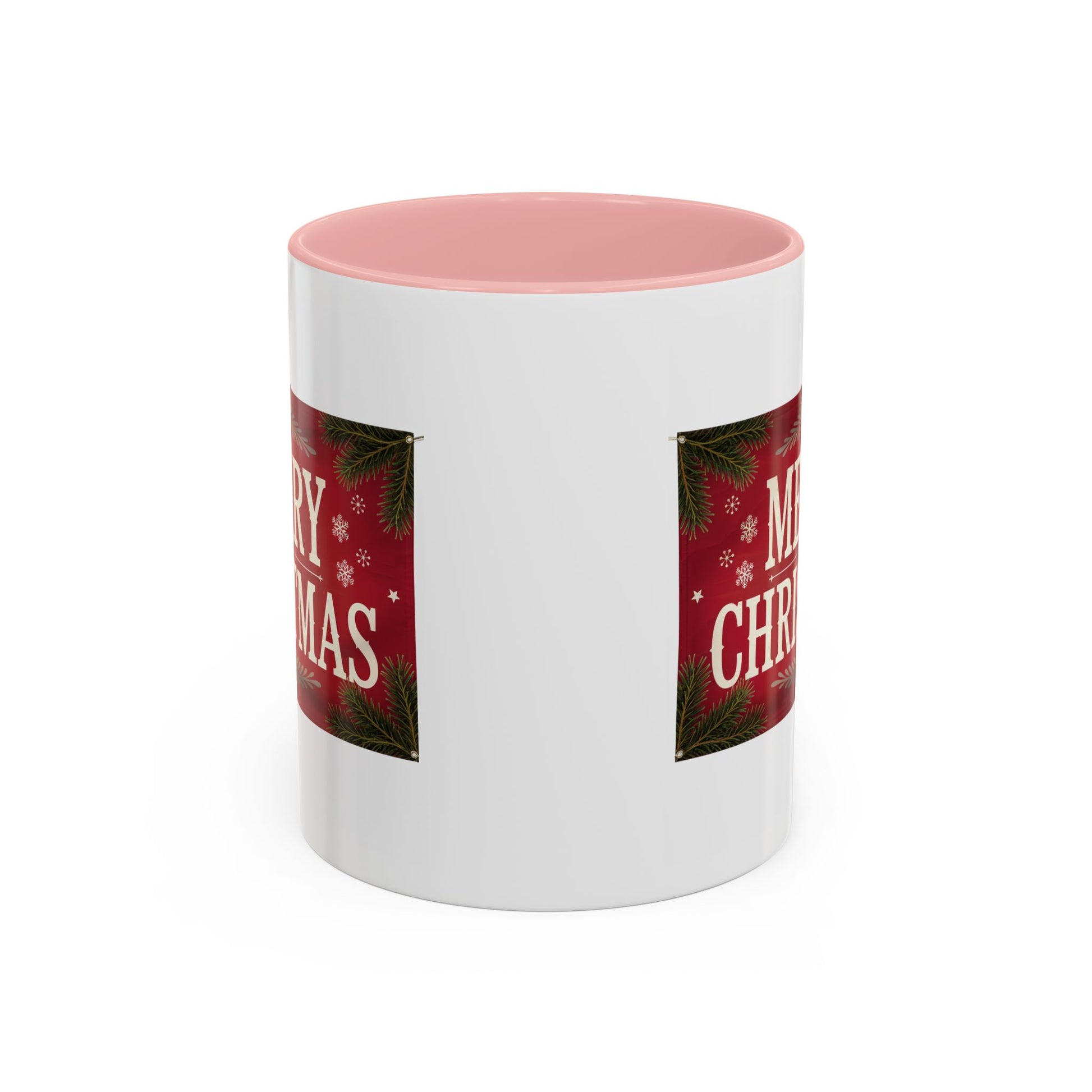Christmas Mug - Merry Christmas Cream Text Maroon Background