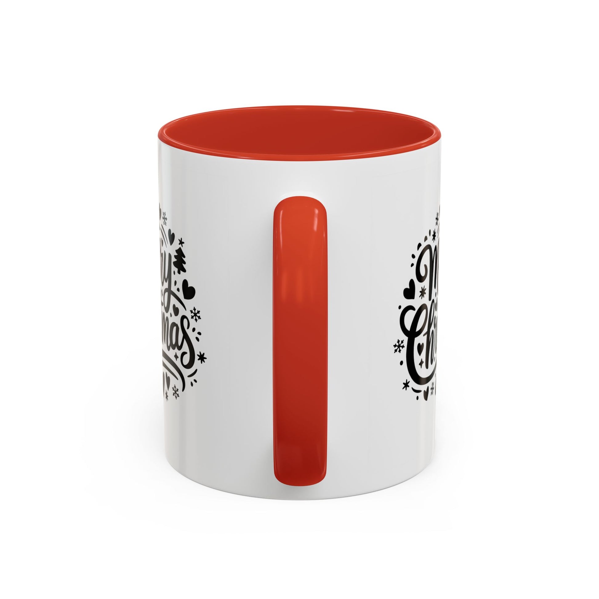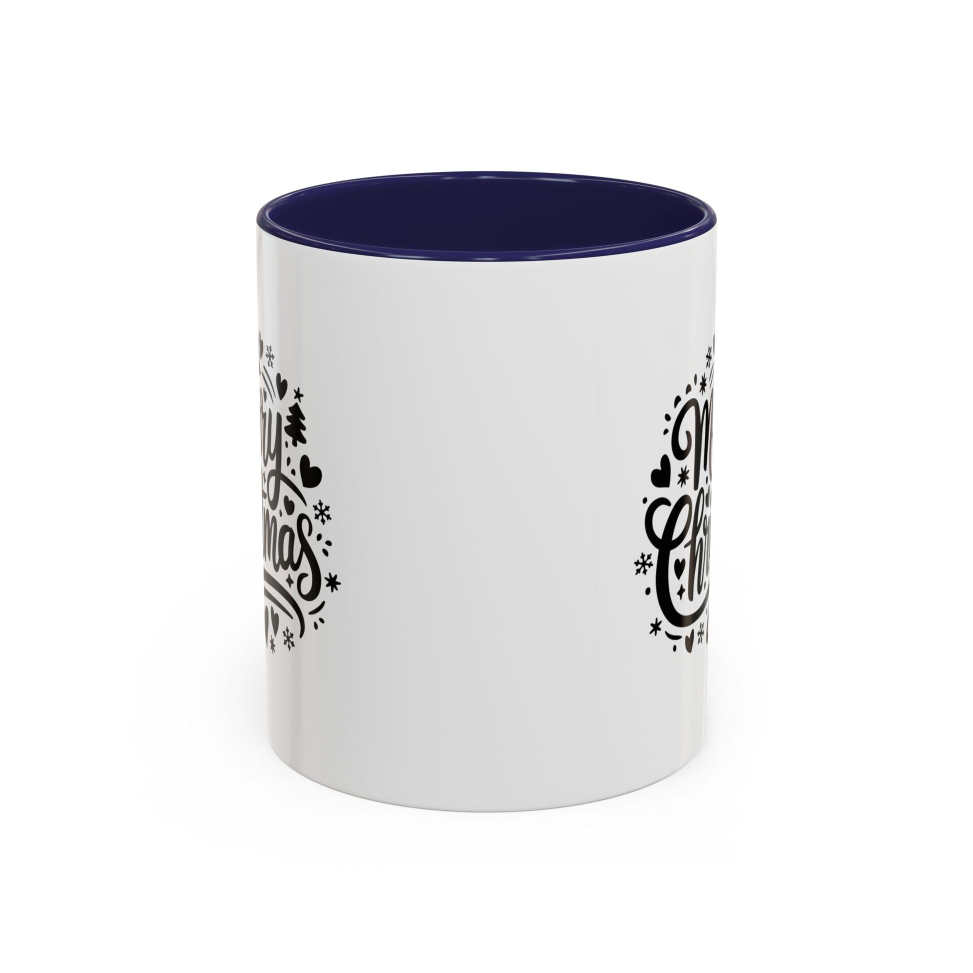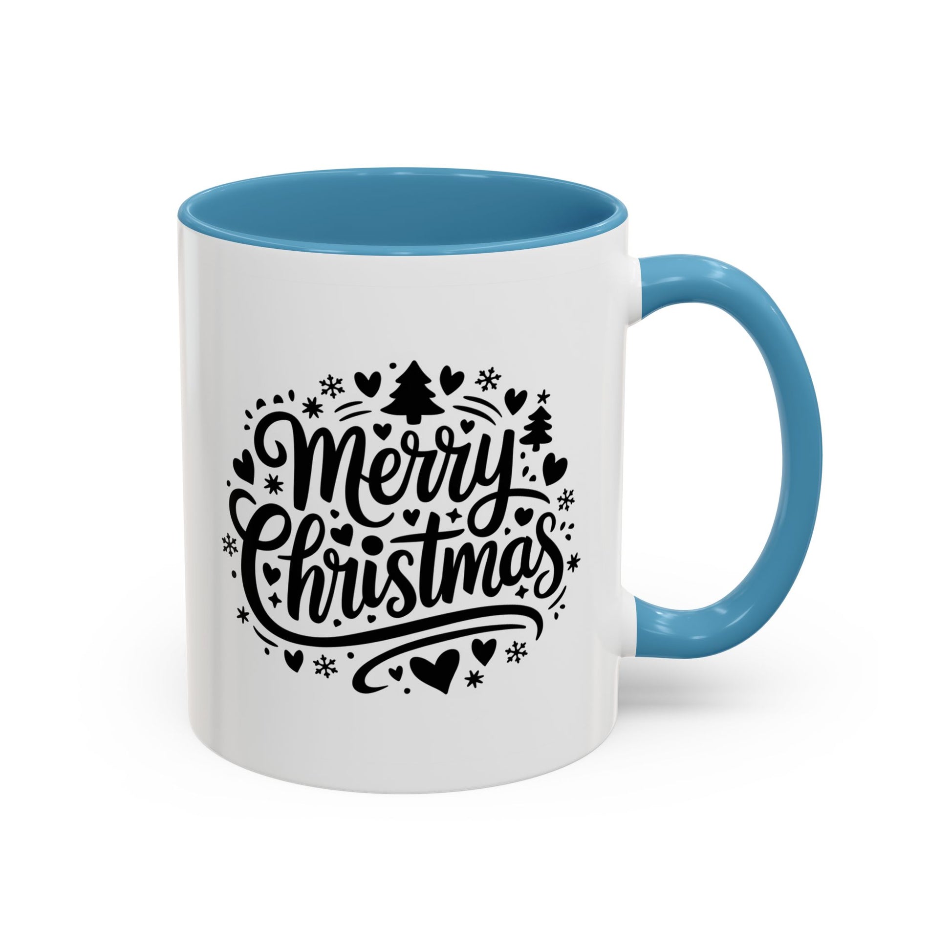 Christmas Mug - Merry Christmas Black Text Trees Snowflakes Hearts