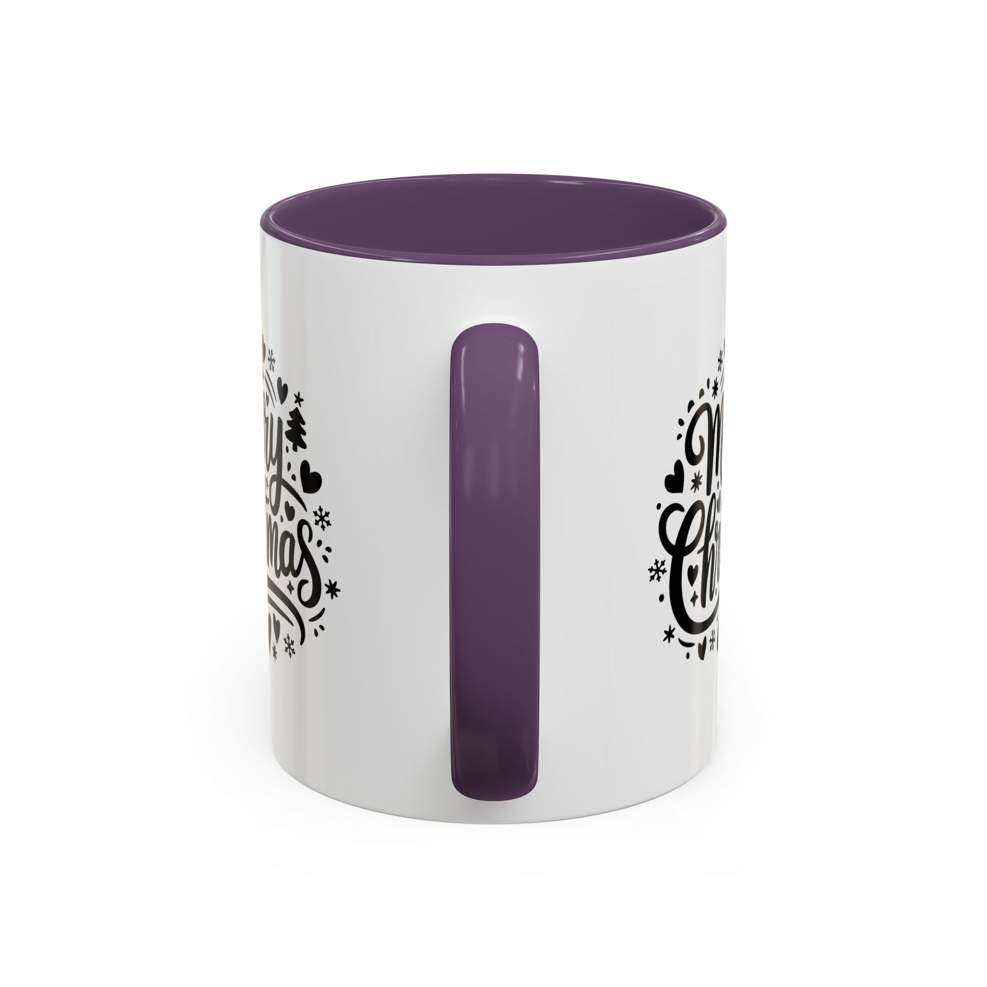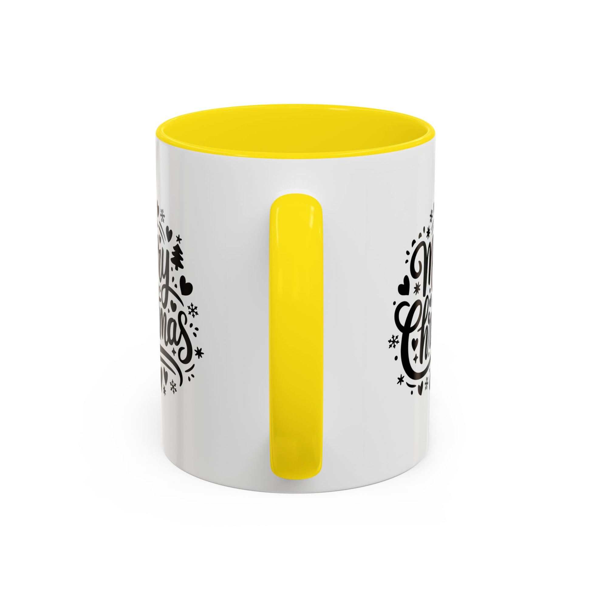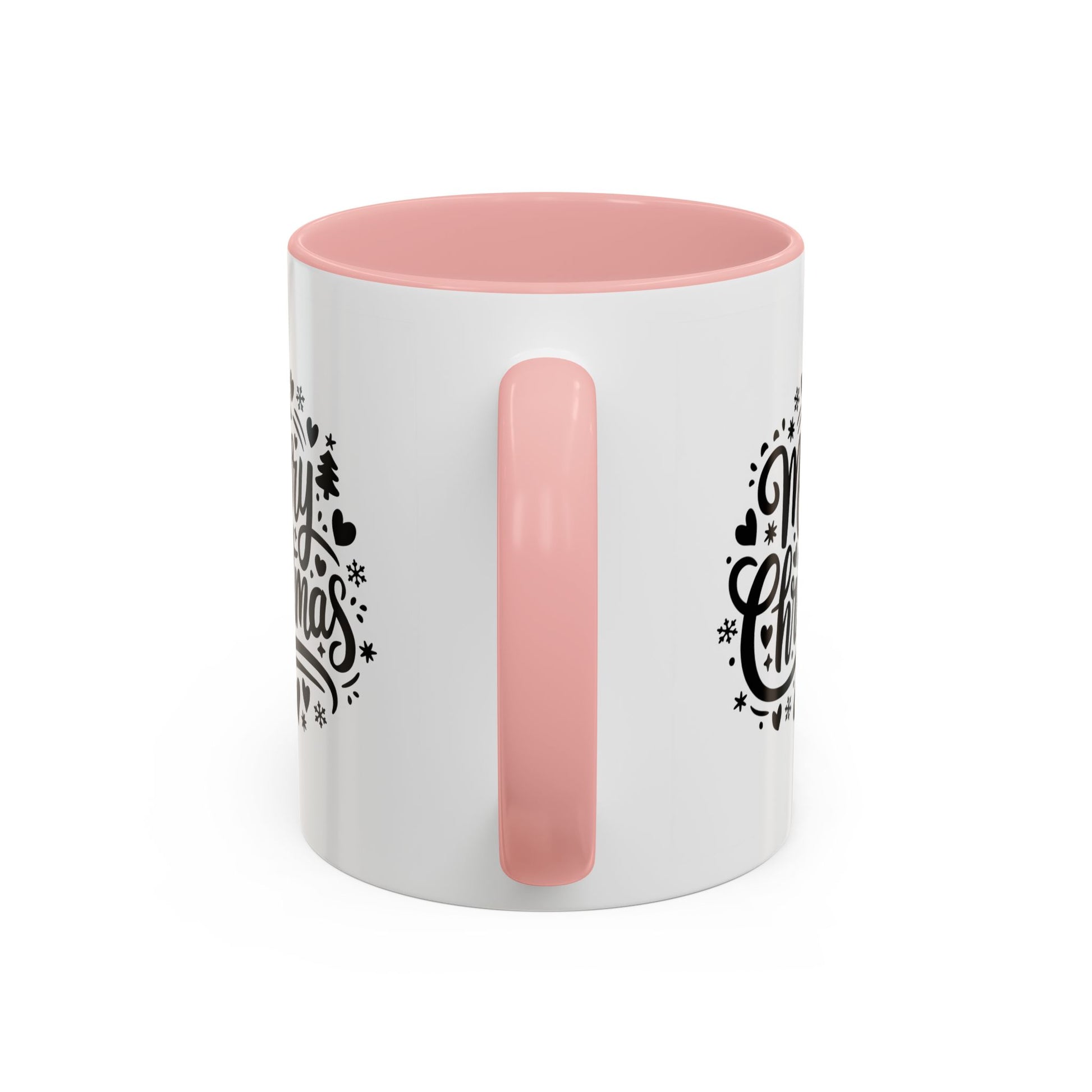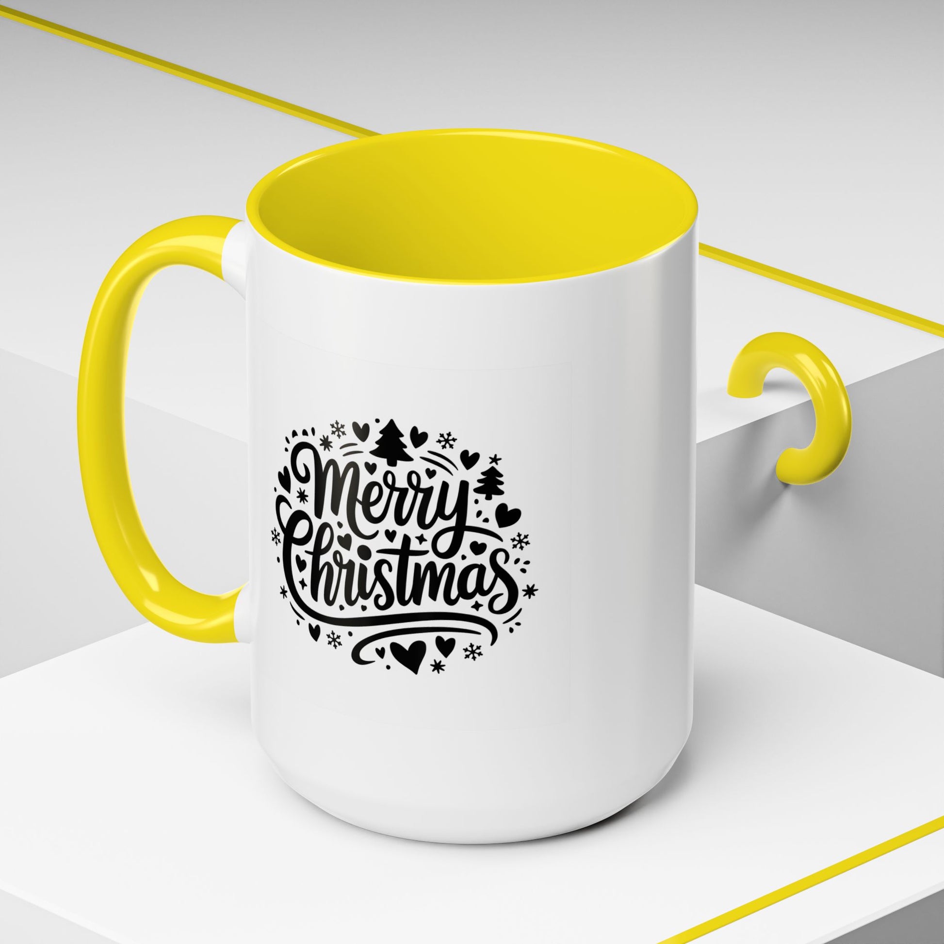 Christmas Mug - Merry Christmas Black Text Trees Snowflakes Hearts