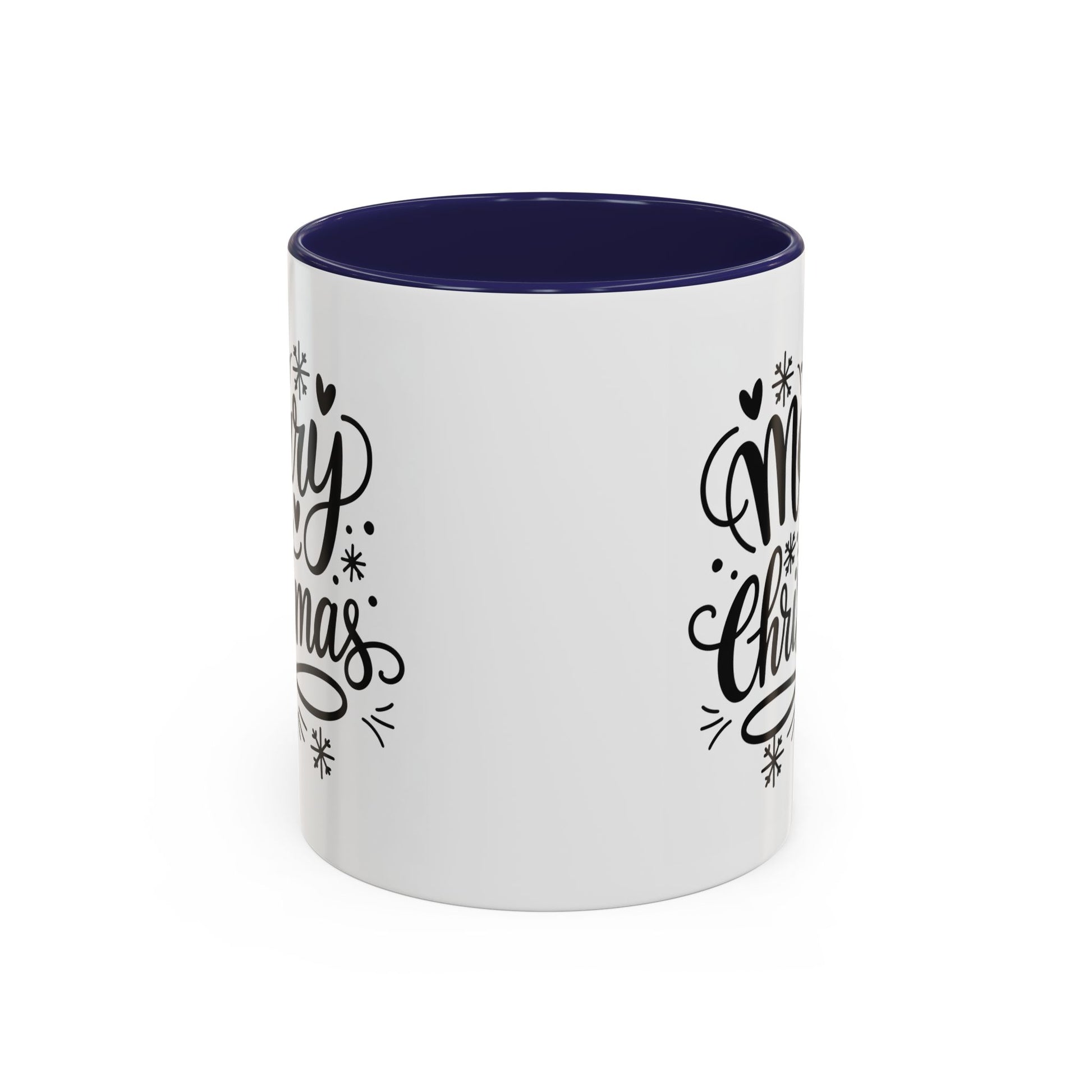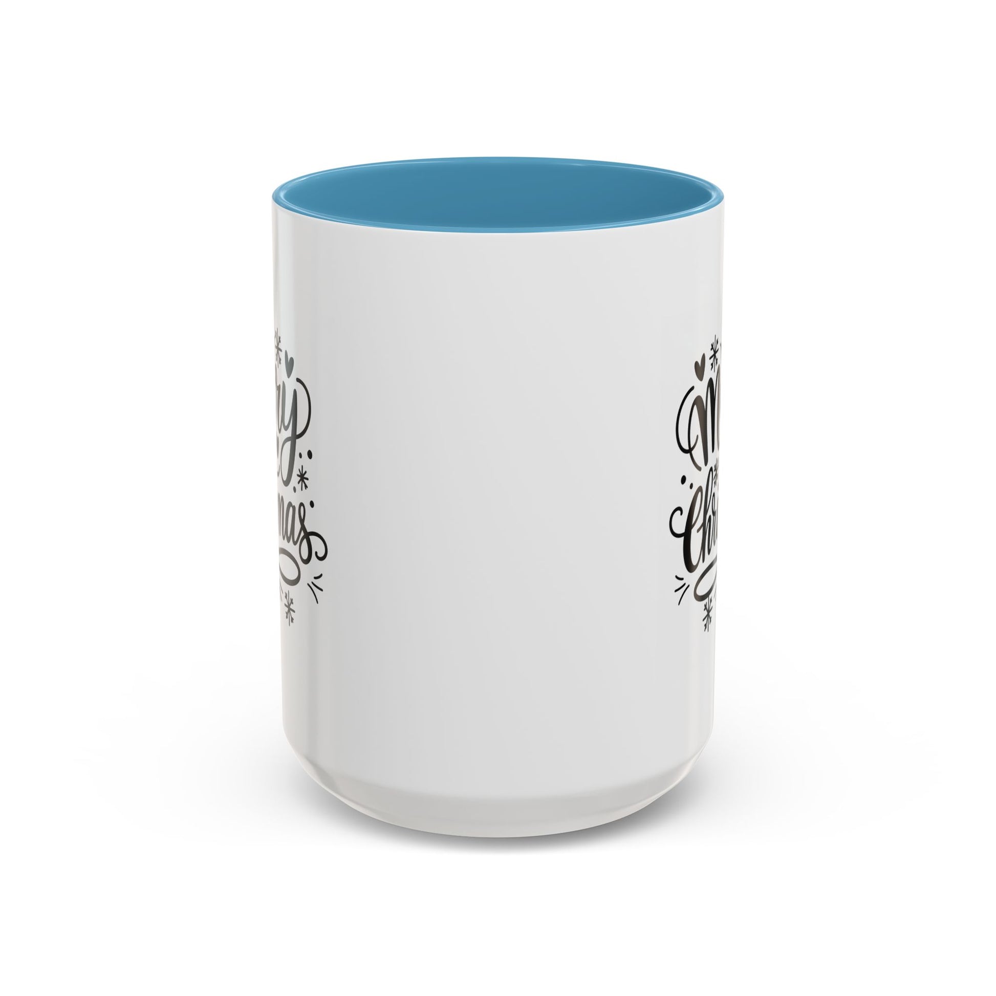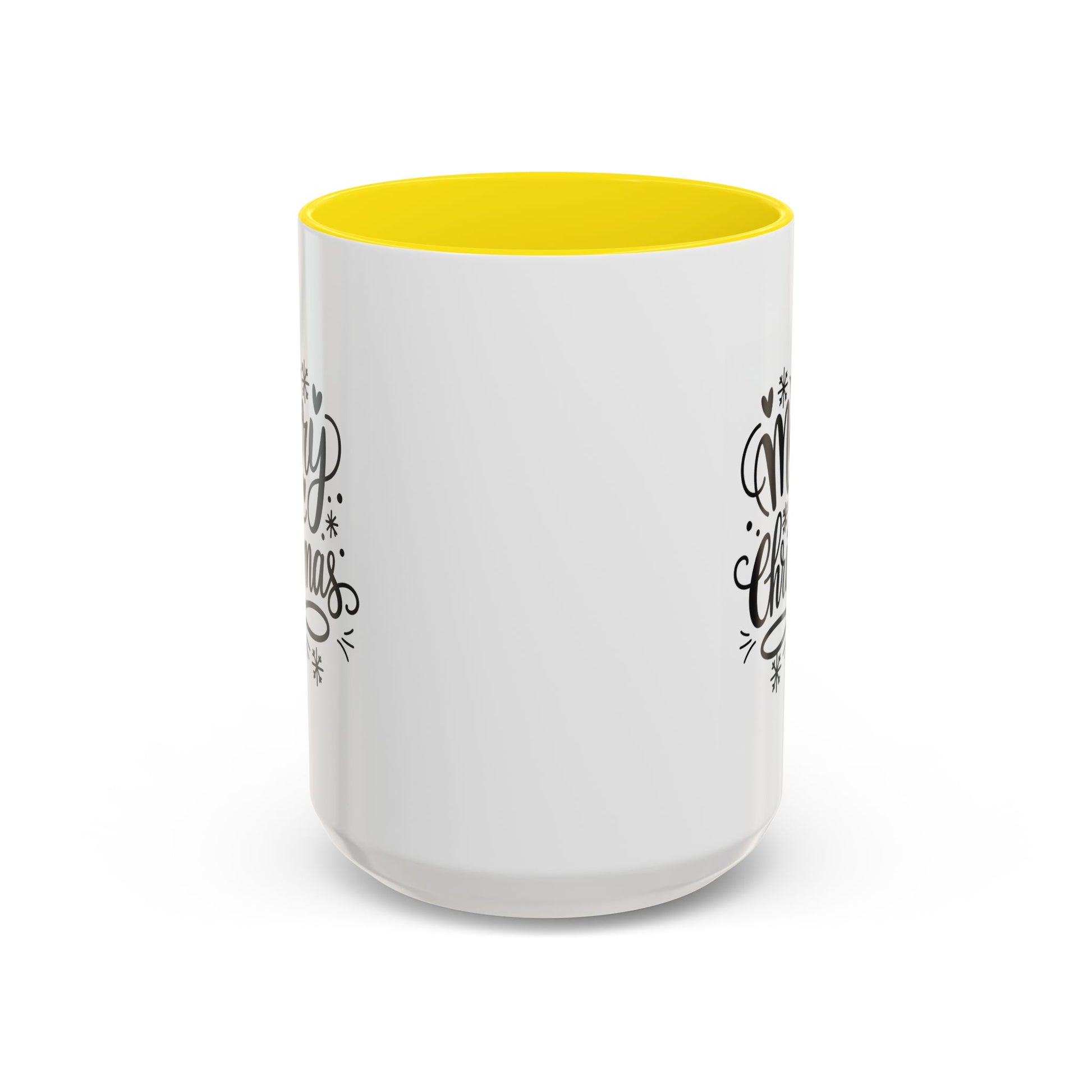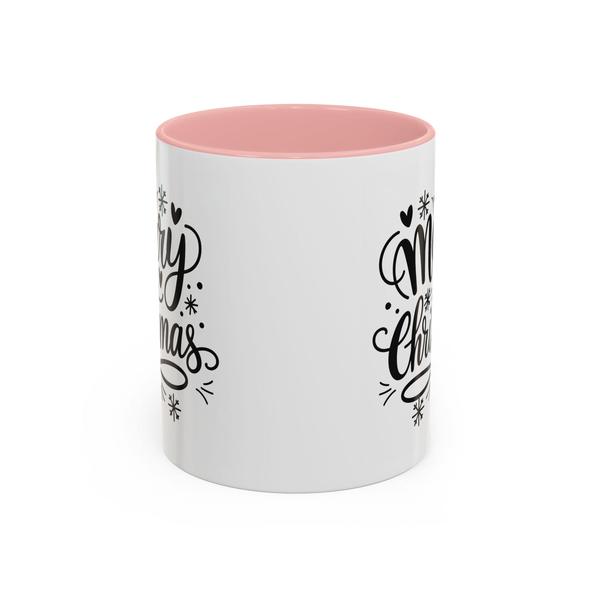 Christmas Mug - Merry Christmas Black Text Tree Snowflakes Hearts