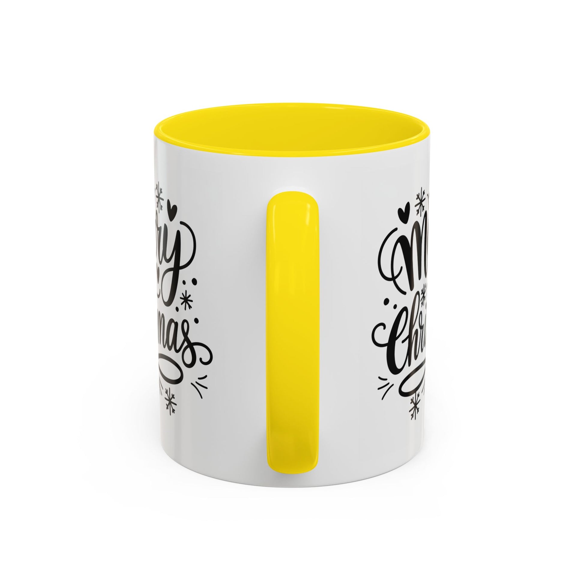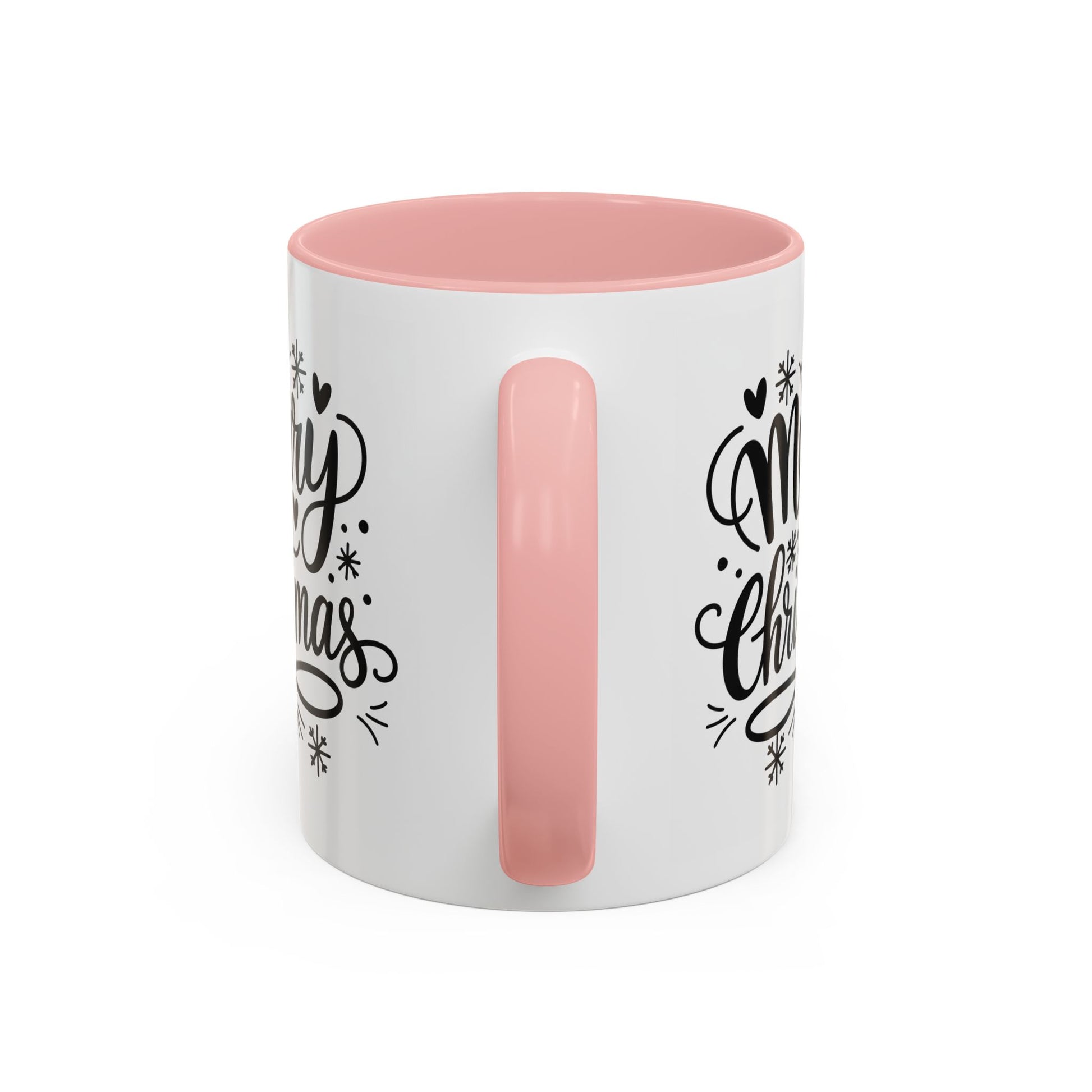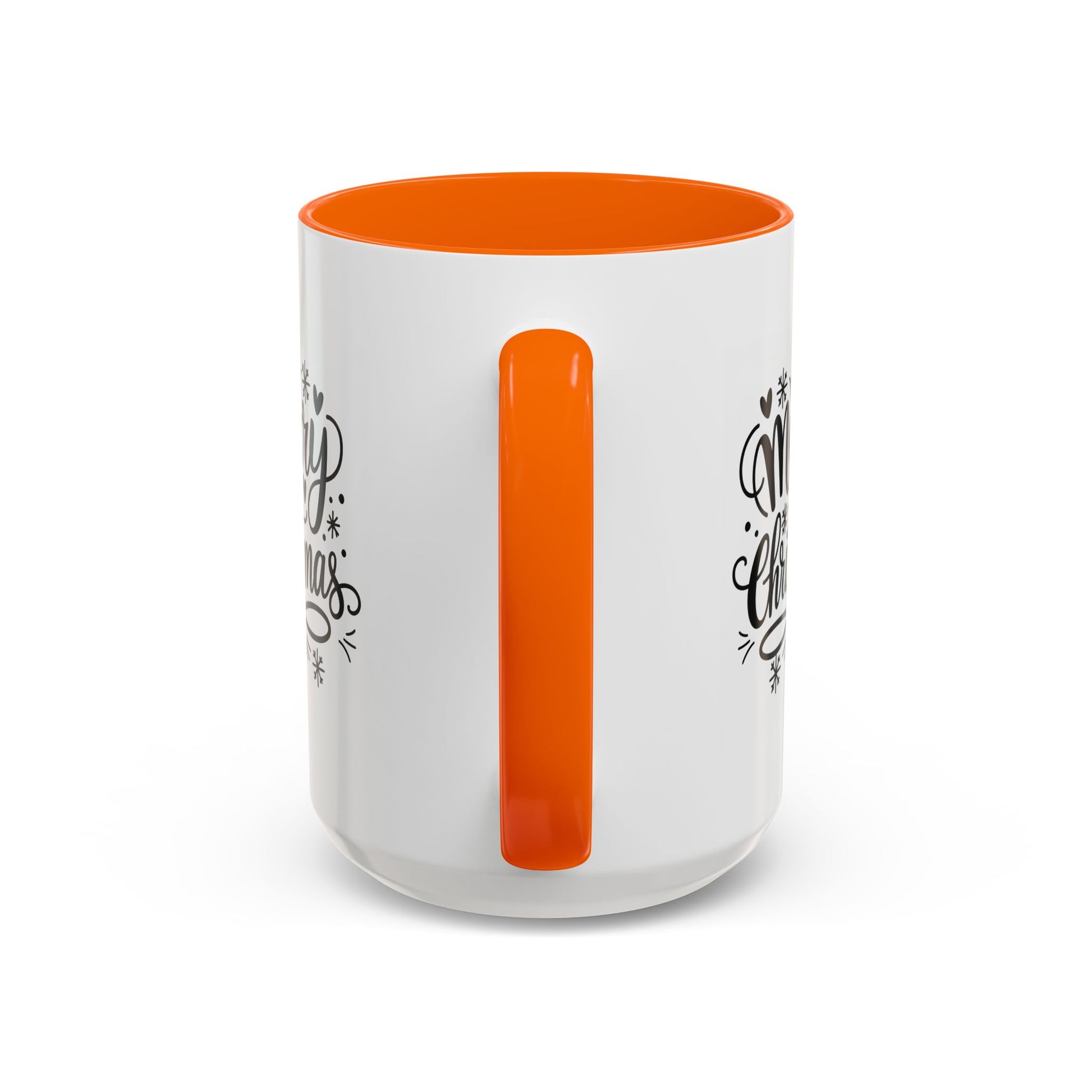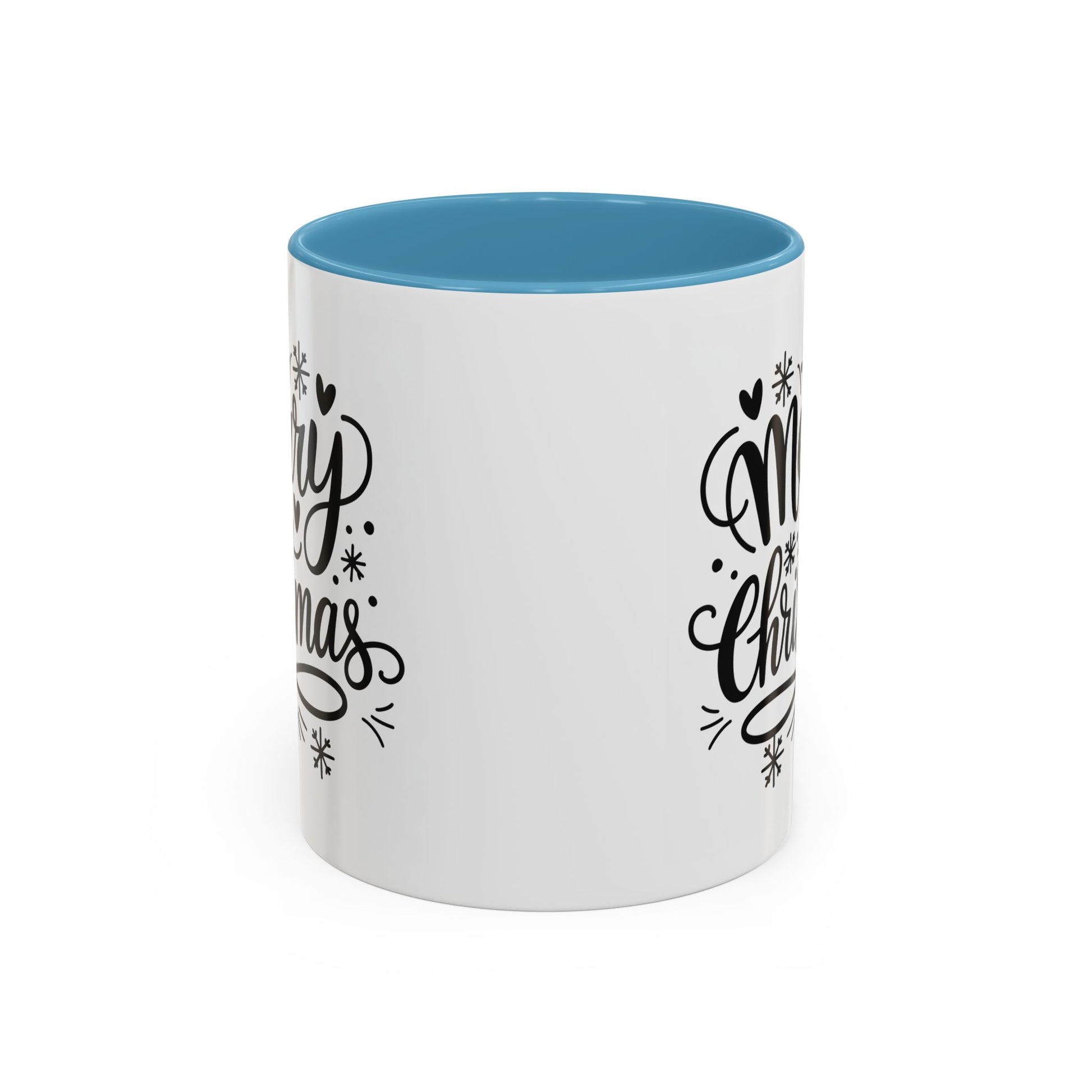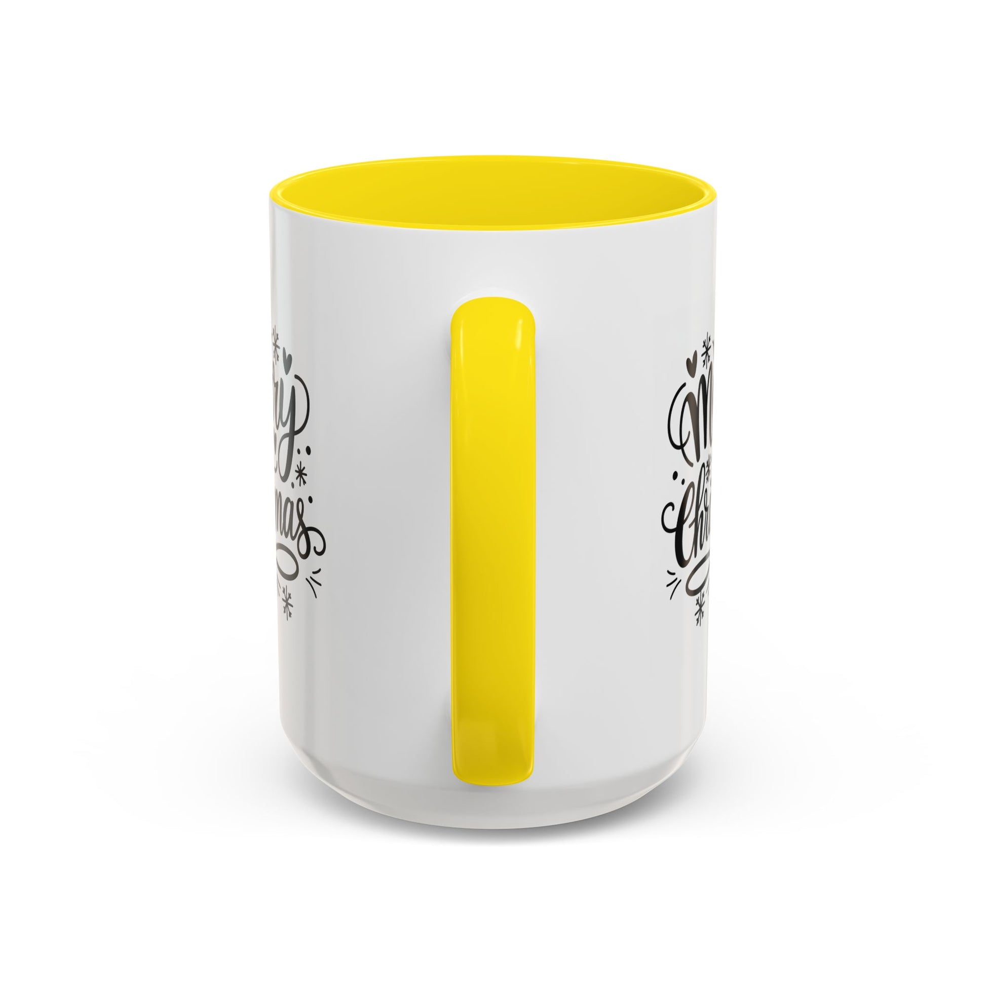Christmas Mug - Merry Christmas Black Text Tree Snowflakes Hearts