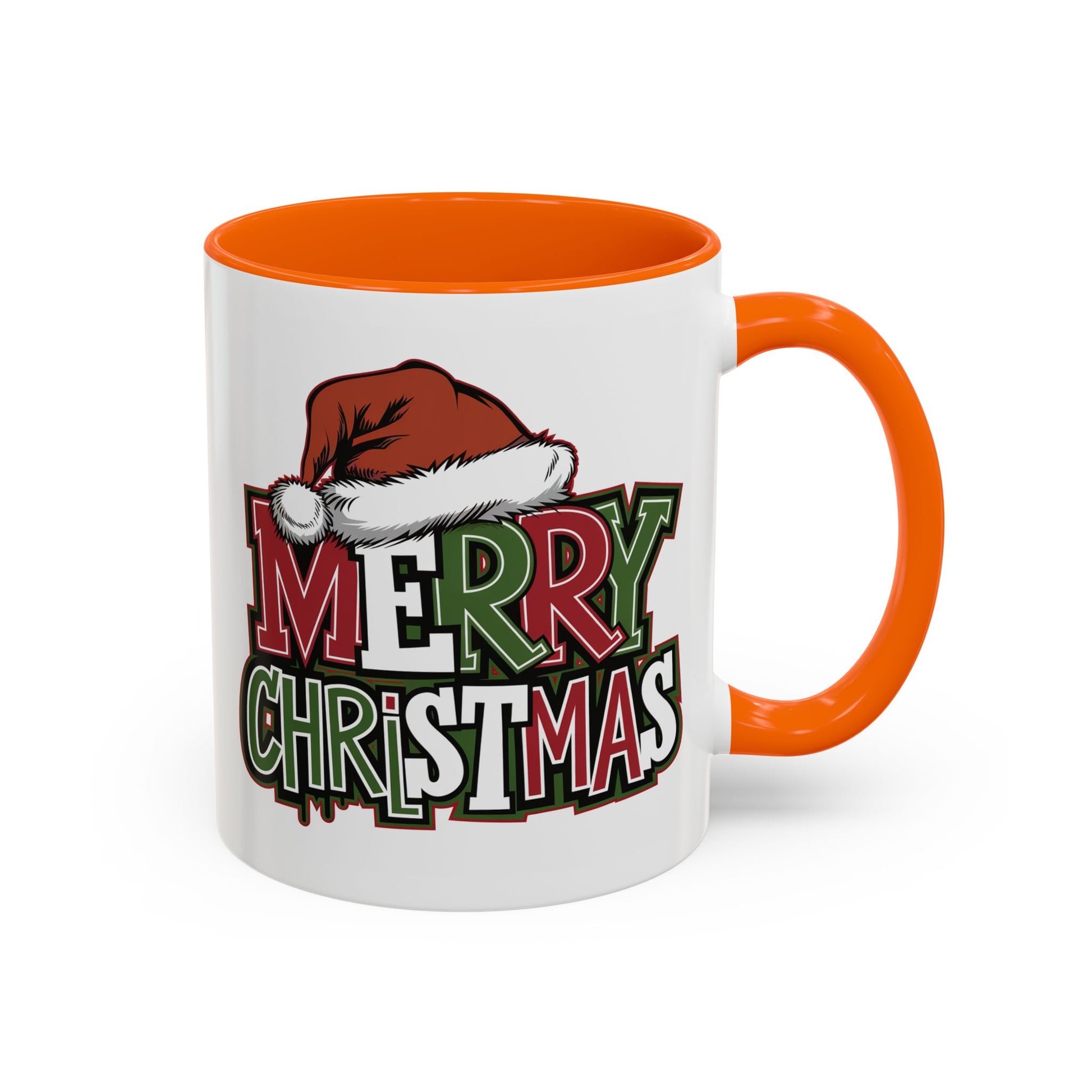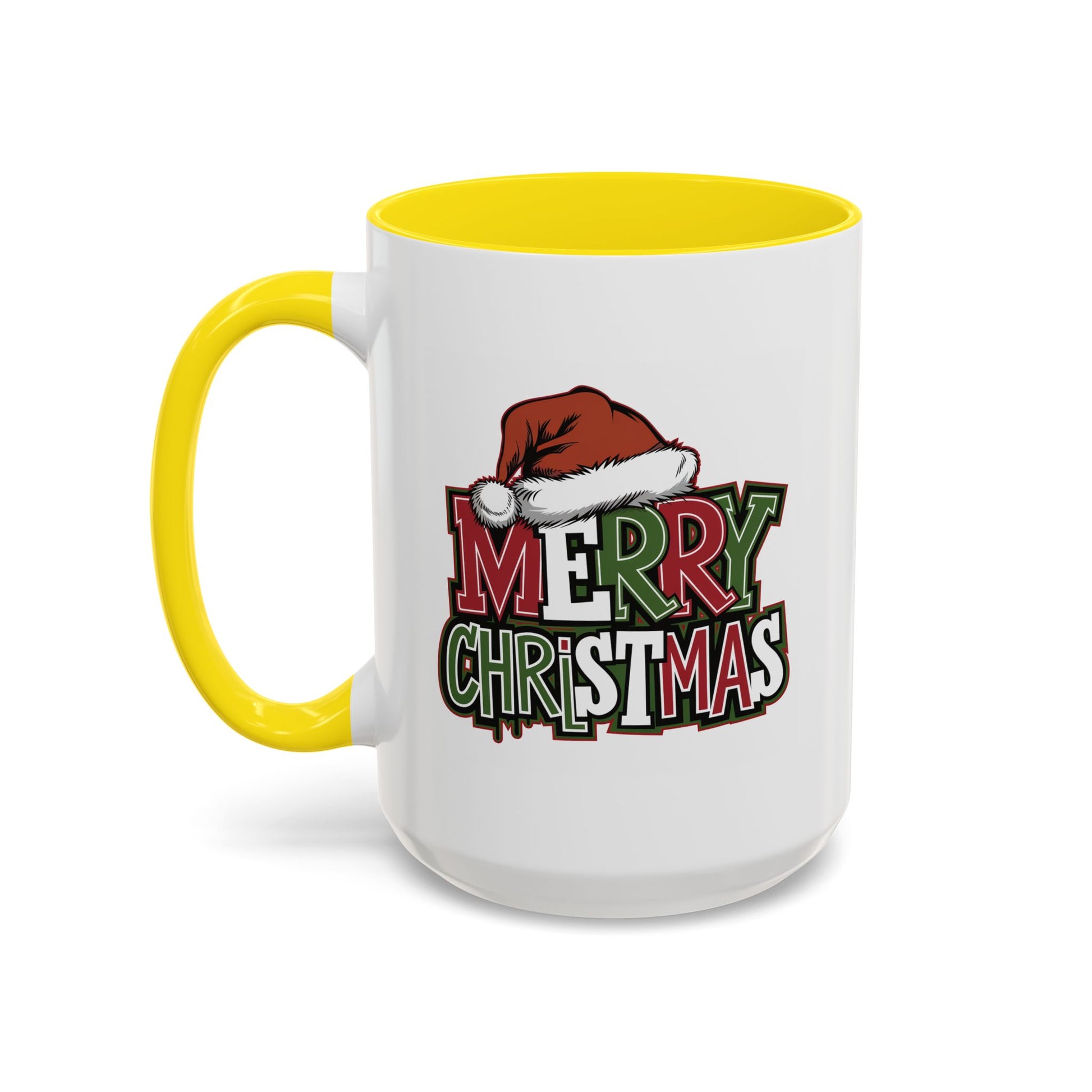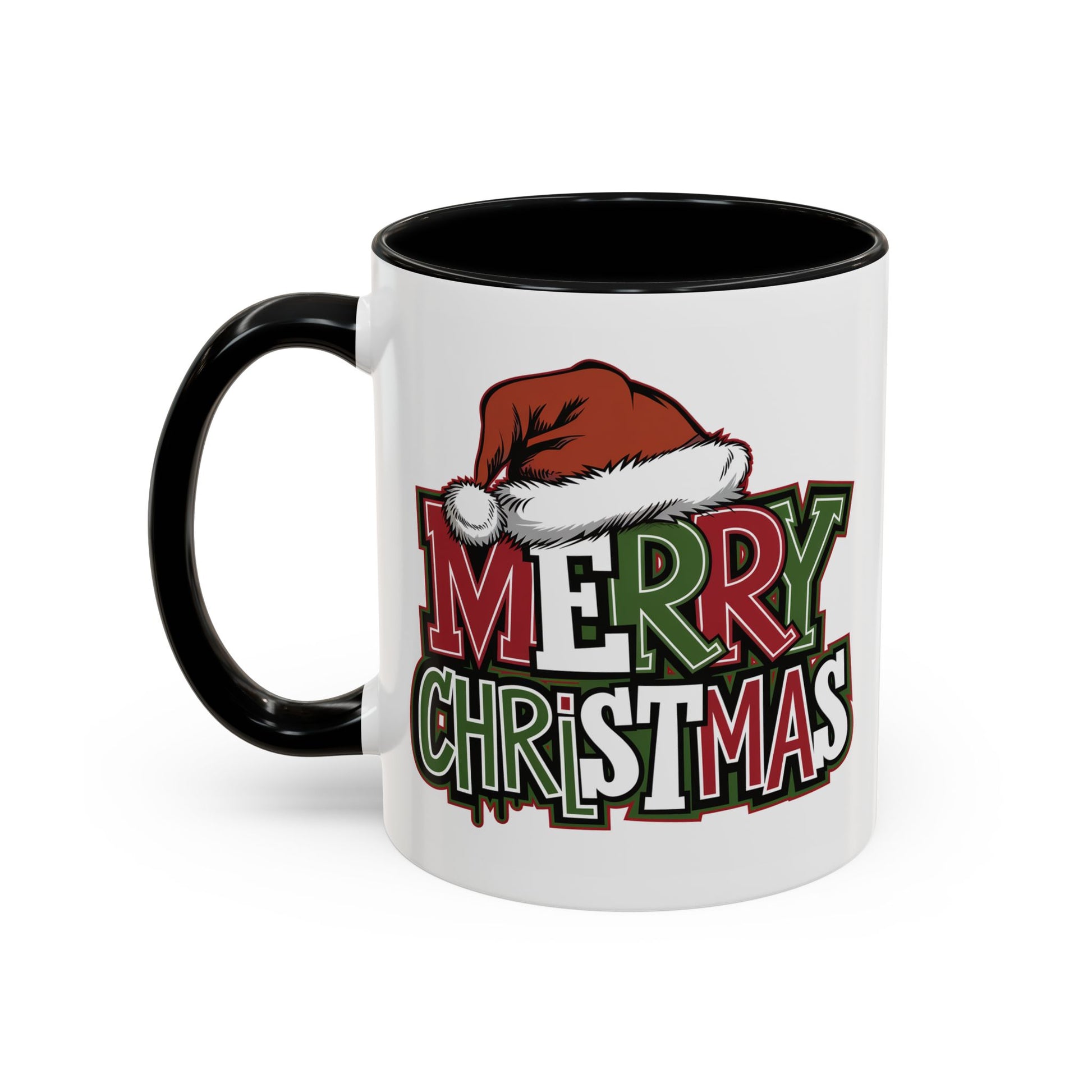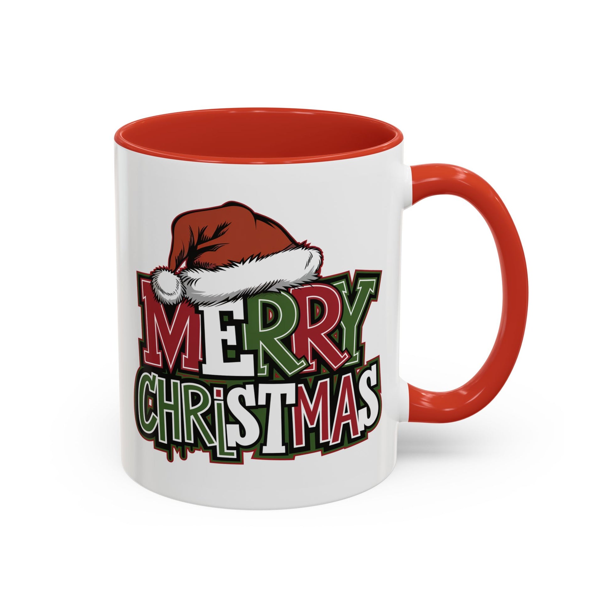 Christmas Mug - Merry Christmas Red Green & White Graffiti Hat