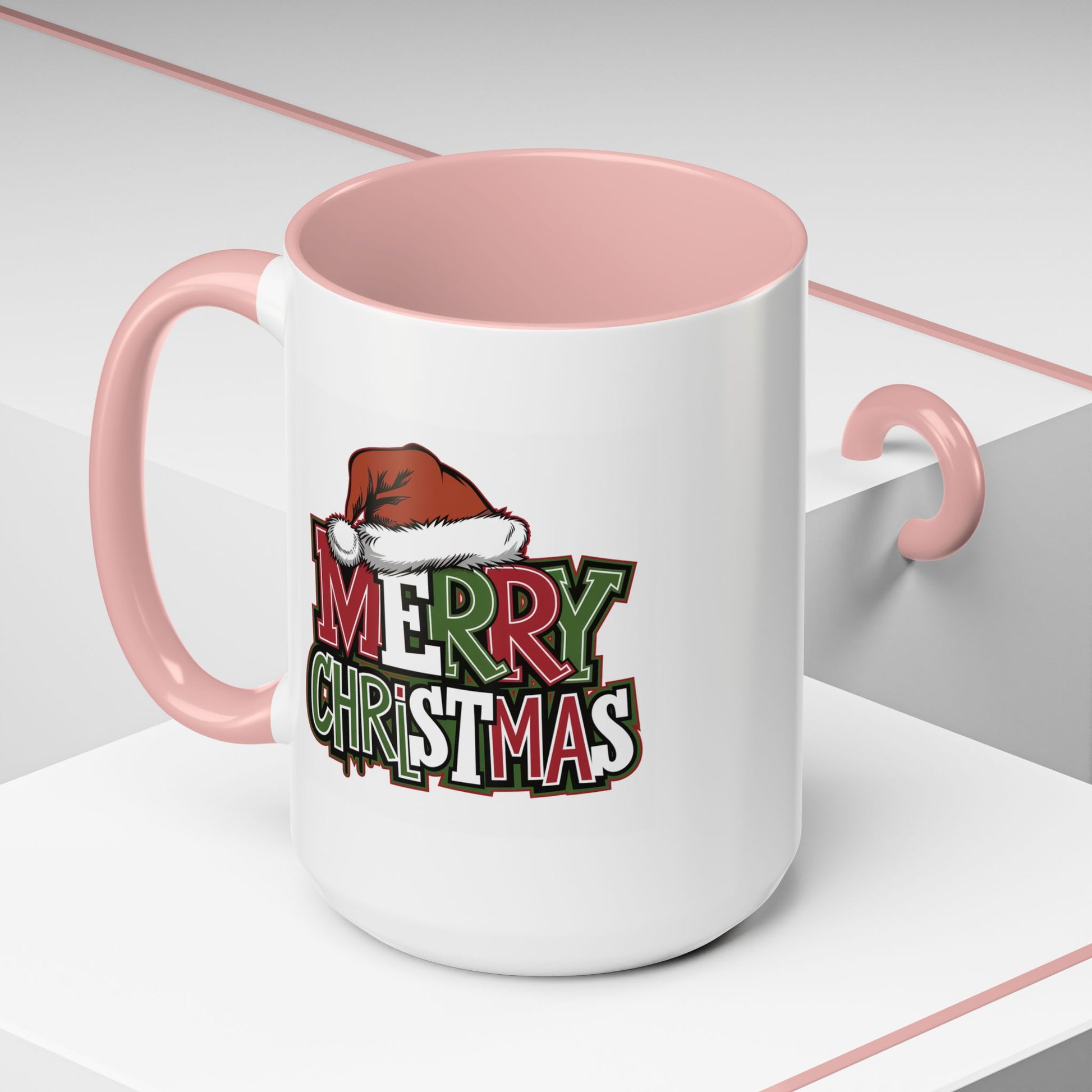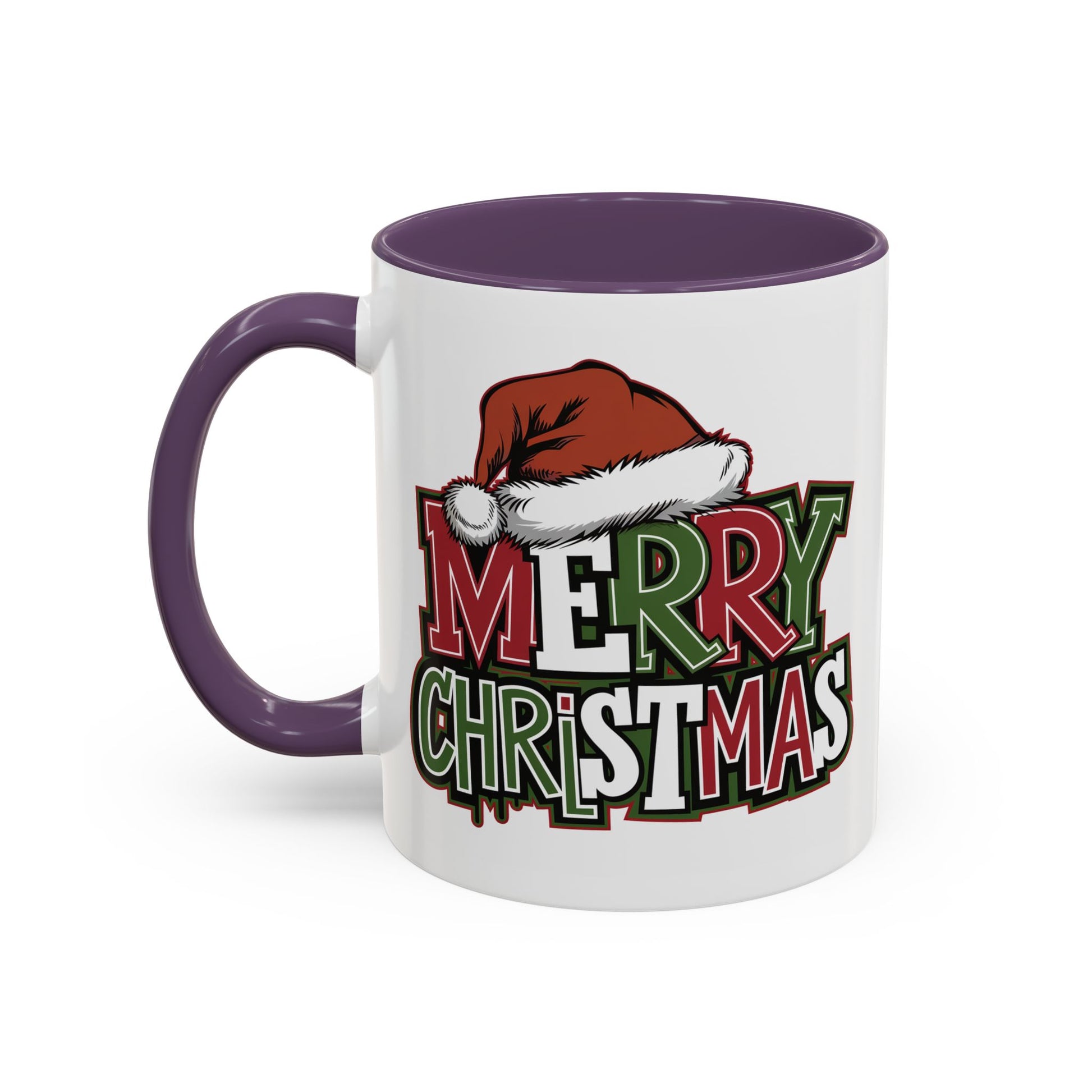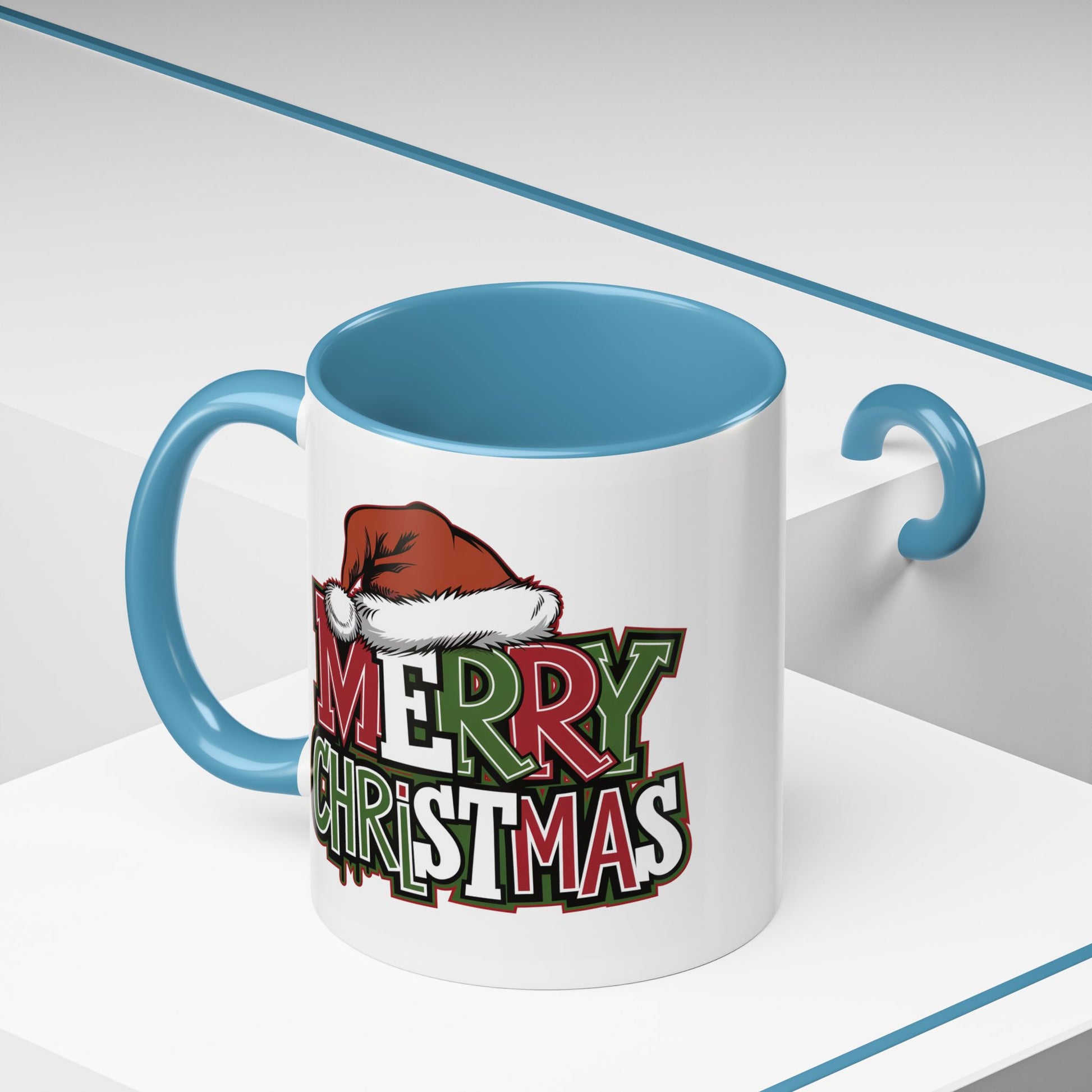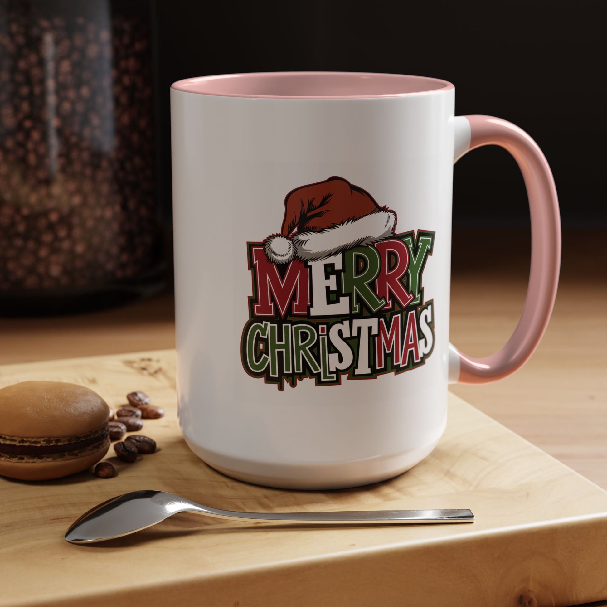 Christmas Mug - Merry Christmas Red Green & White Graffiti Hat
