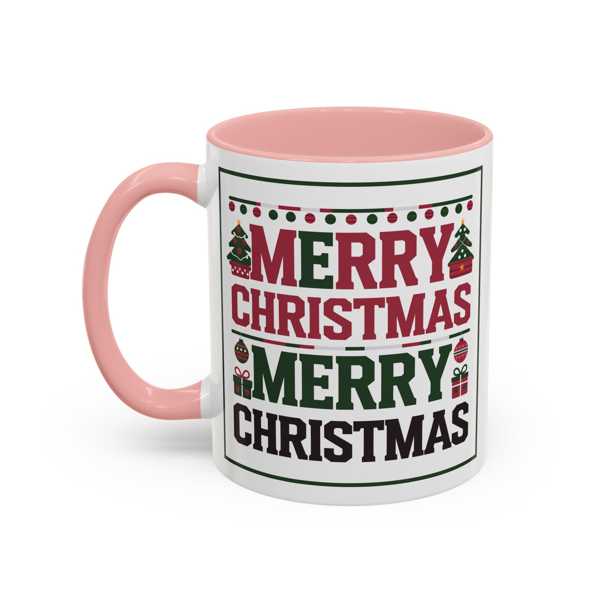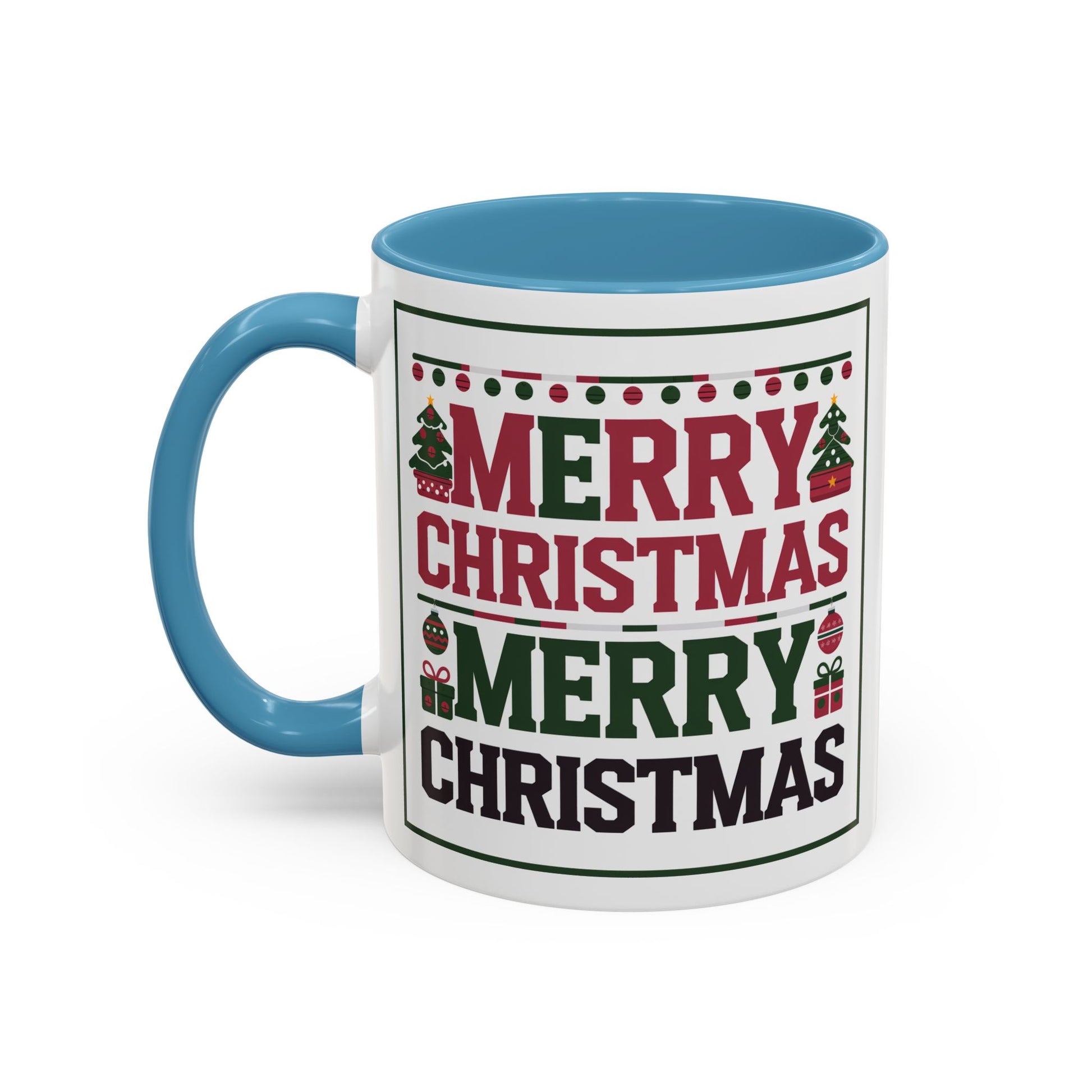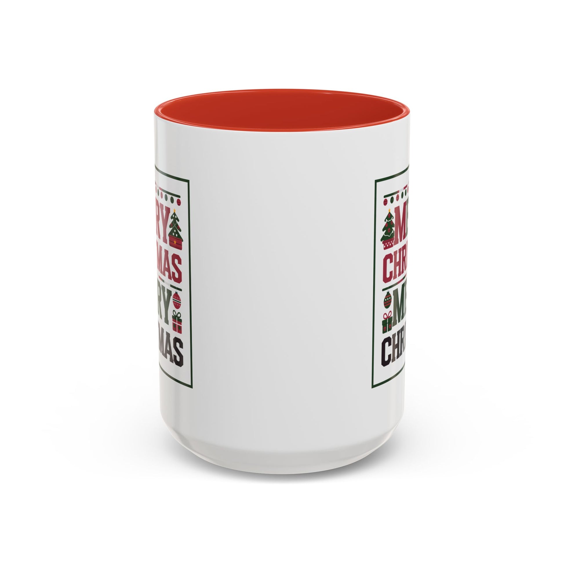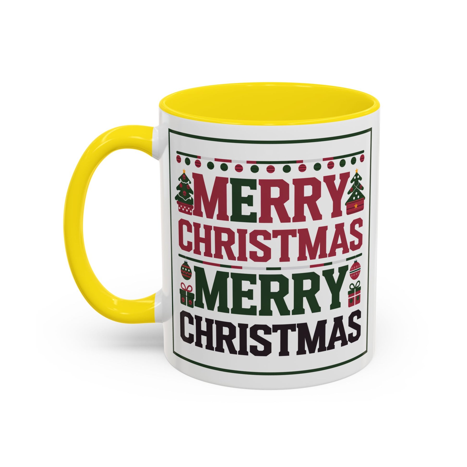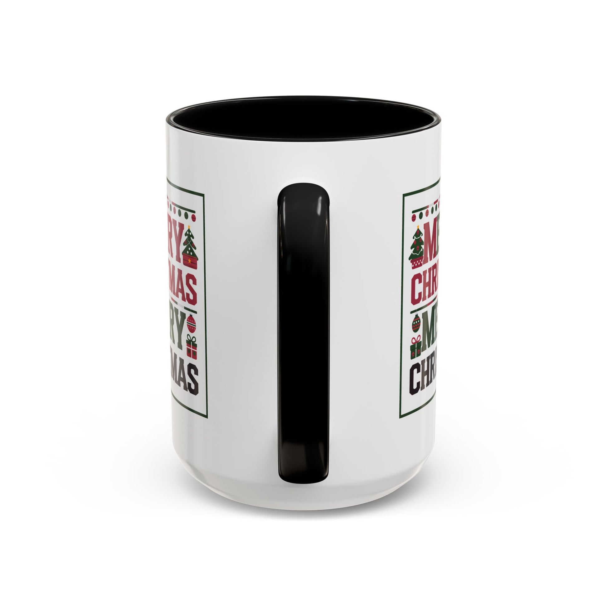 Christmas Mug - Merry Christmas Red Green & Black Text Trees Presents