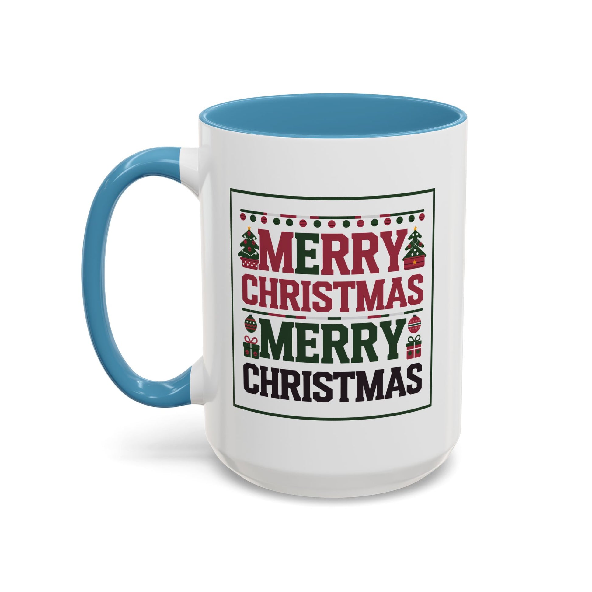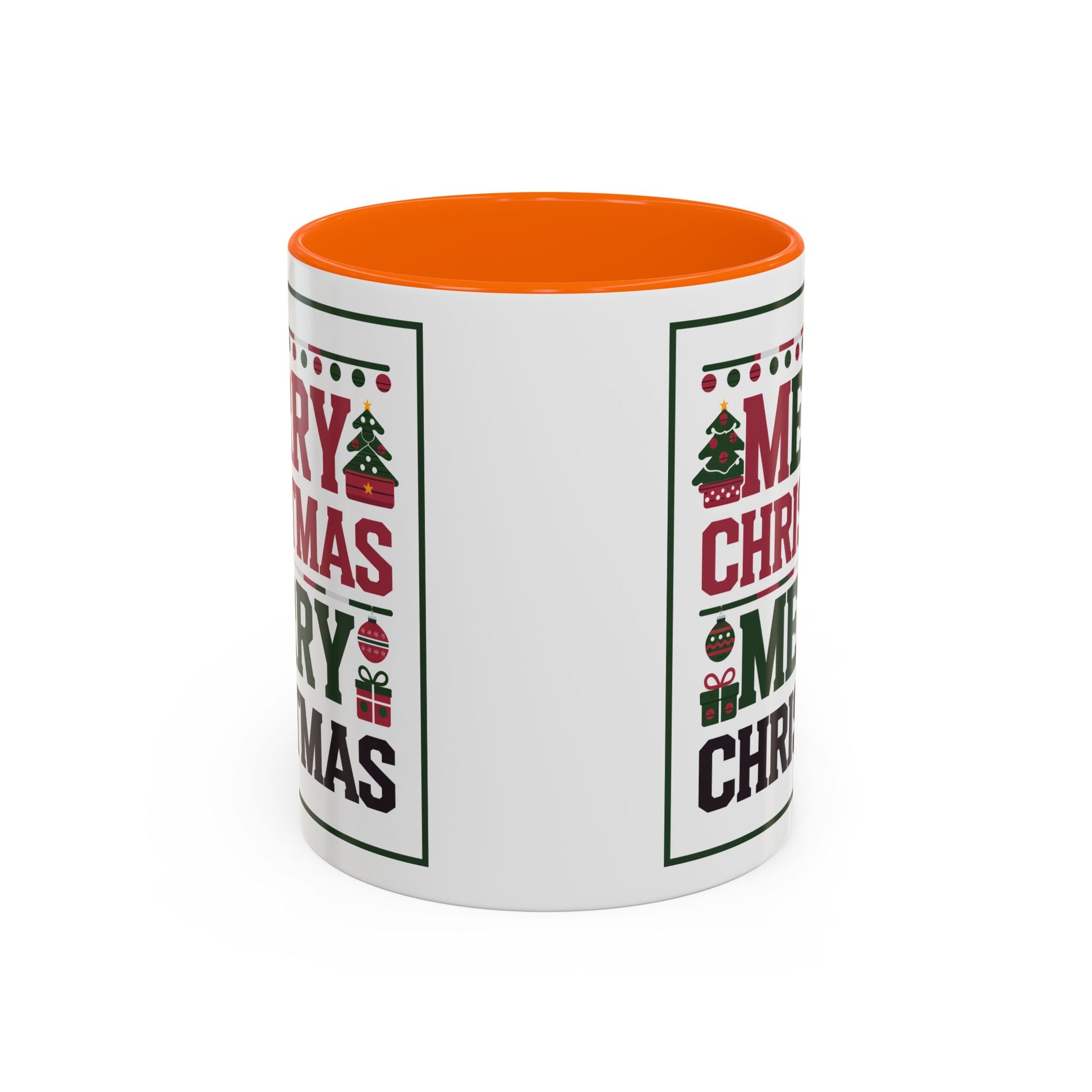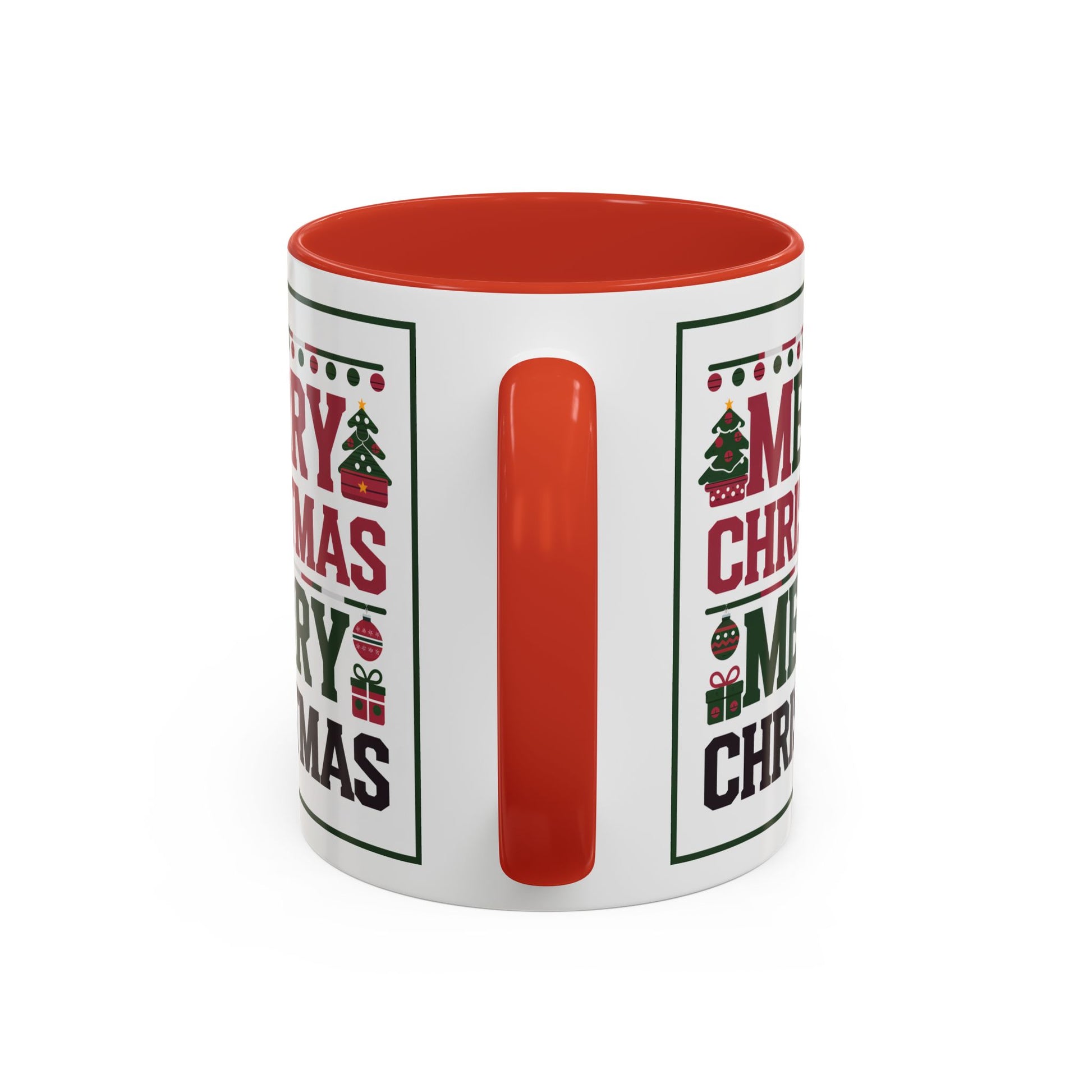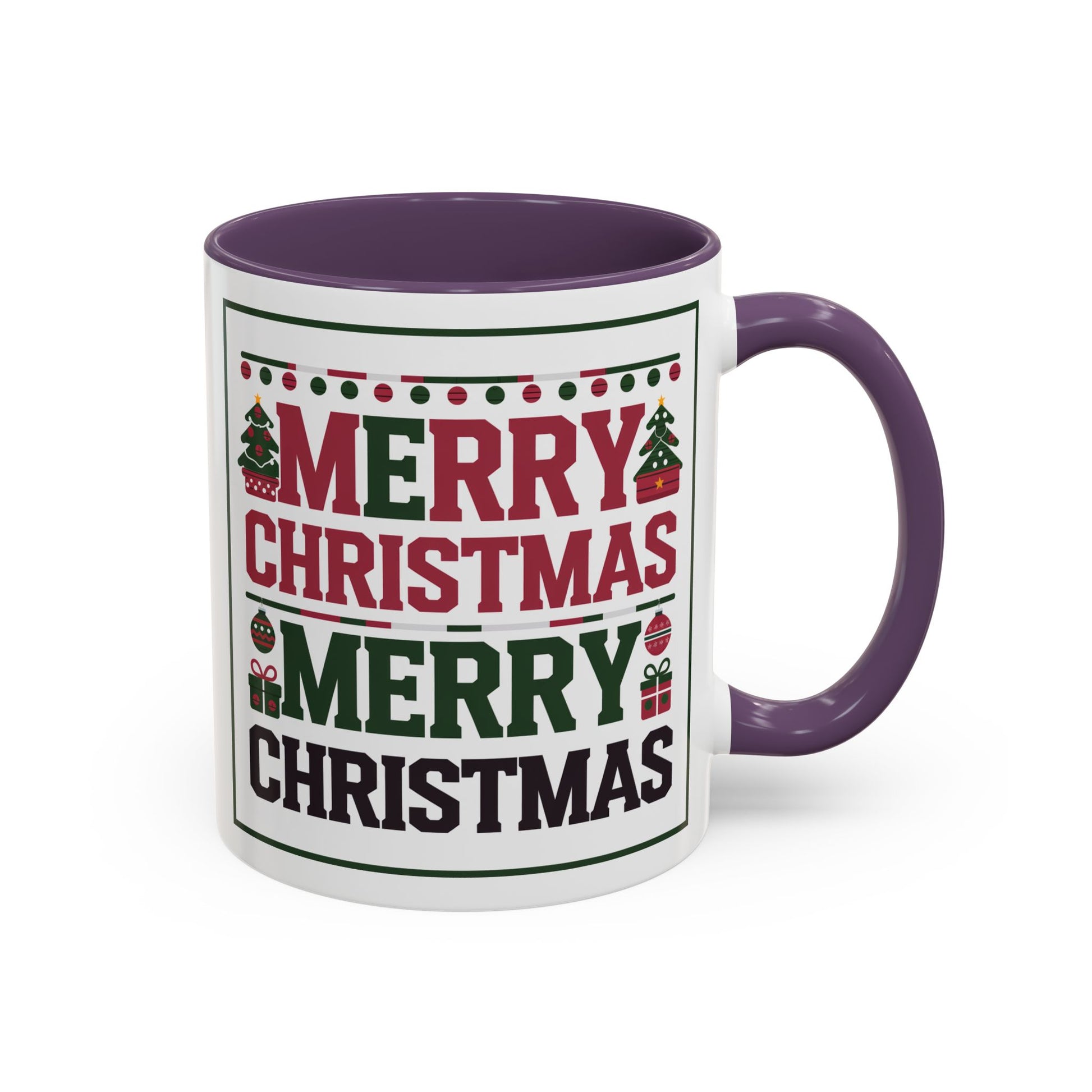 Christmas Mug - Merry Christmas Red Green & Black Text Trees Presents