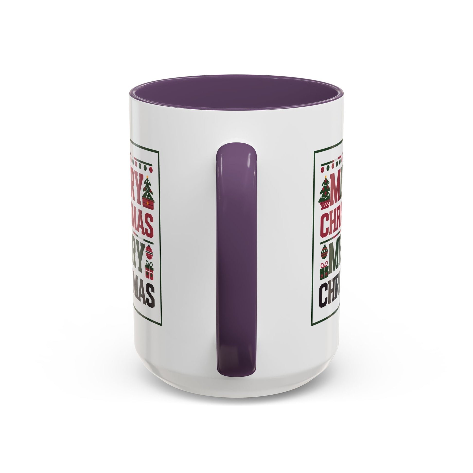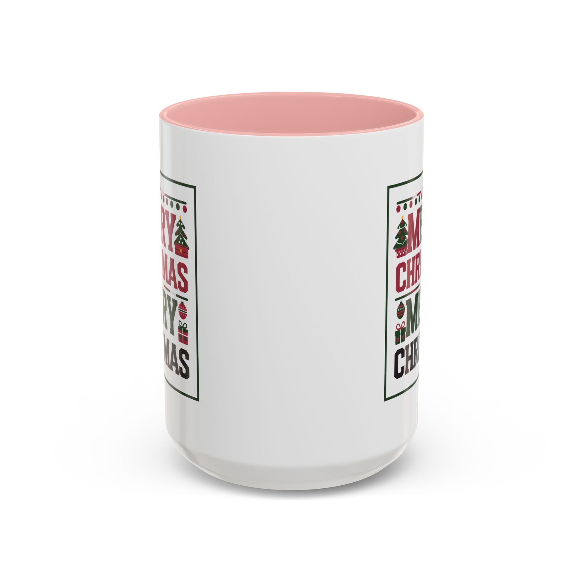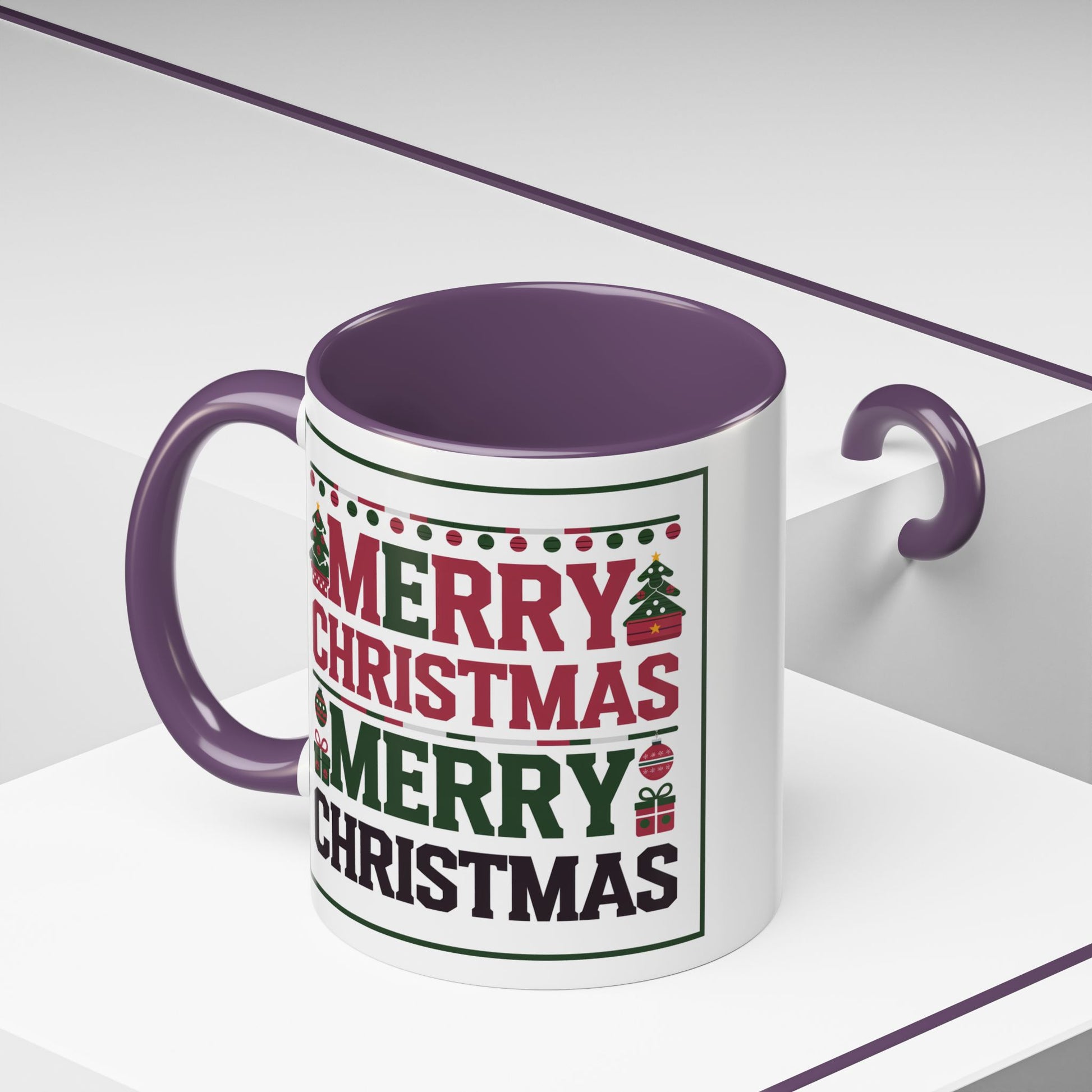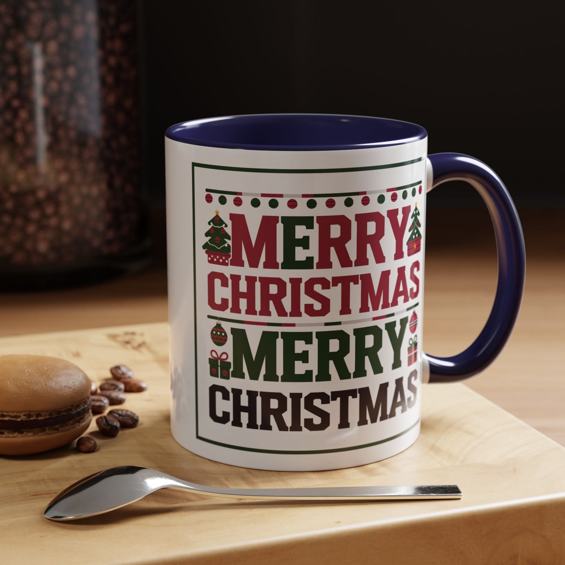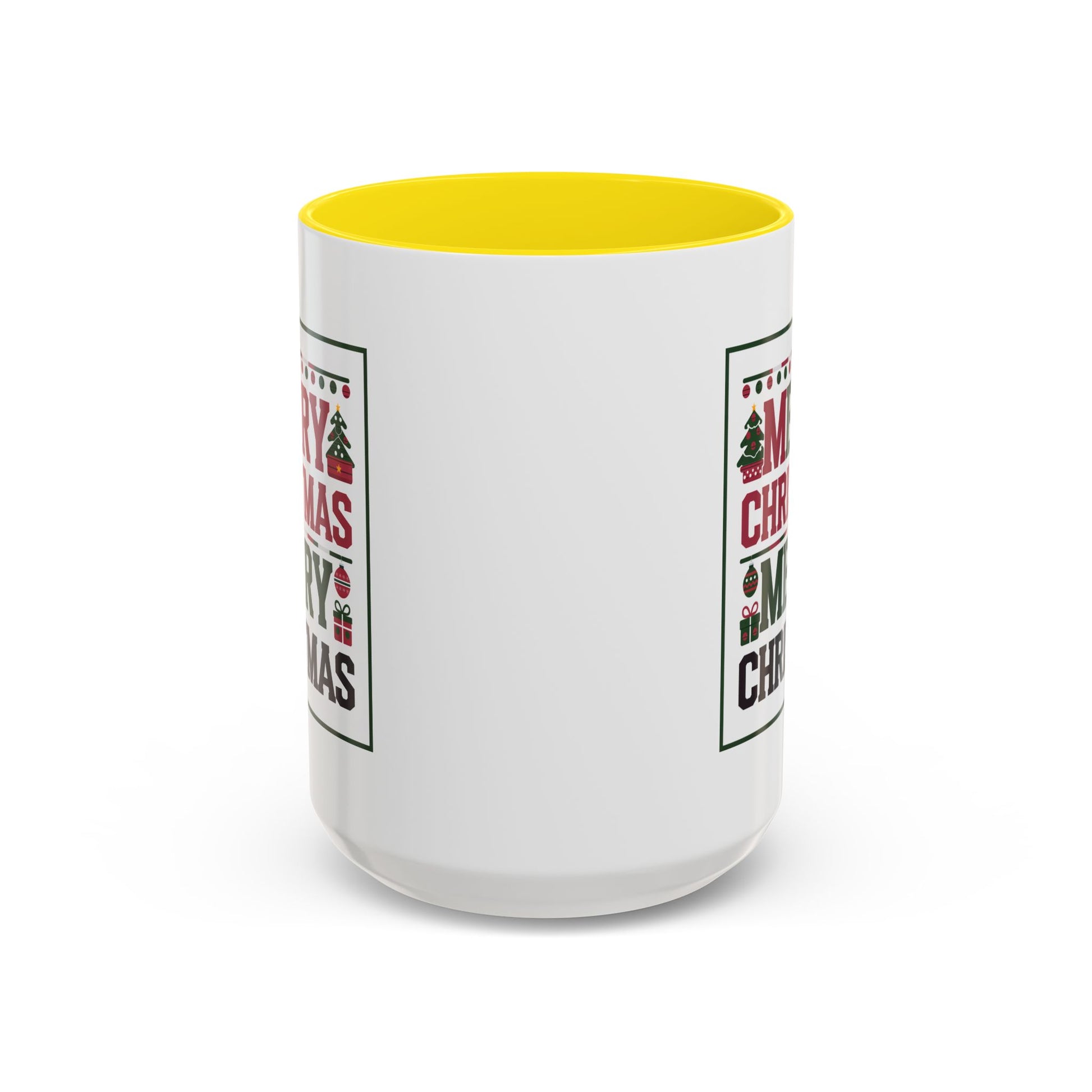 Christmas Mug - Merry Christmas Red Green & Black Text Trees Presents