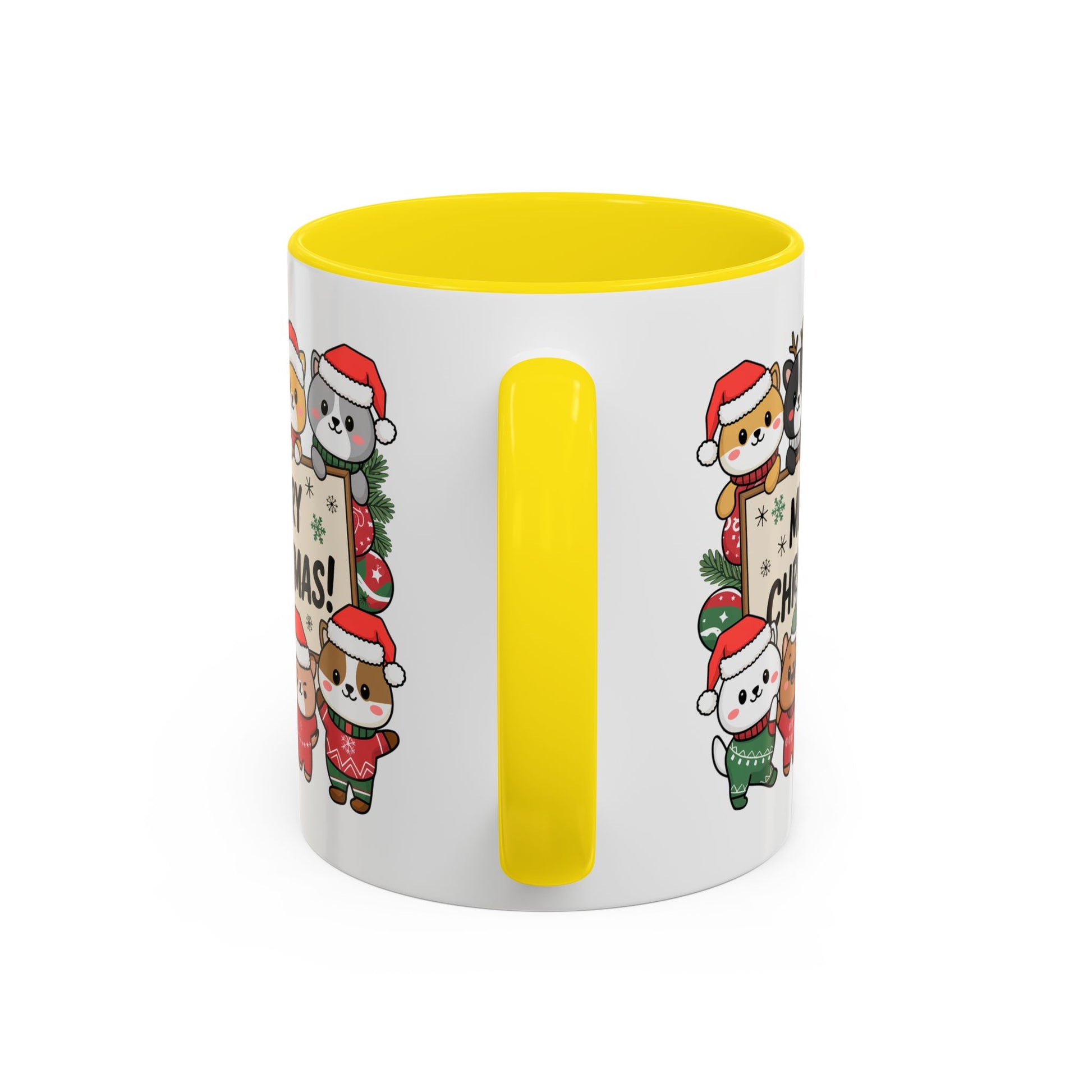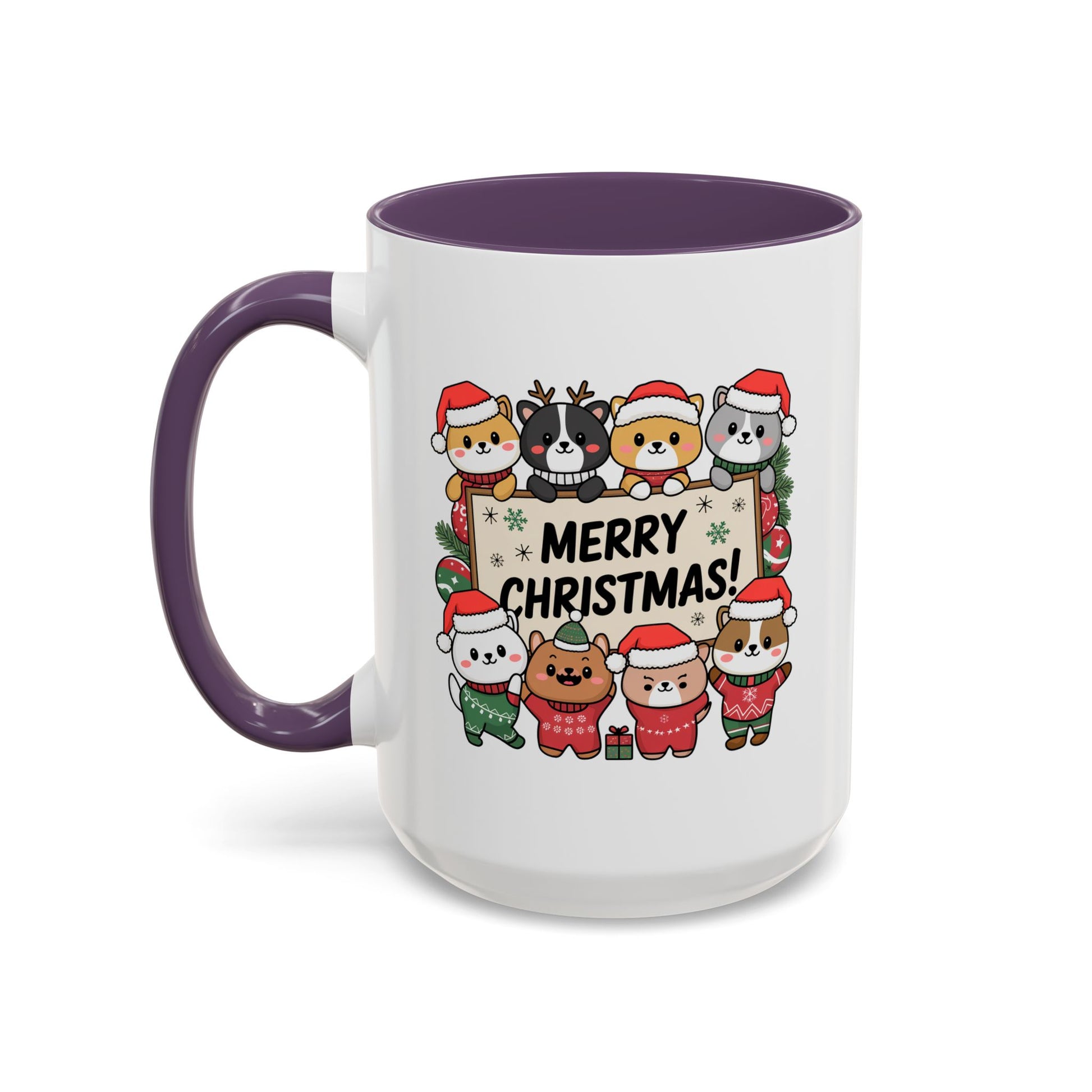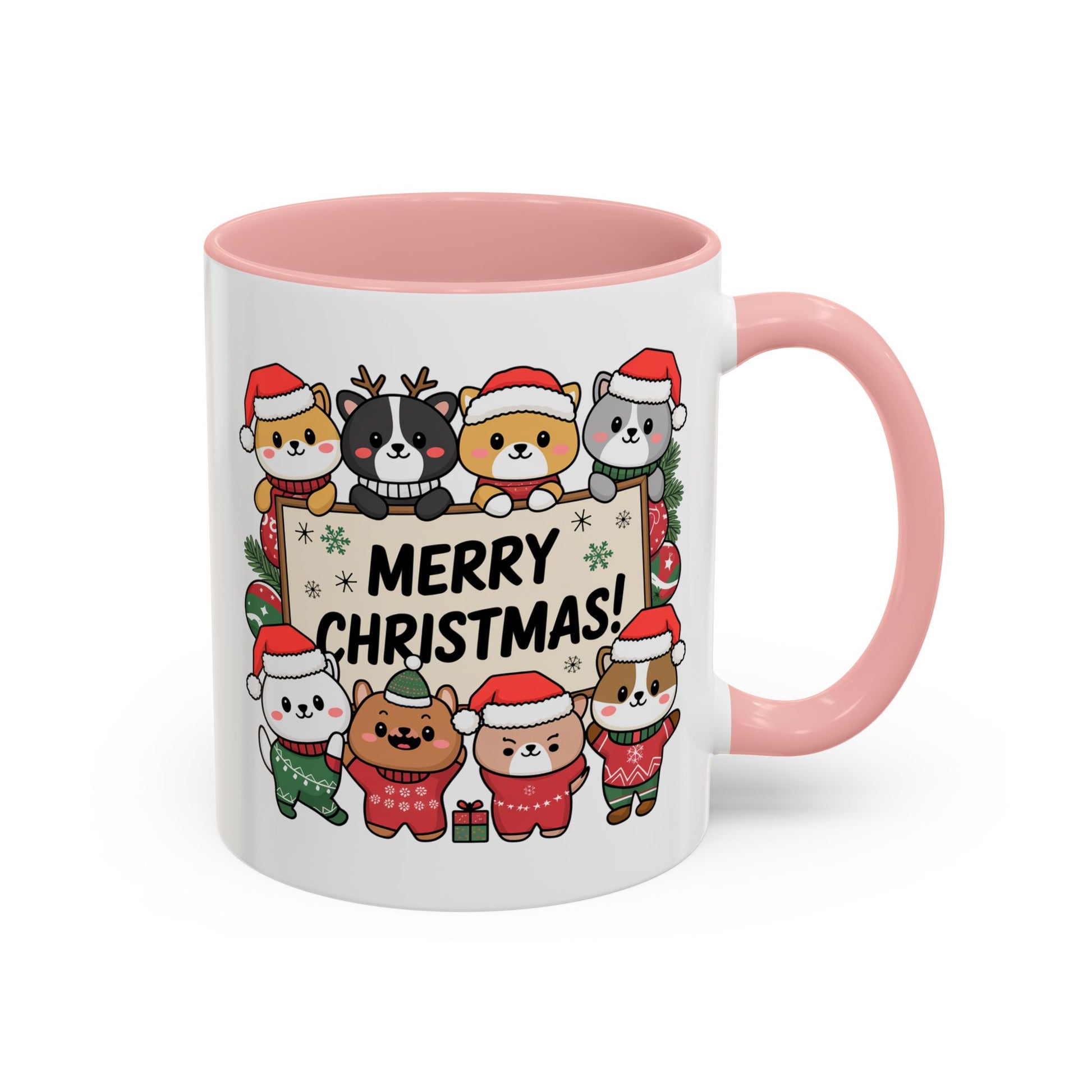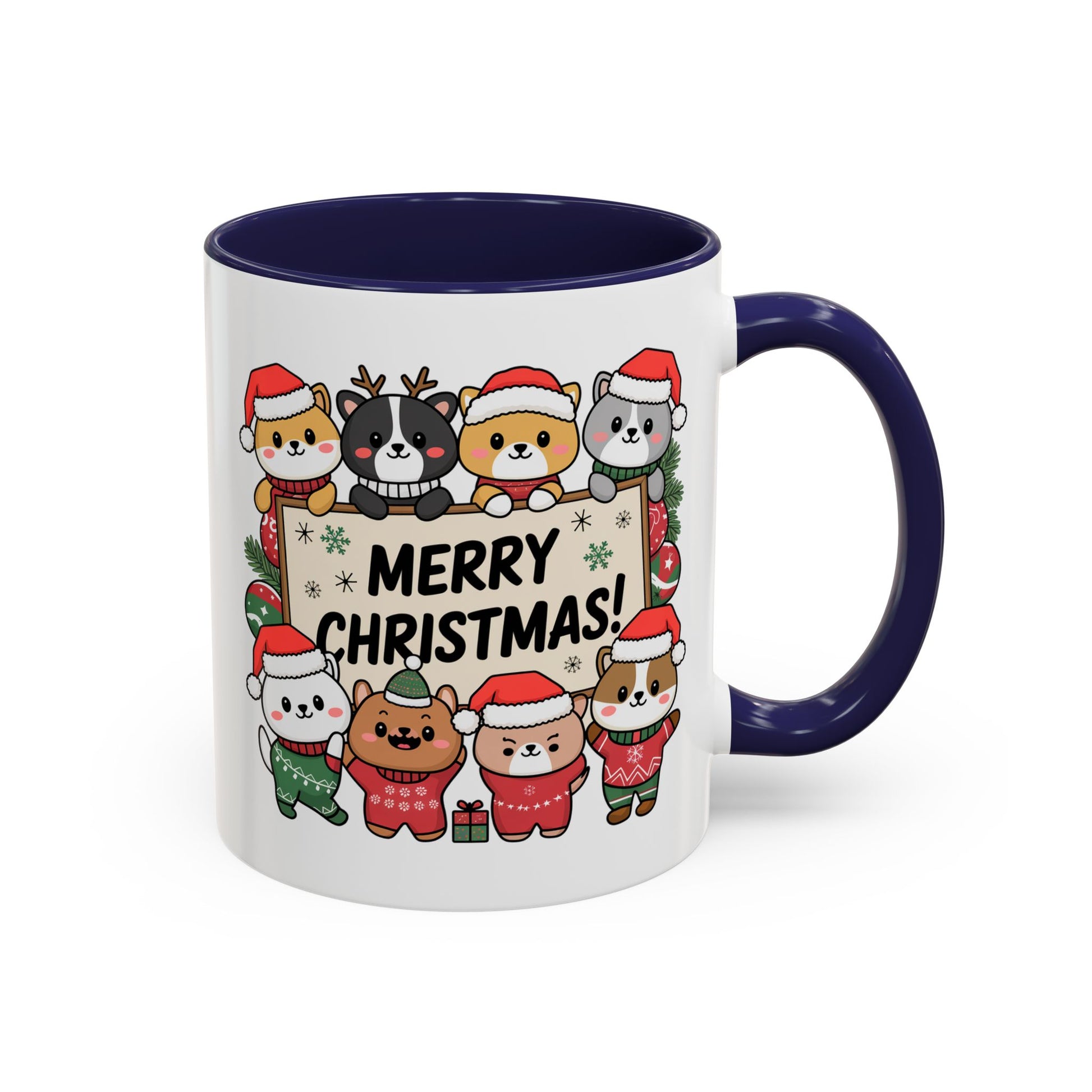 Christmas Mug - Merry Christmas Black Text Cute Animals
