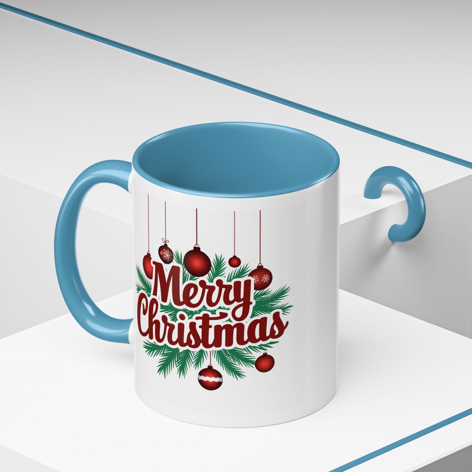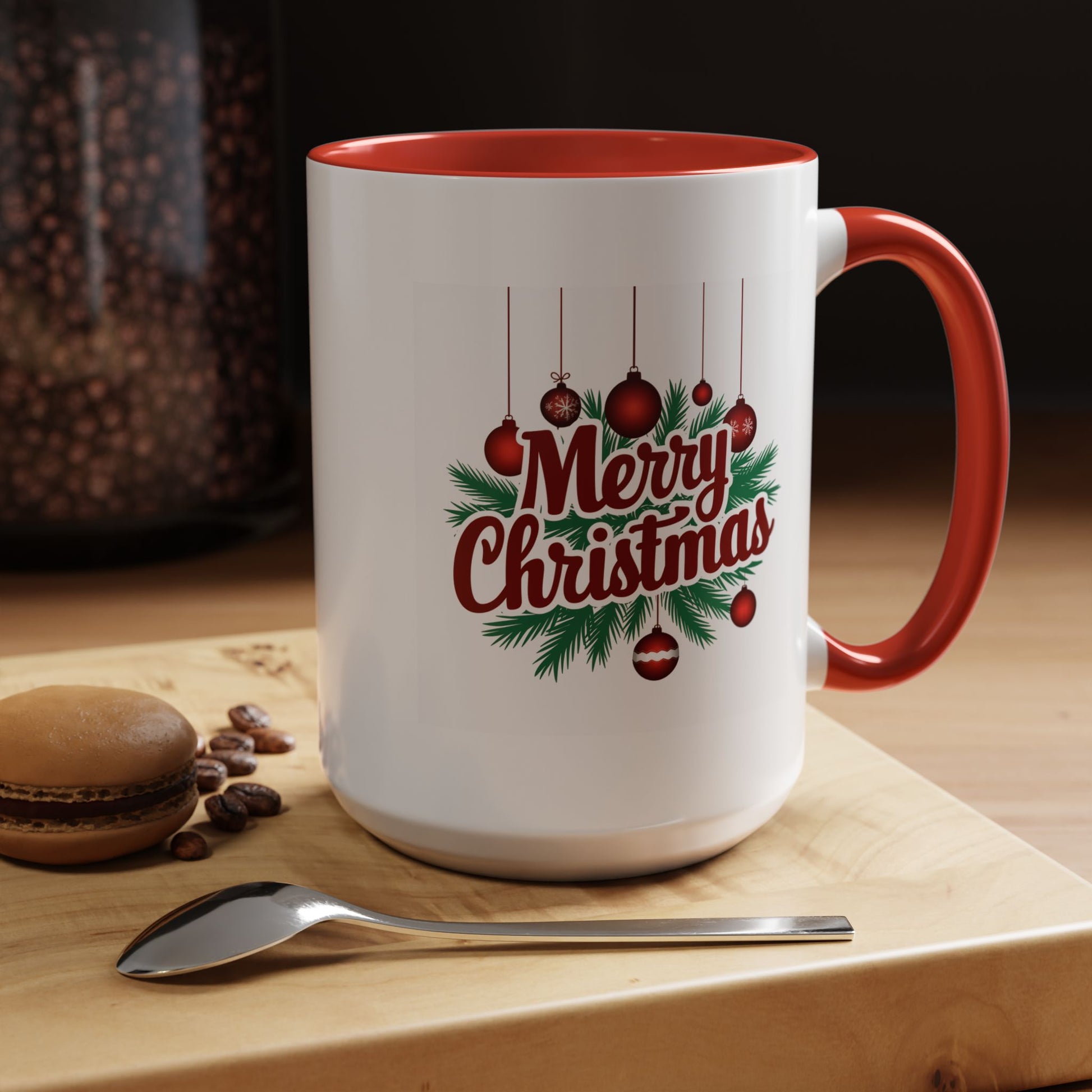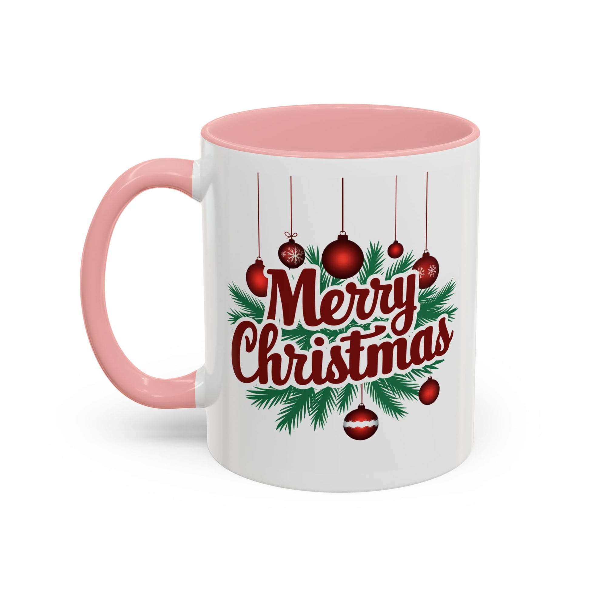 Christmas Mug - Merry Christmas Maroon Text Ornaments
