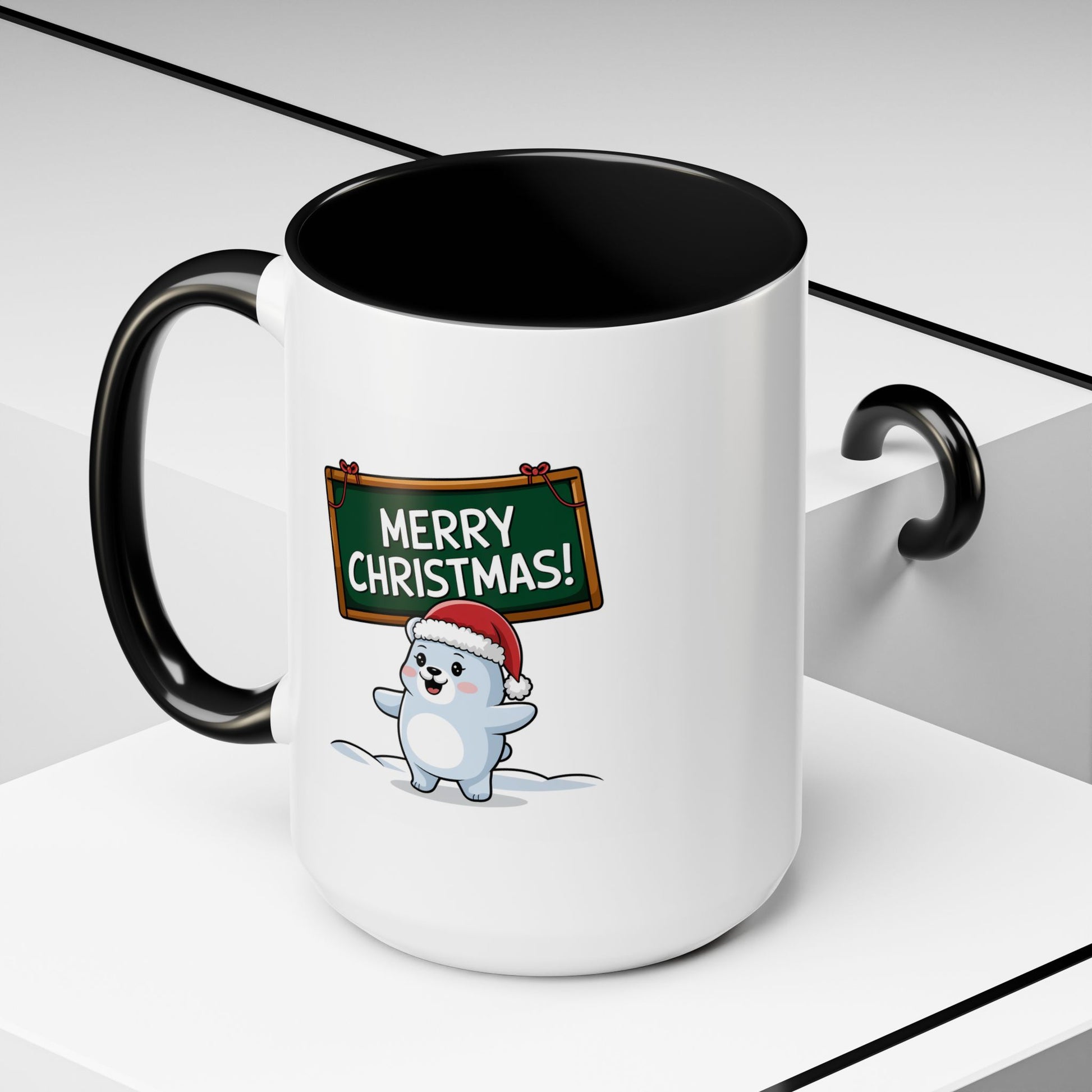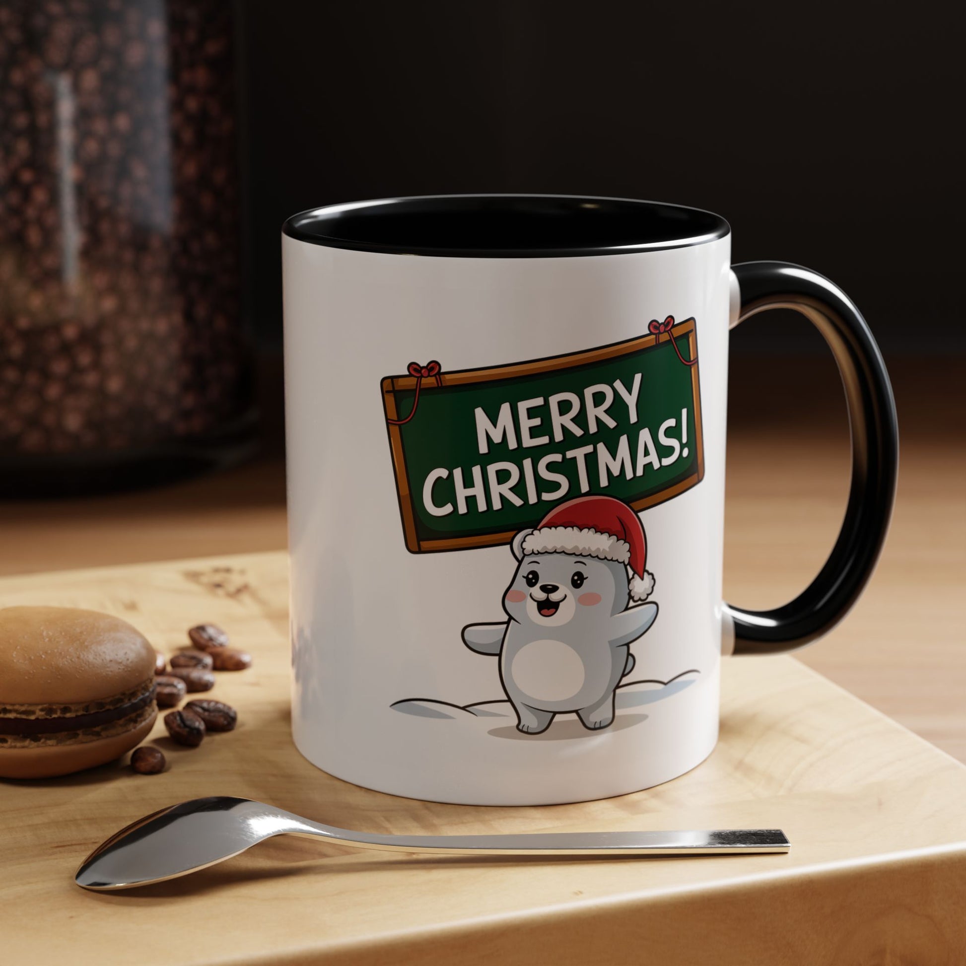 Christmas Mug - Merry Christmas White Text Seal Pup