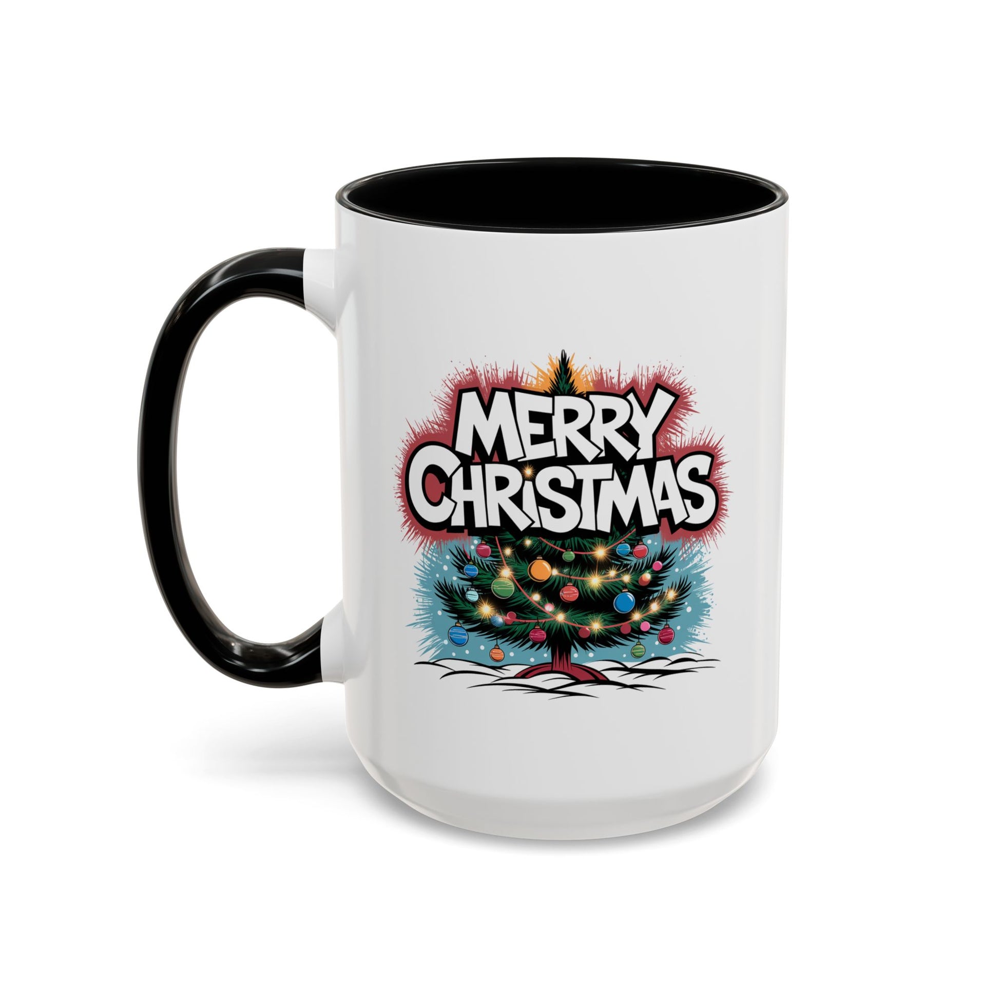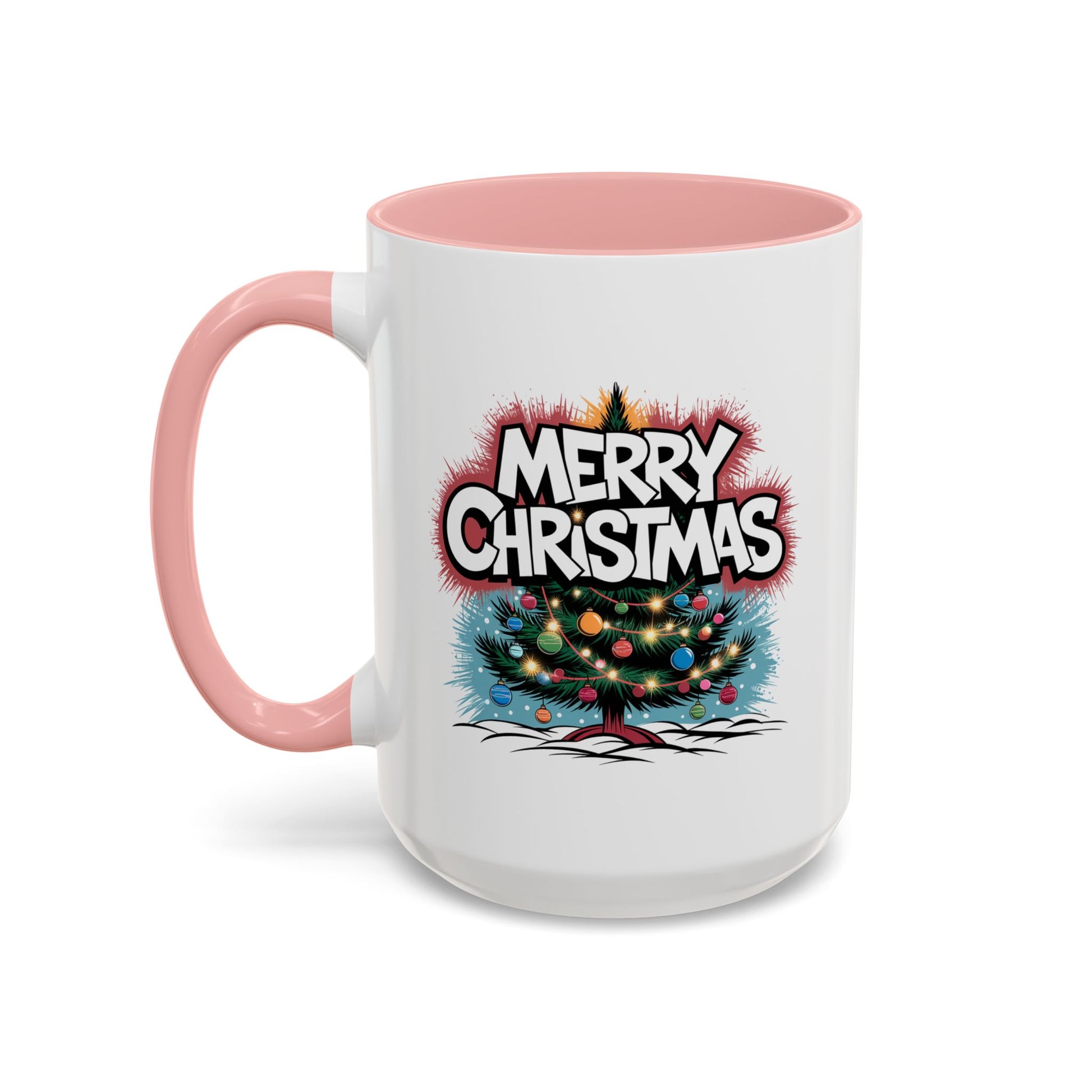 Christmas Mug - Merry Christmas White & Red Text Tree Lights