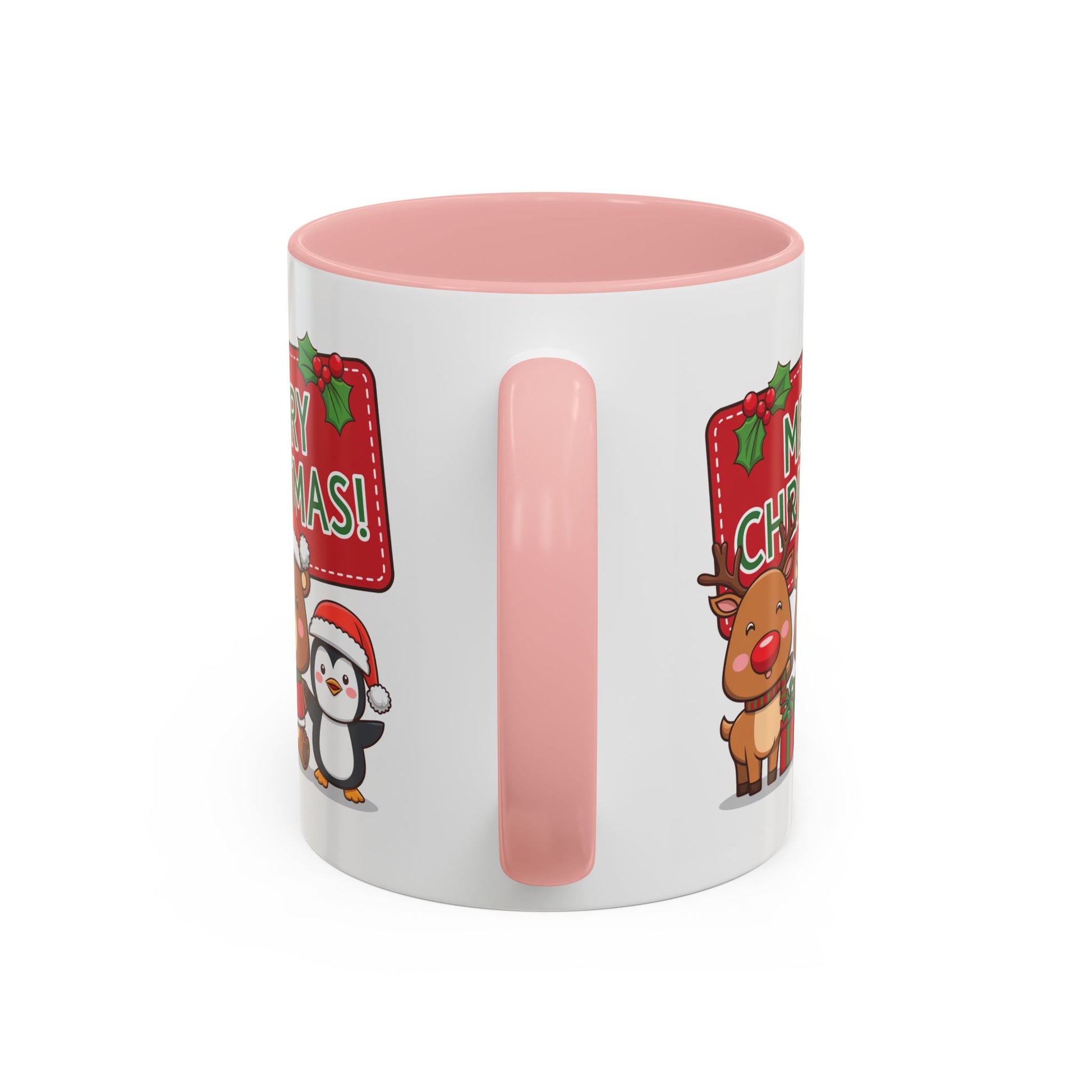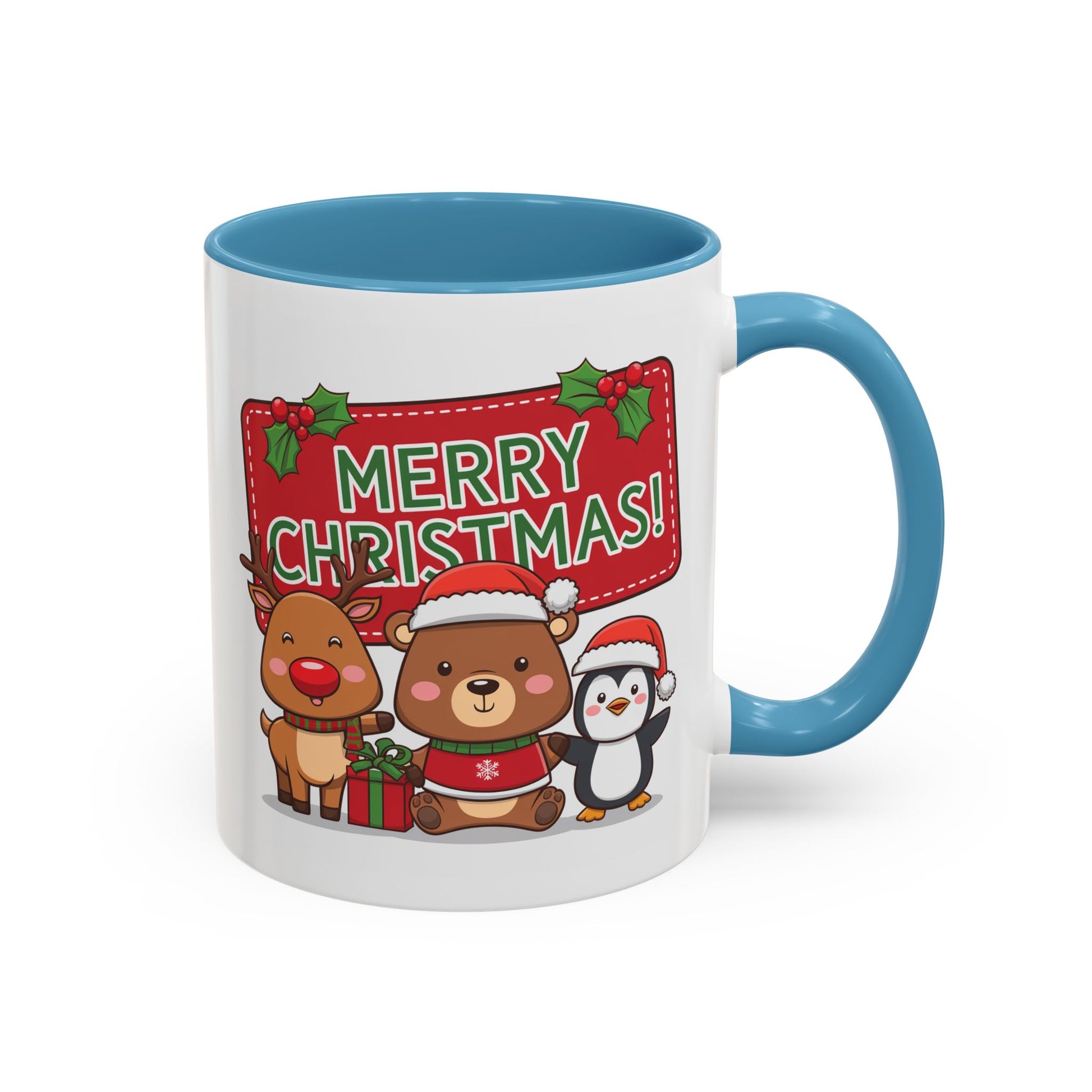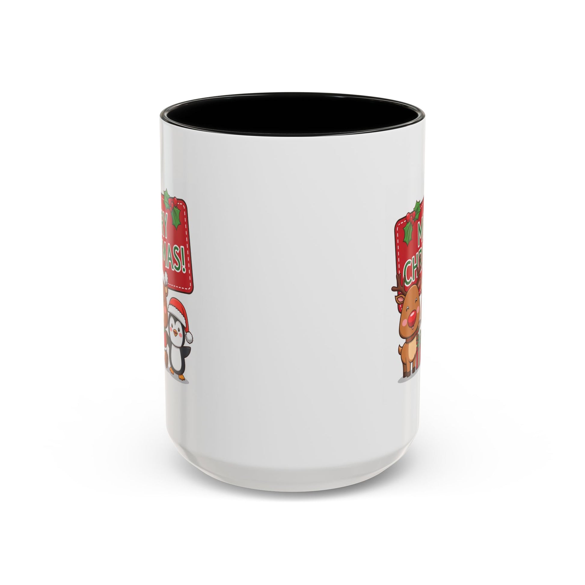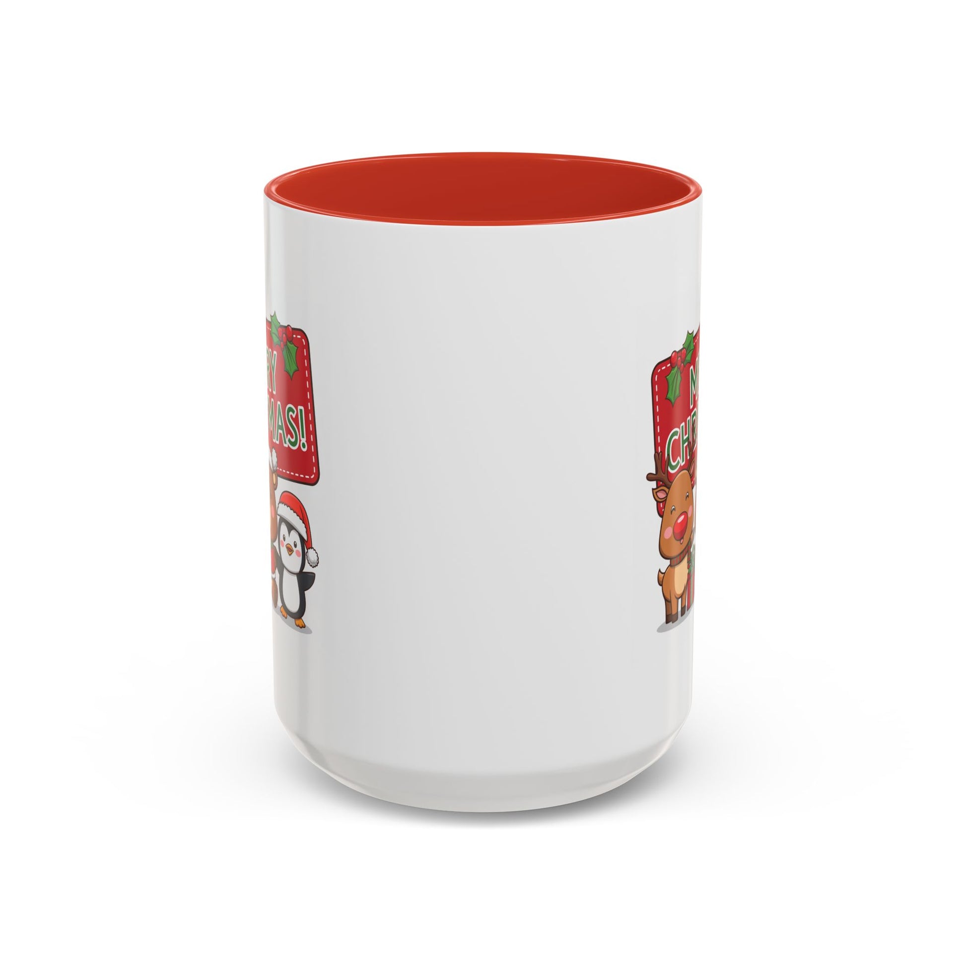 Christmas Mug - Green Text Red Banner Reindeer Bear Penguin