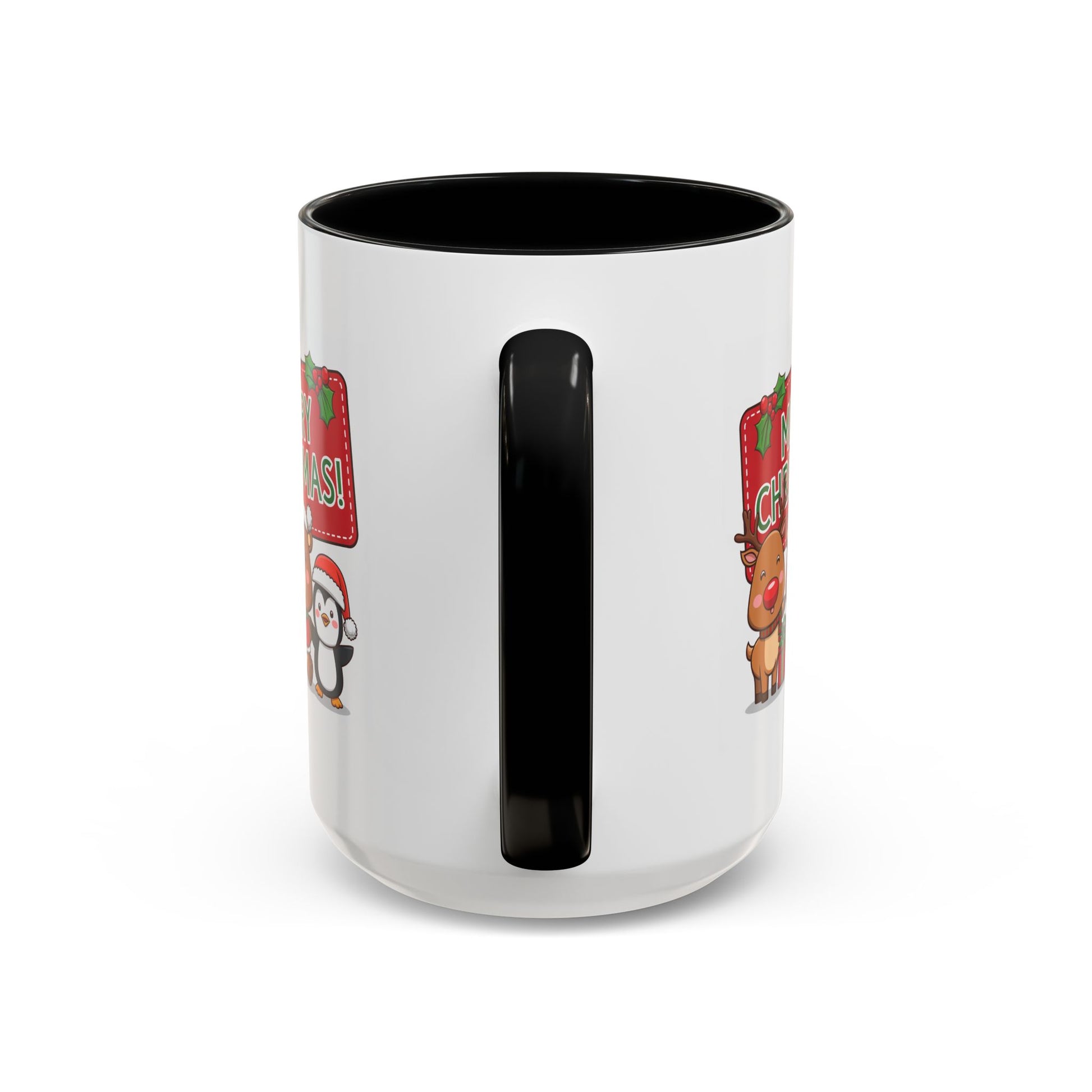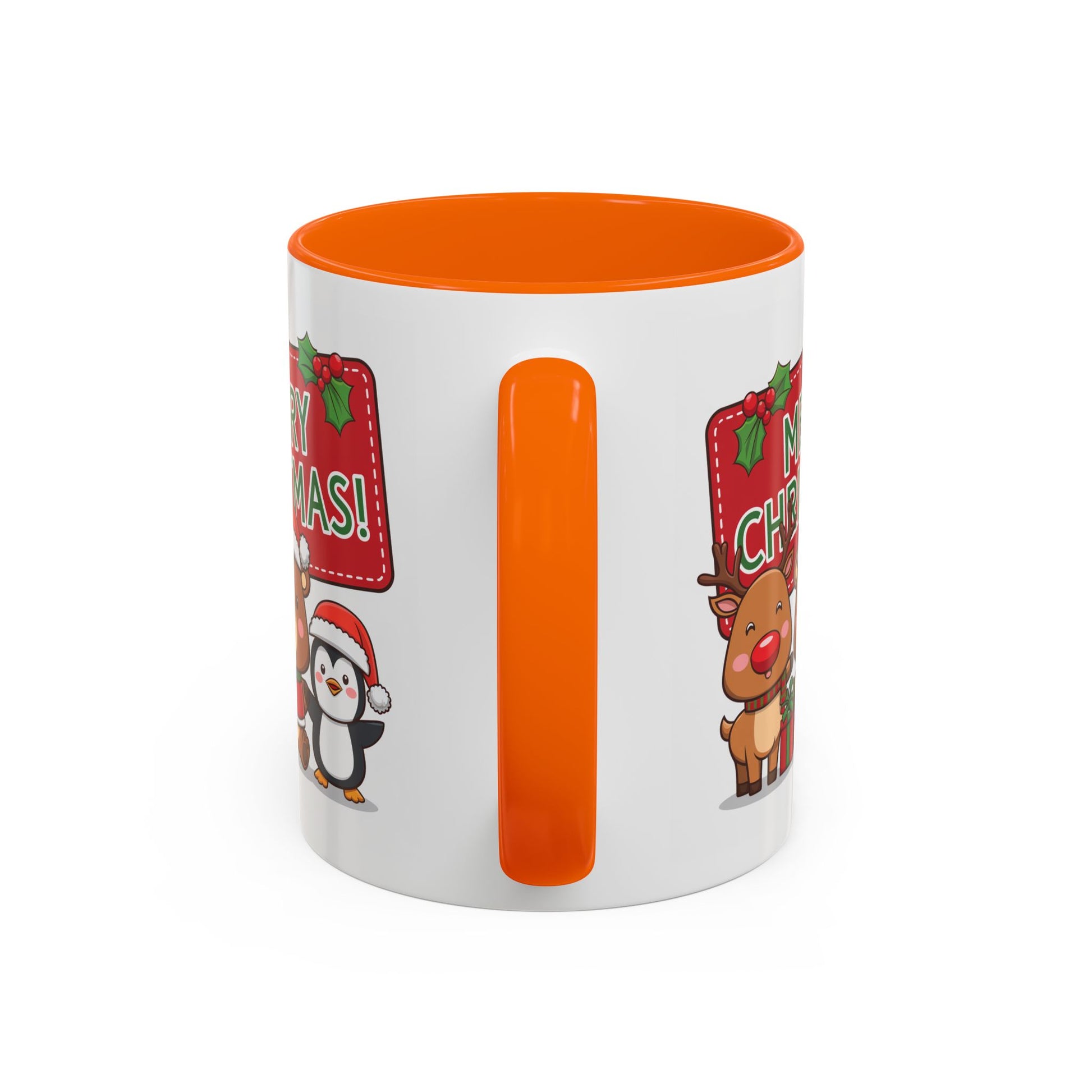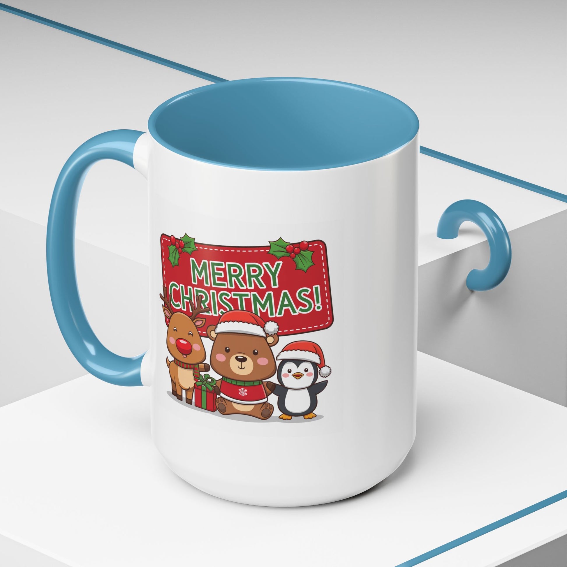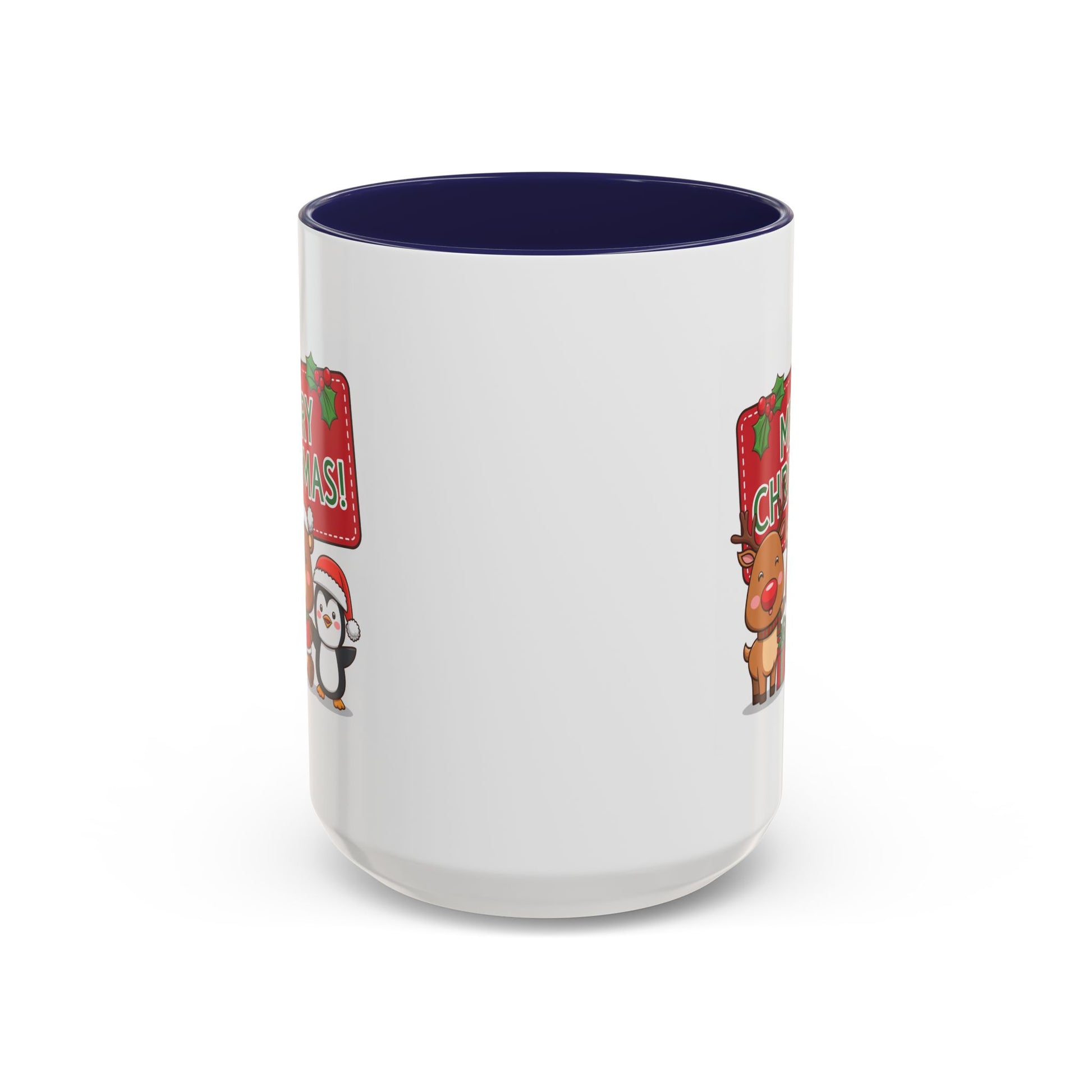 Christmas Mug - Green Text Red Banner Reindeer Bear Penguin
