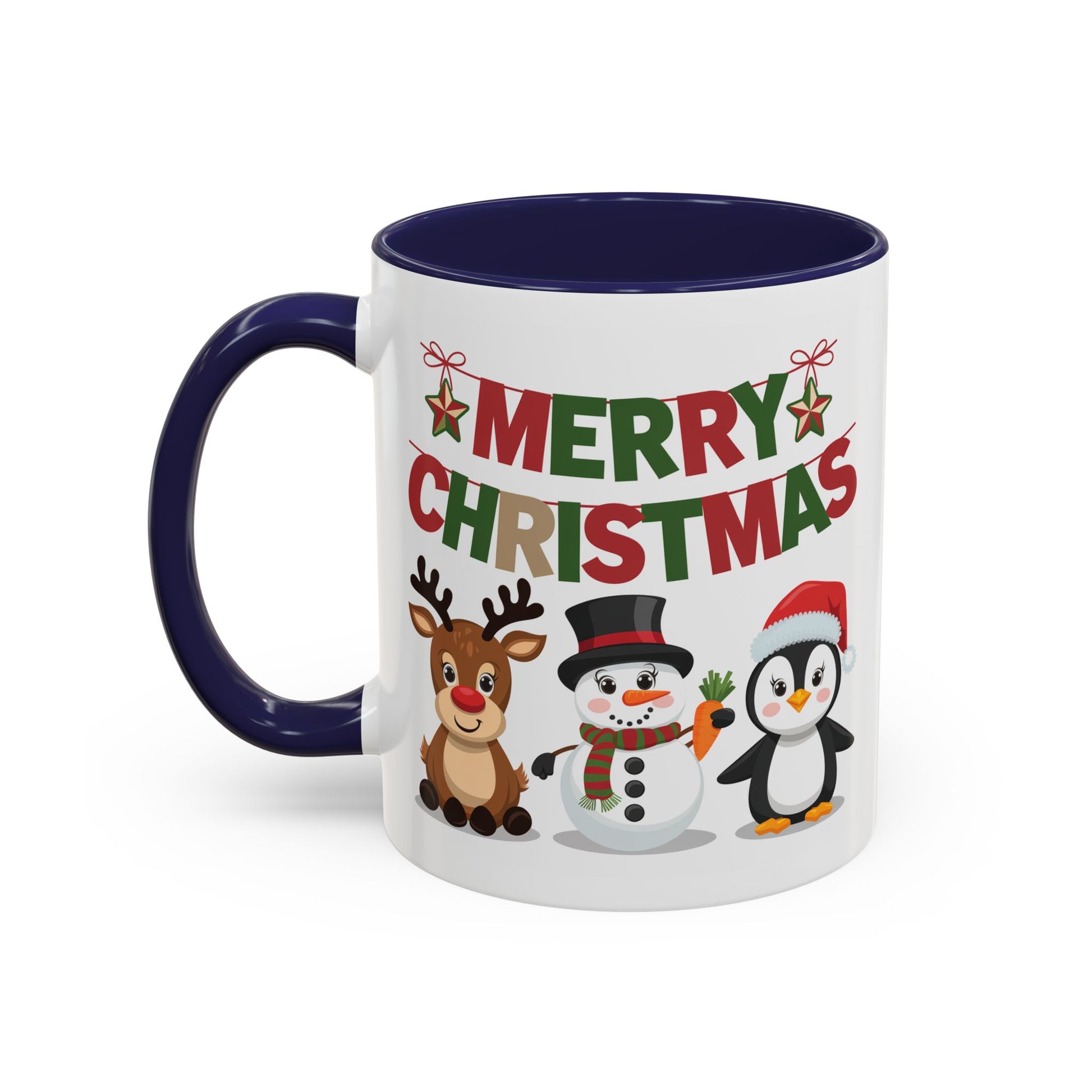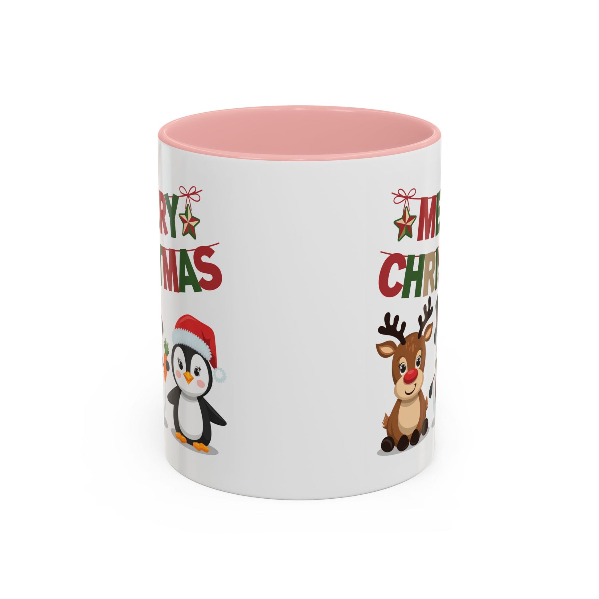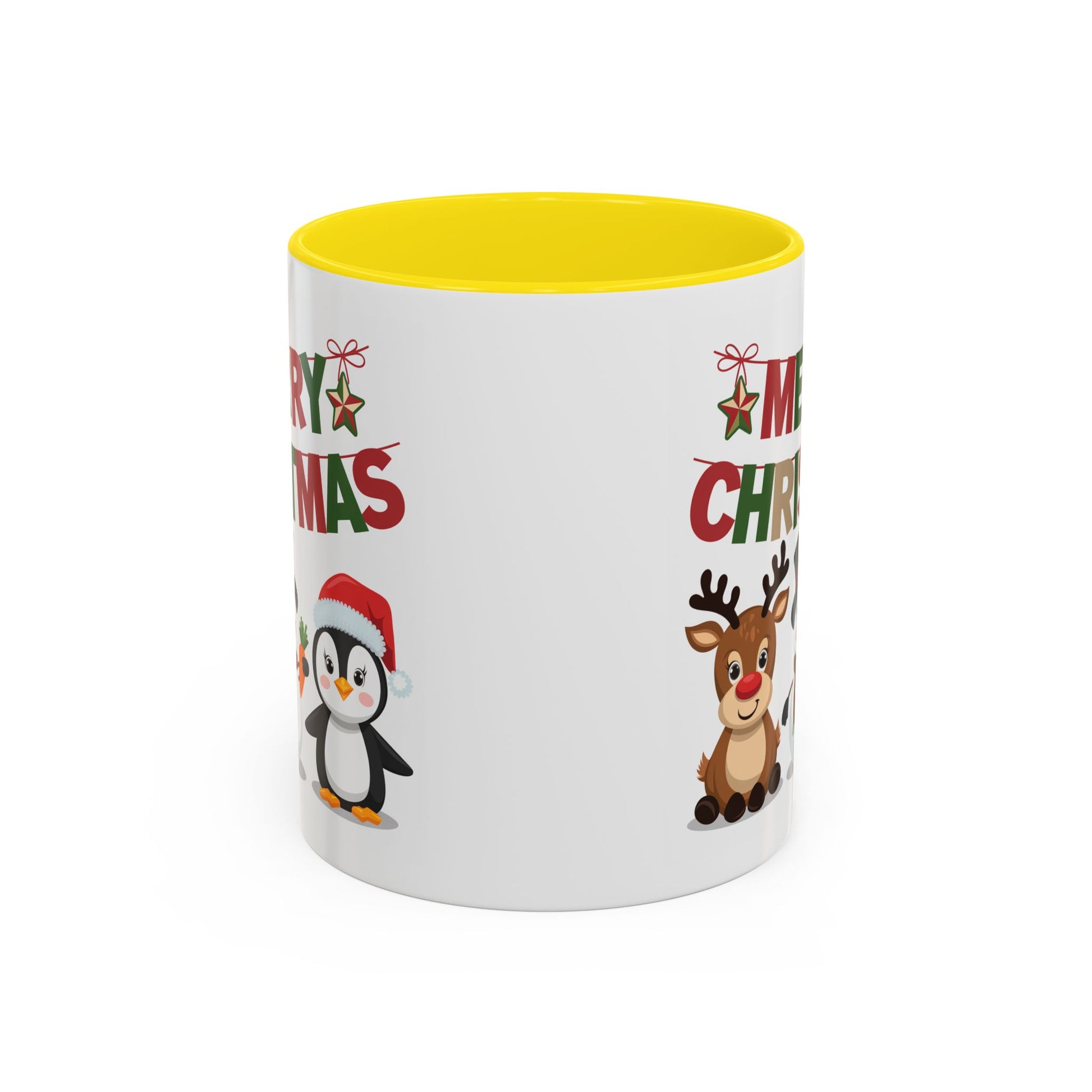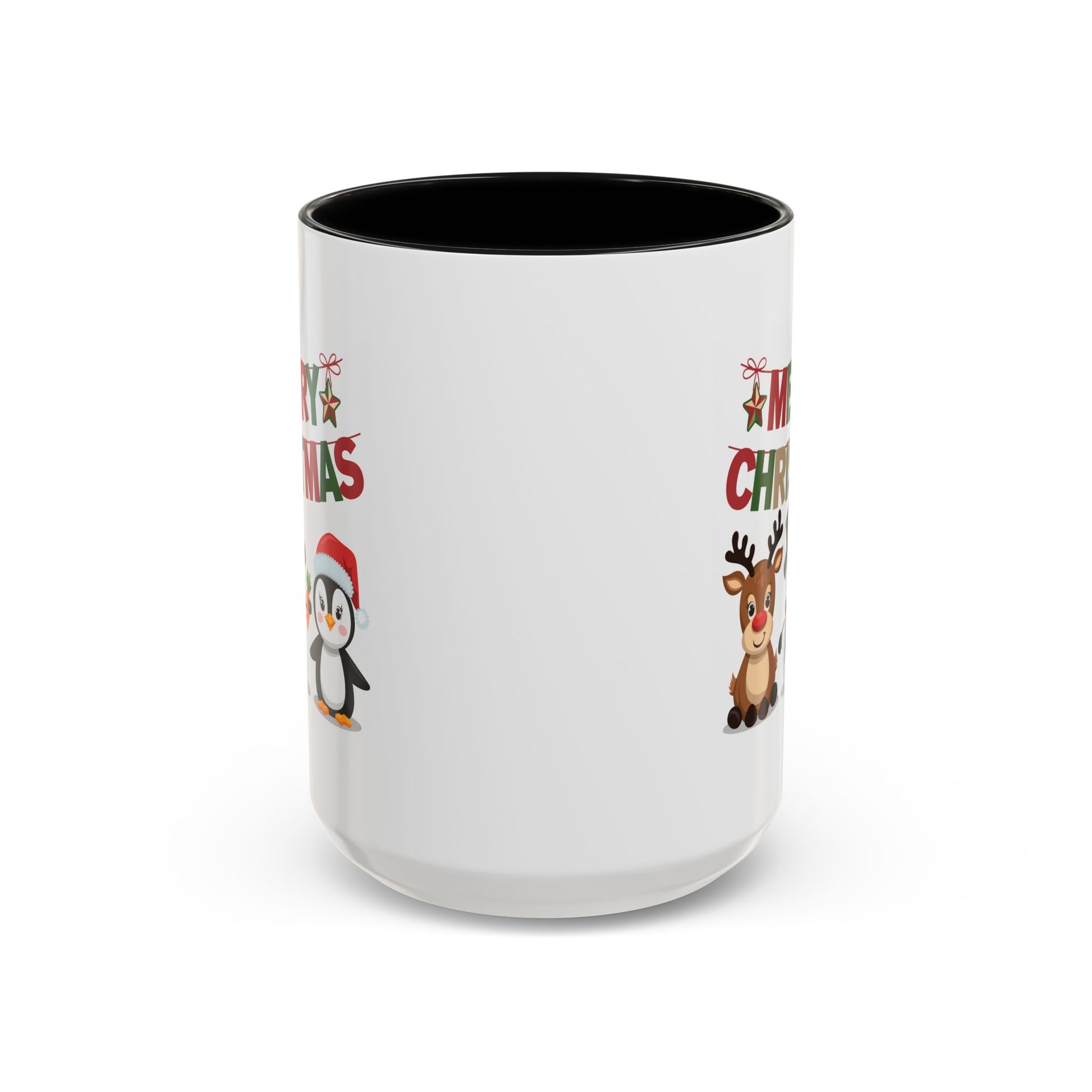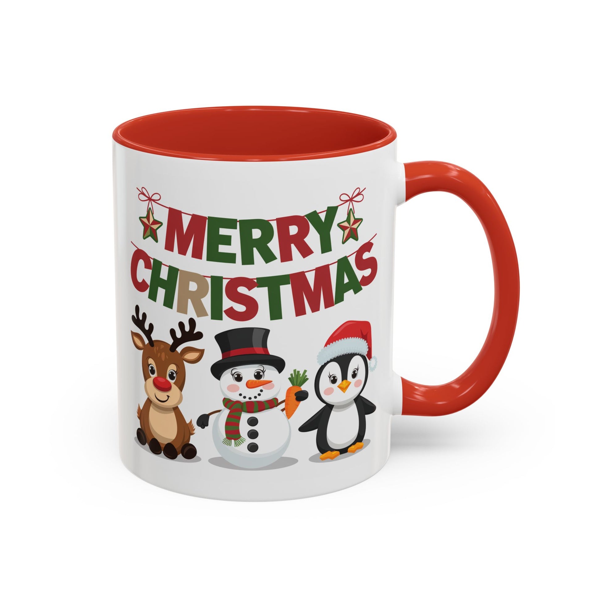Christmas Mug - Red Green & Gold Text Reindeer Snowman Penguin