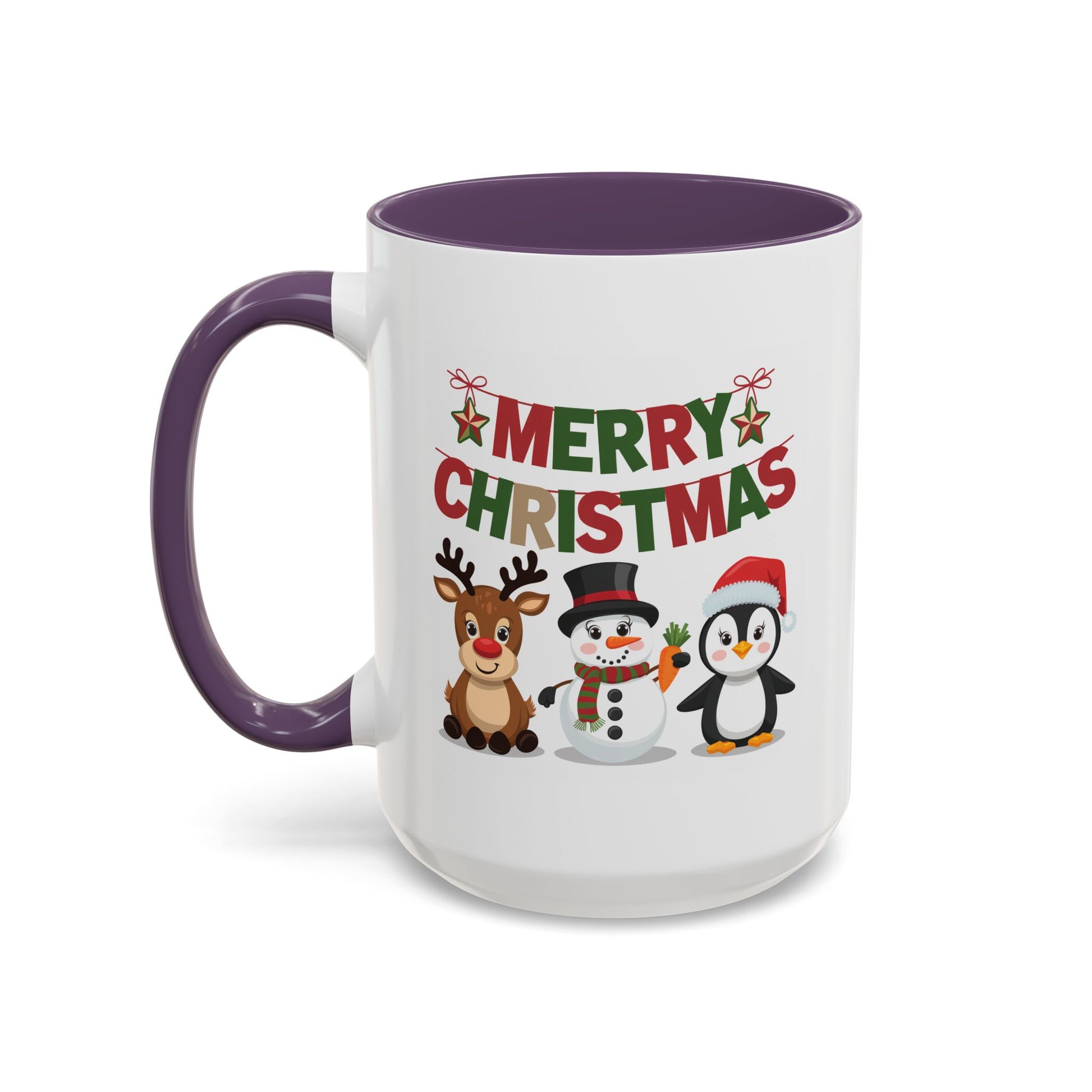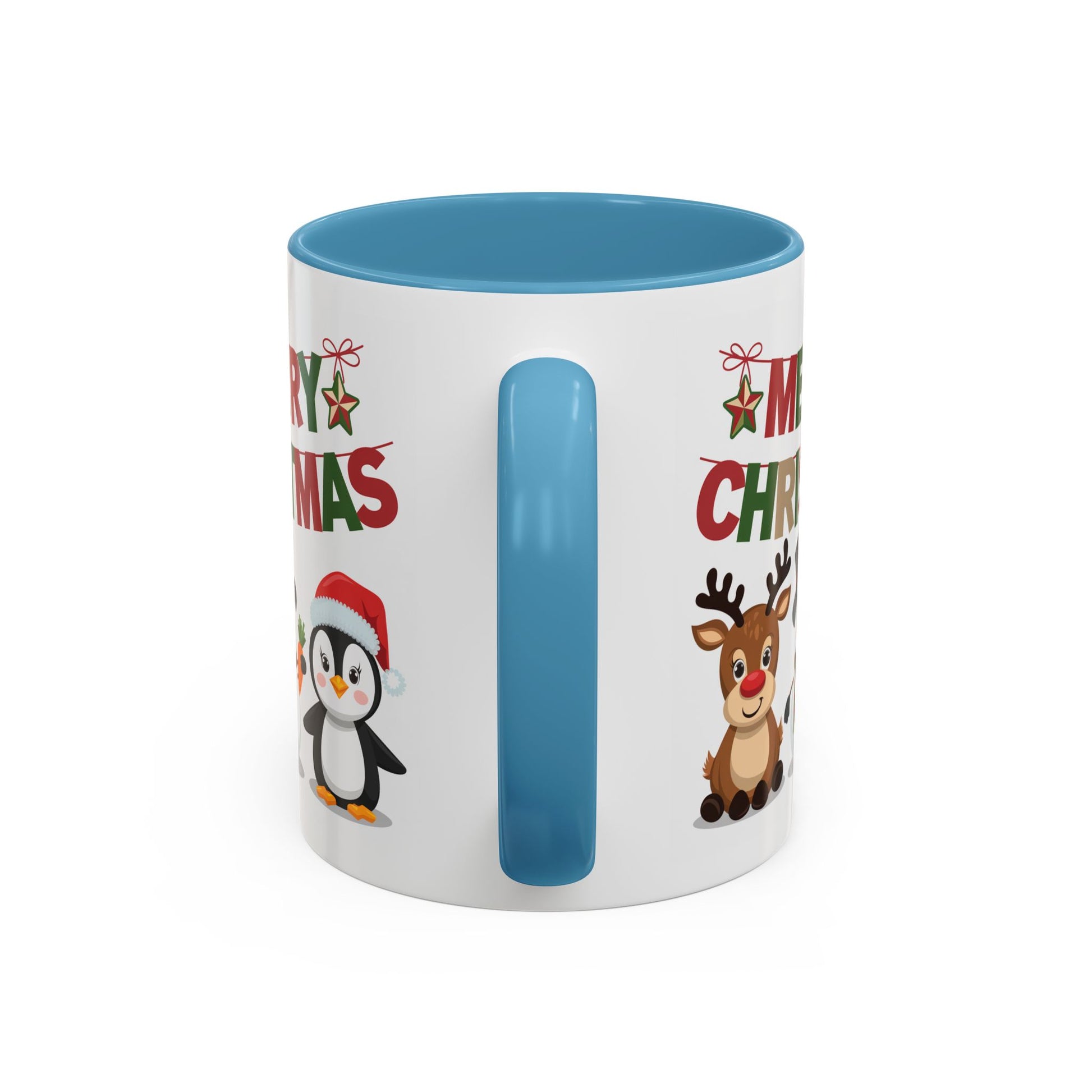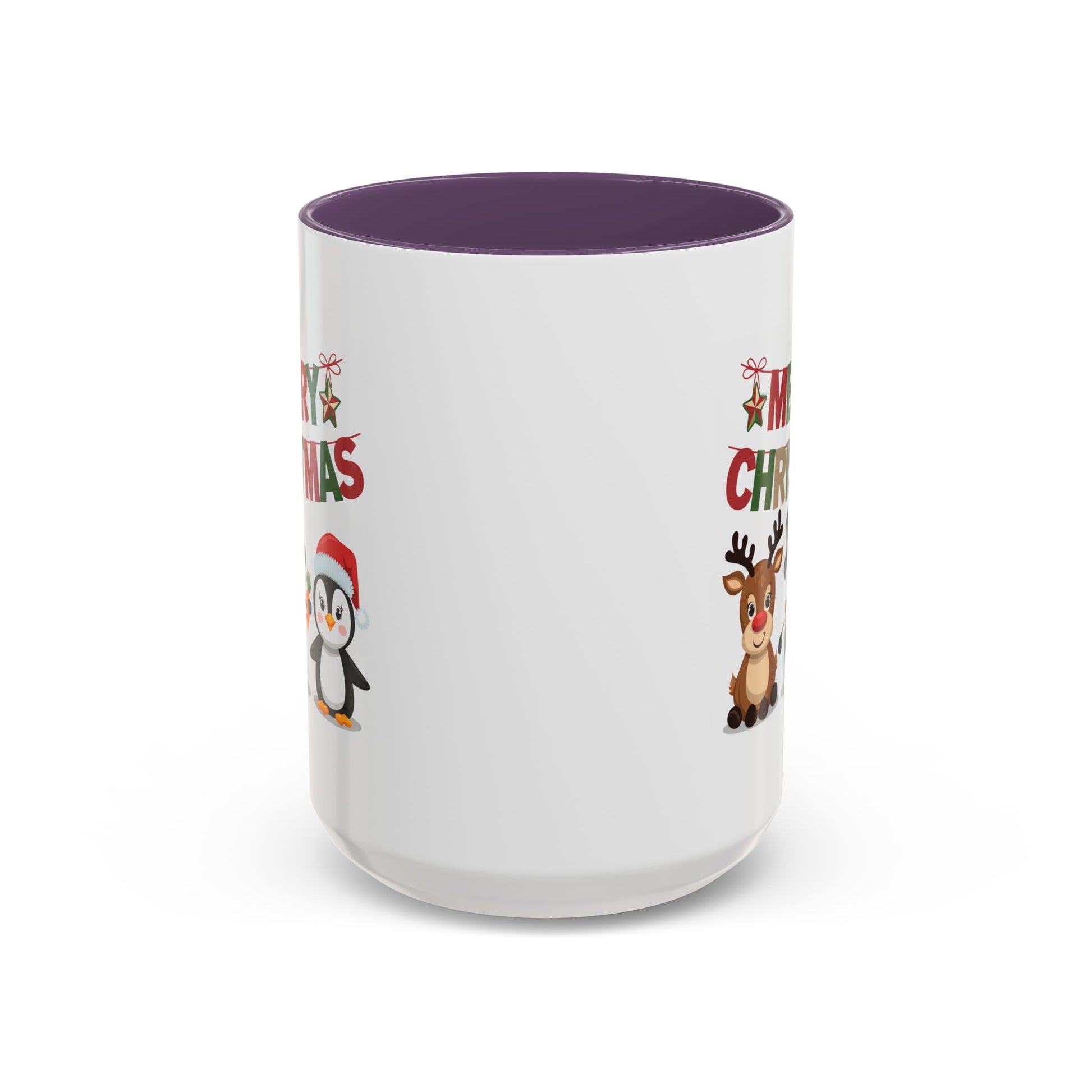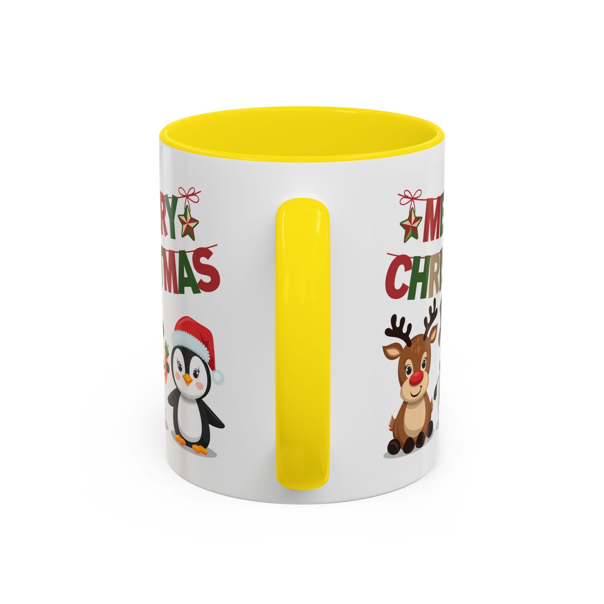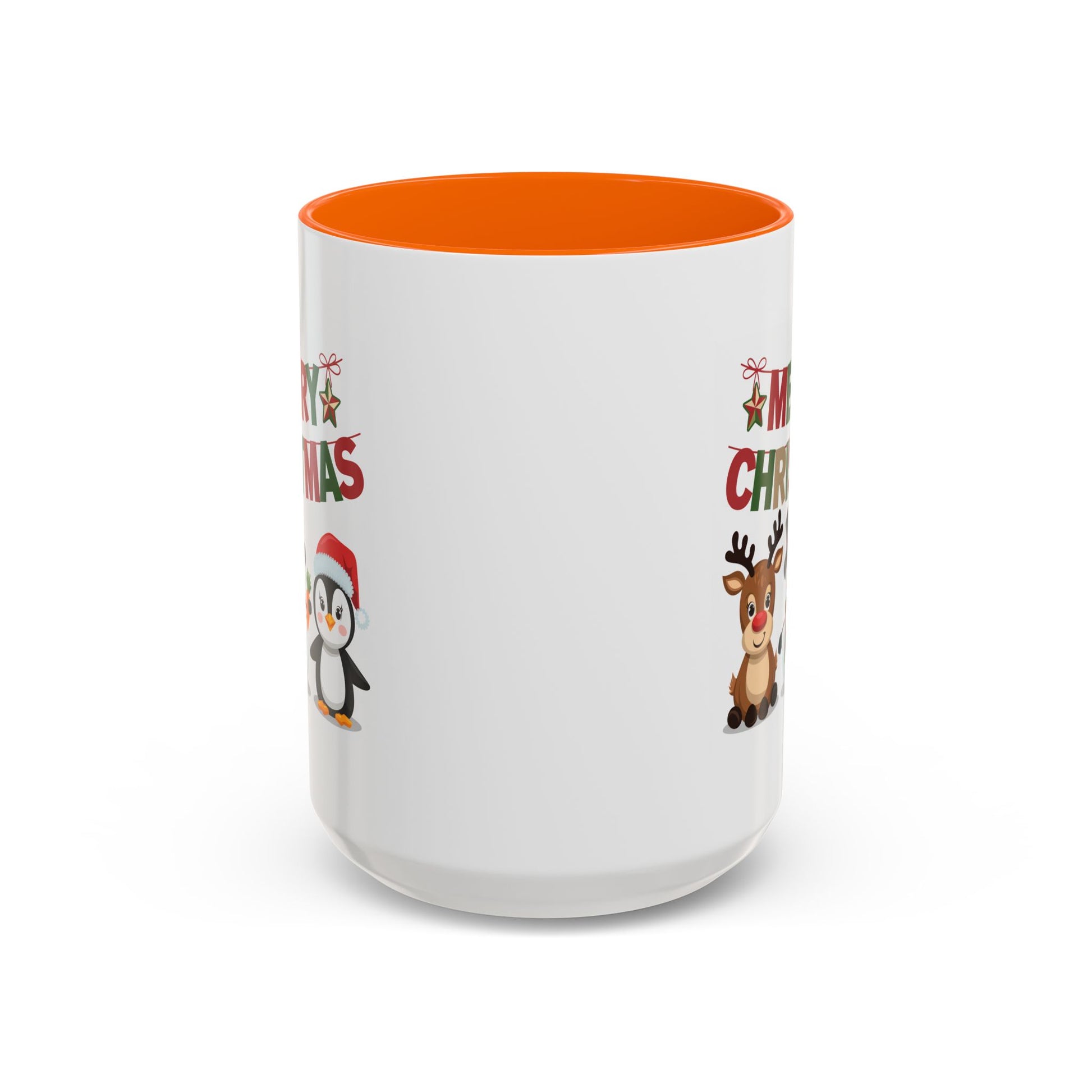 Christmas Mug - Red Green & Gold Text Reindeer Snowman Penguin