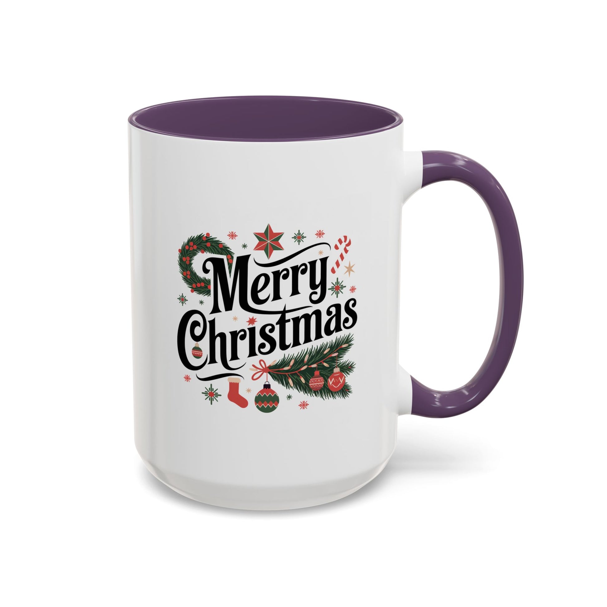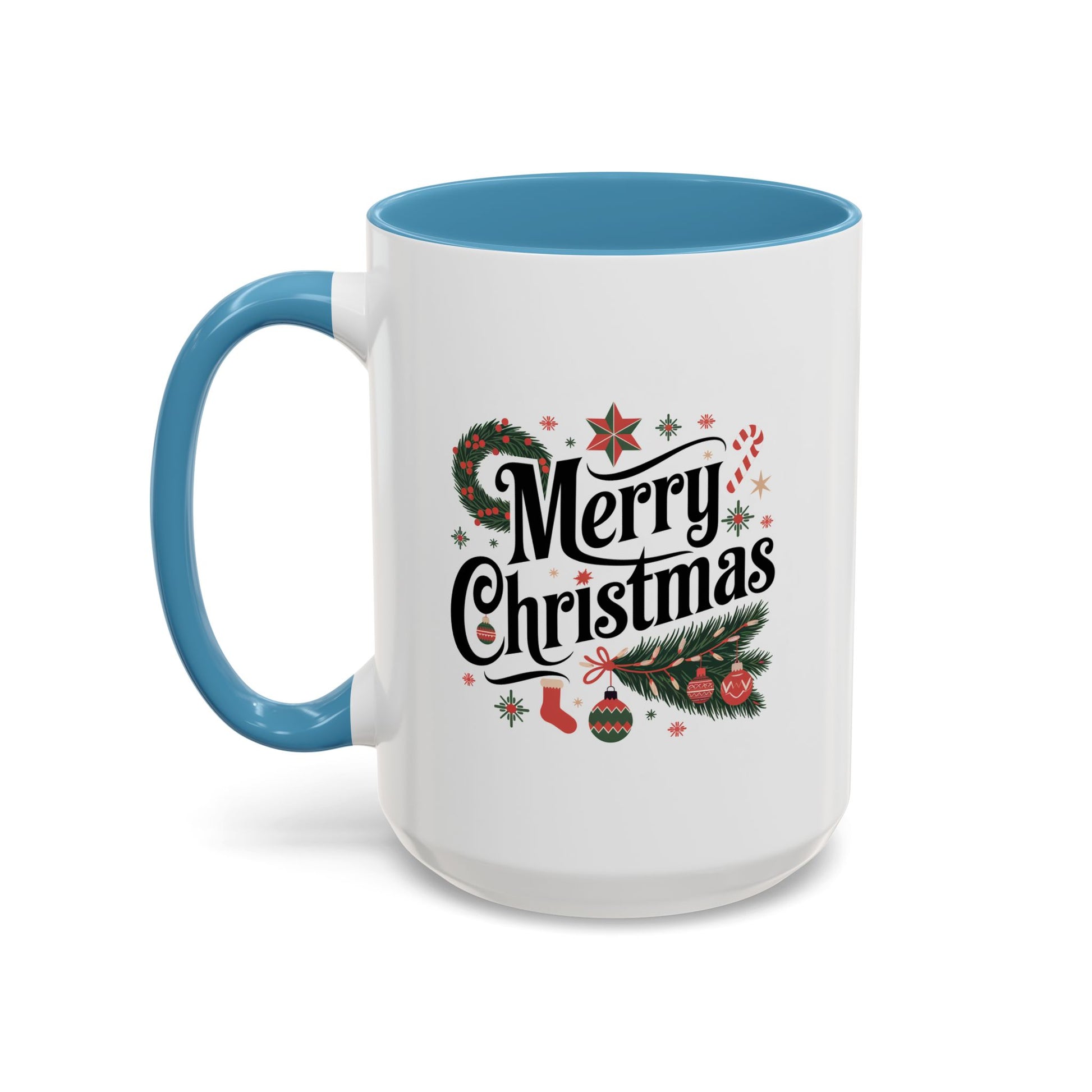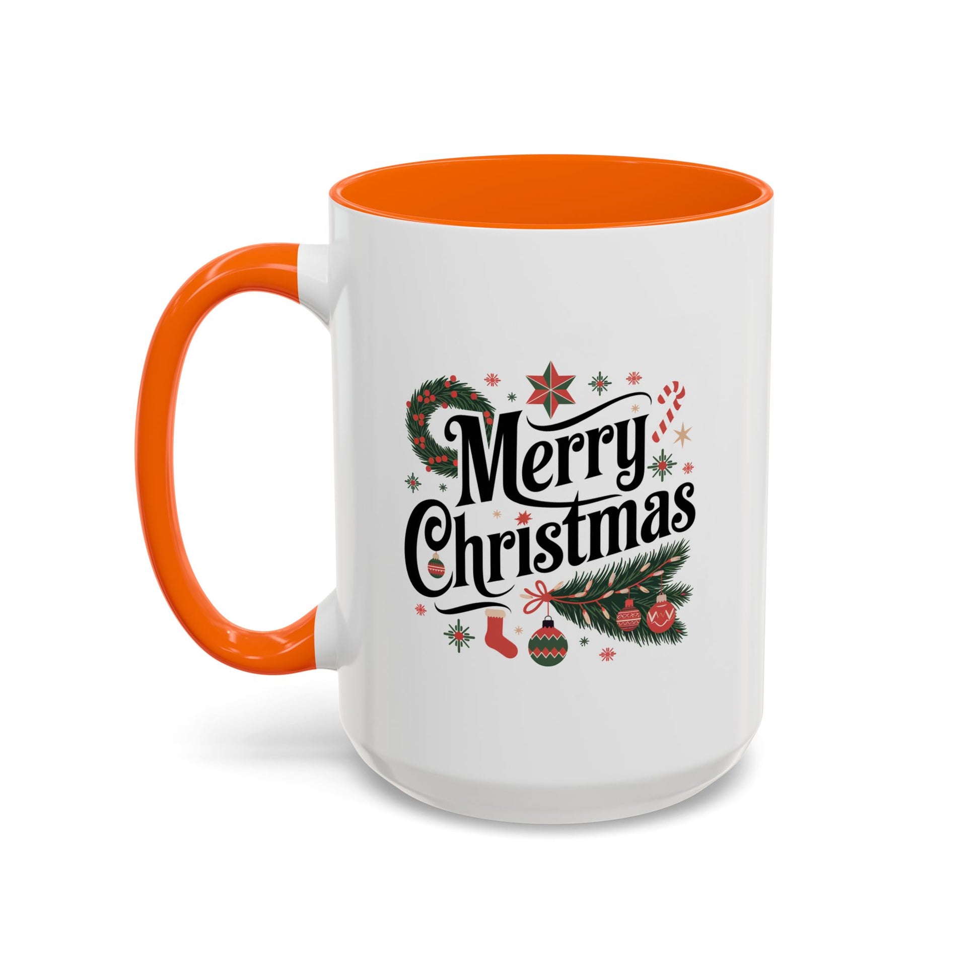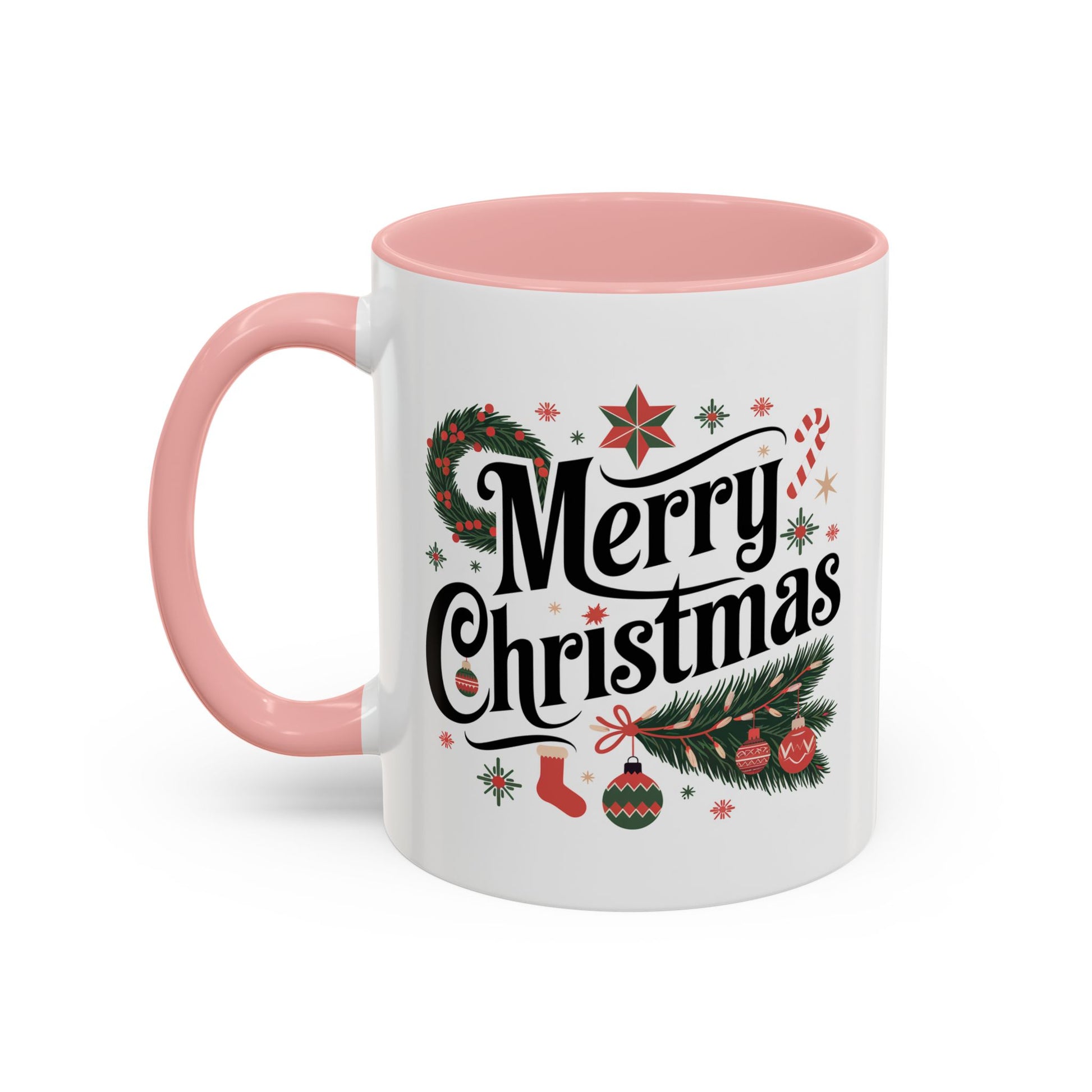 Christmas Mug - Merry Christmas Black Text Star Stocking Ornament Candy Cane
