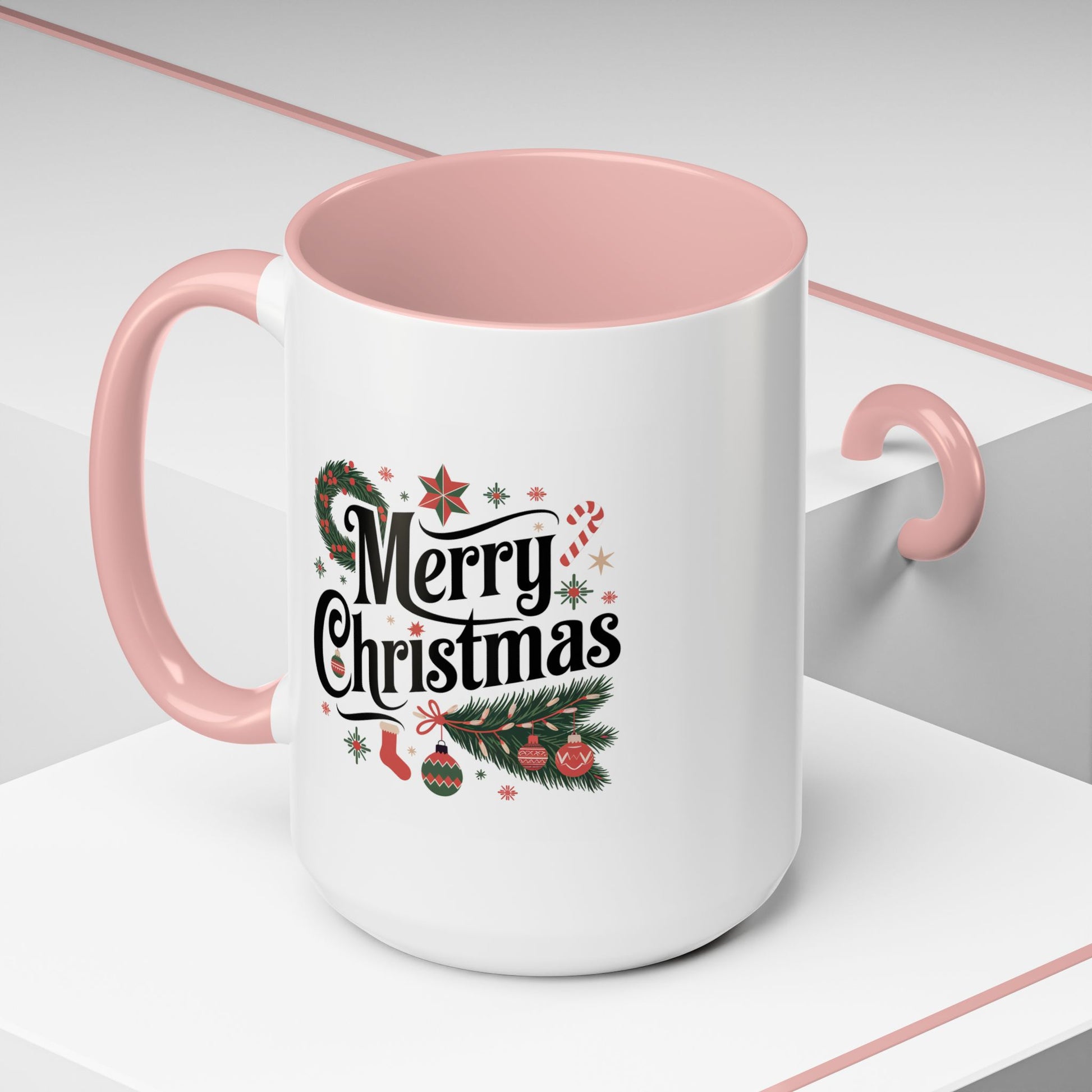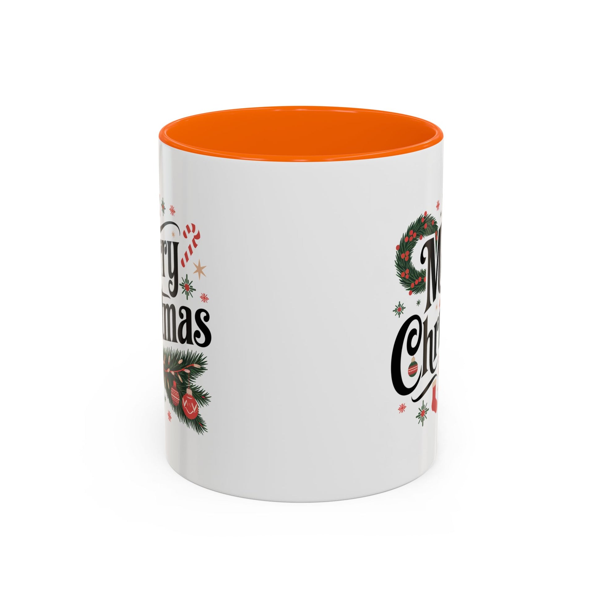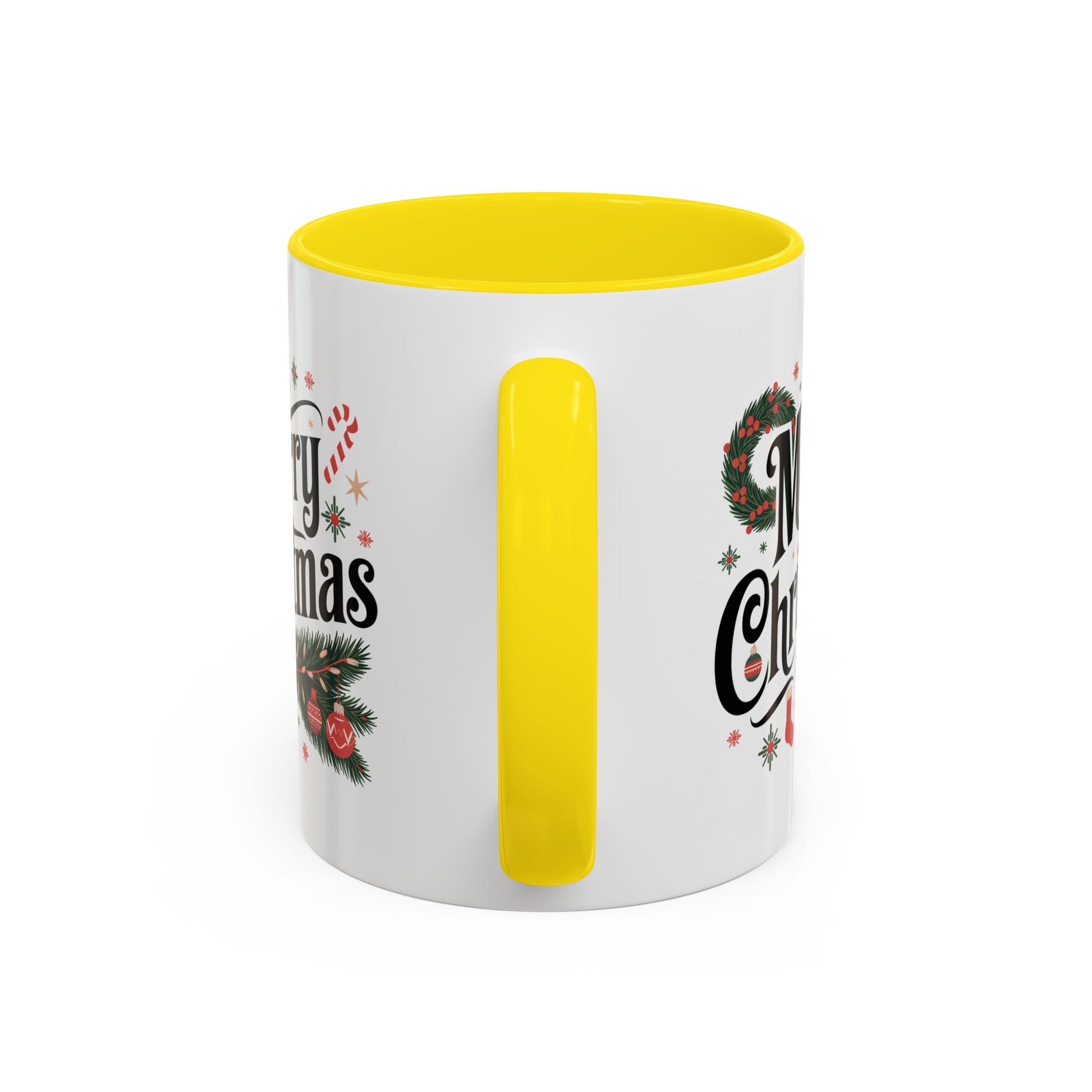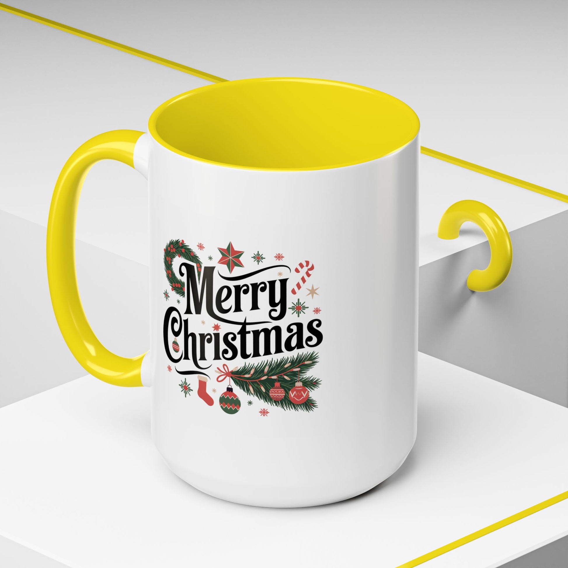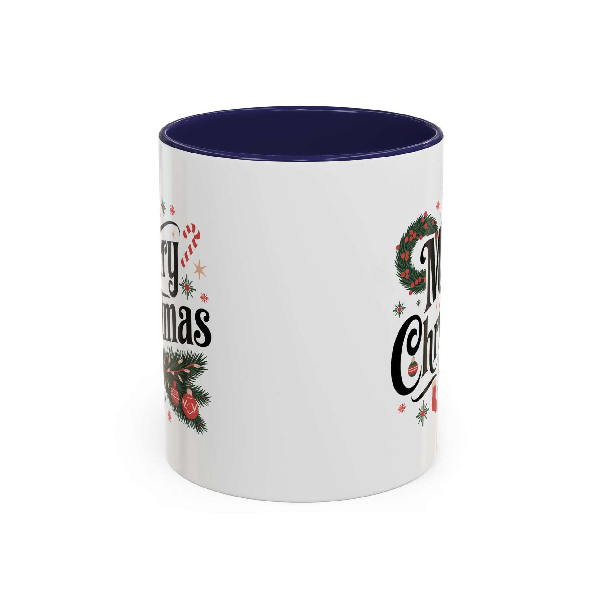 Christmas Mug - Merry Christmas Black Text Star Stocking Ornament Candy Cane