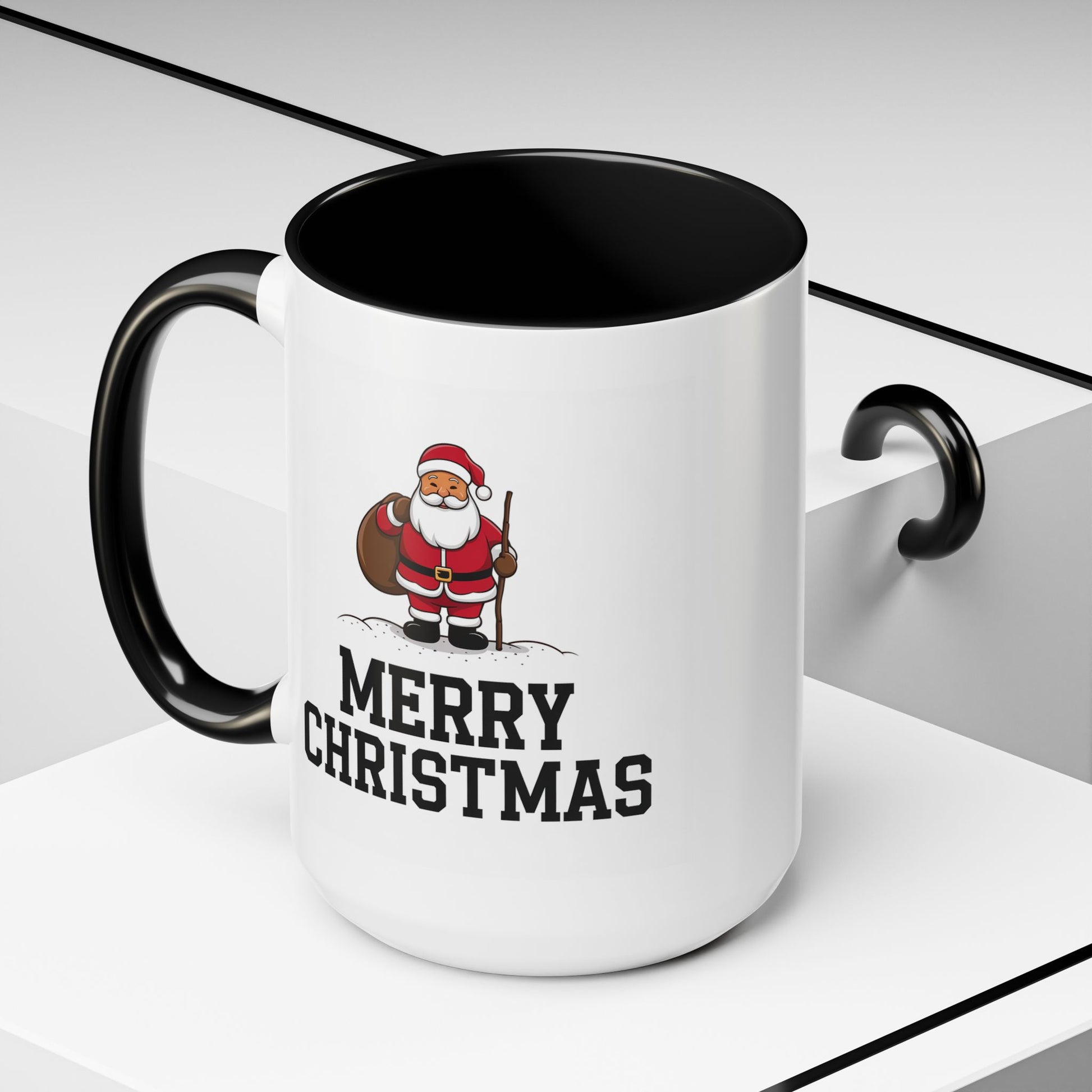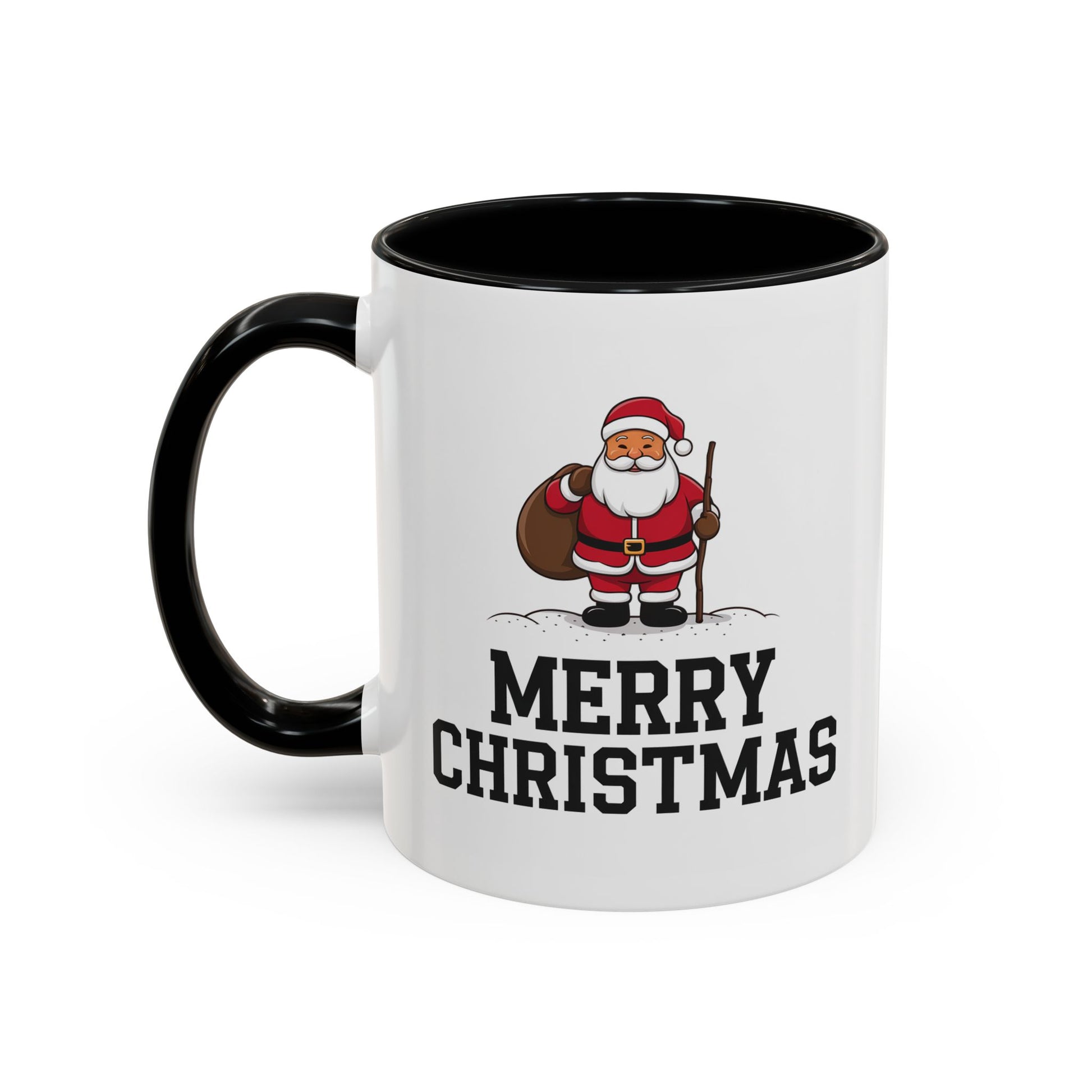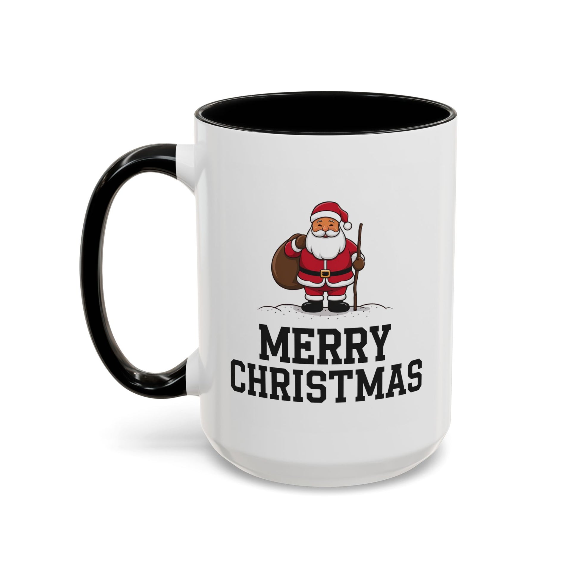 Christmas Mug - Merry Christmas Black Text Santa Walking