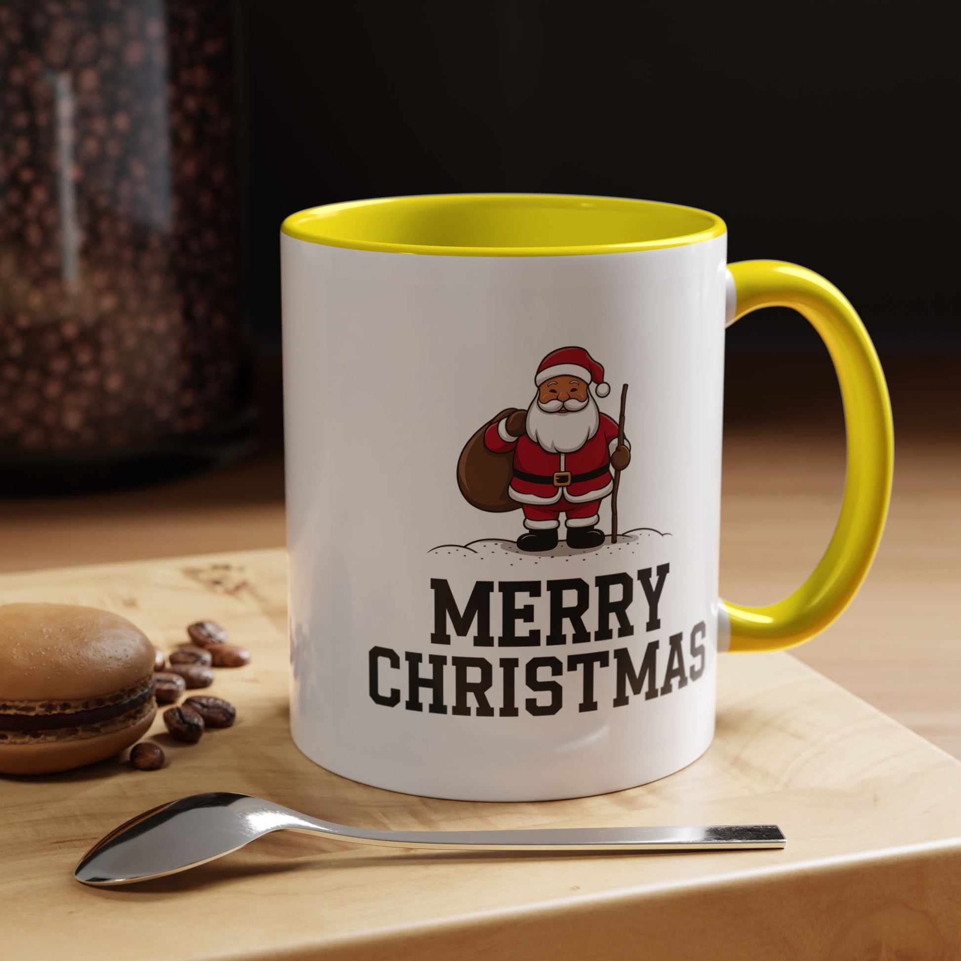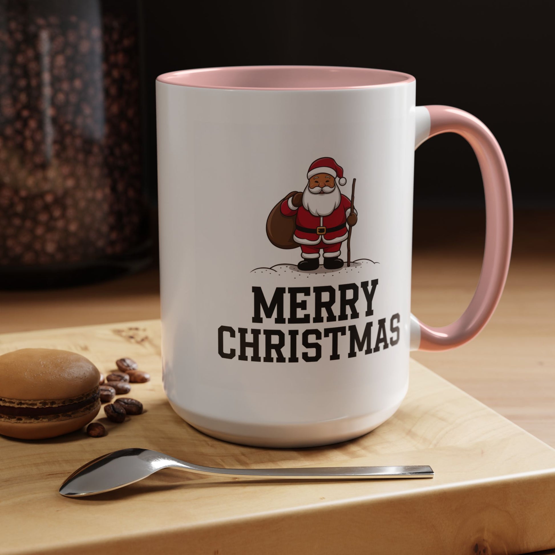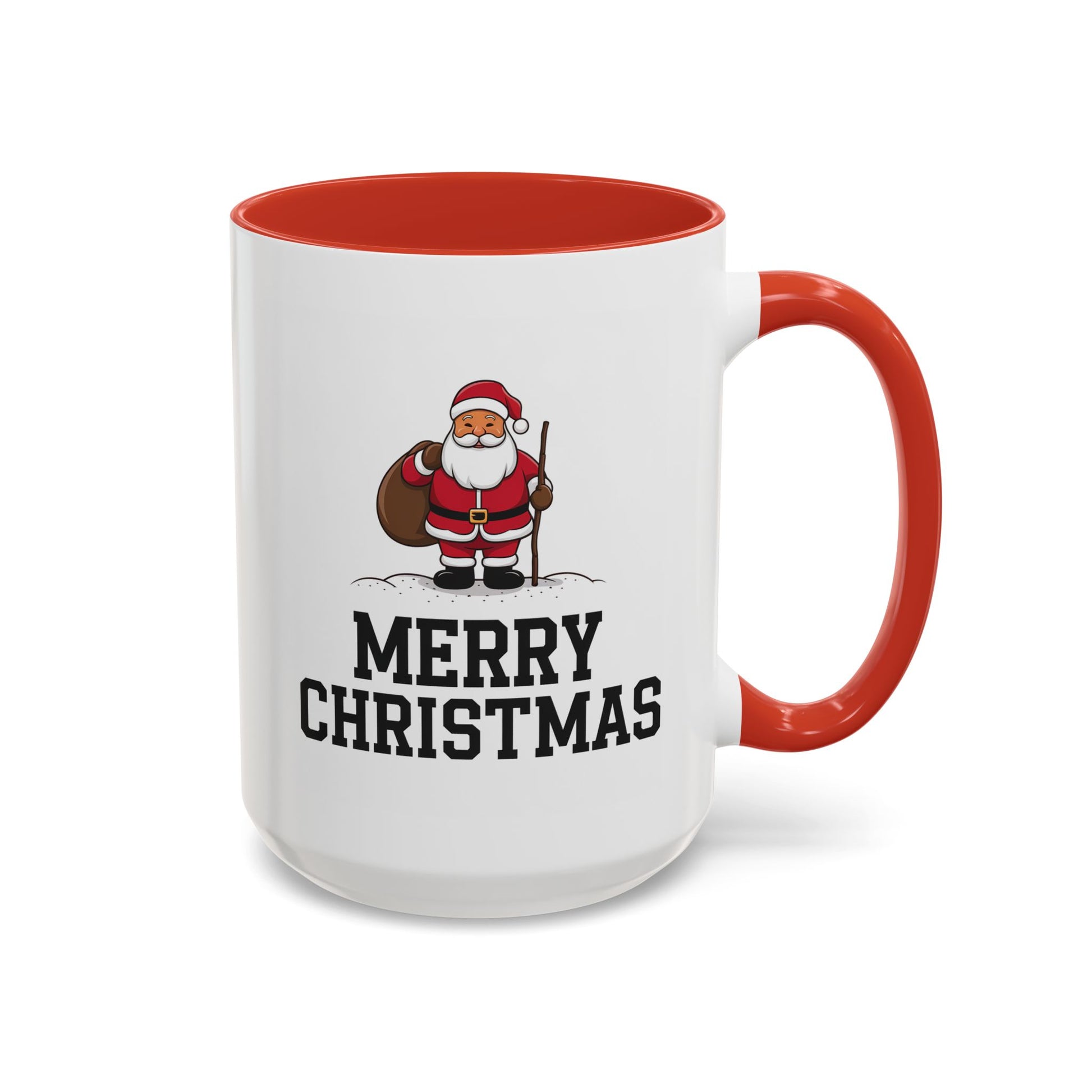 Christmas Mug - Merry Christmas Black Text Santa Walking