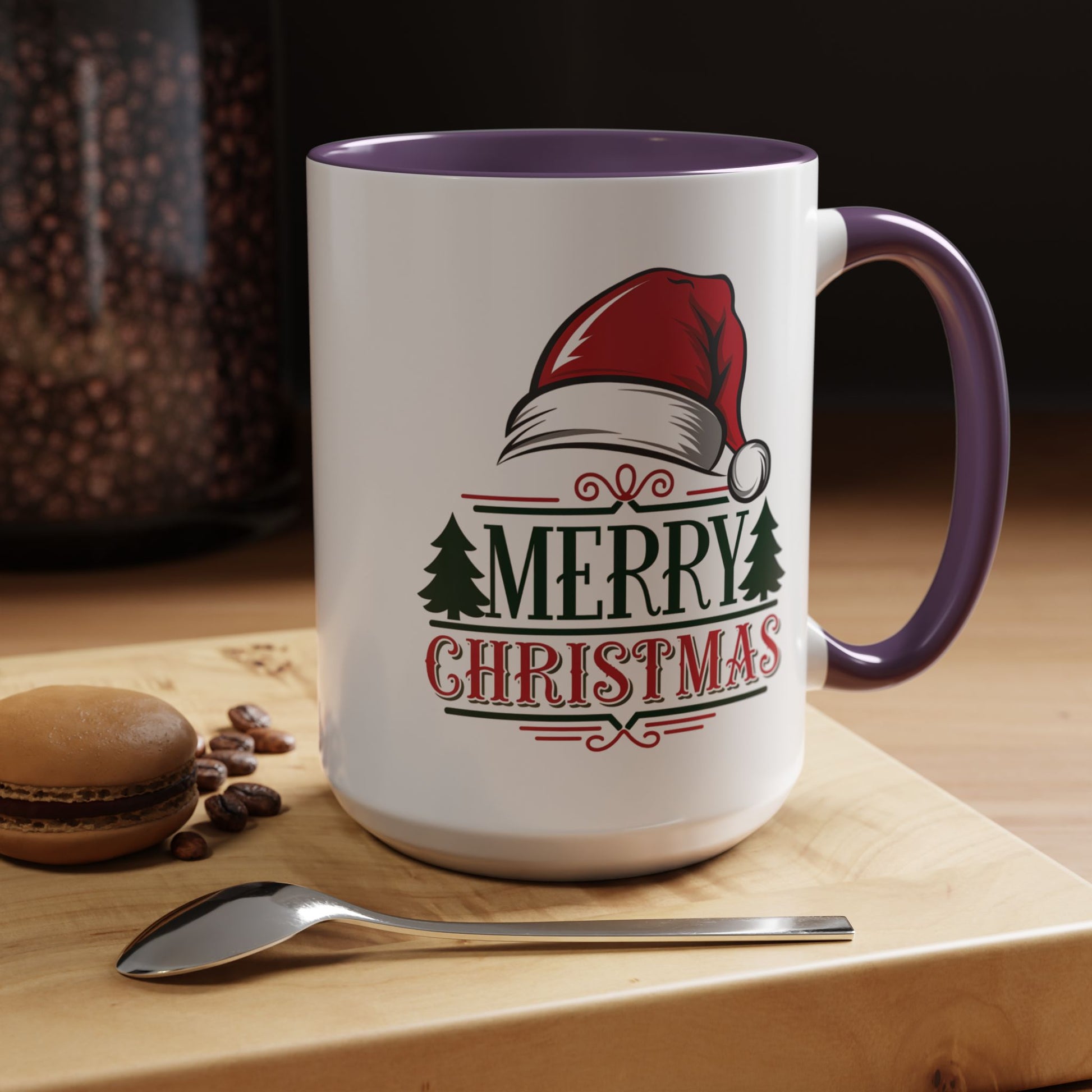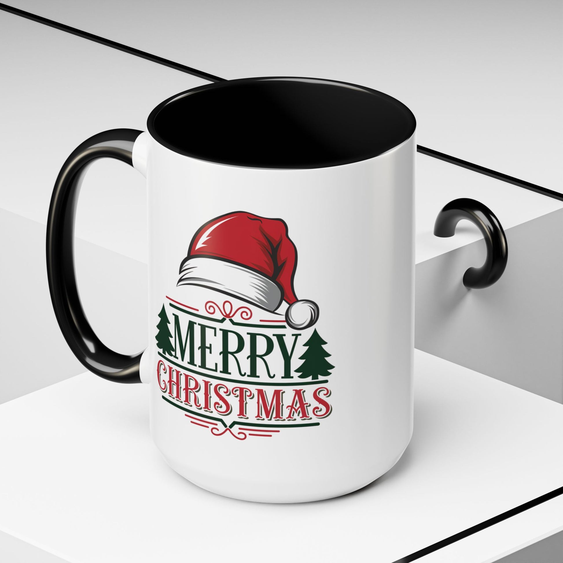 Christmas Mug - Merry Christmas Green & Red Text Red Hat