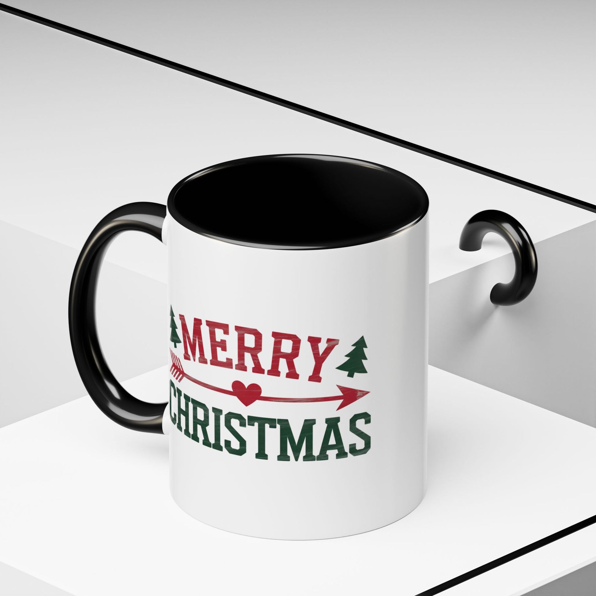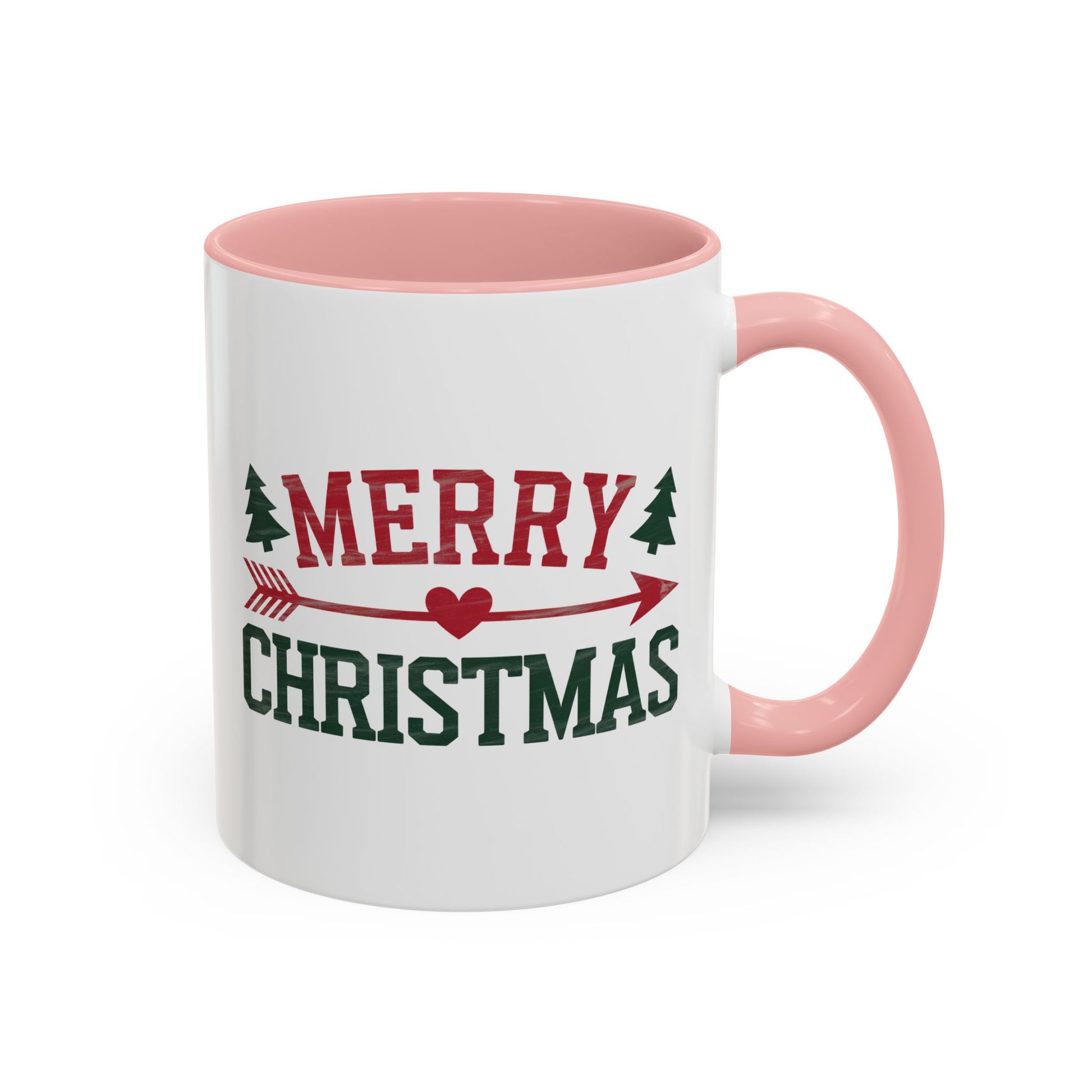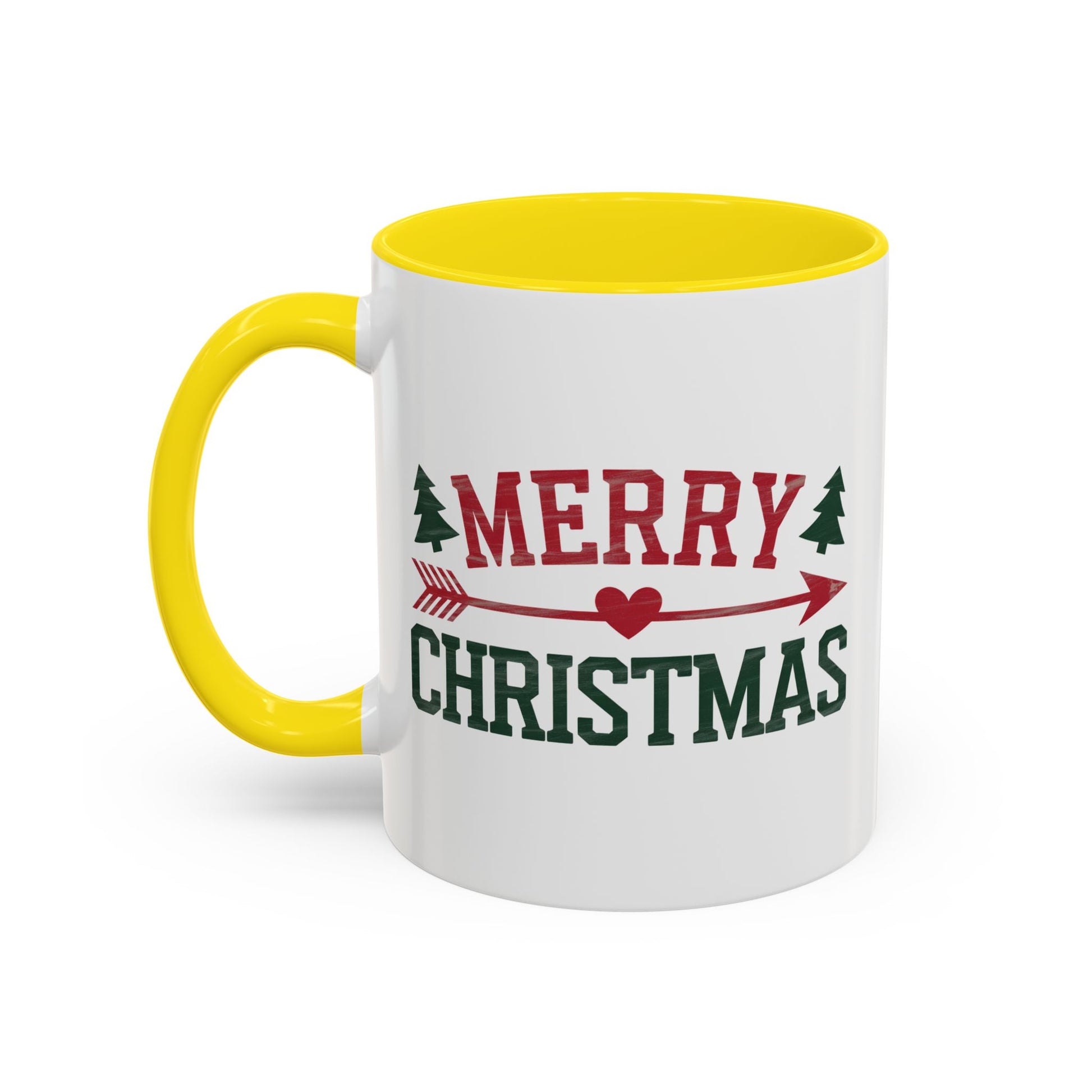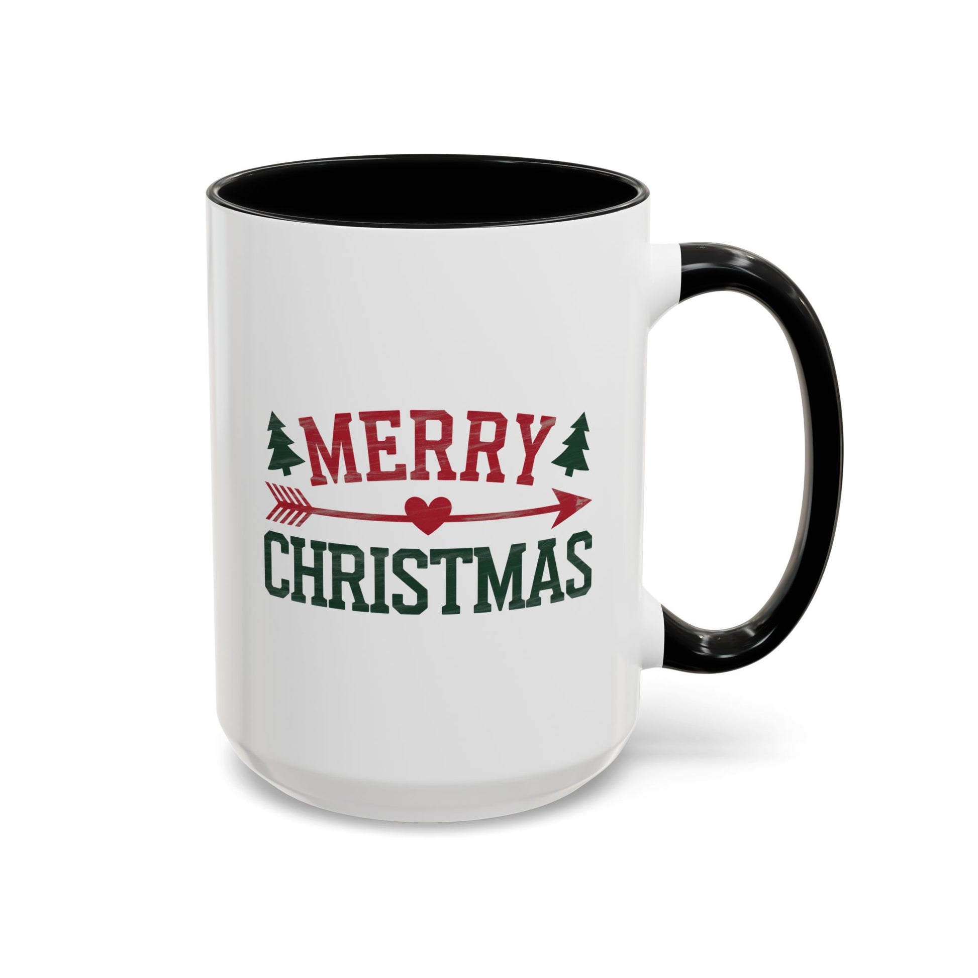 Christmas Mug - Merry Christmas Red & Green Text Heart Arrow Trees