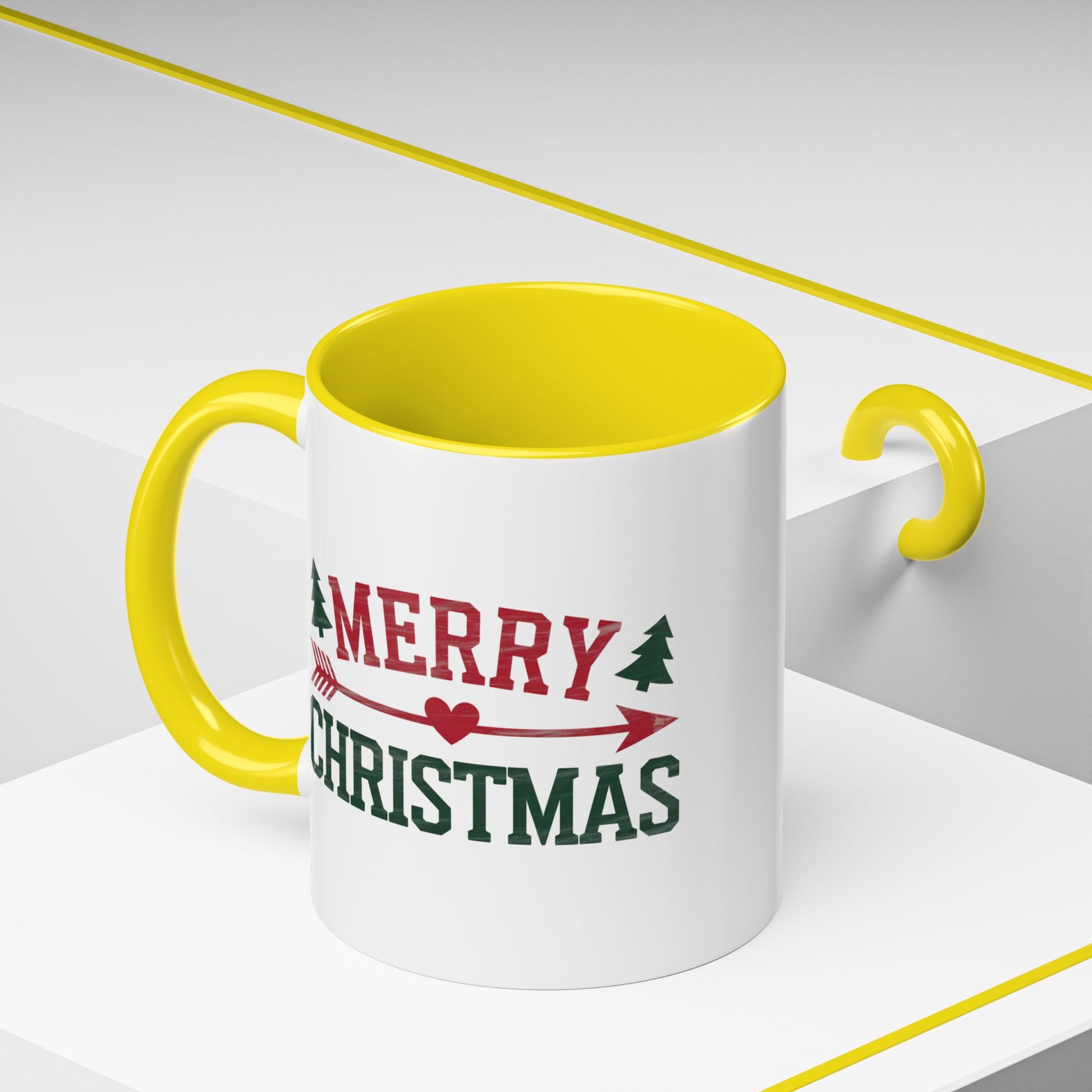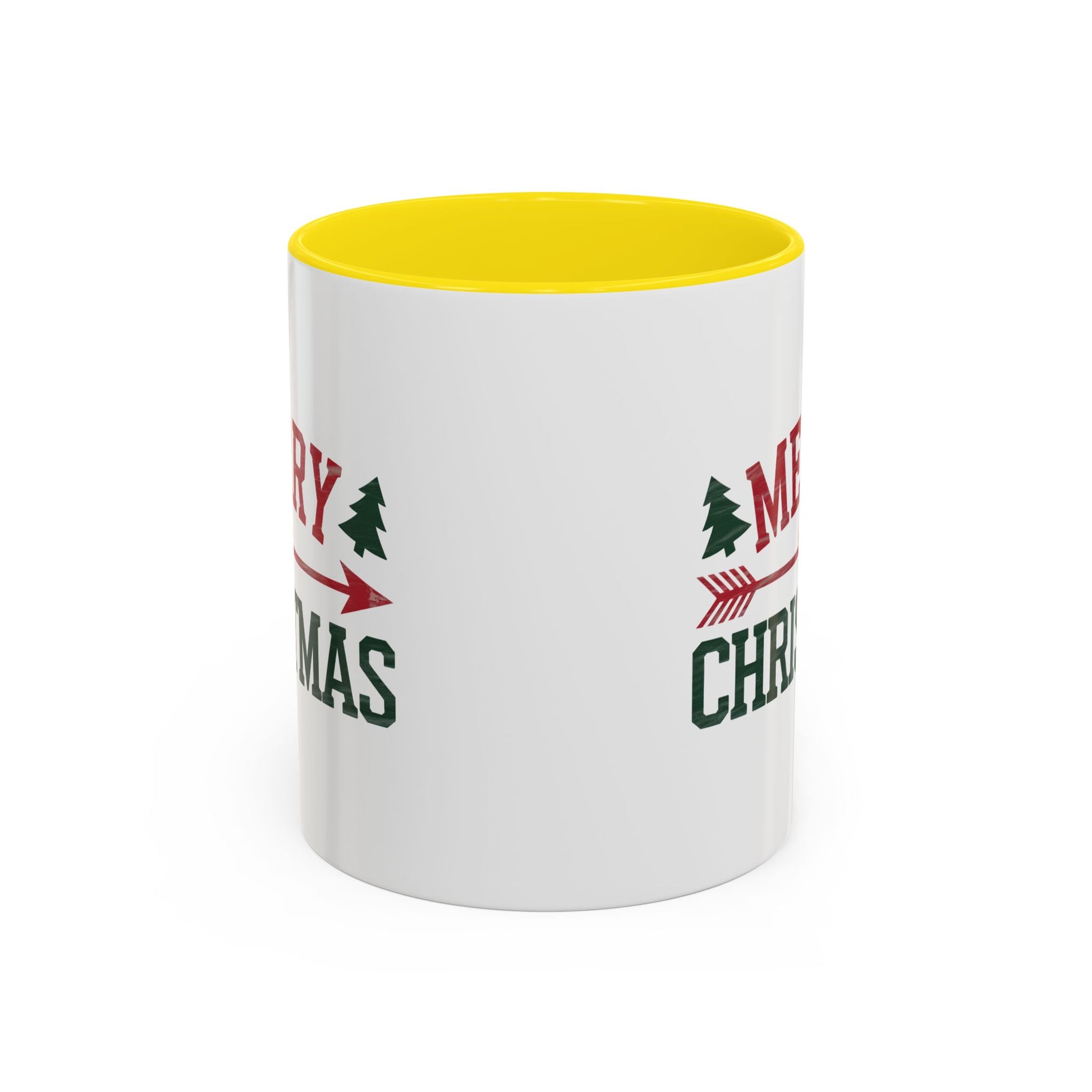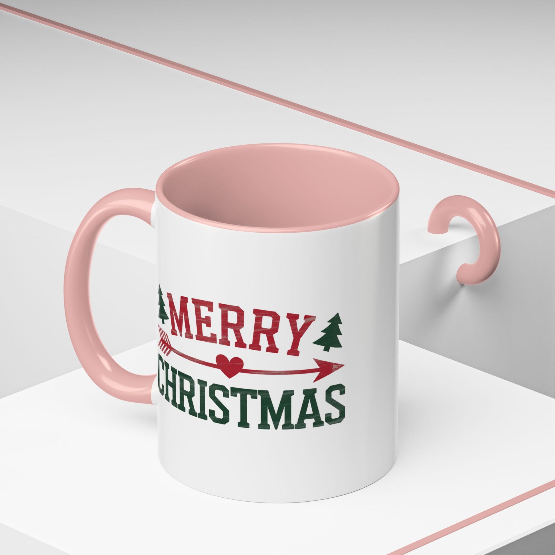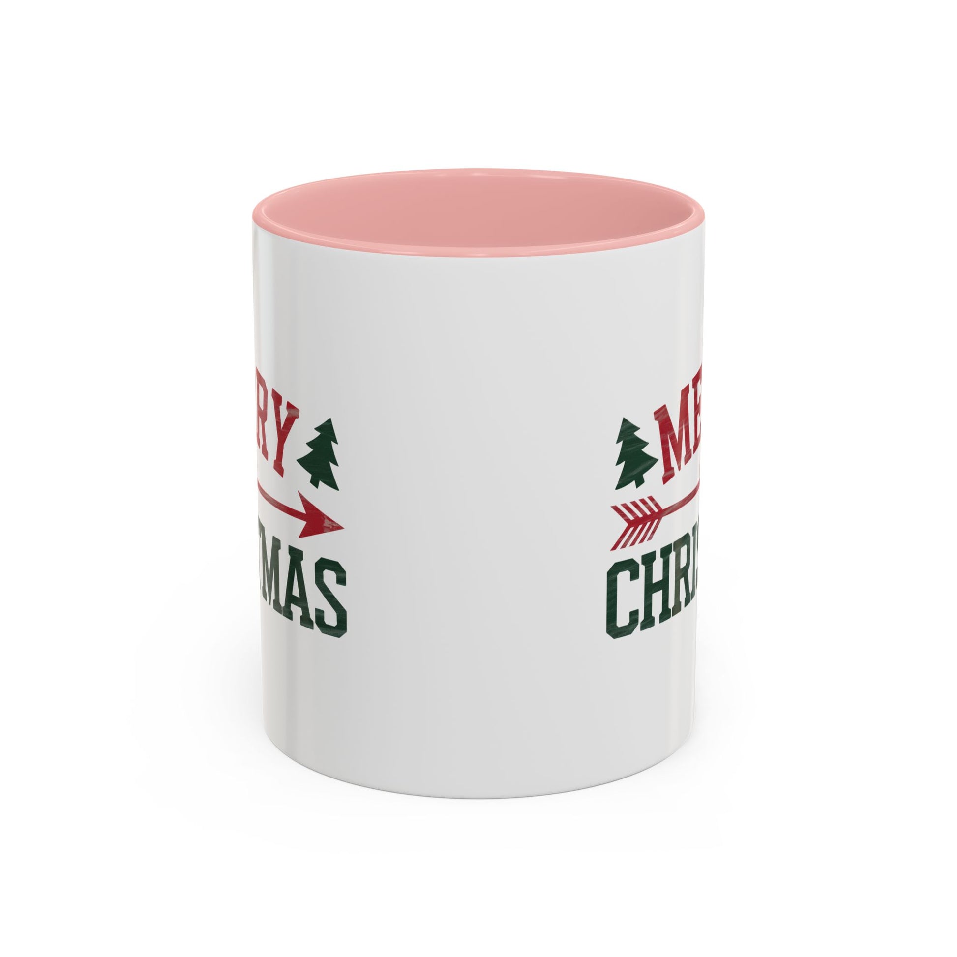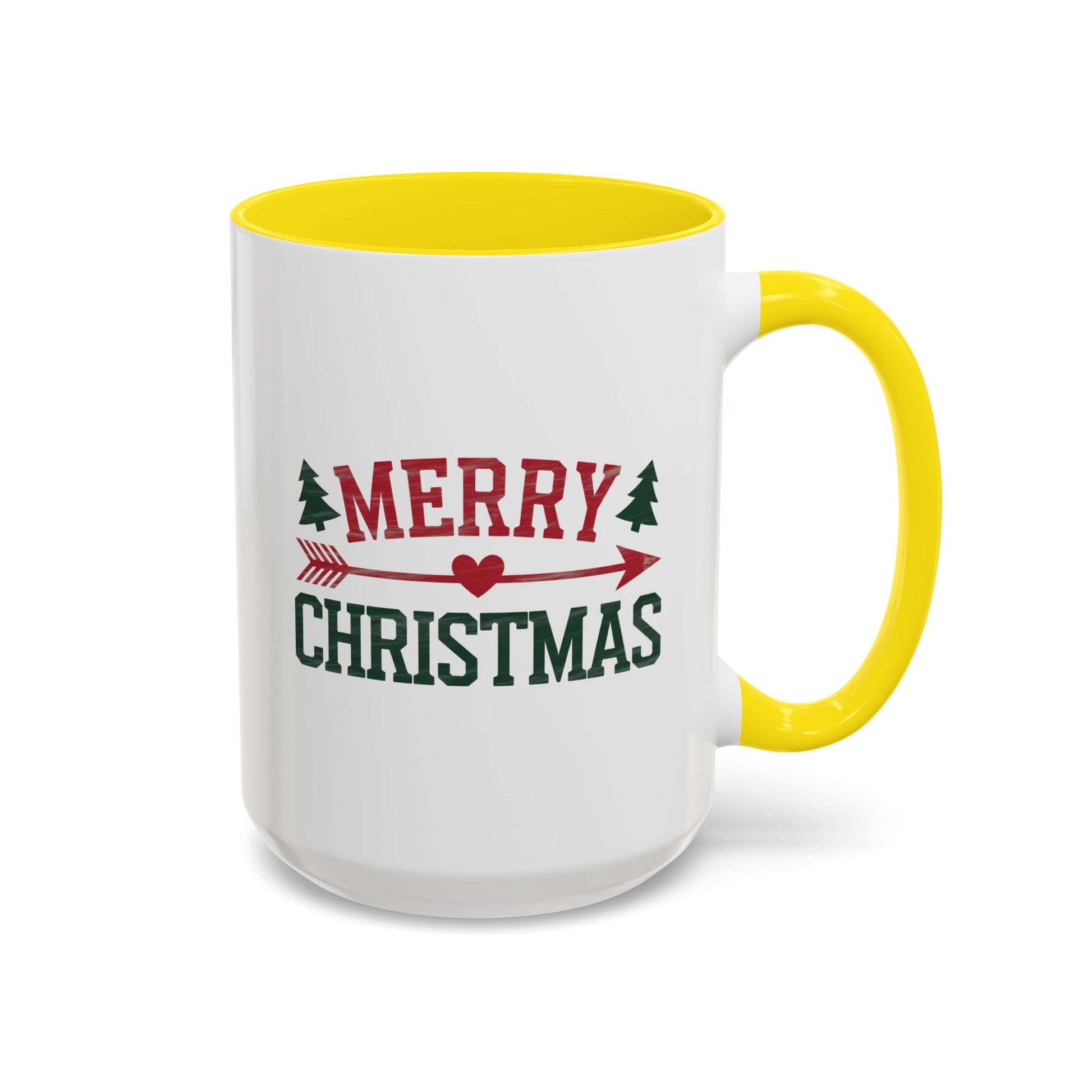 Christmas Mug - Merry Christmas Red & Green Text Heart Arrow Trees