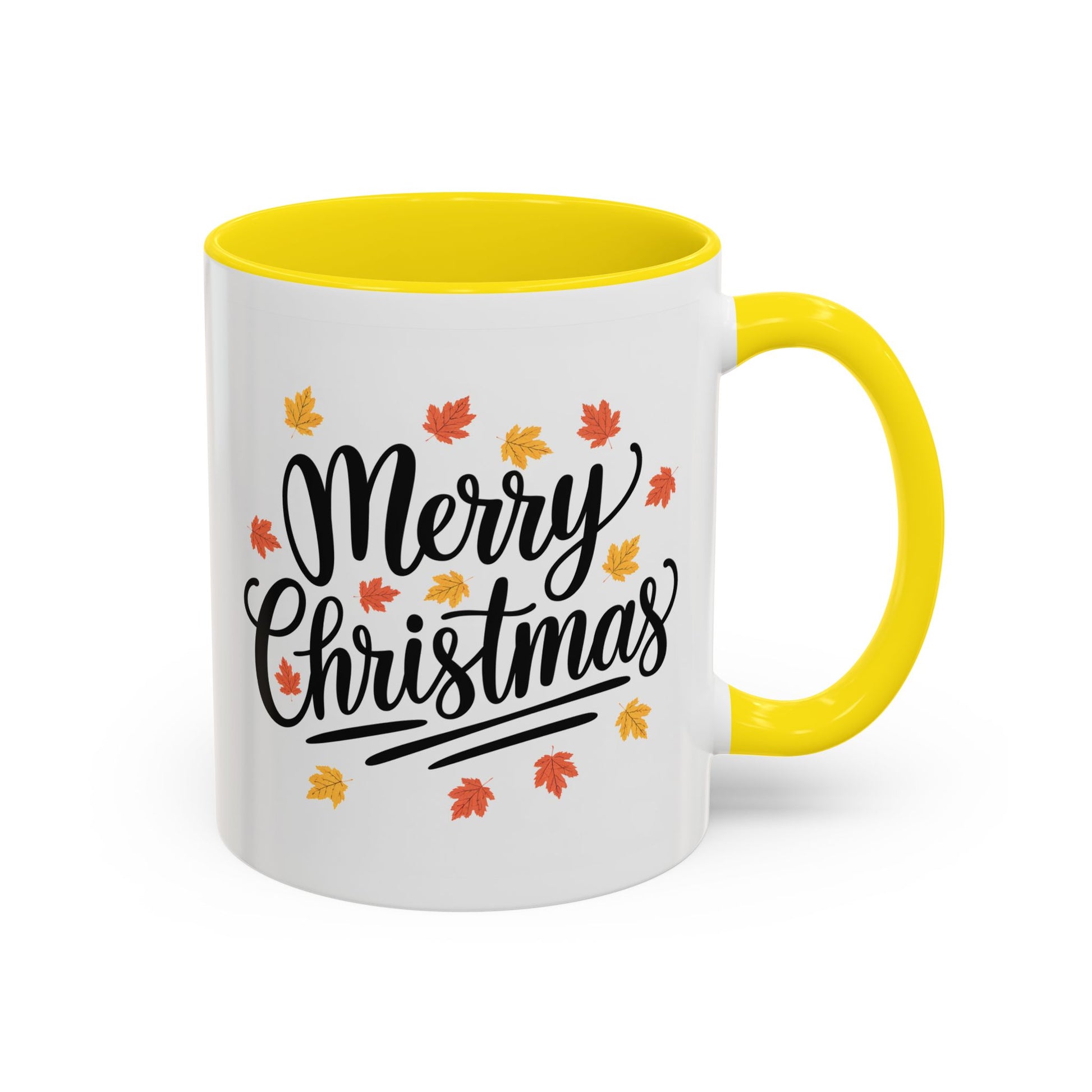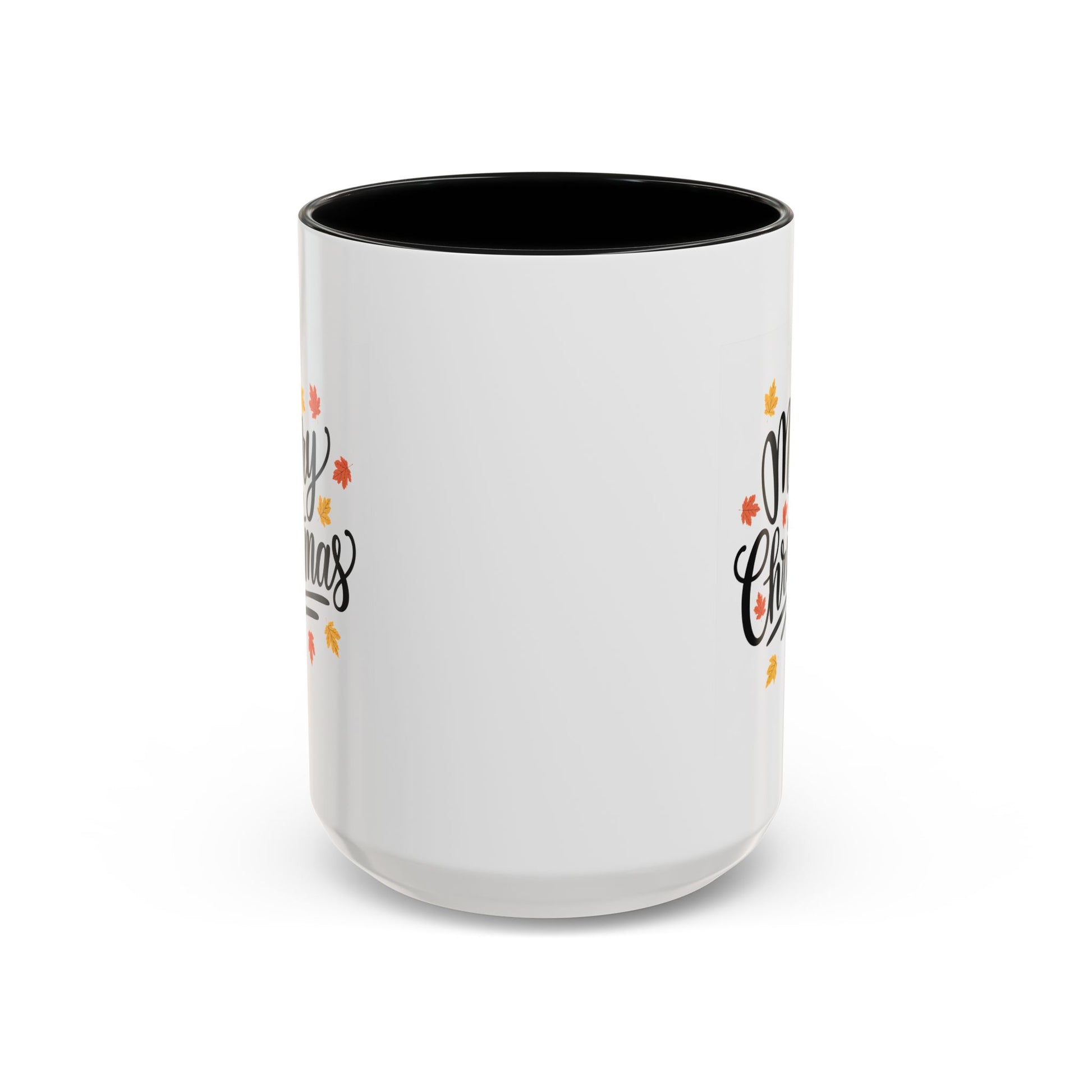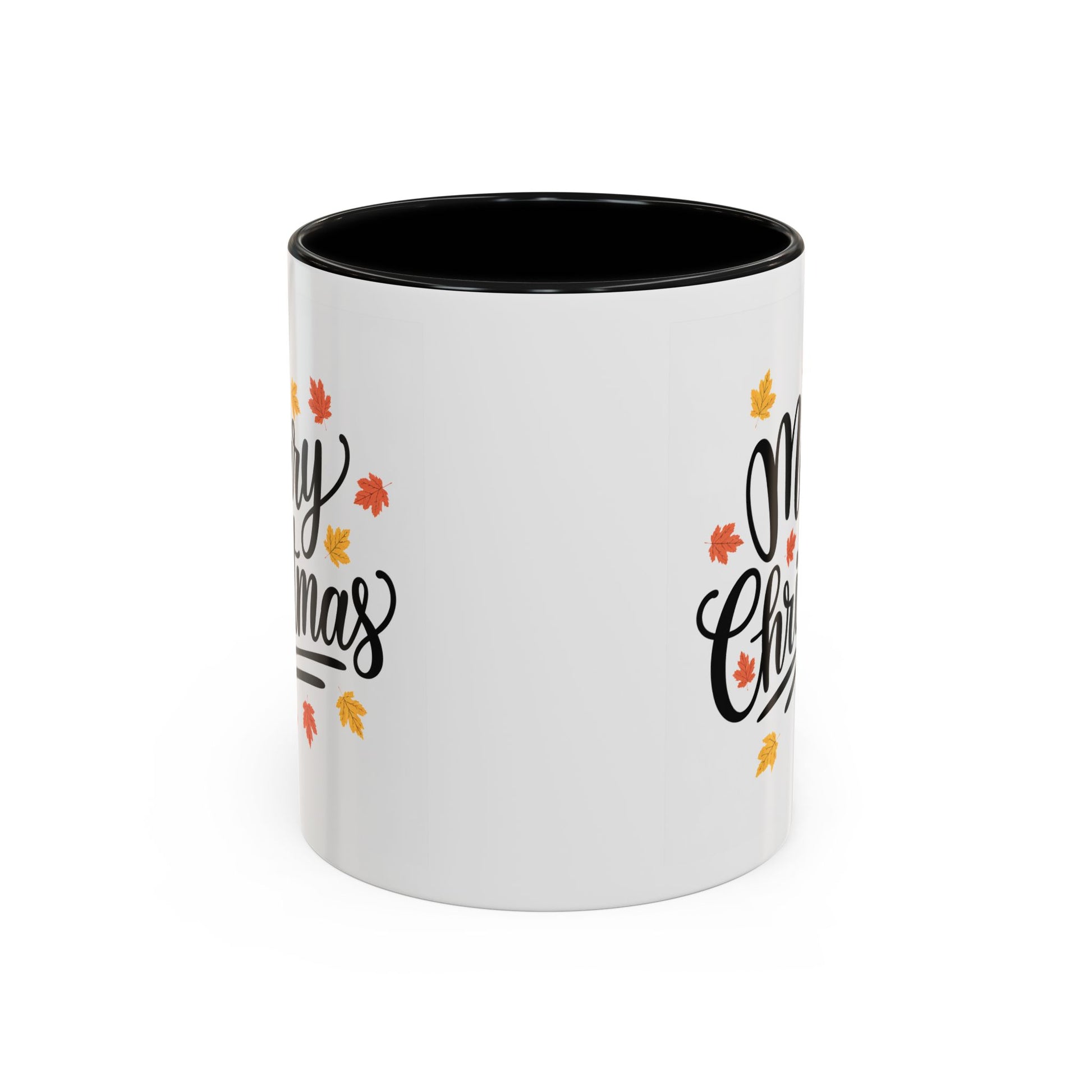 Christmas Mug - Merry Christmas Black Text Fall Leaves