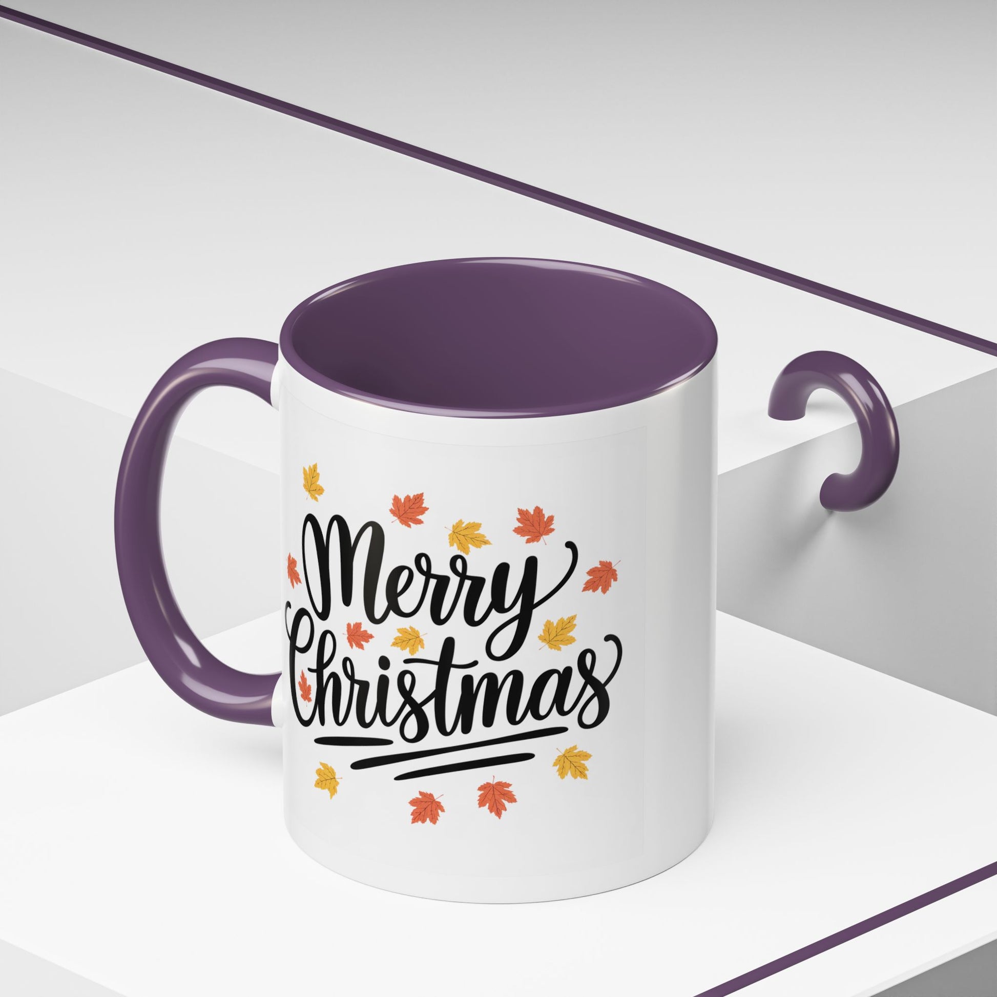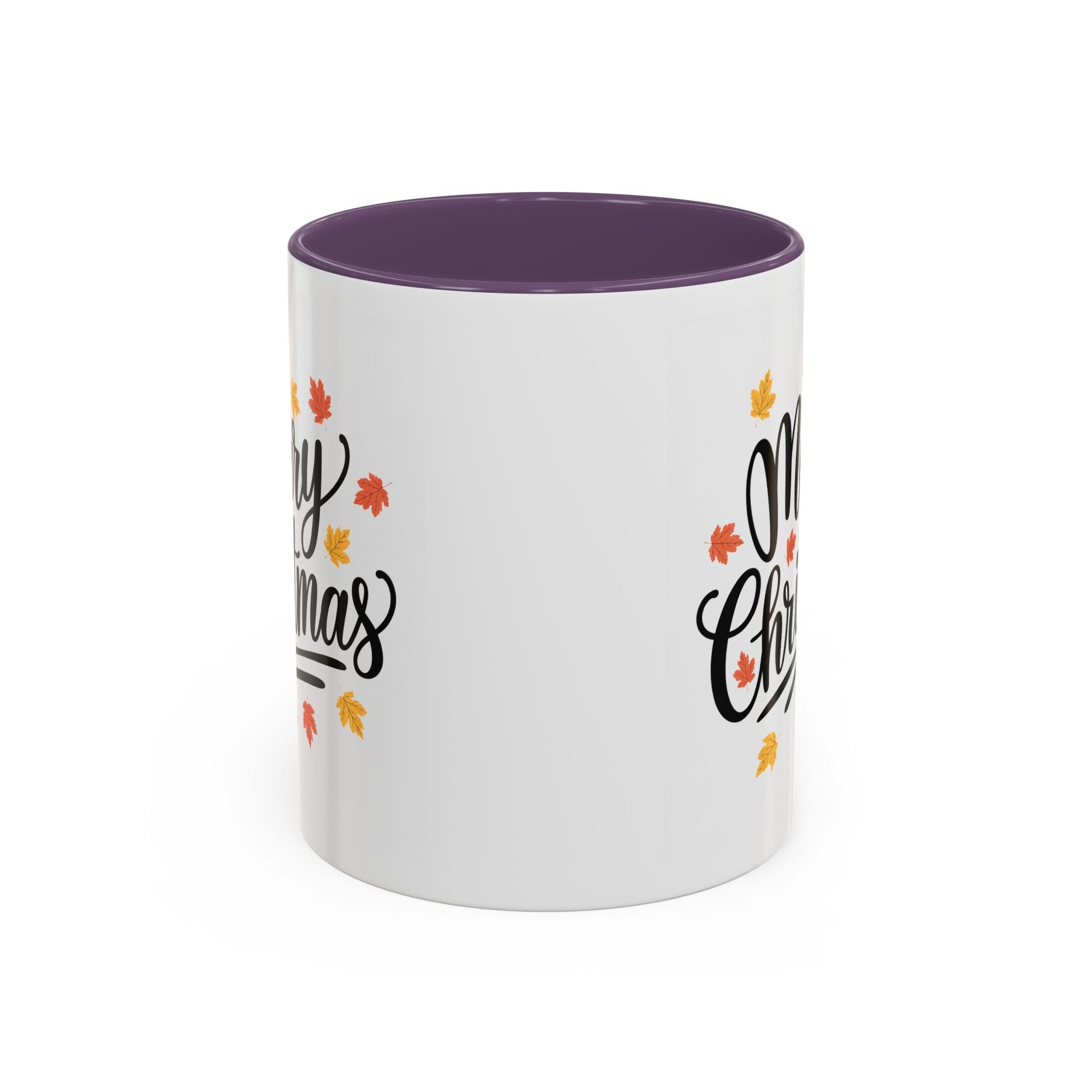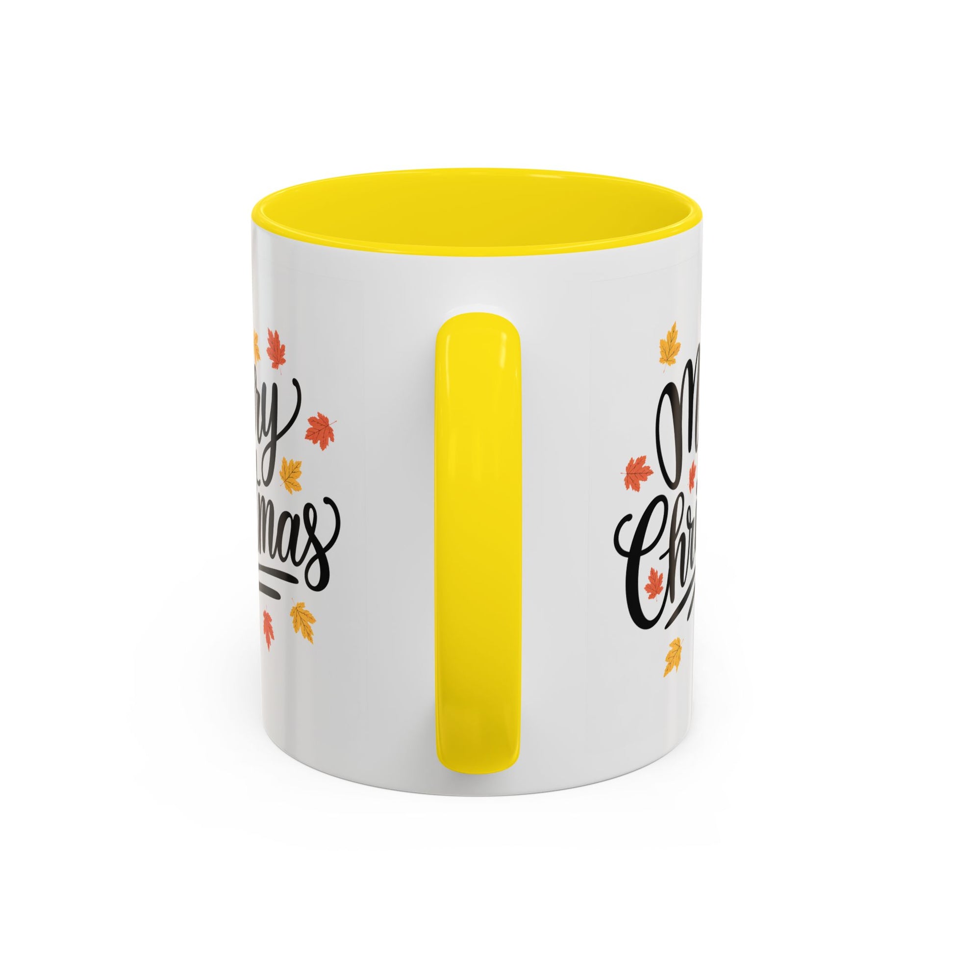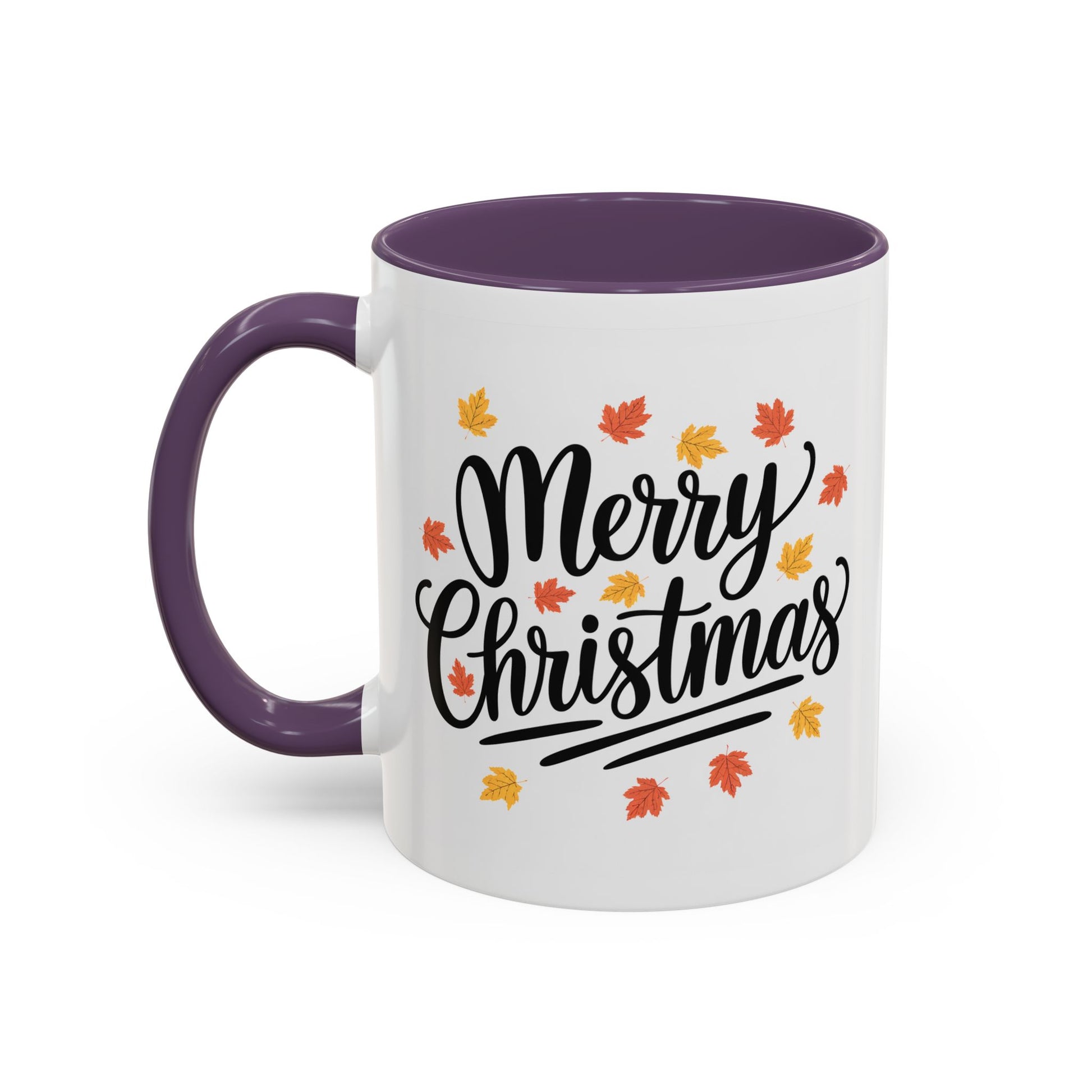 Christmas Mug - Merry Christmas Black Text Fall Leaves