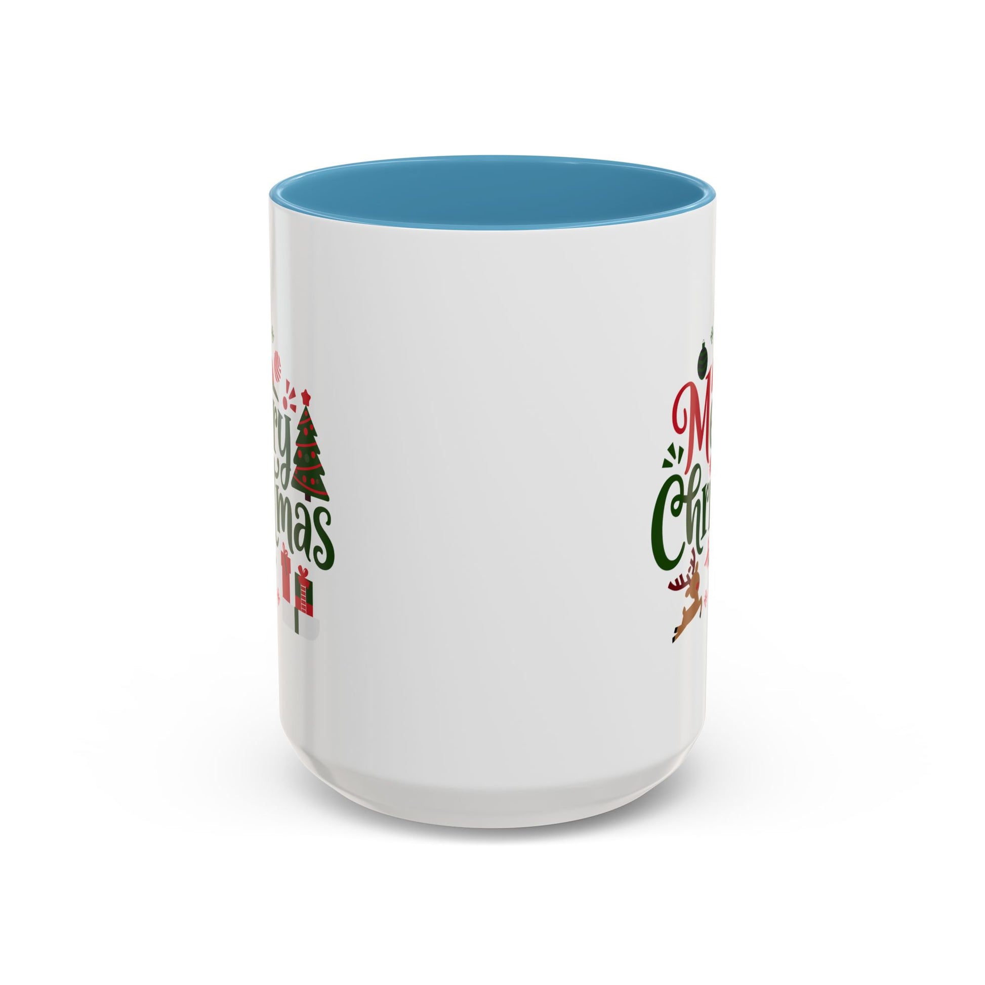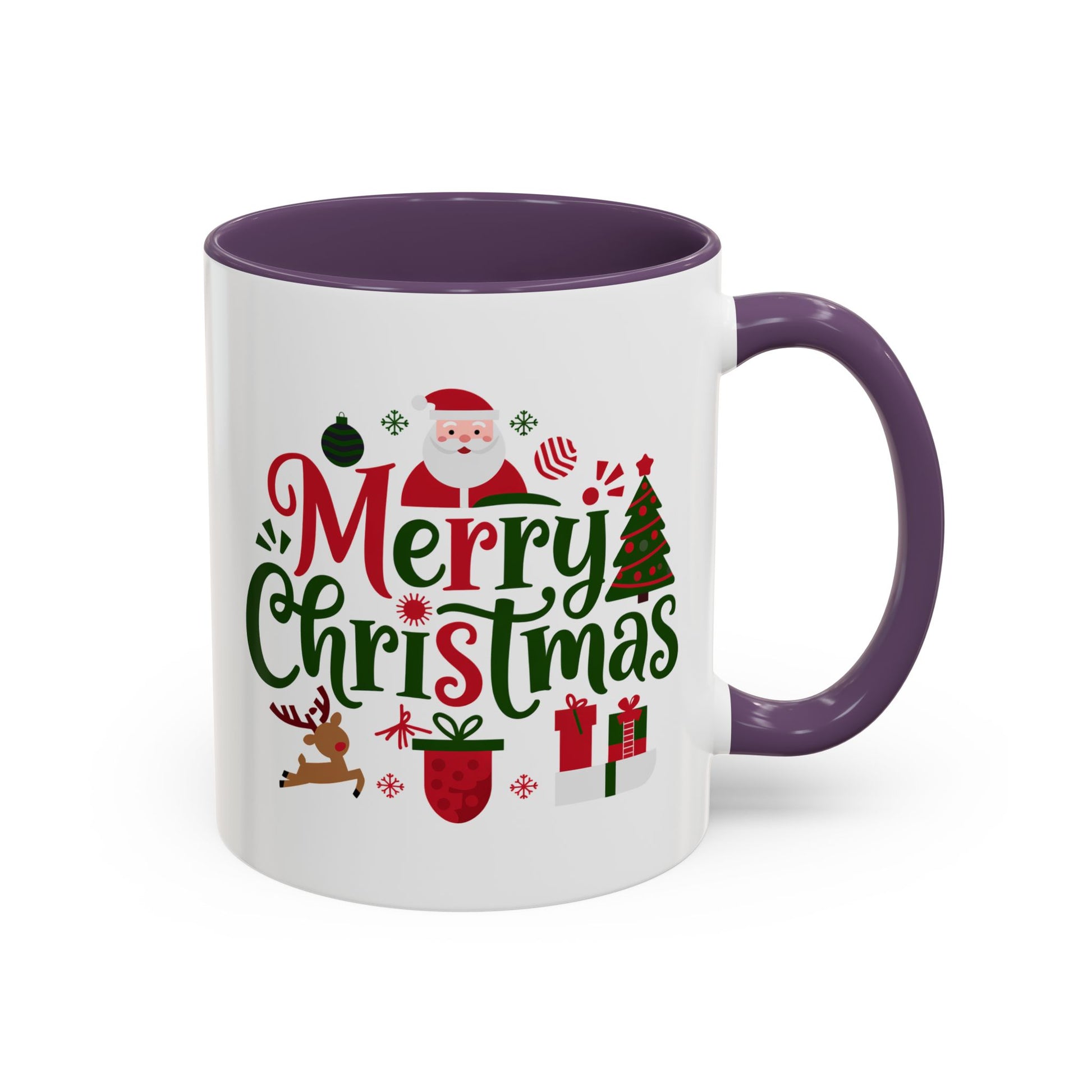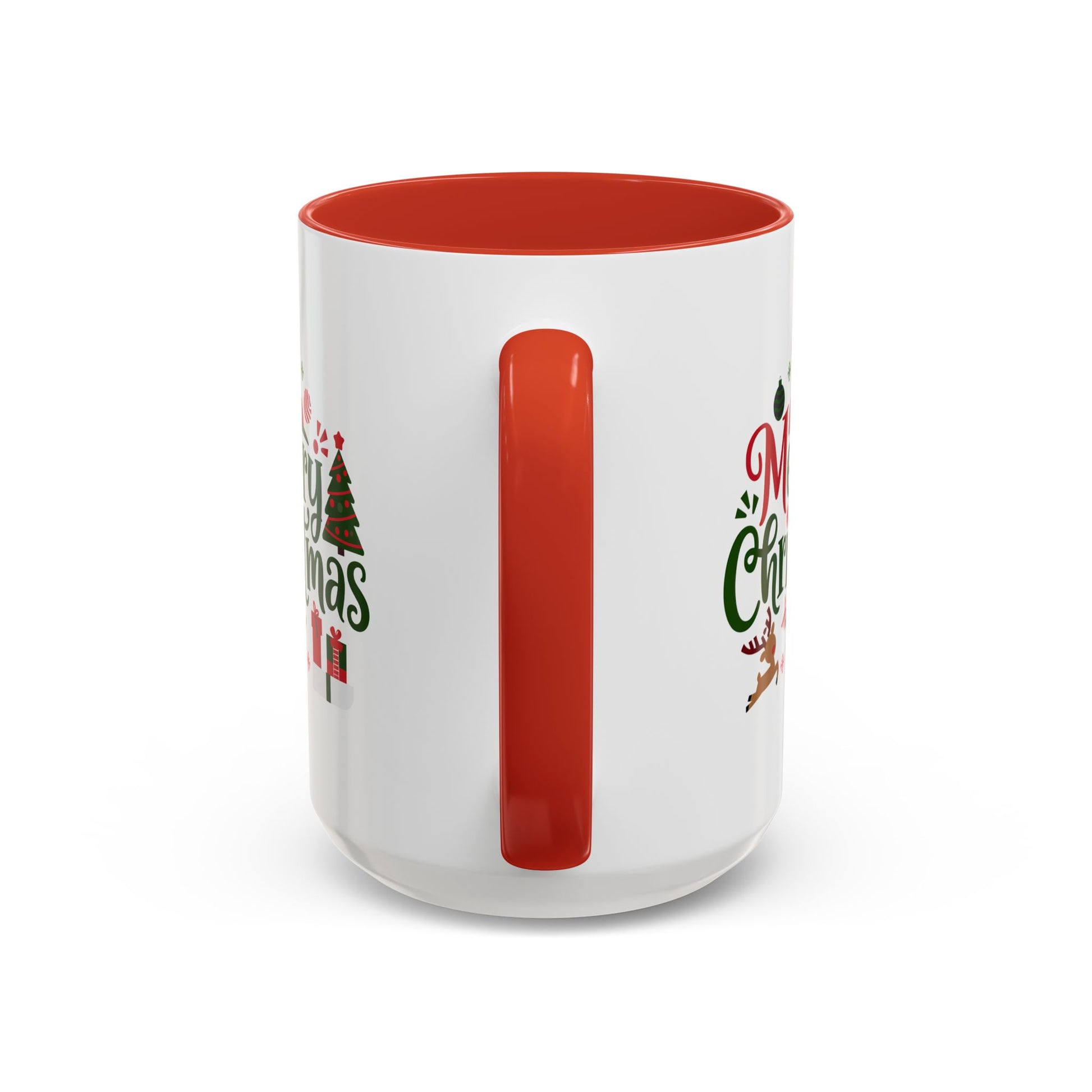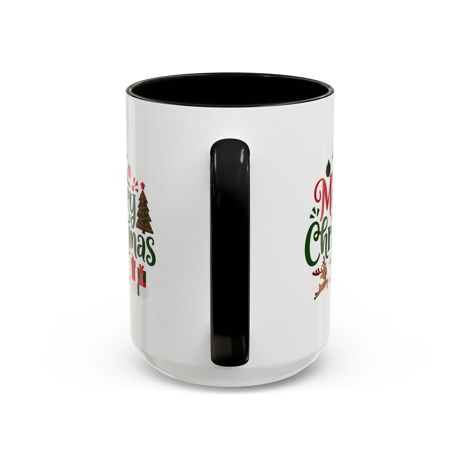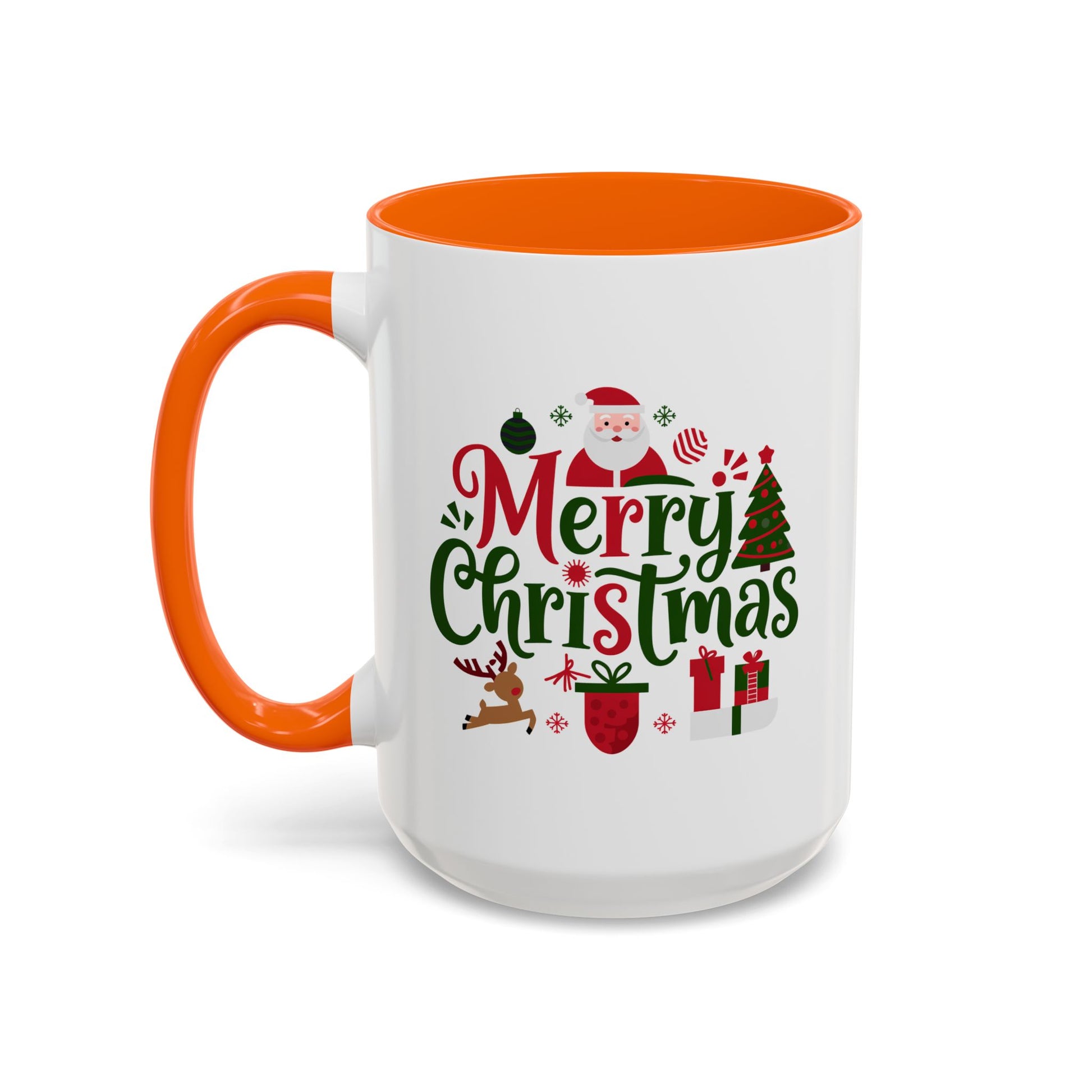 Christmas Mug - Merry Christmas Red & Green Text Santa Reindeer Tree Sleigh Ornaments
