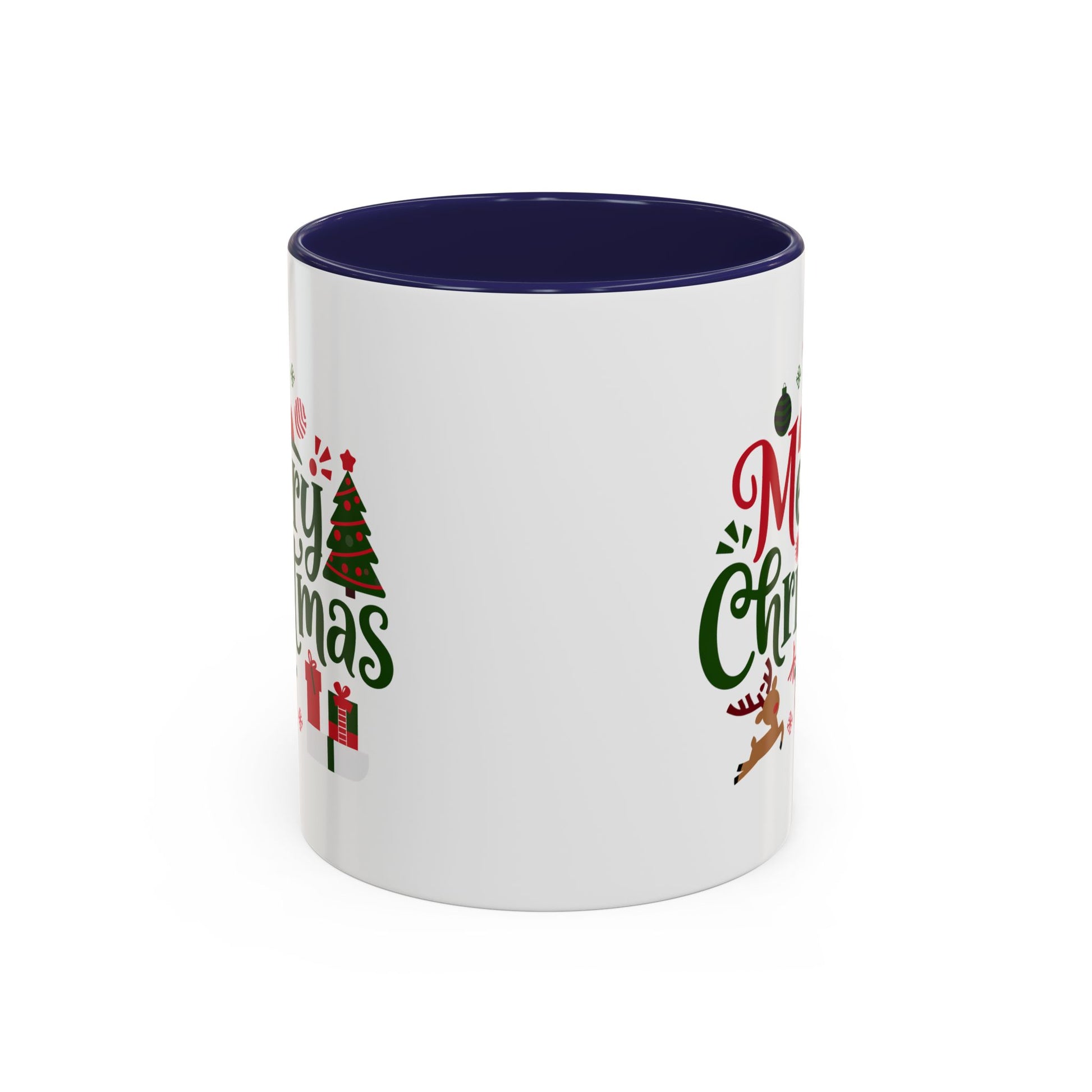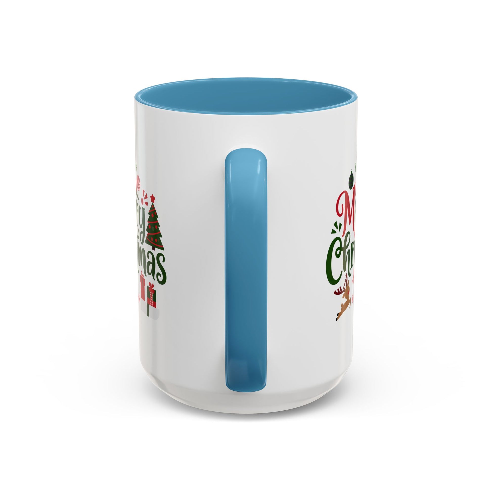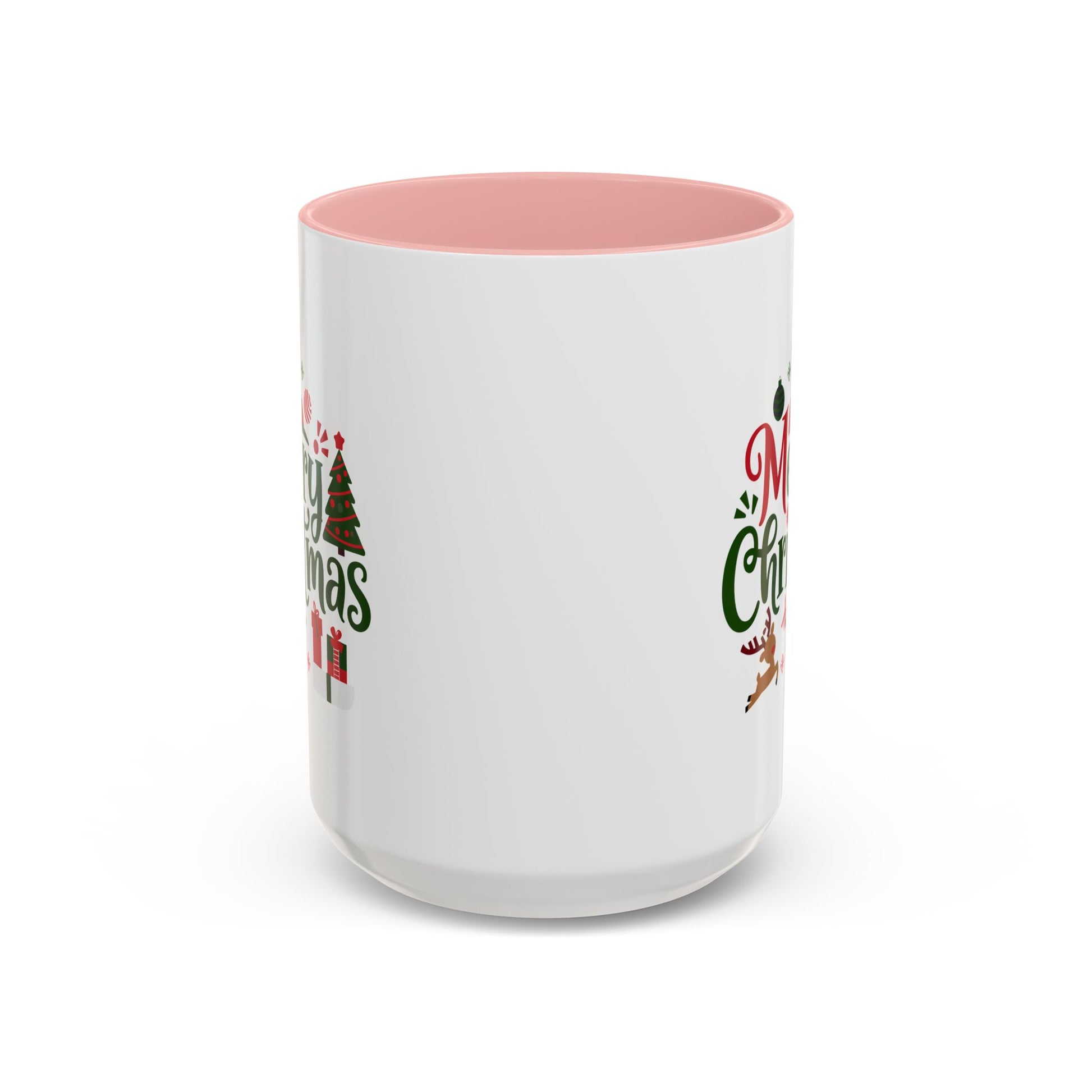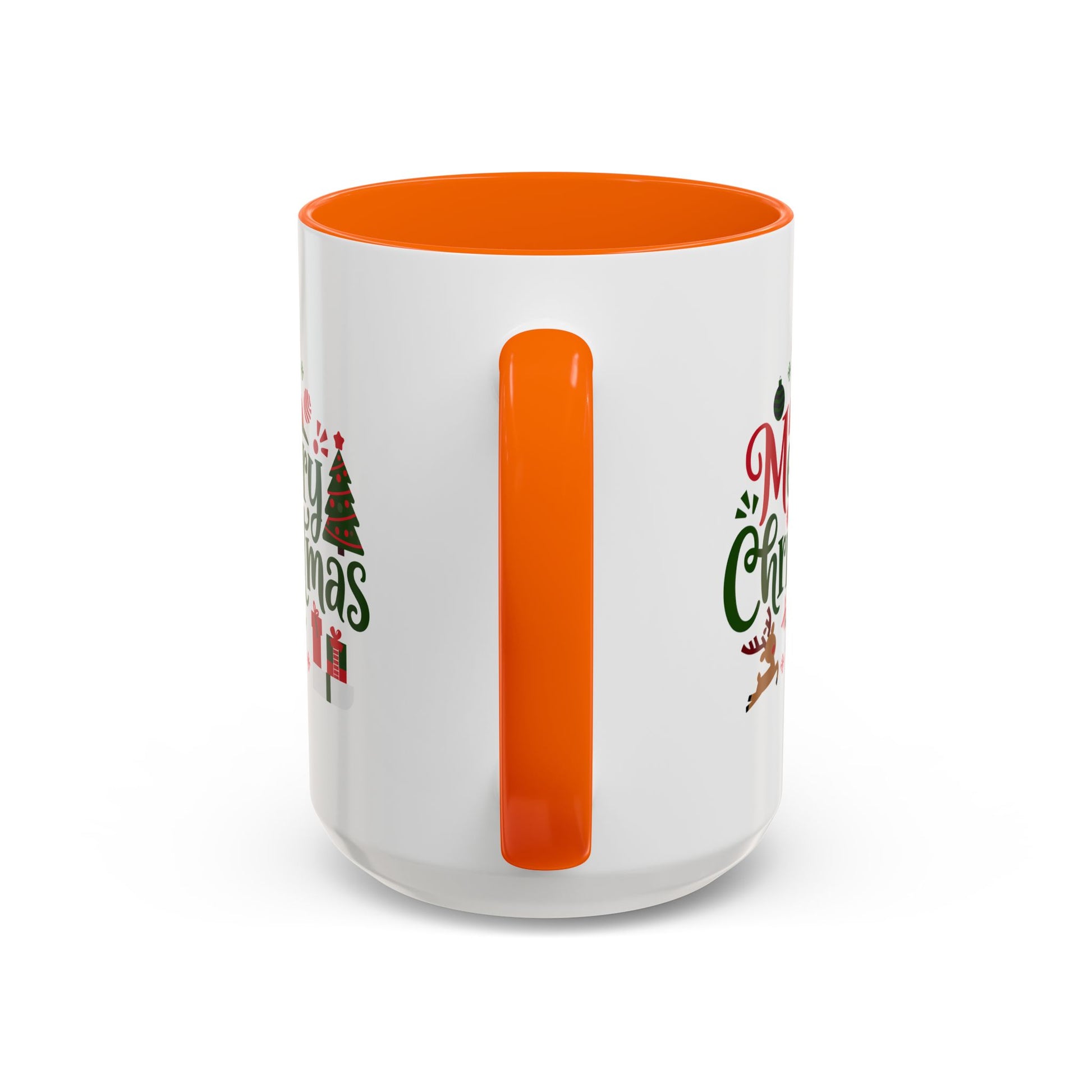 Christmas Mug - Merry Christmas Red & Green Text Santa Reindeer Tree Sleigh Ornaments