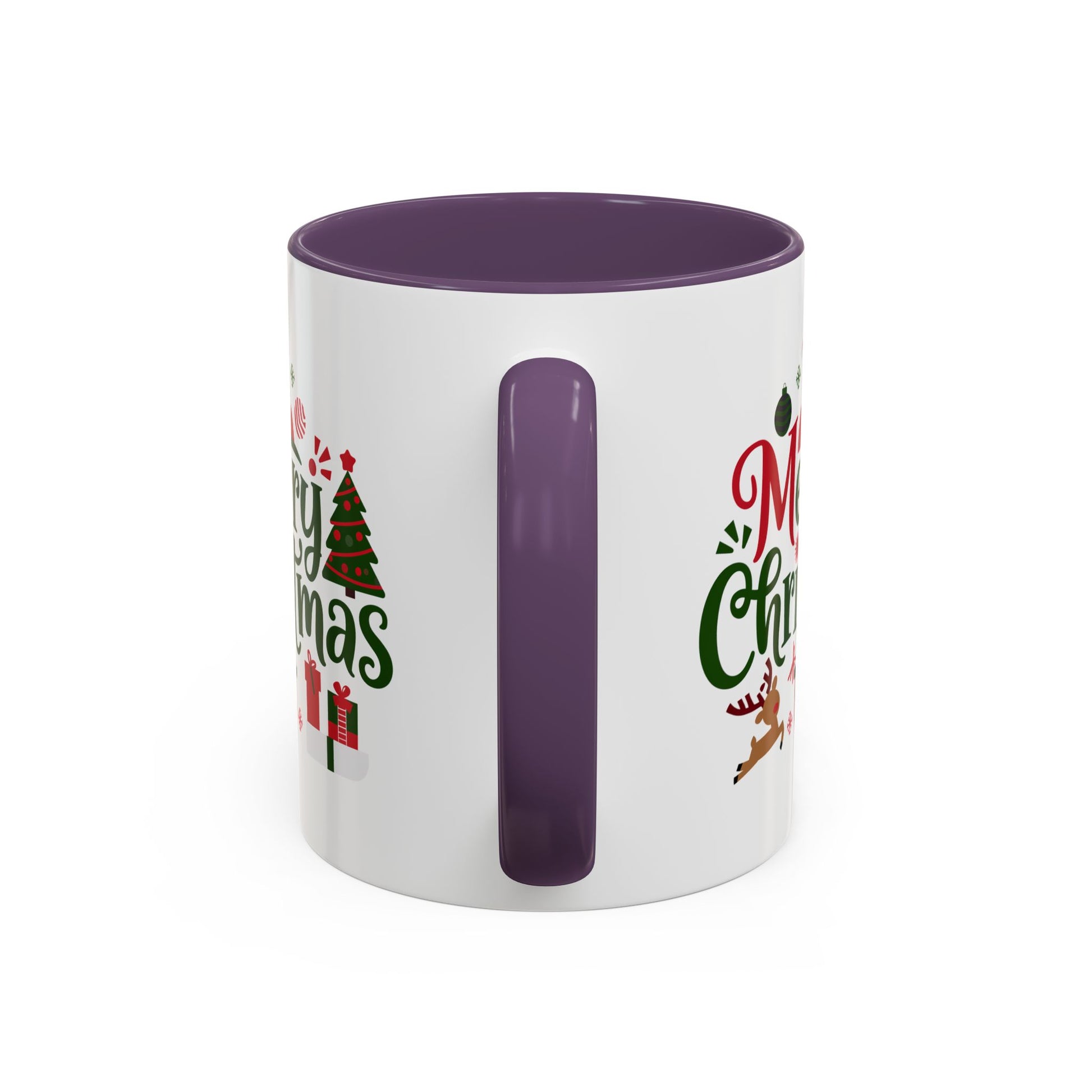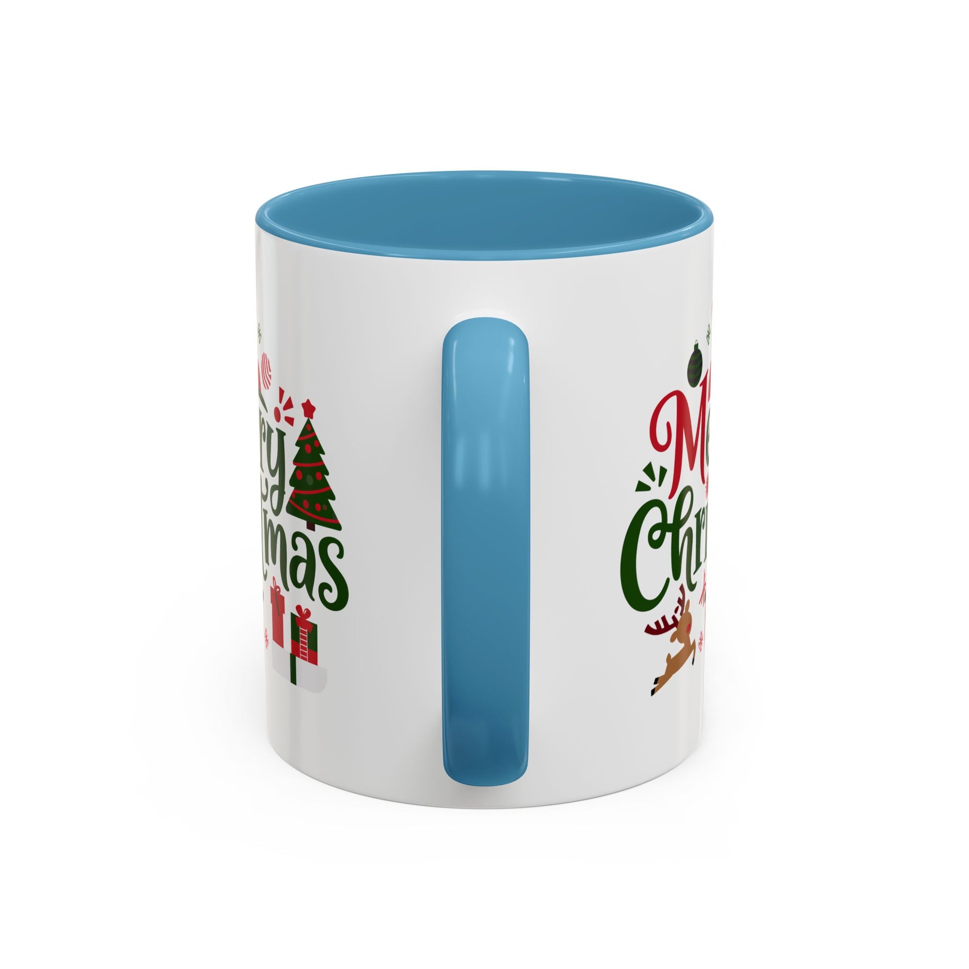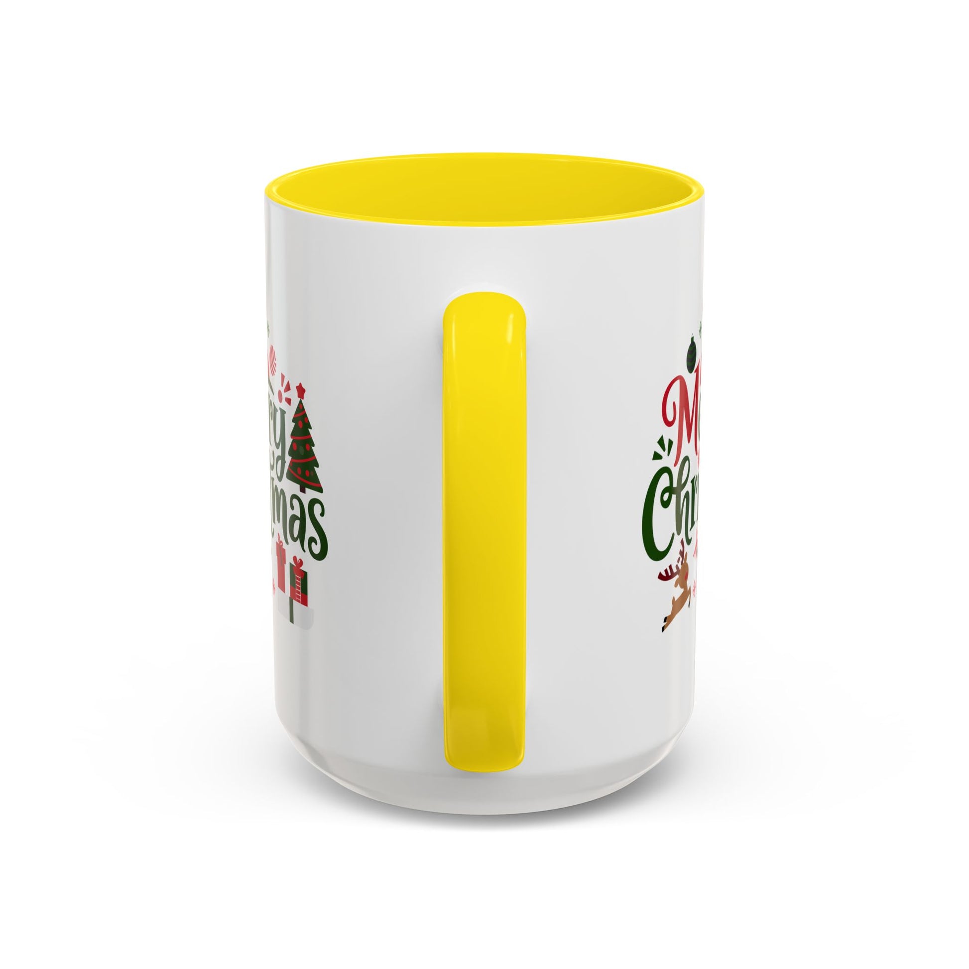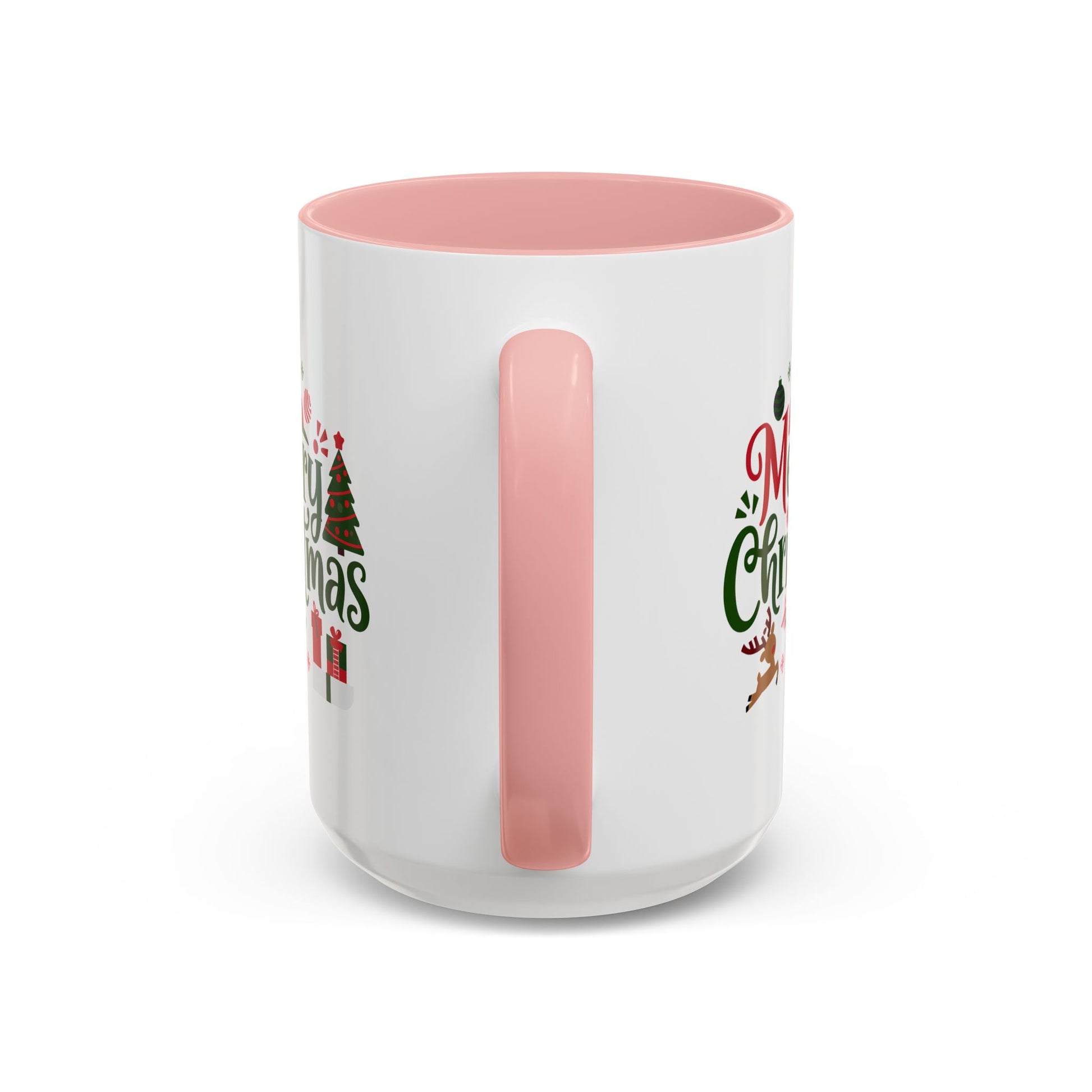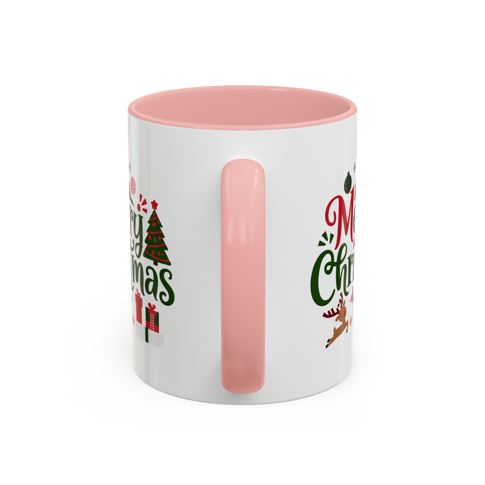 Christmas Mug - Merry Christmas Red & Green Text Santa Reindeer Tree Sleigh Ornaments