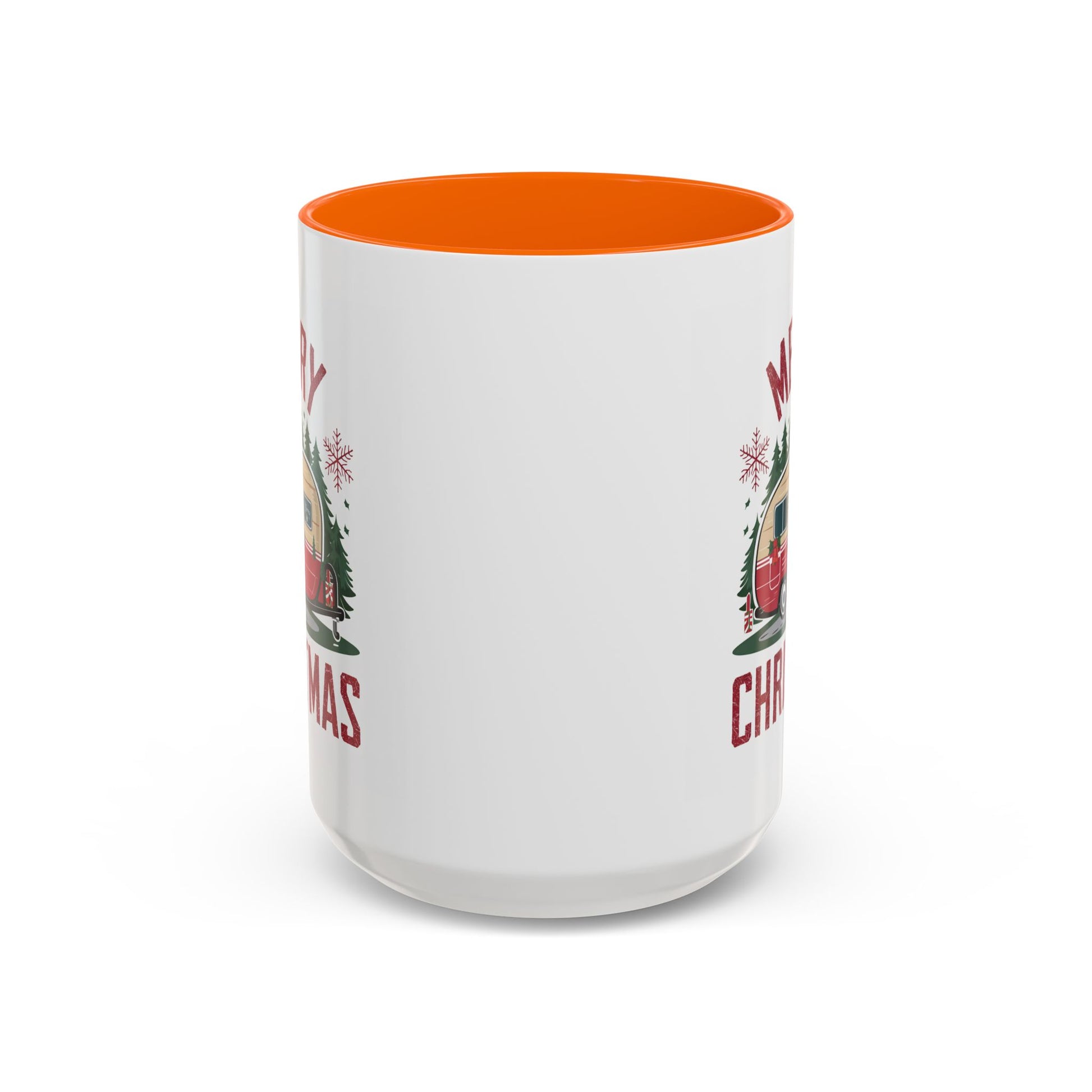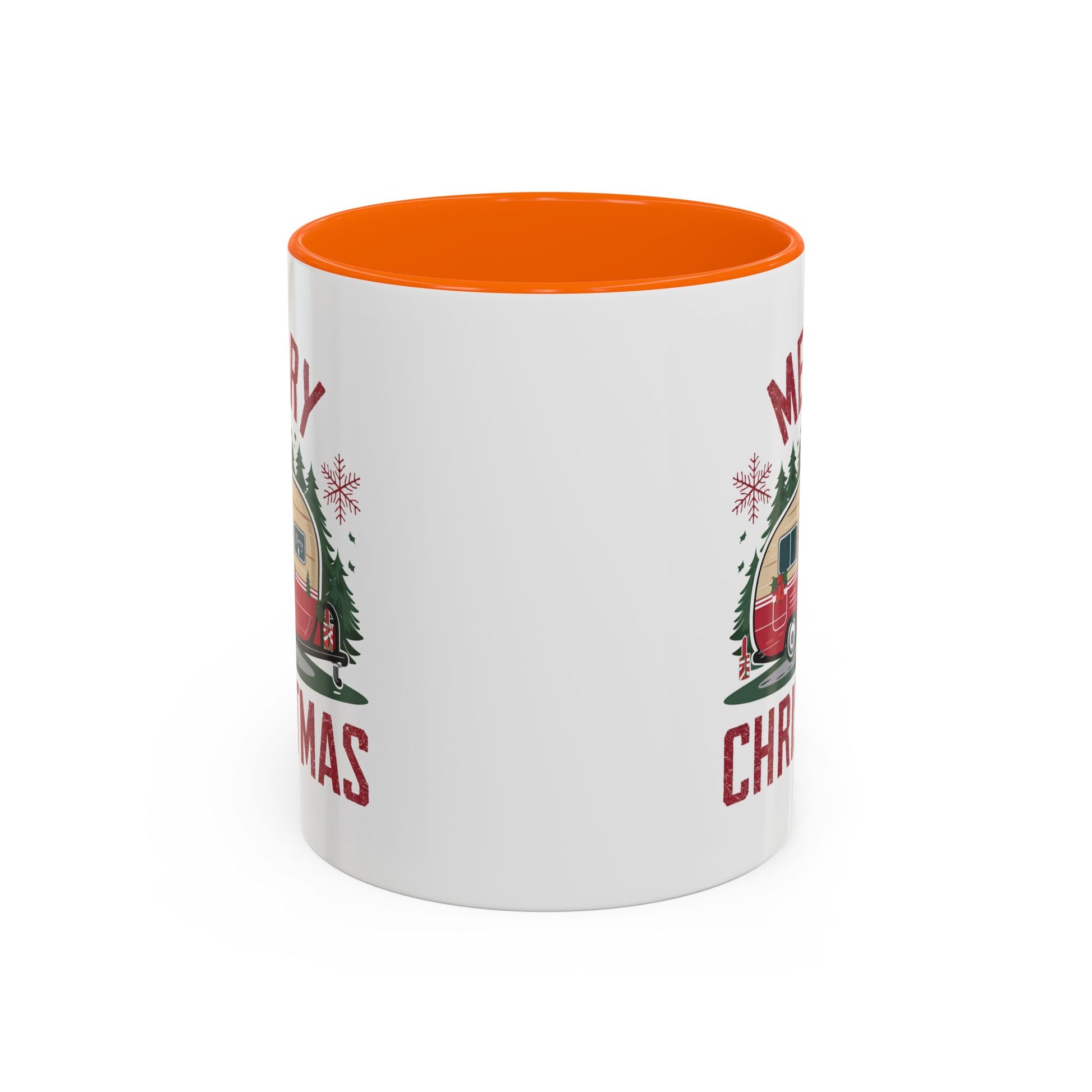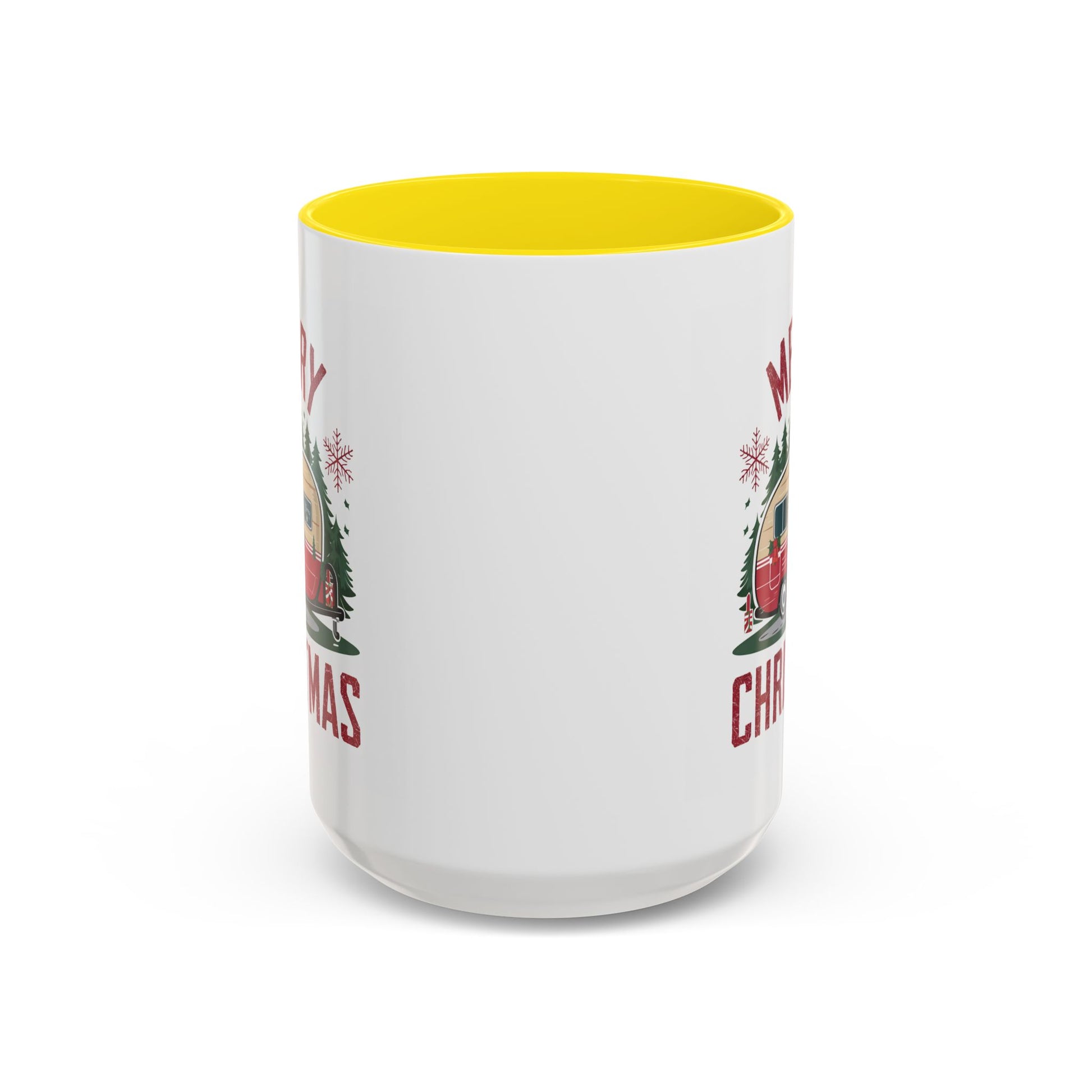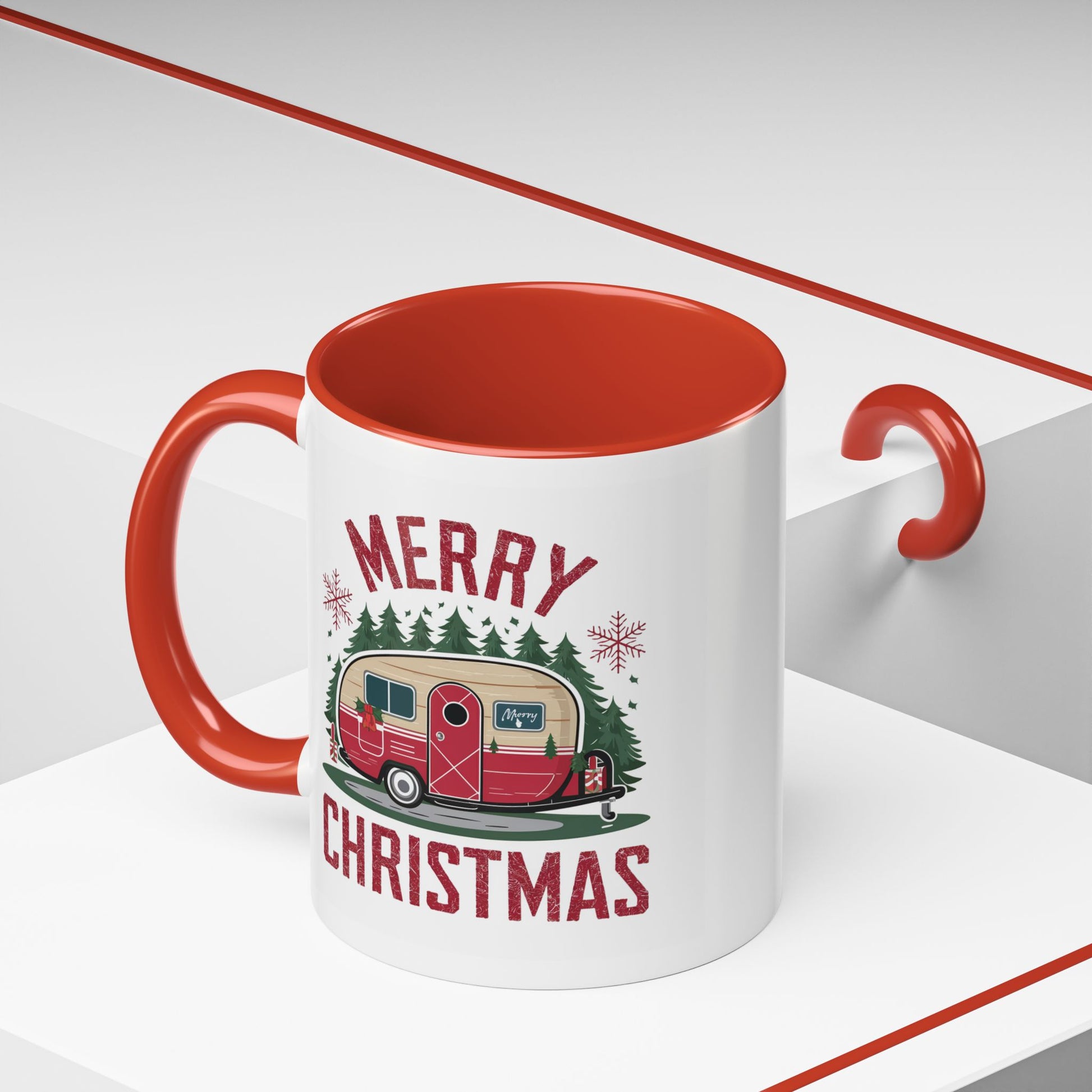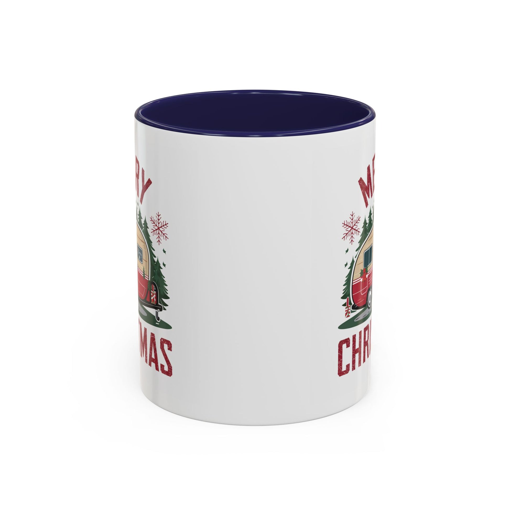 Christmas Mug - Merry Christmas Maroon Text Camper Trees Snowflakes