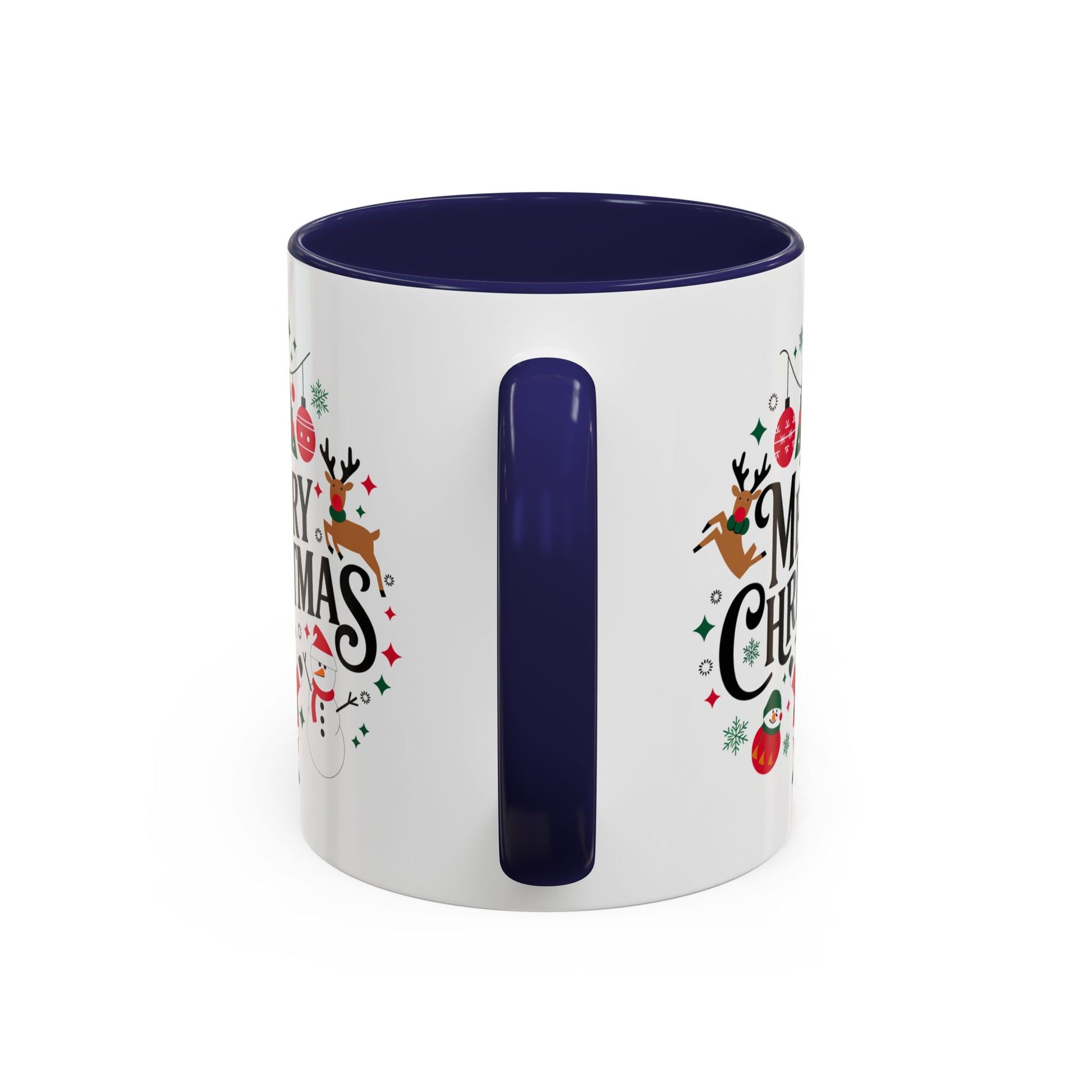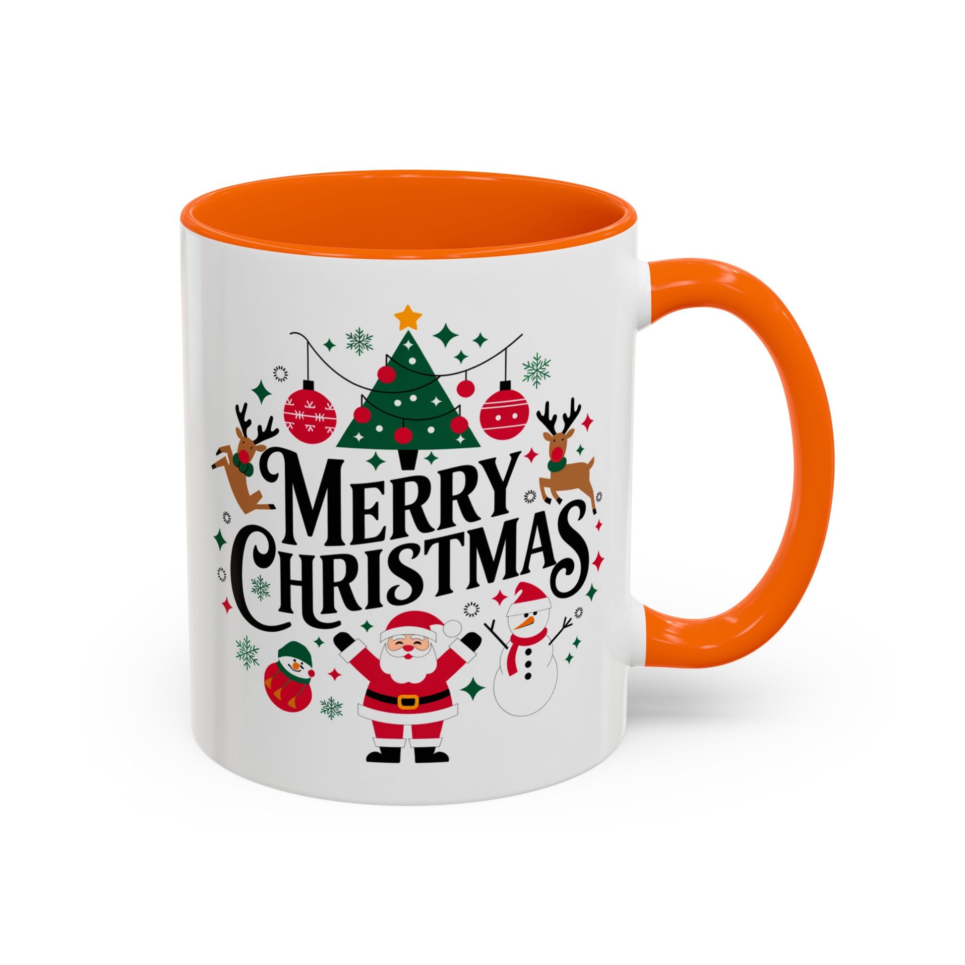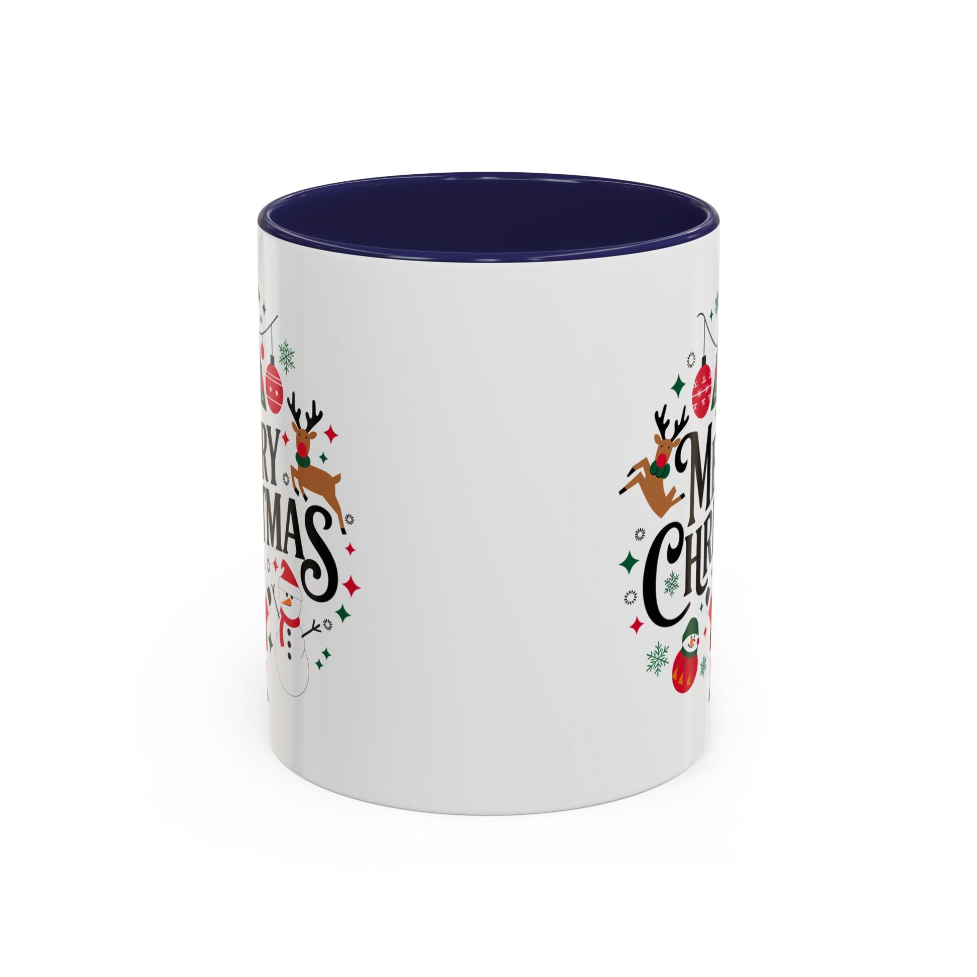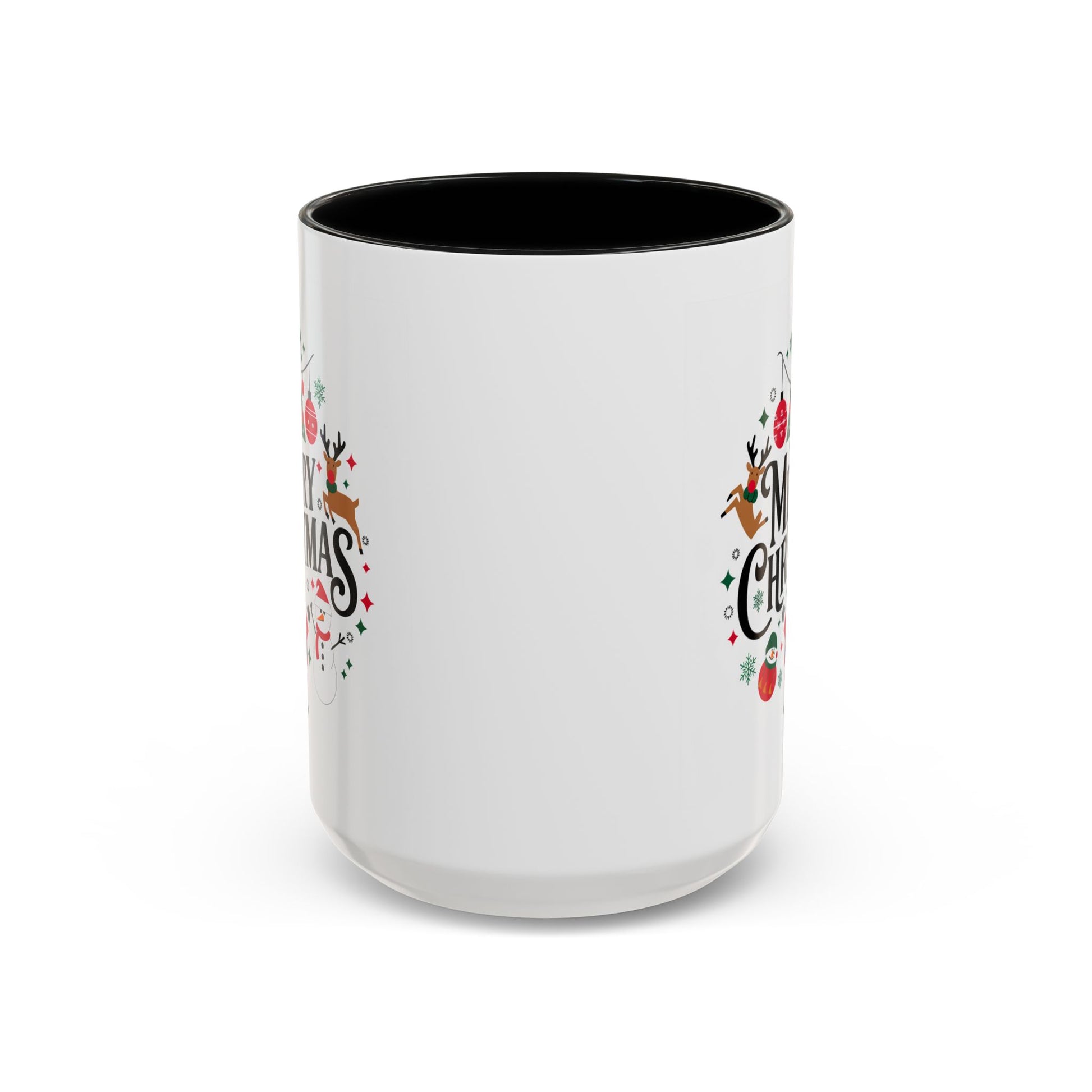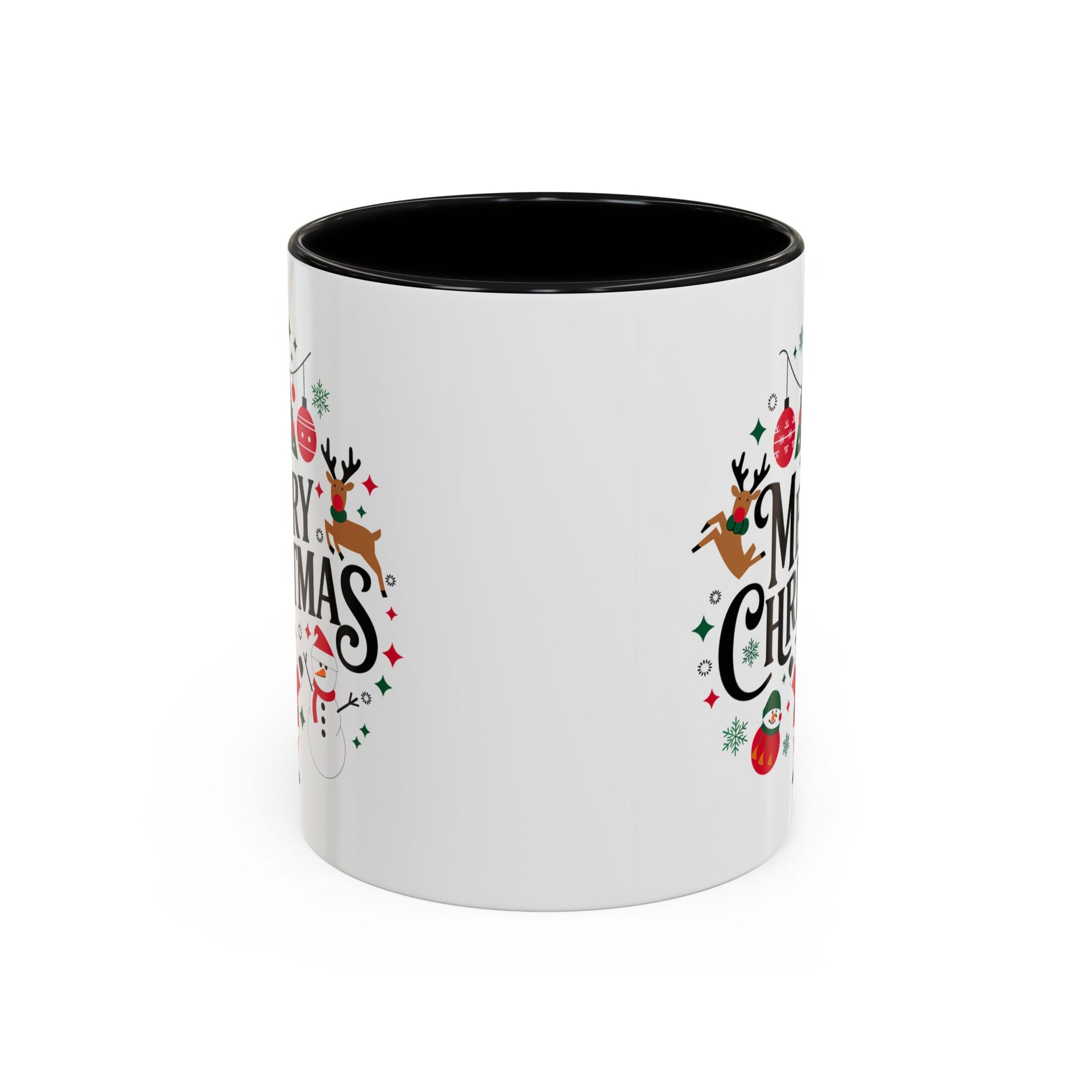 Christmas Mug - Merry Christmas Black Text Santa Reindeer Snowmen Ornaments