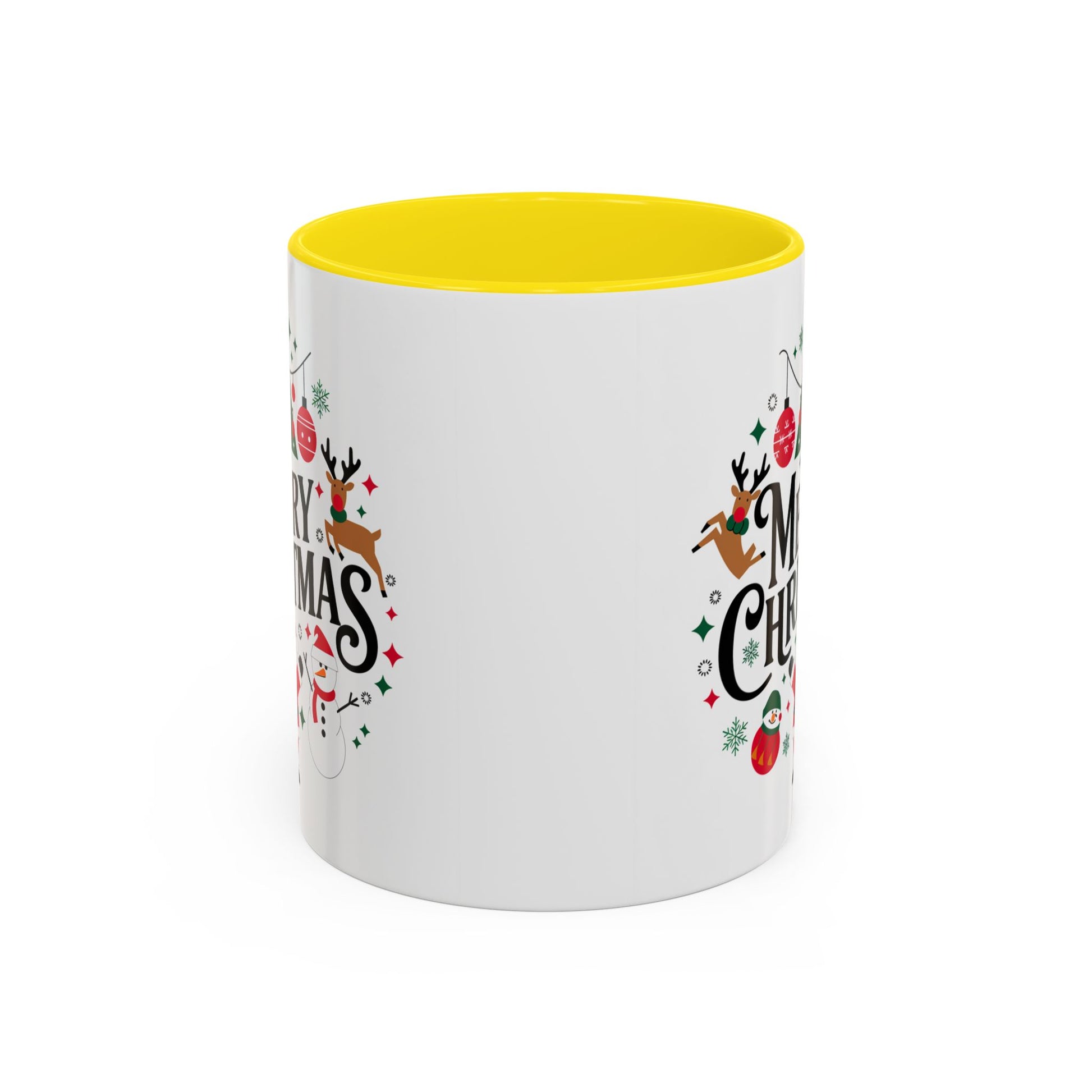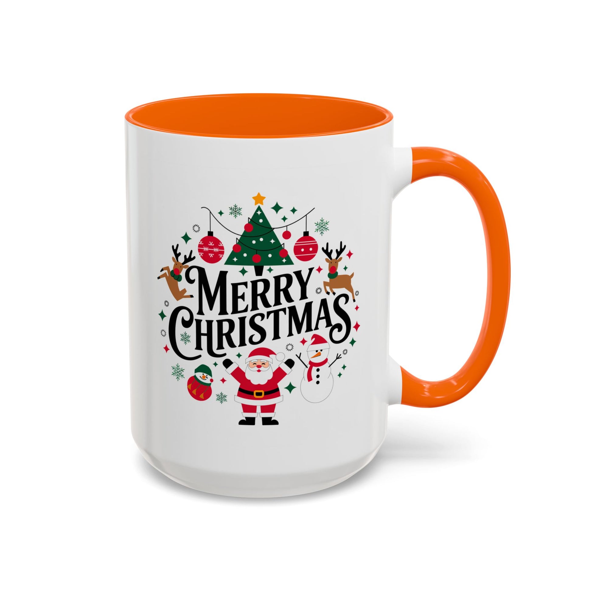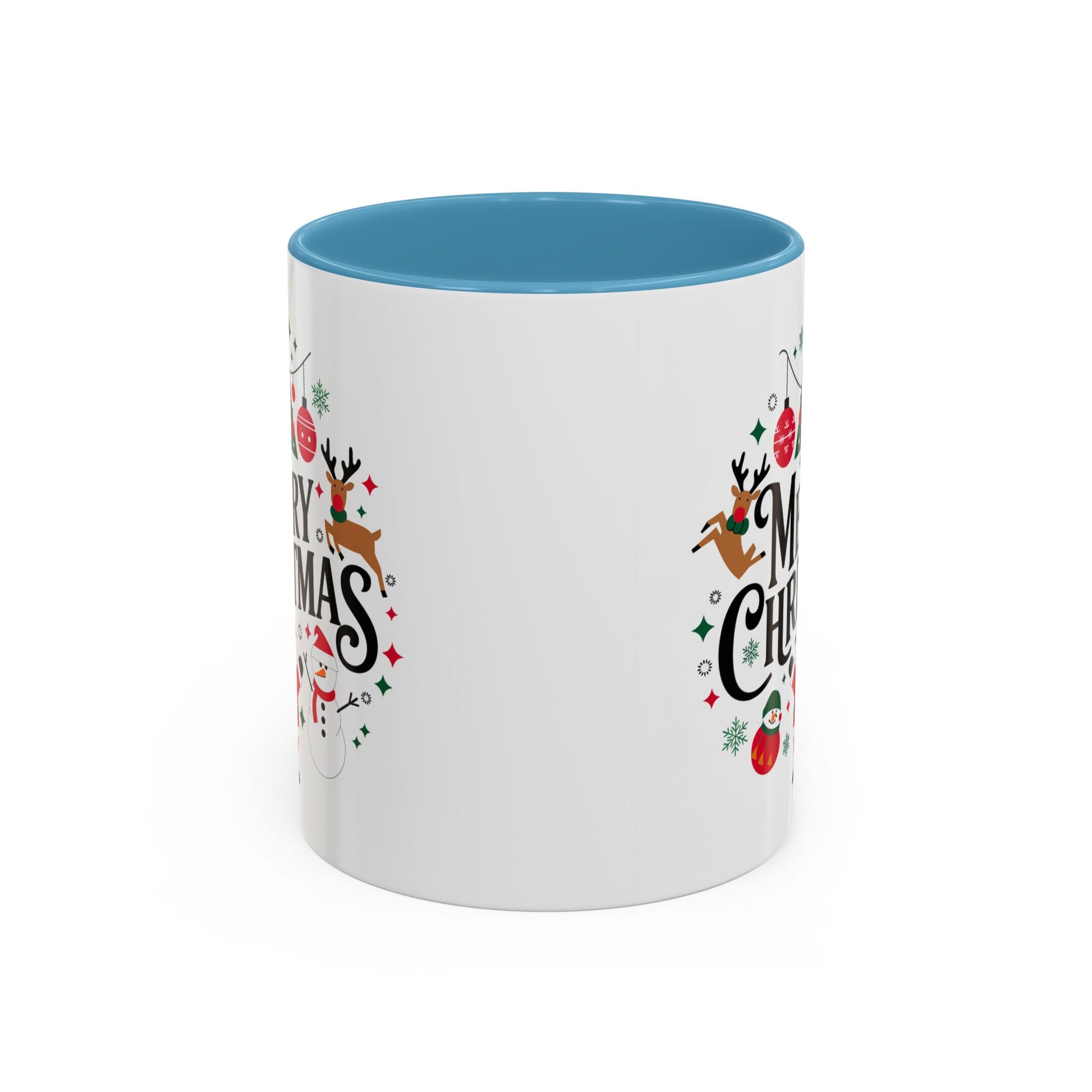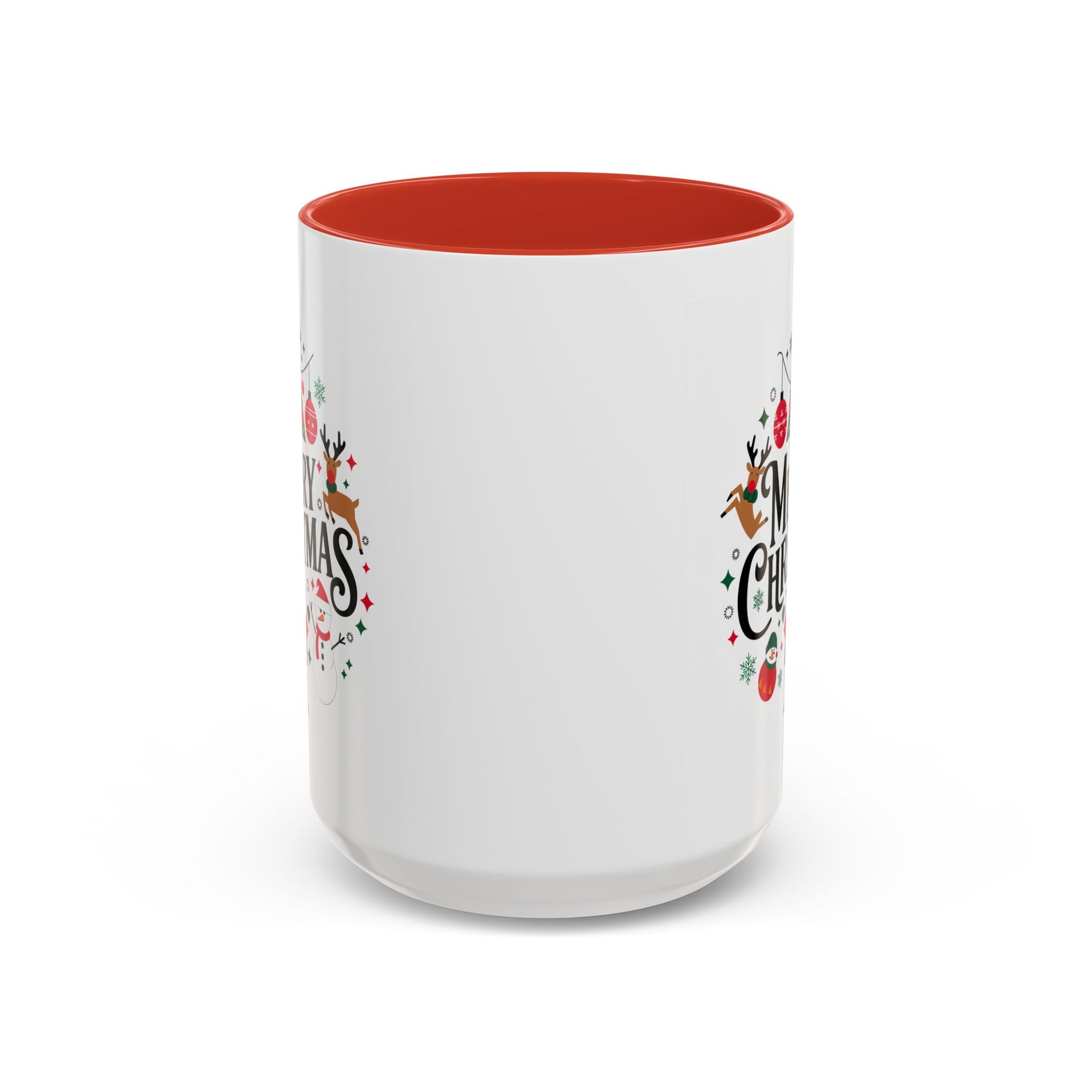 Christmas Mug - Merry Christmas Black Text Santa Reindeer Snowmen Ornaments