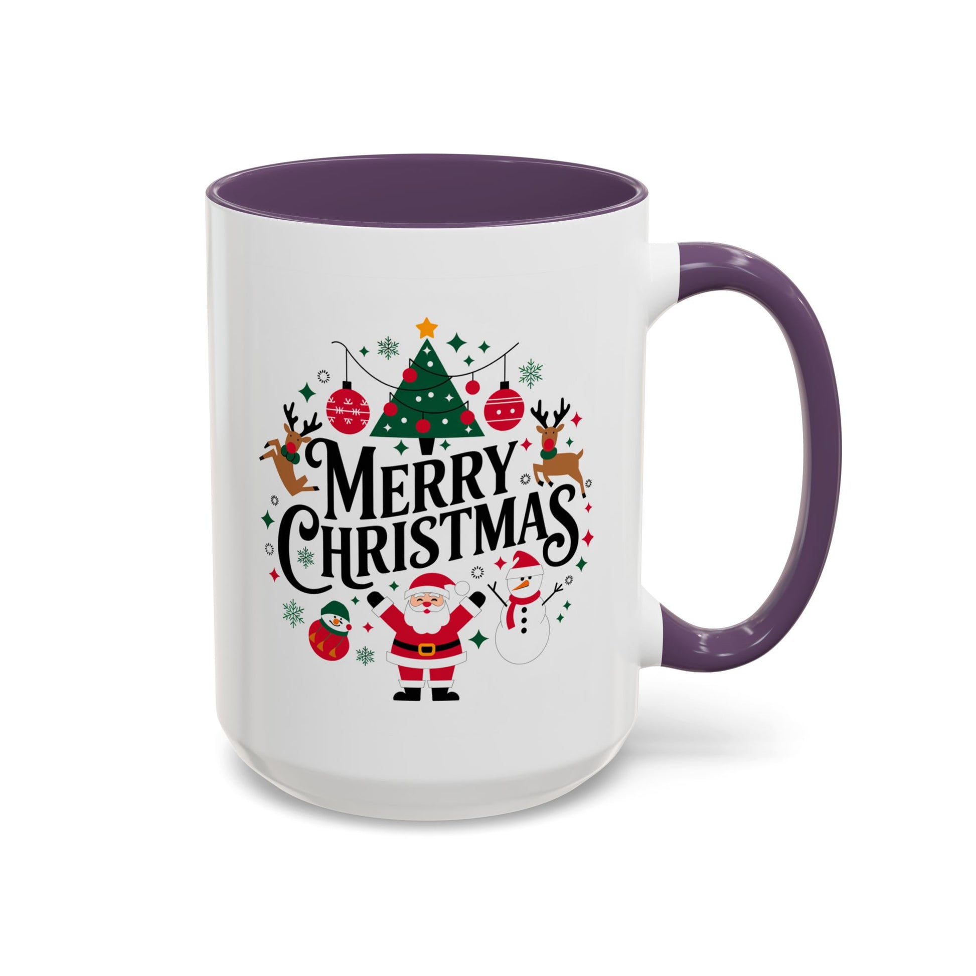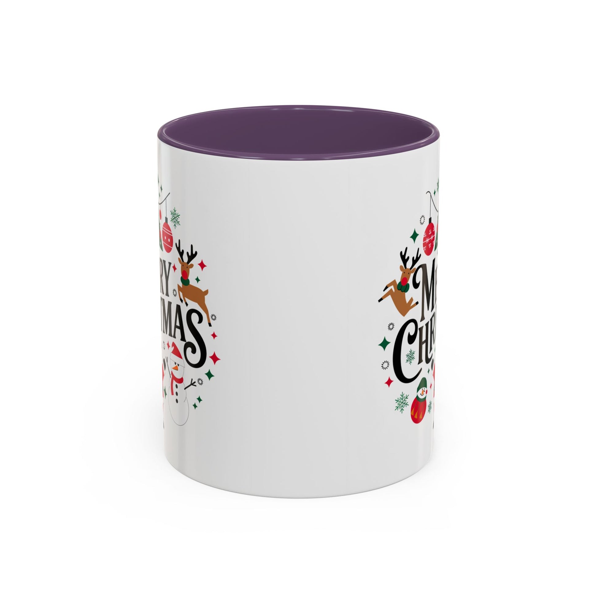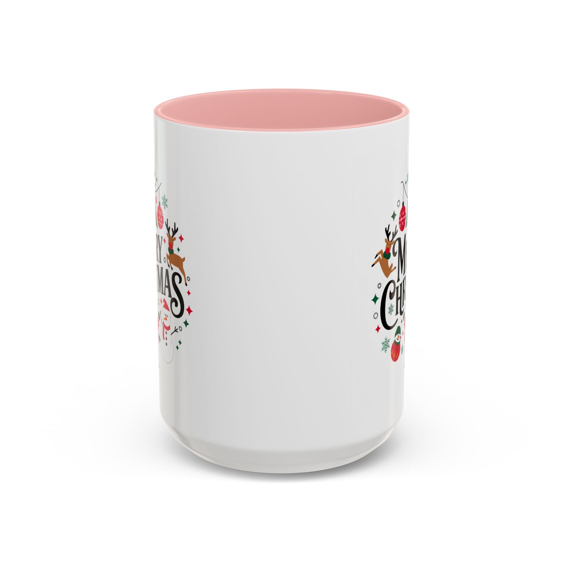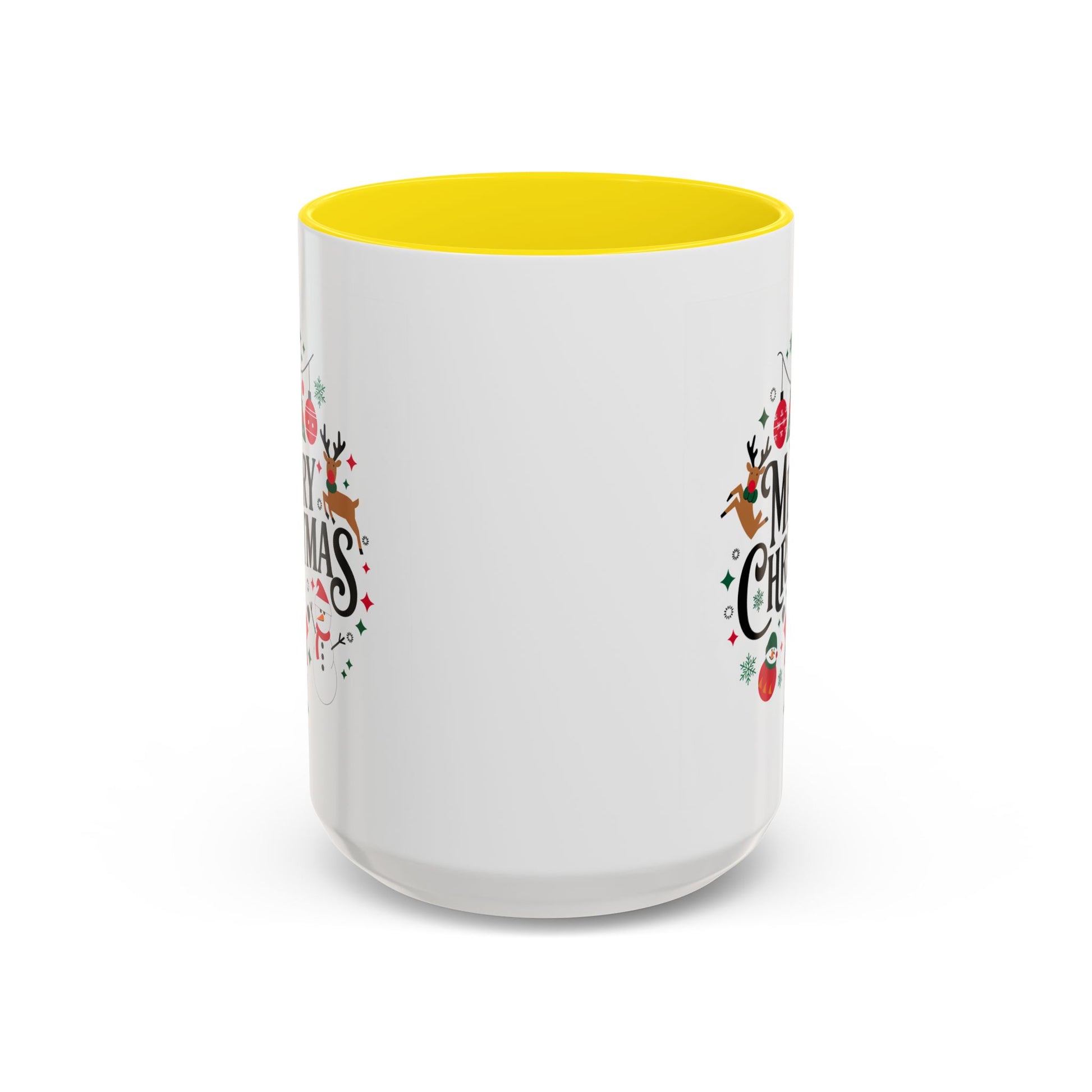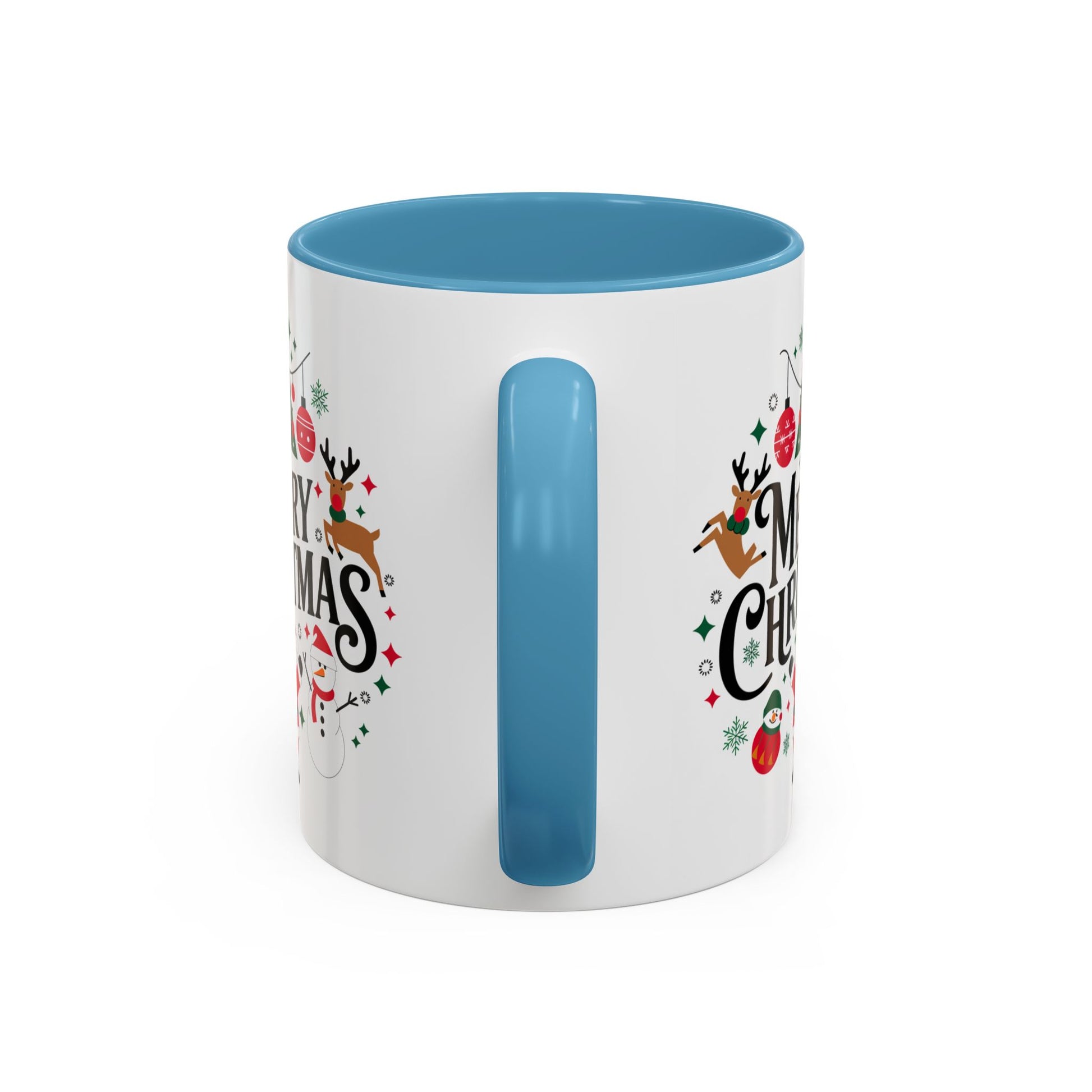Christmas Mug - Merry Christmas Black Text Santa Reindeer Snowmen Ornaments