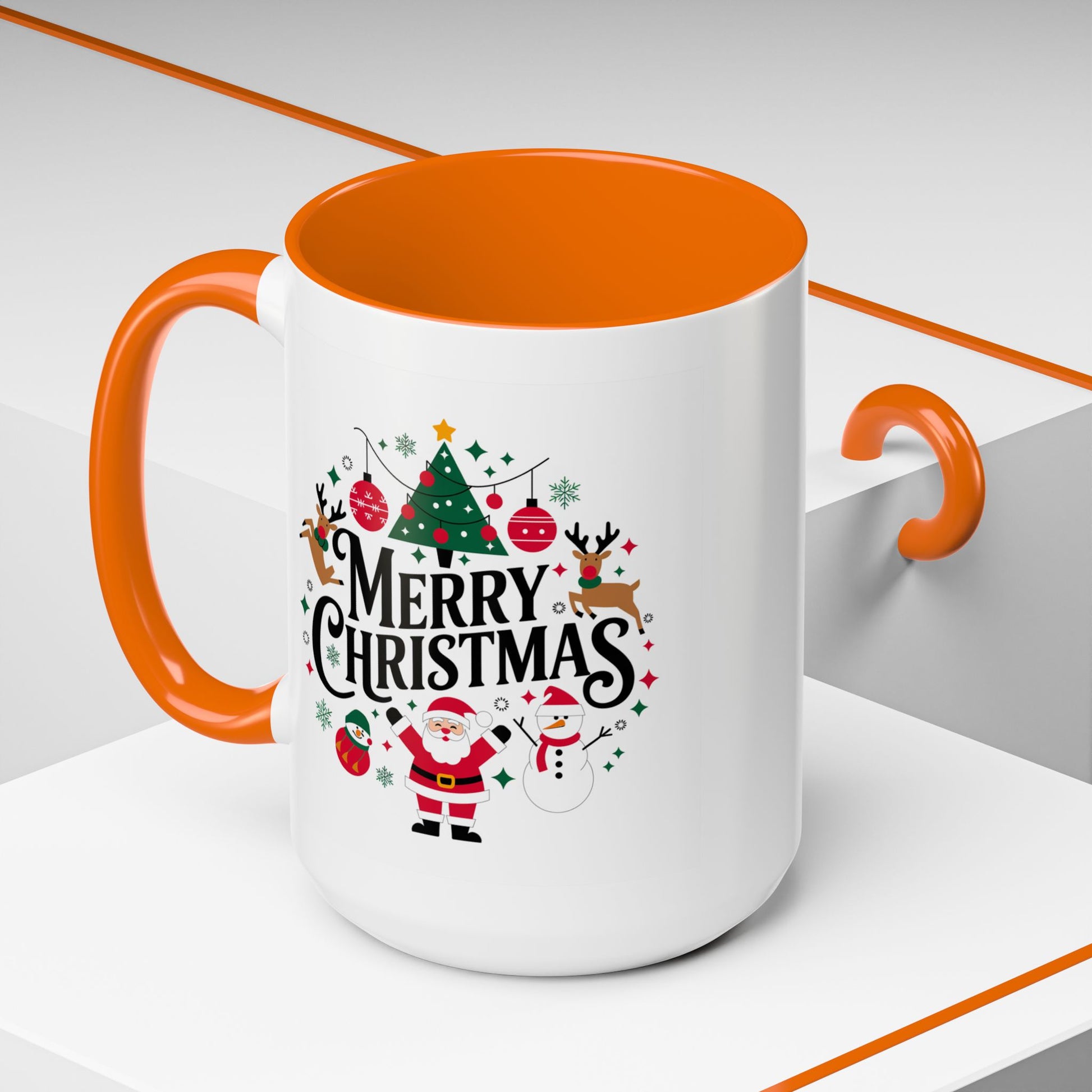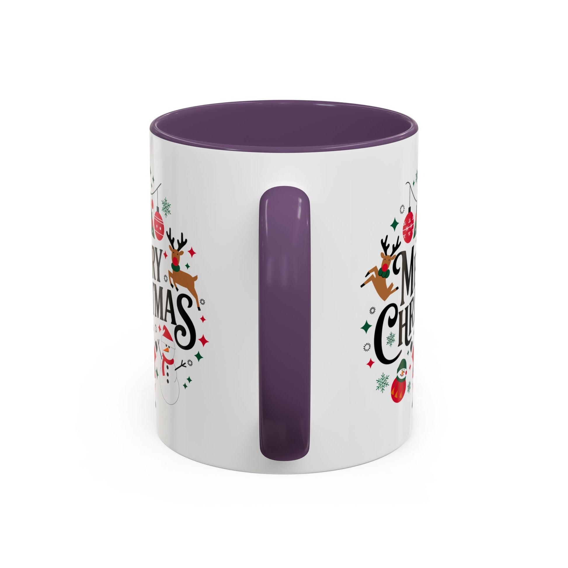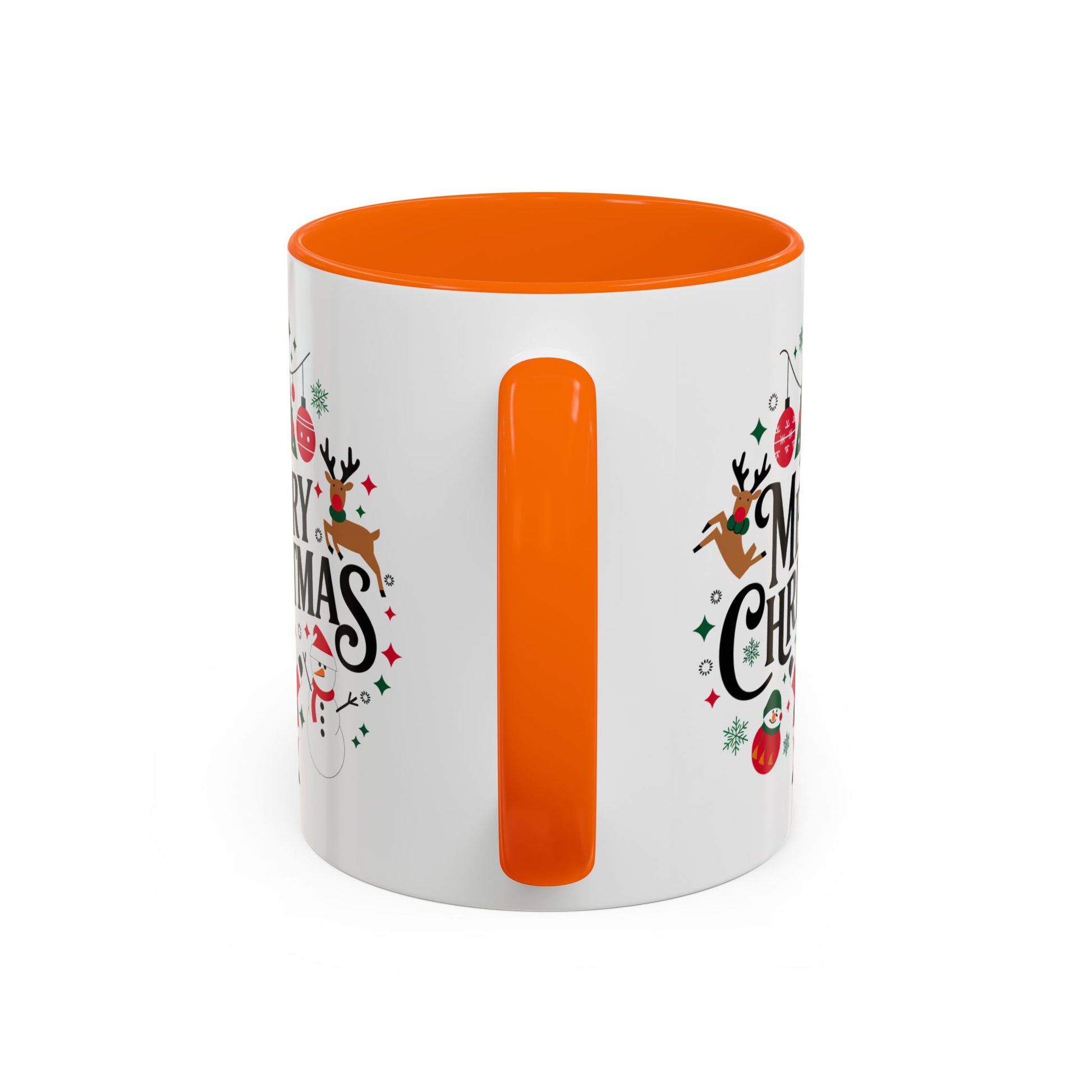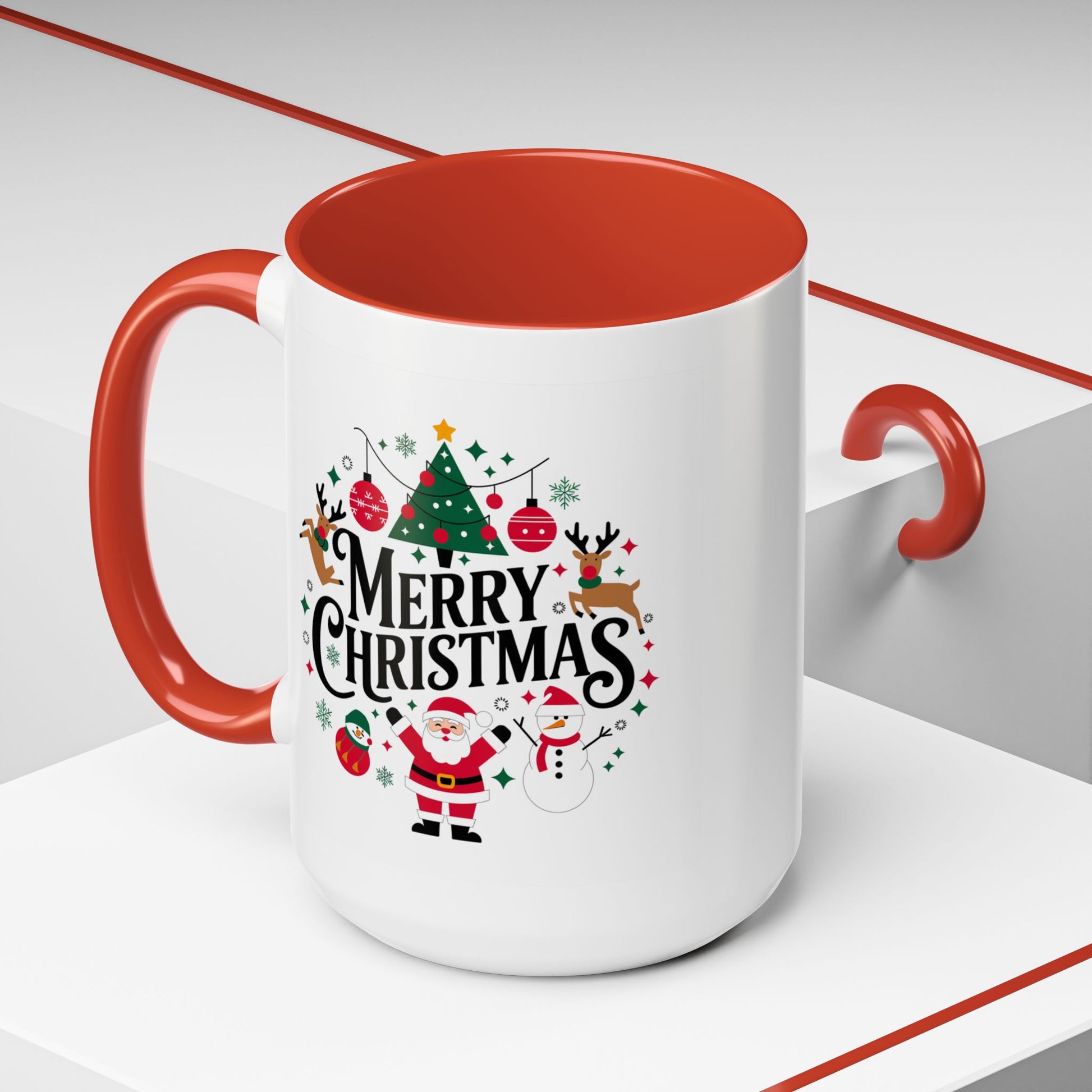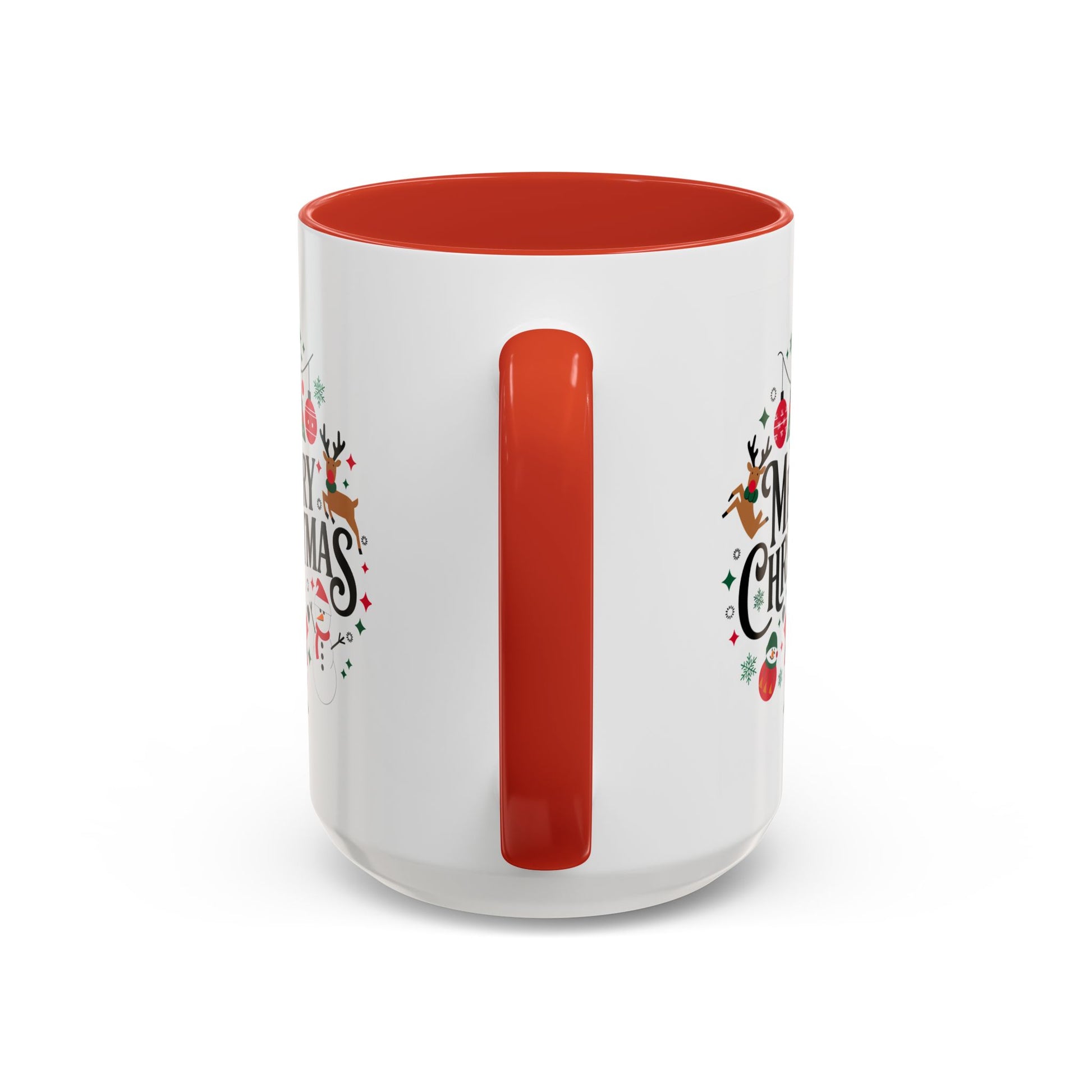 Christmas Mug - Merry Christmas Black Text Santa Reindeer Snowmen Ornaments