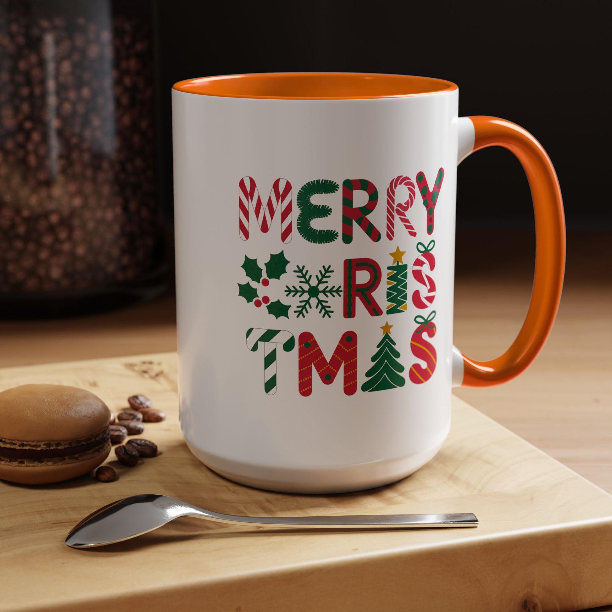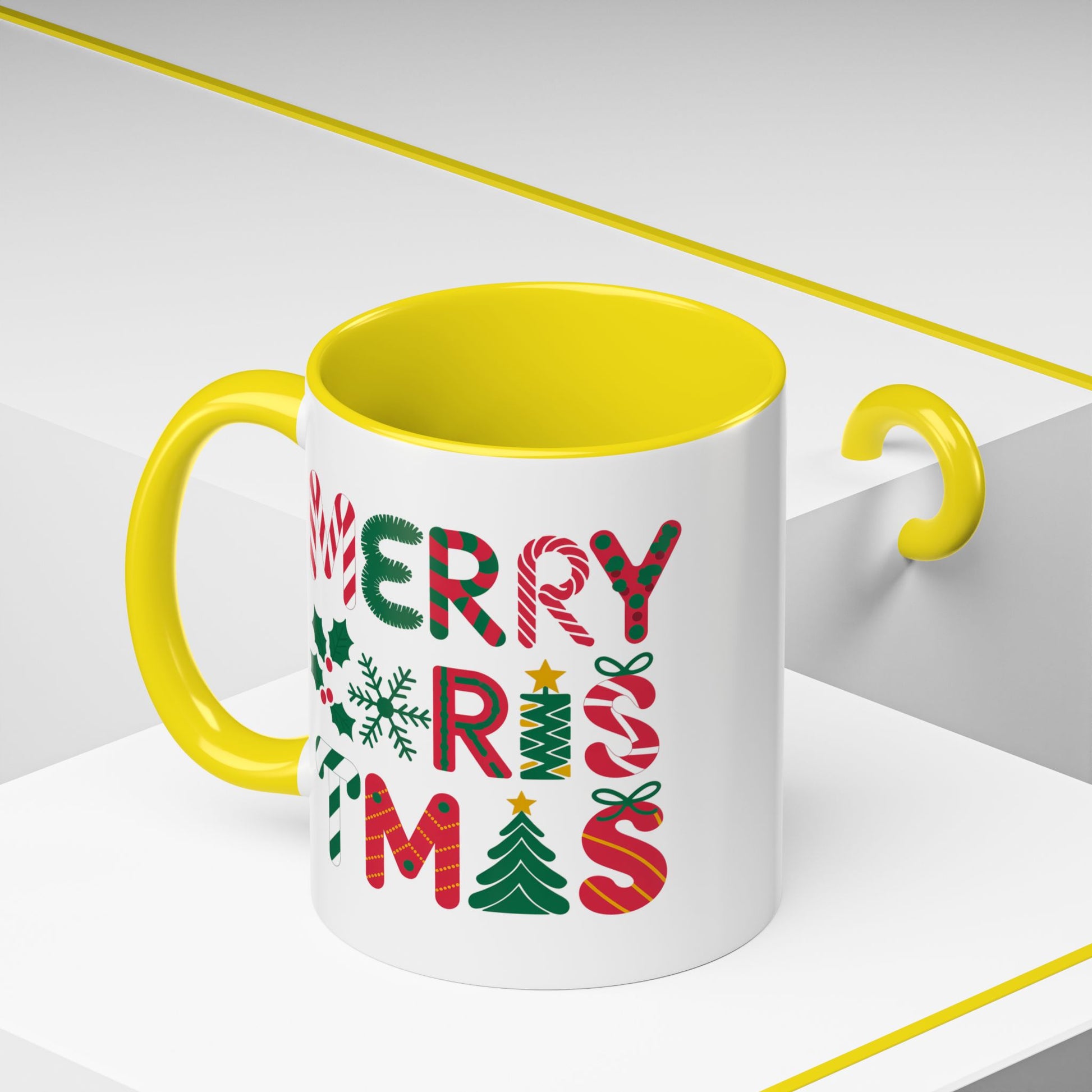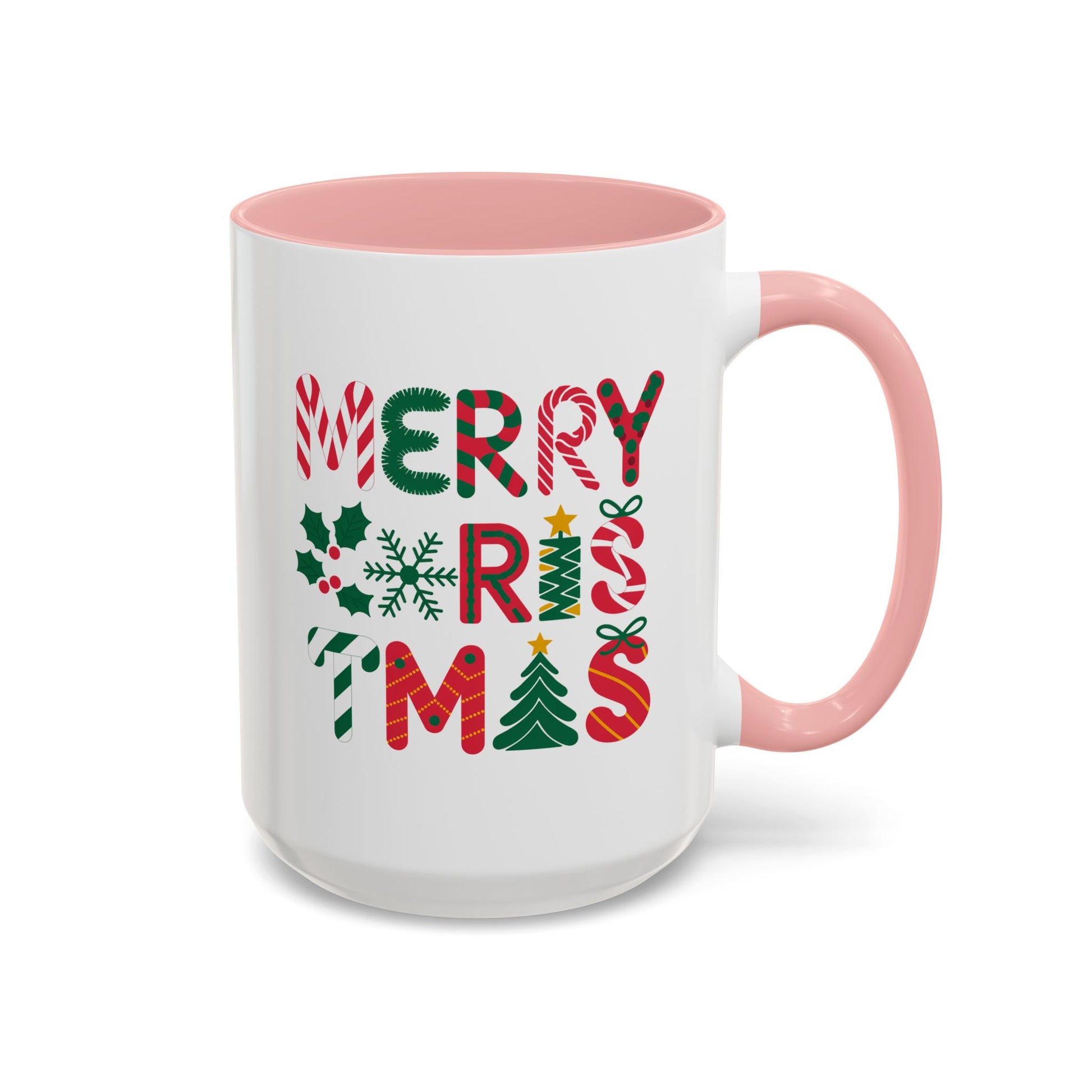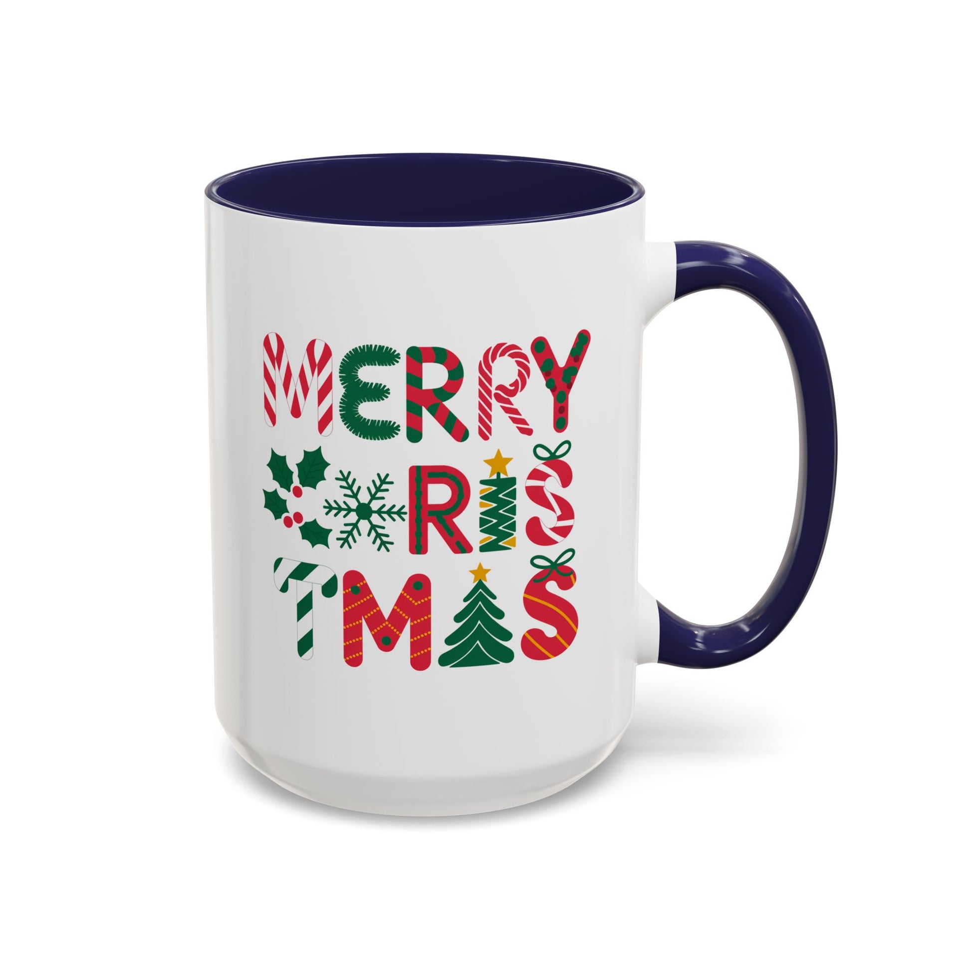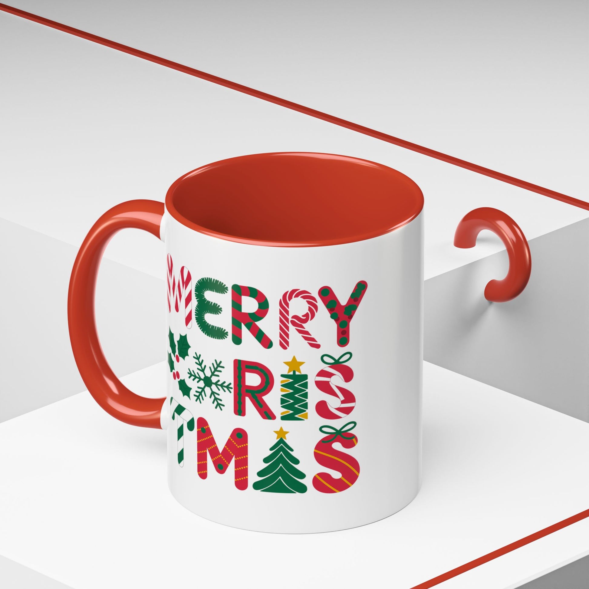Christmas Mug - Merry Christmas Red Green & Gold Decorative Text