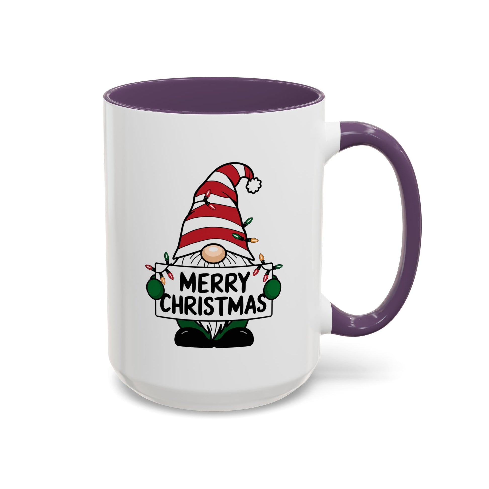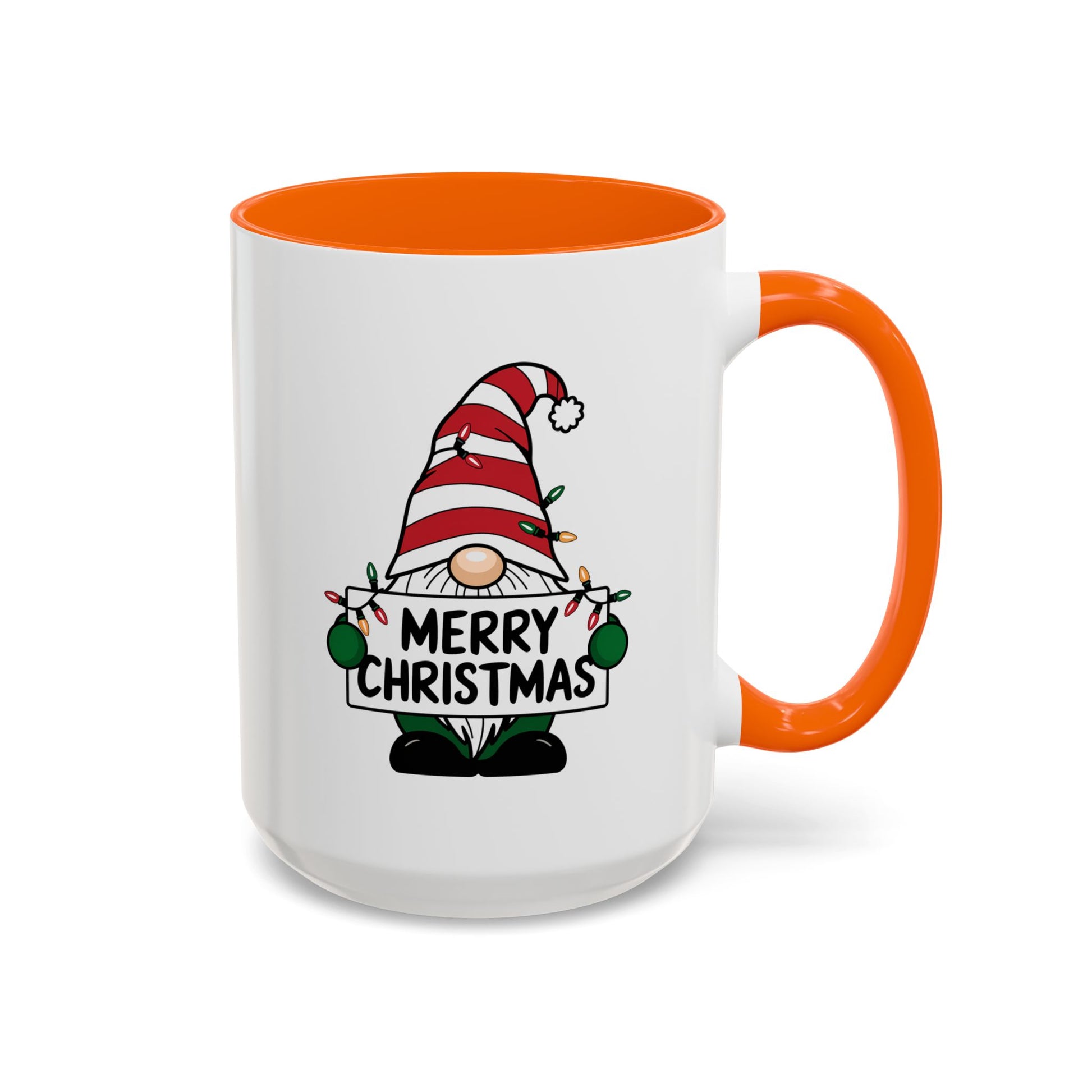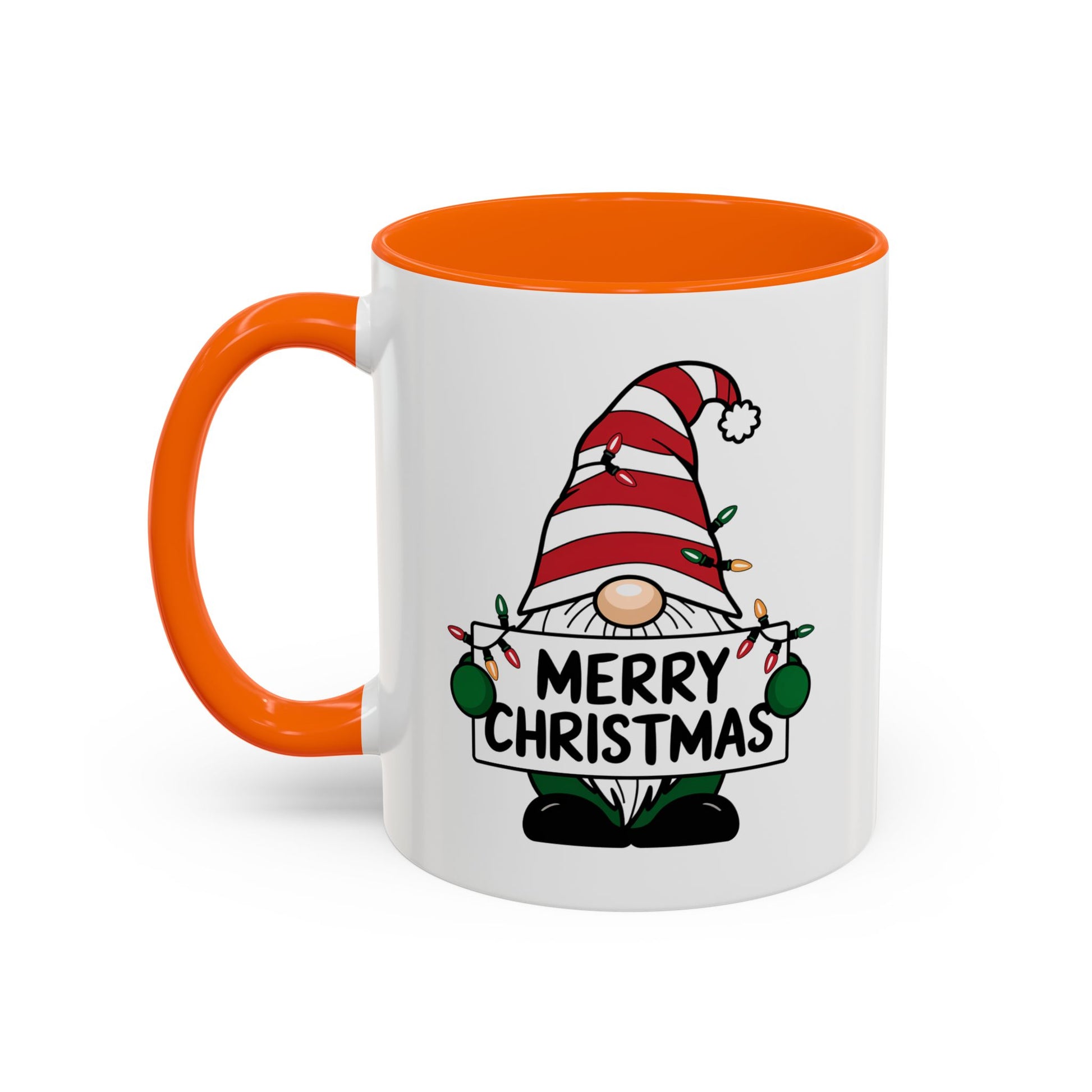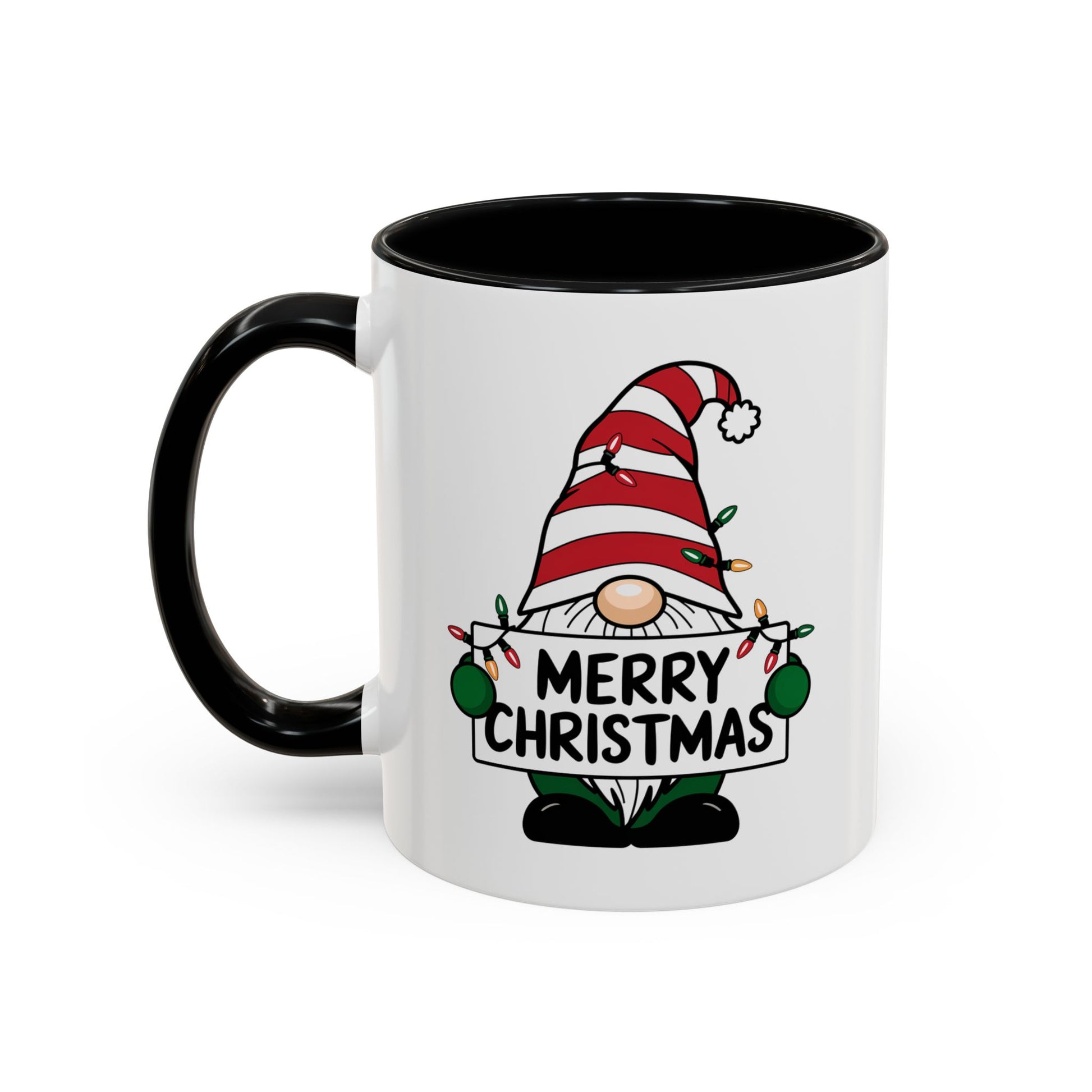 Christmas Mug - Merry Christmas Black Text Gnome Lights