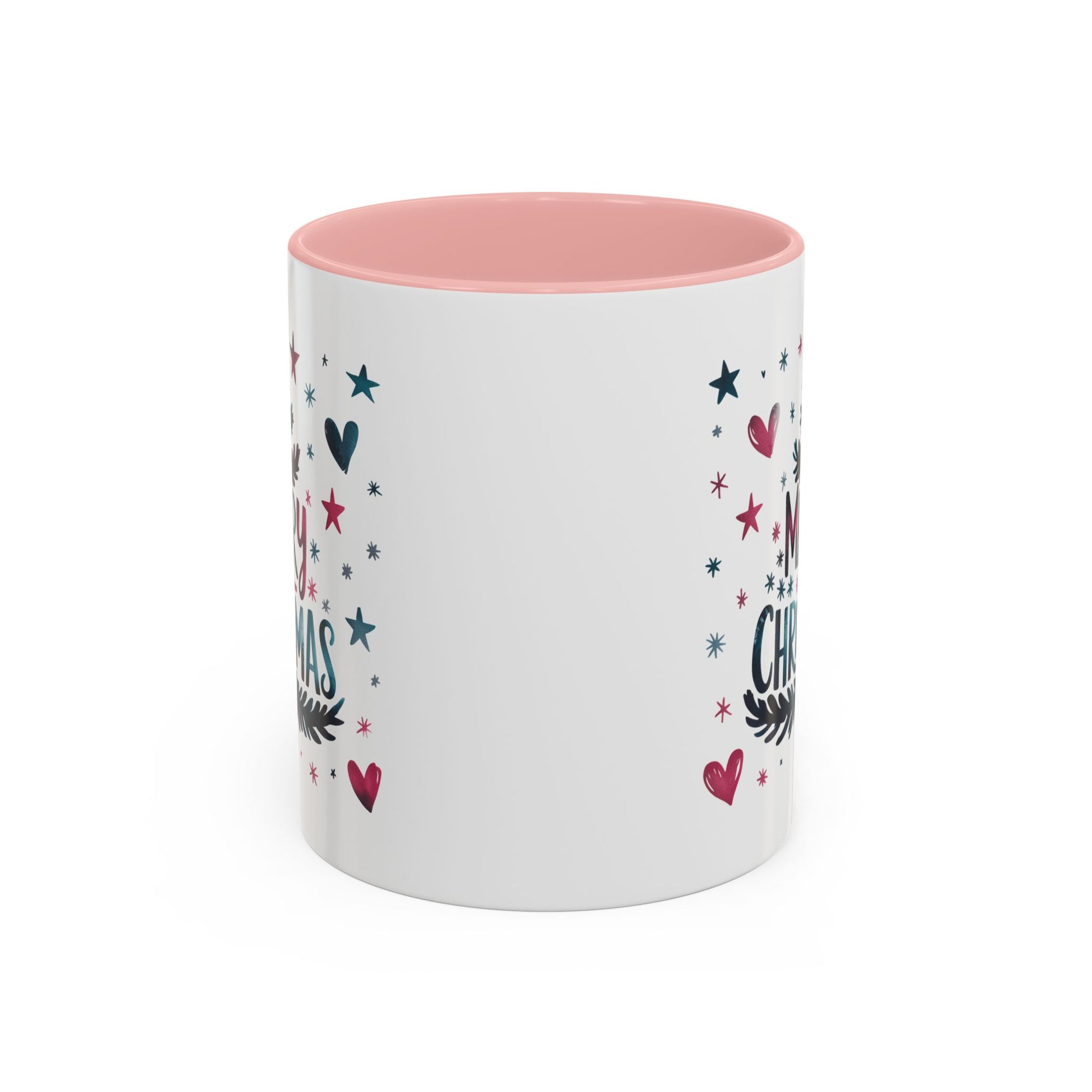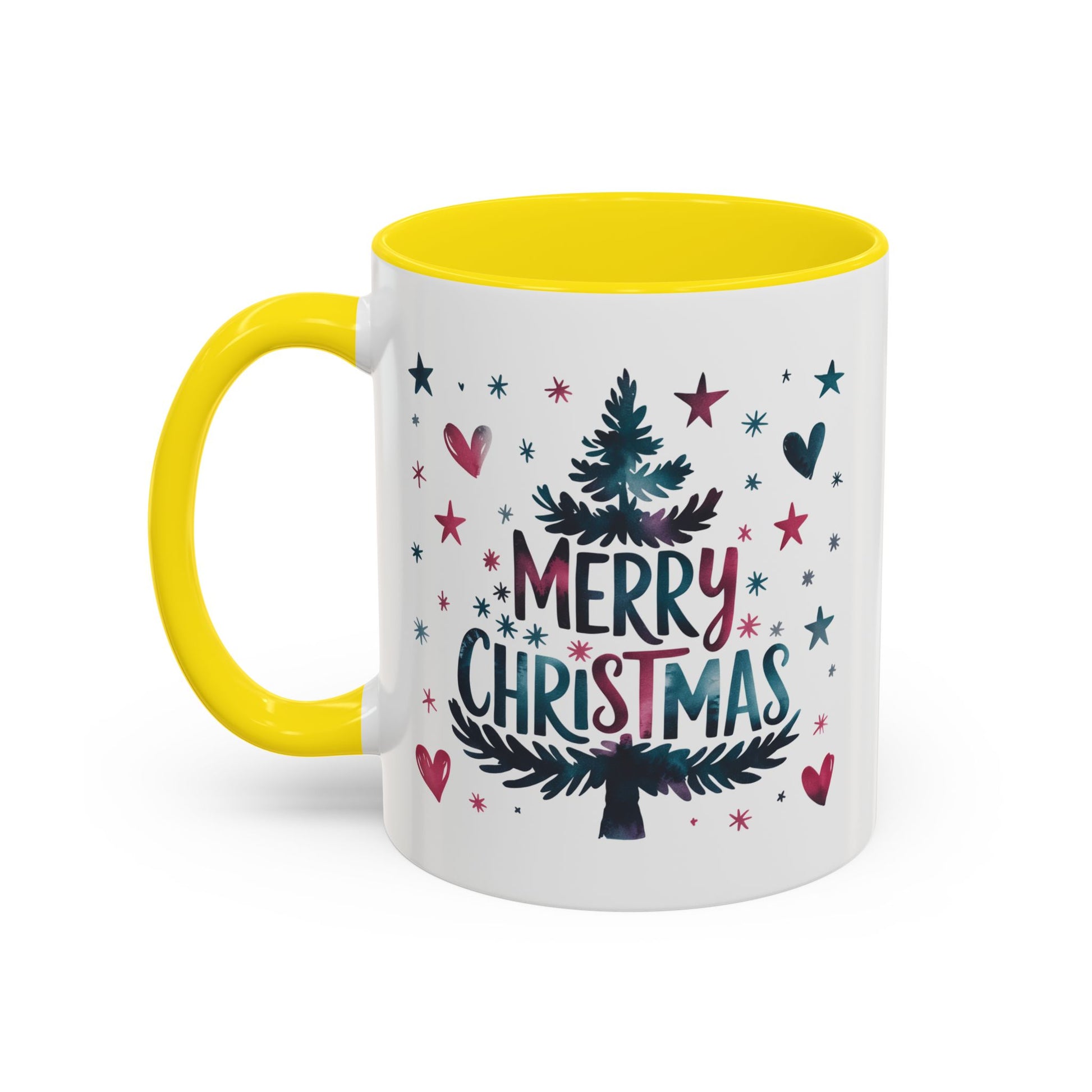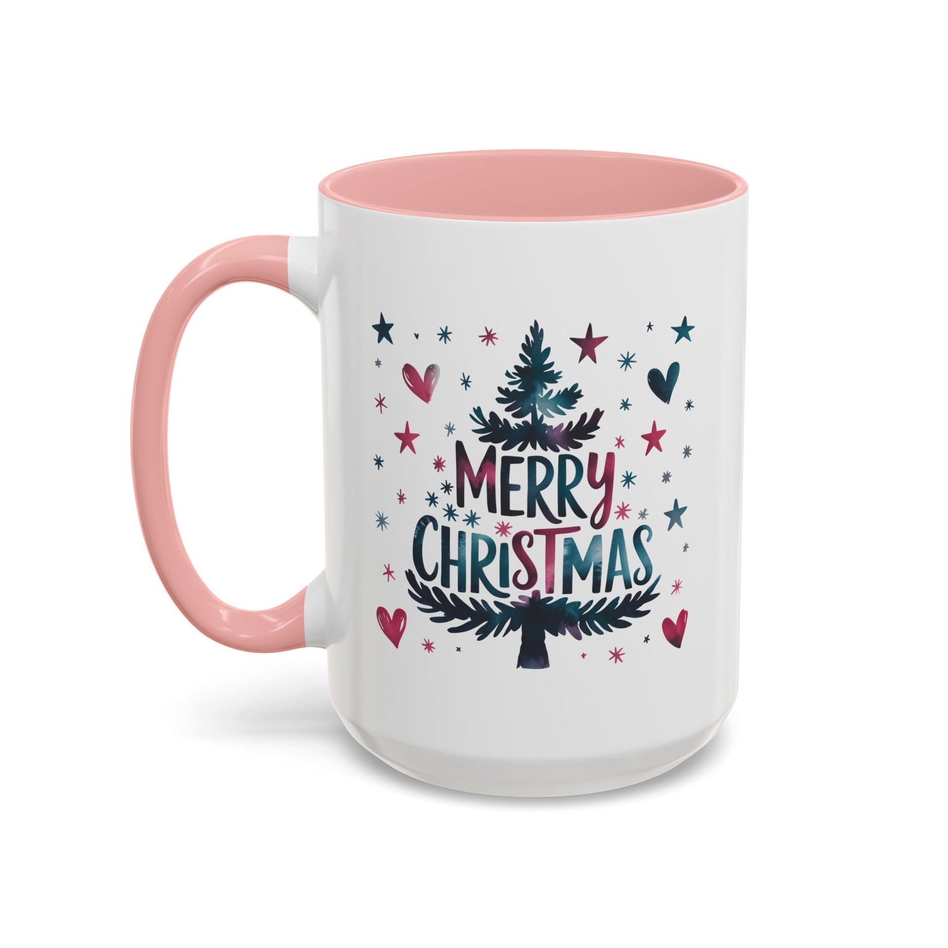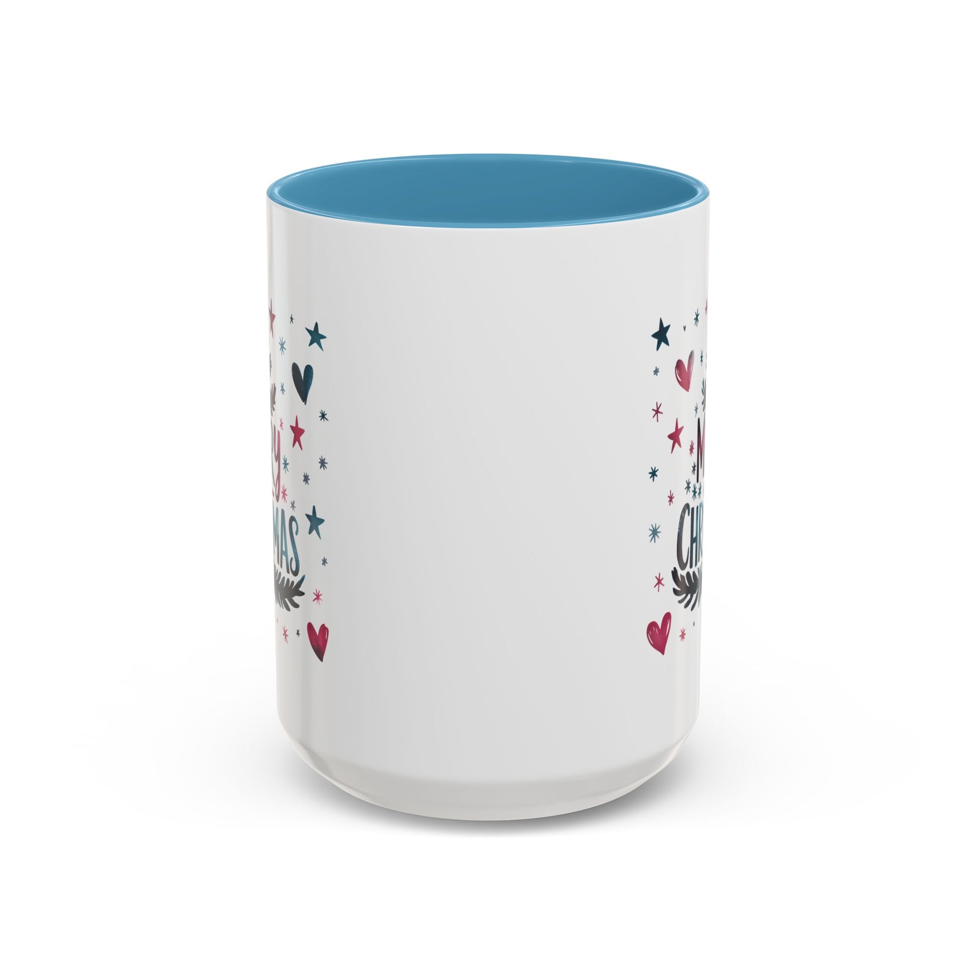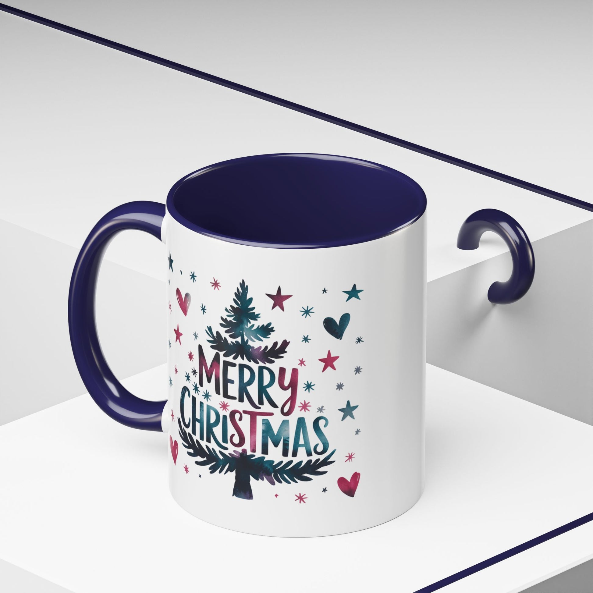 Christmas Mug - Merry Christmas Maroon & Blue Text Tree Hearts Stars