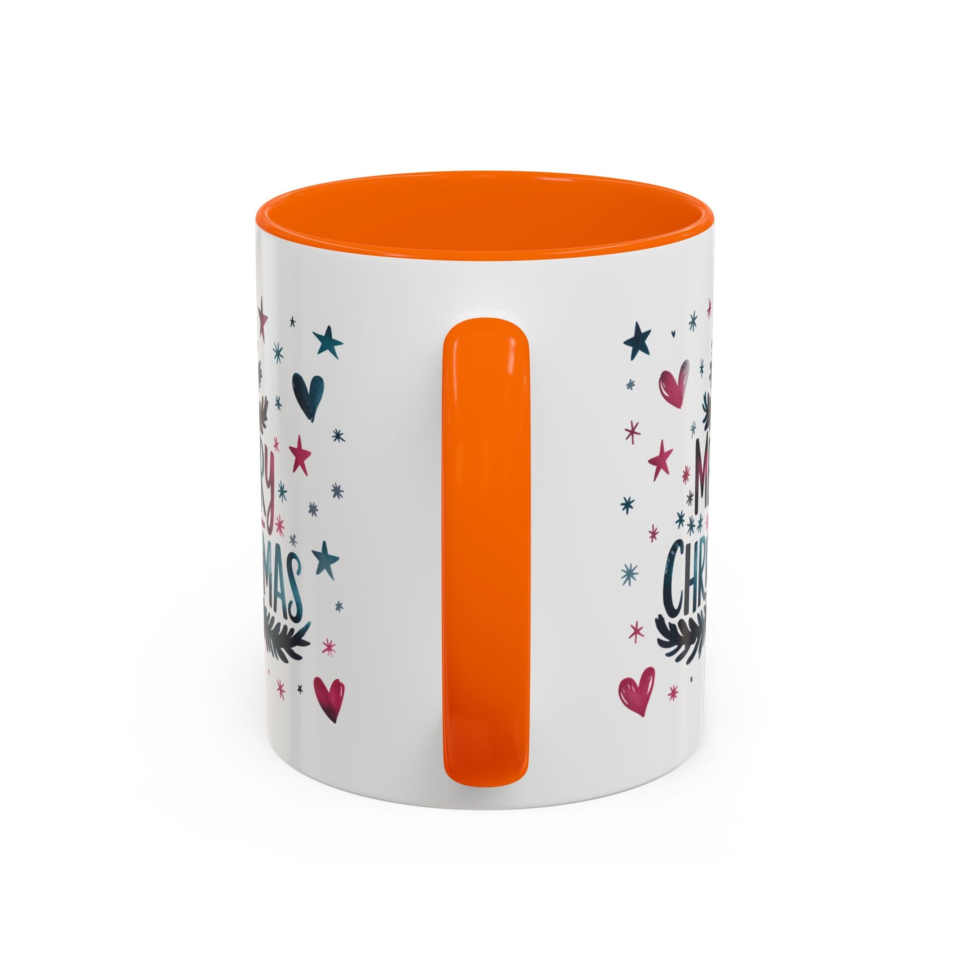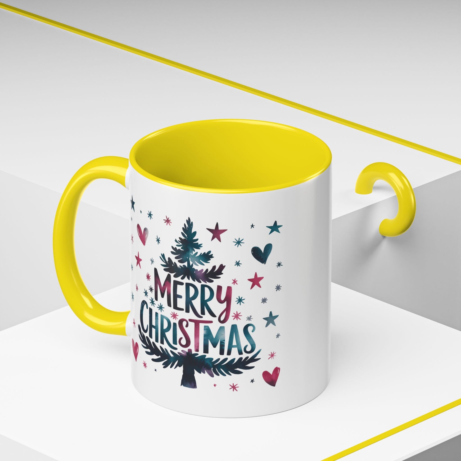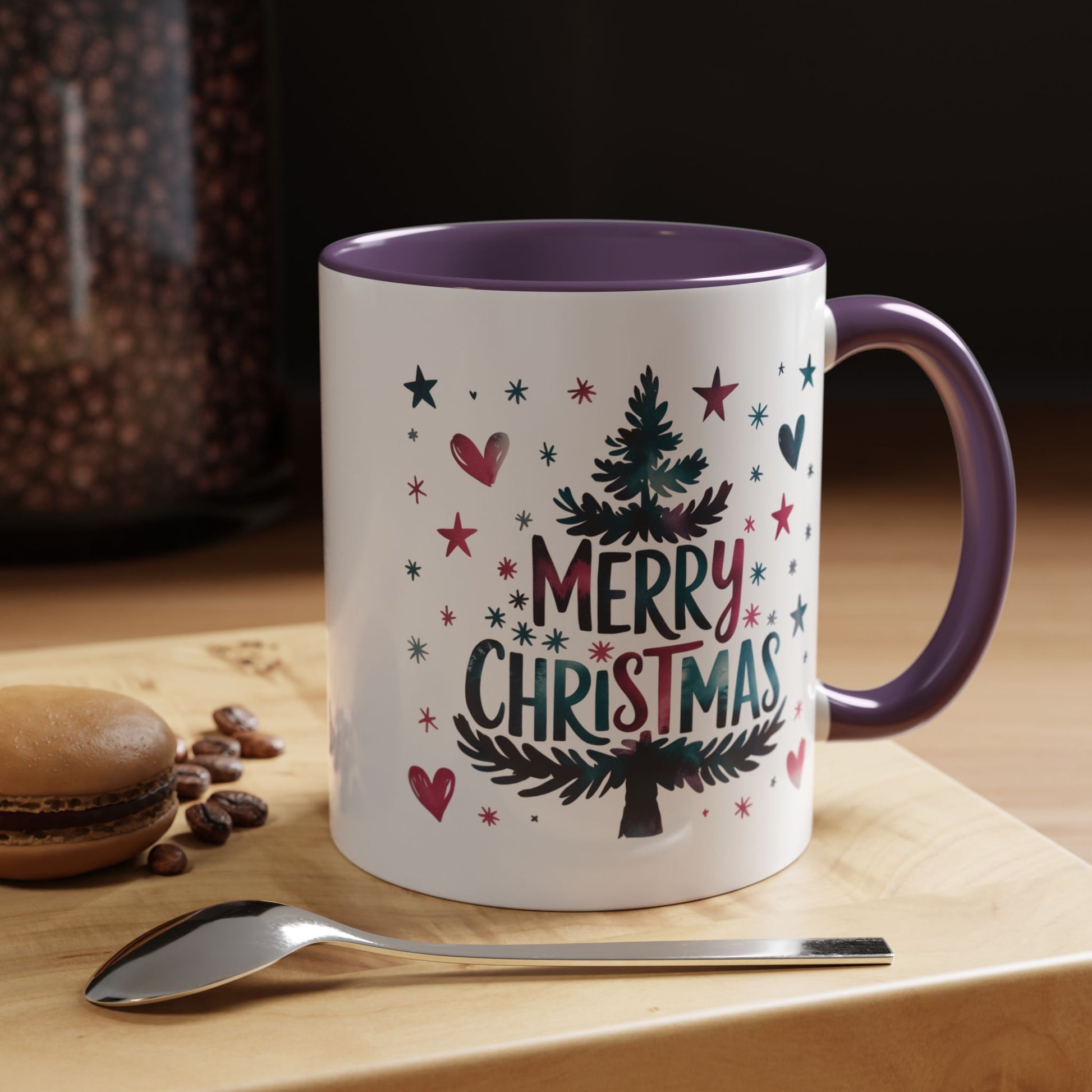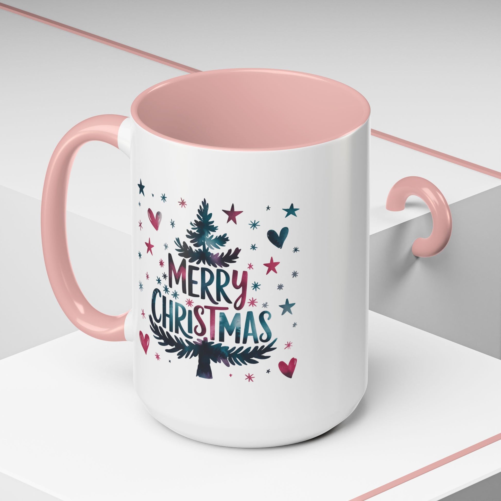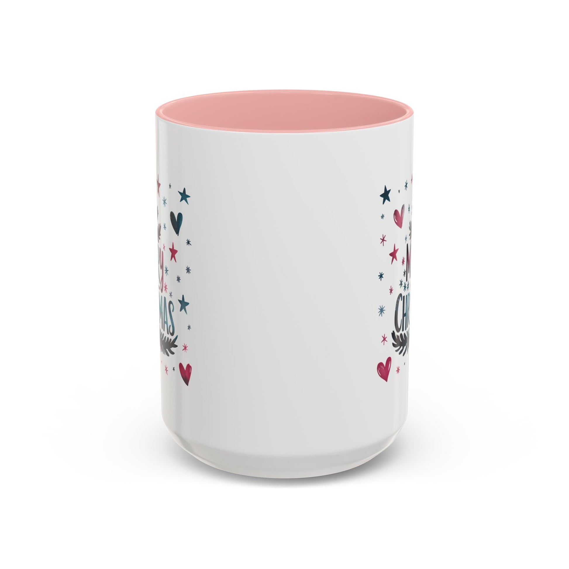 Christmas Mug - Merry Christmas Maroon & Blue Text Tree Hearts Stars