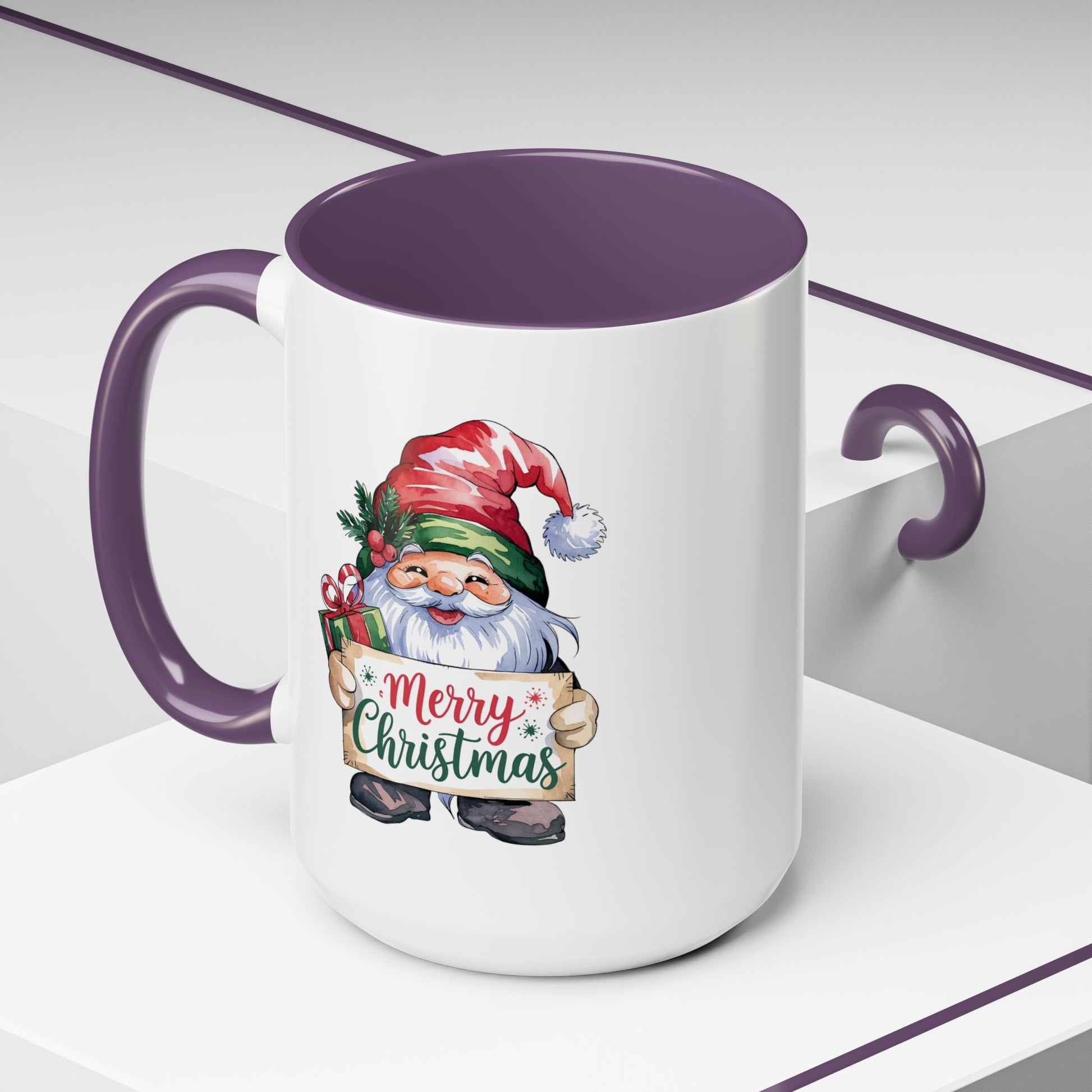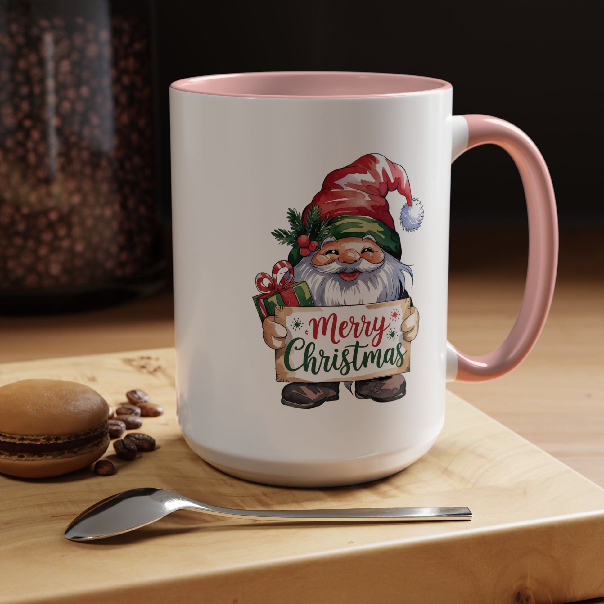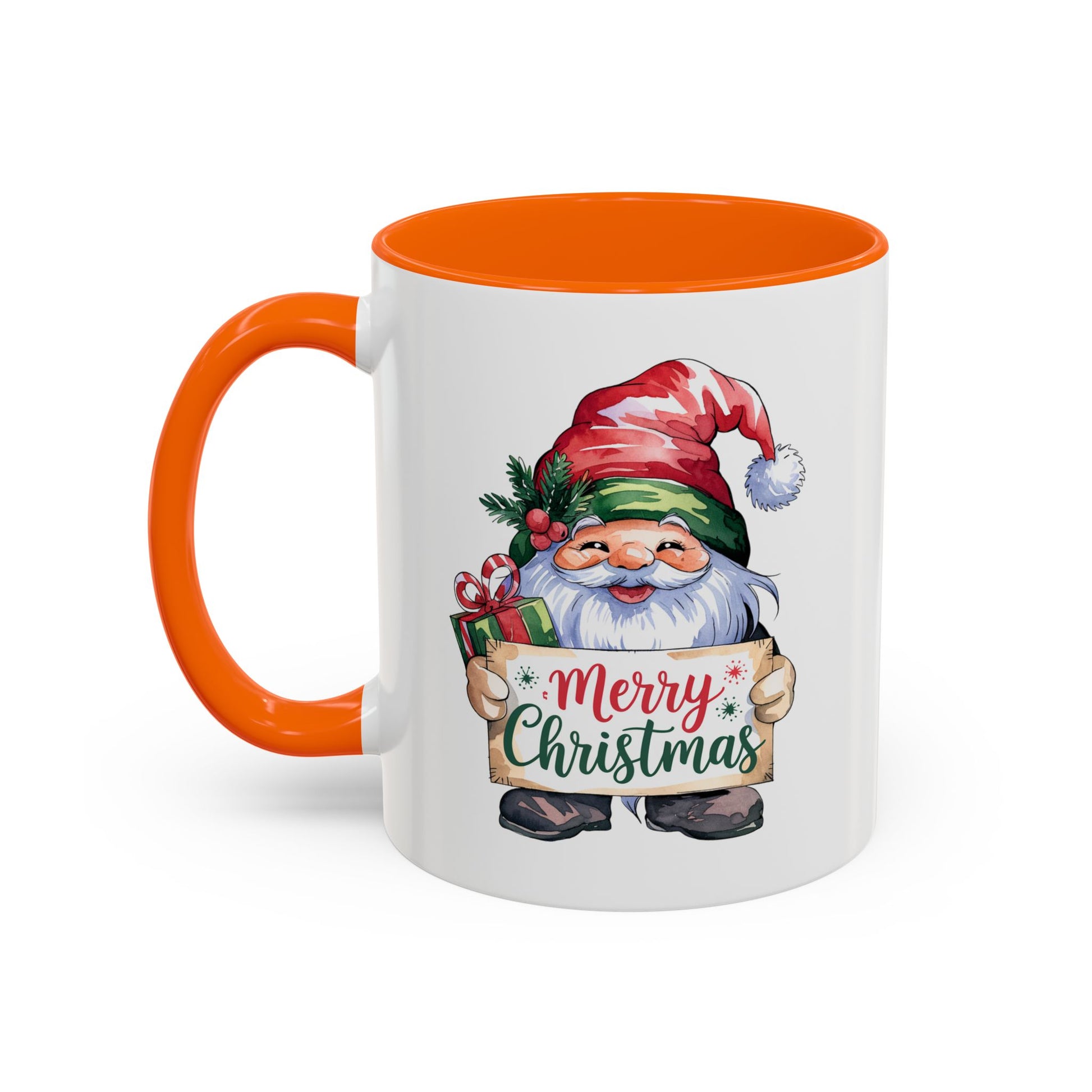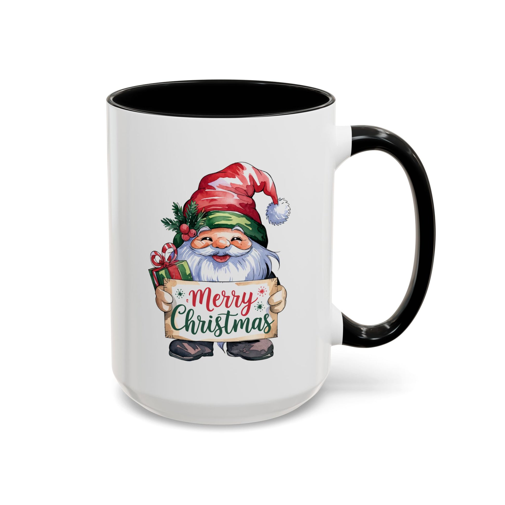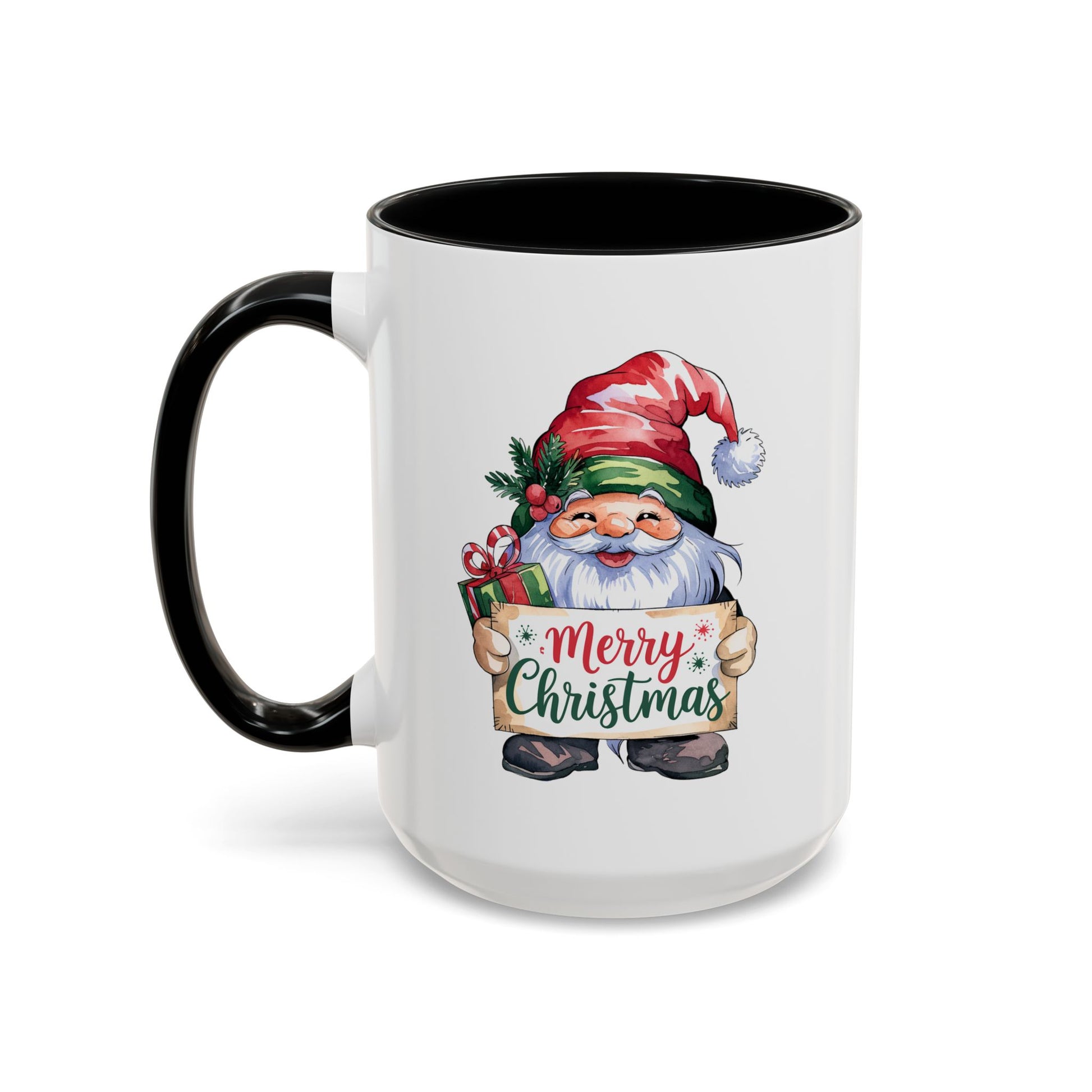 Christmas Mug - Merry Christmas Red & Green Text Gnome Present