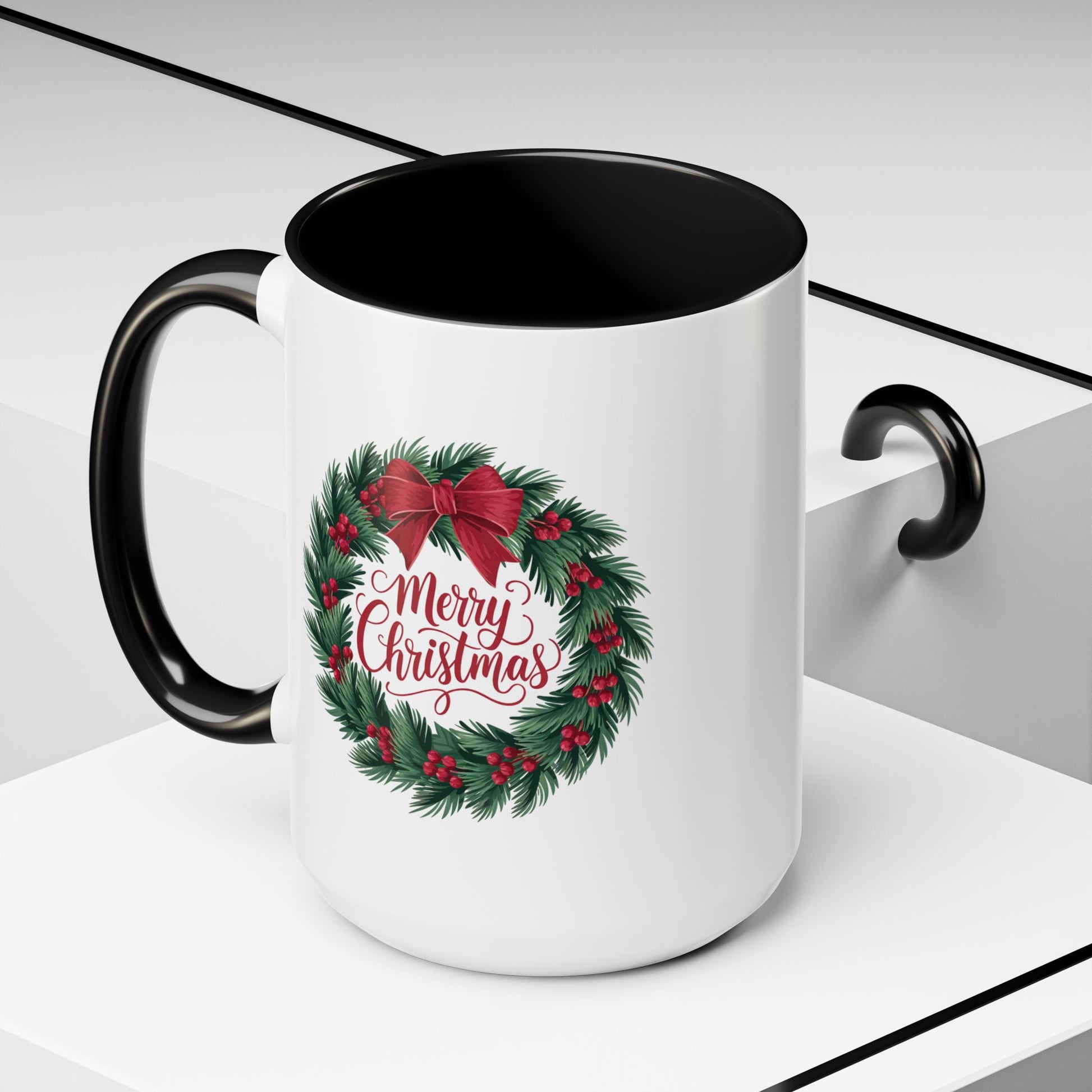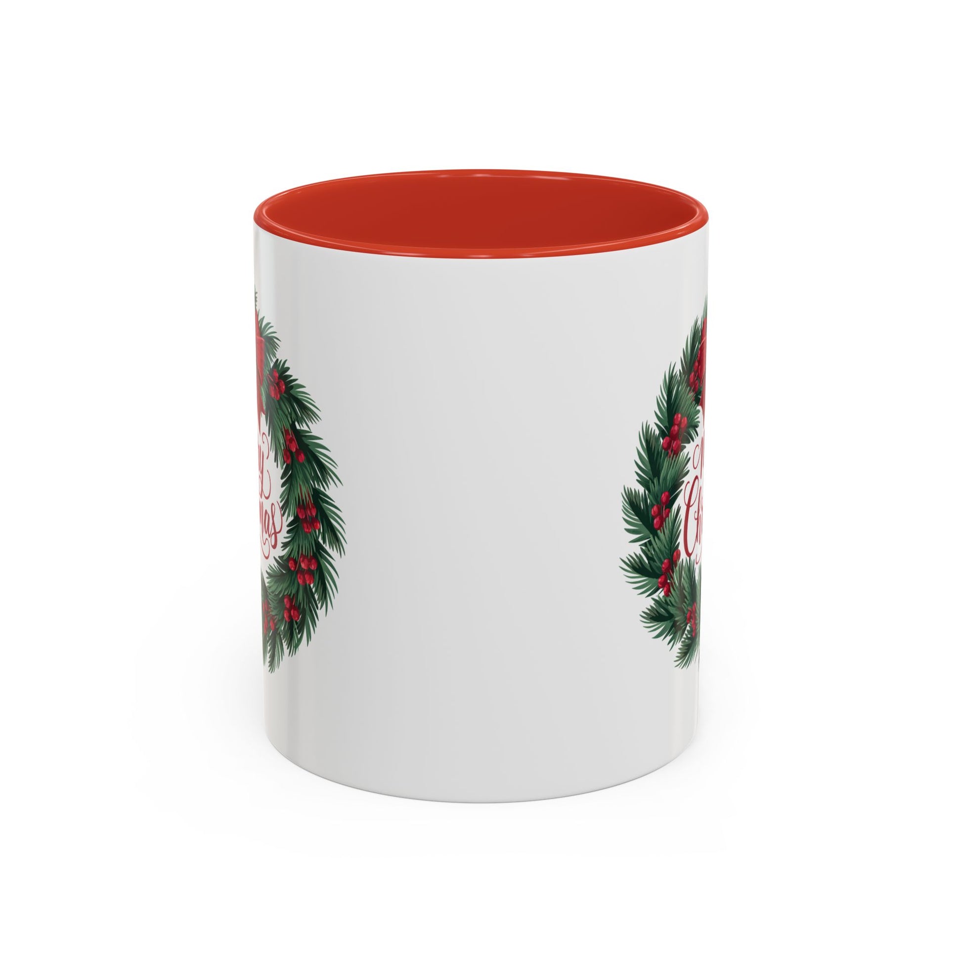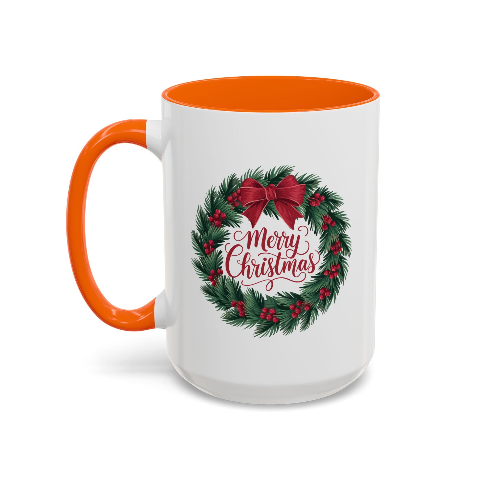 Christmas Mug - Merry Christmas Red Text Bow Wreath