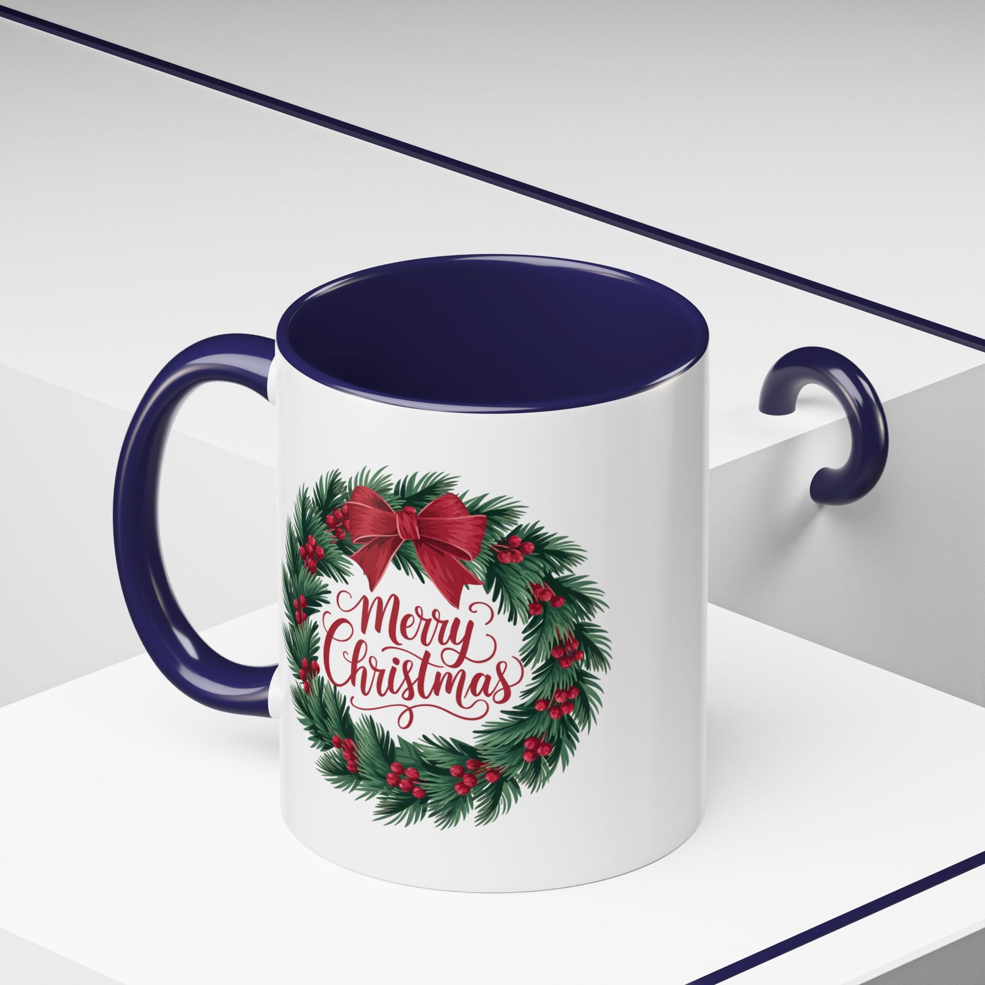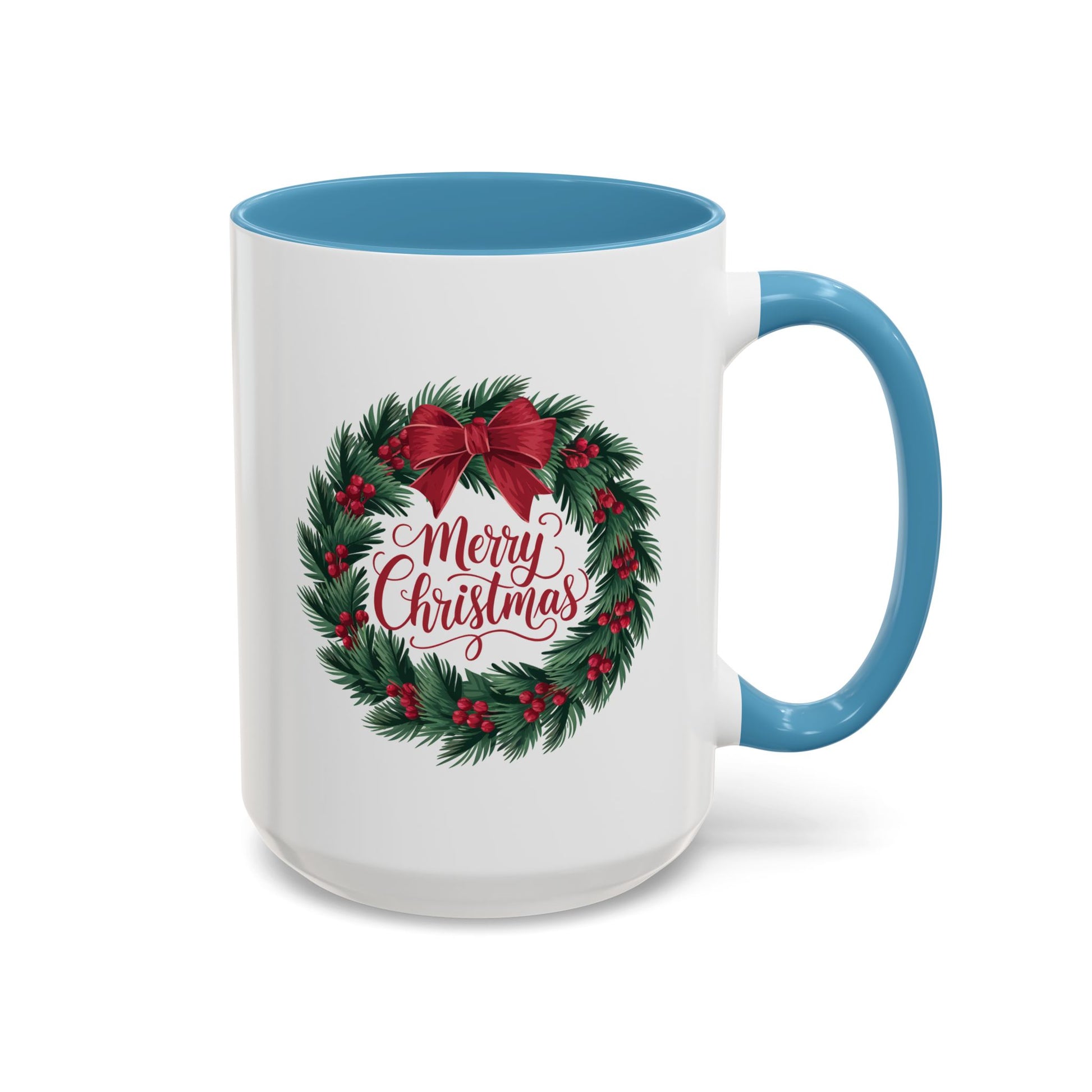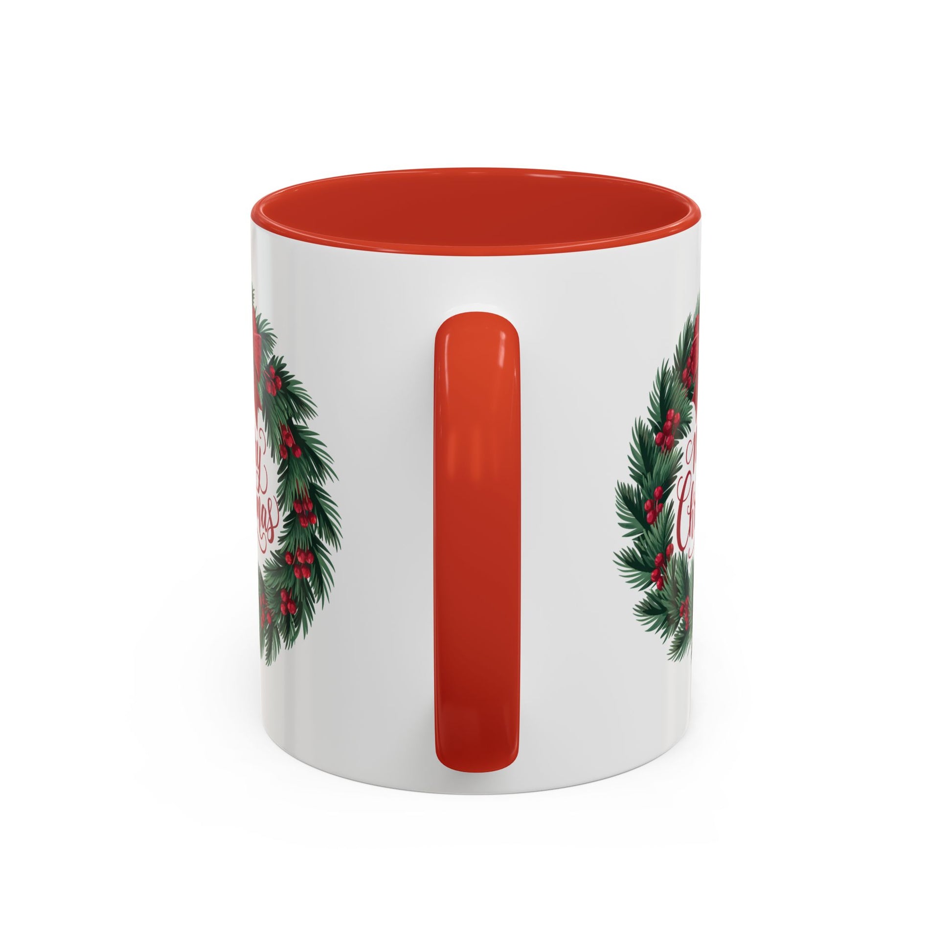 Christmas Mug - Merry Christmas Red Text Bow Wreath