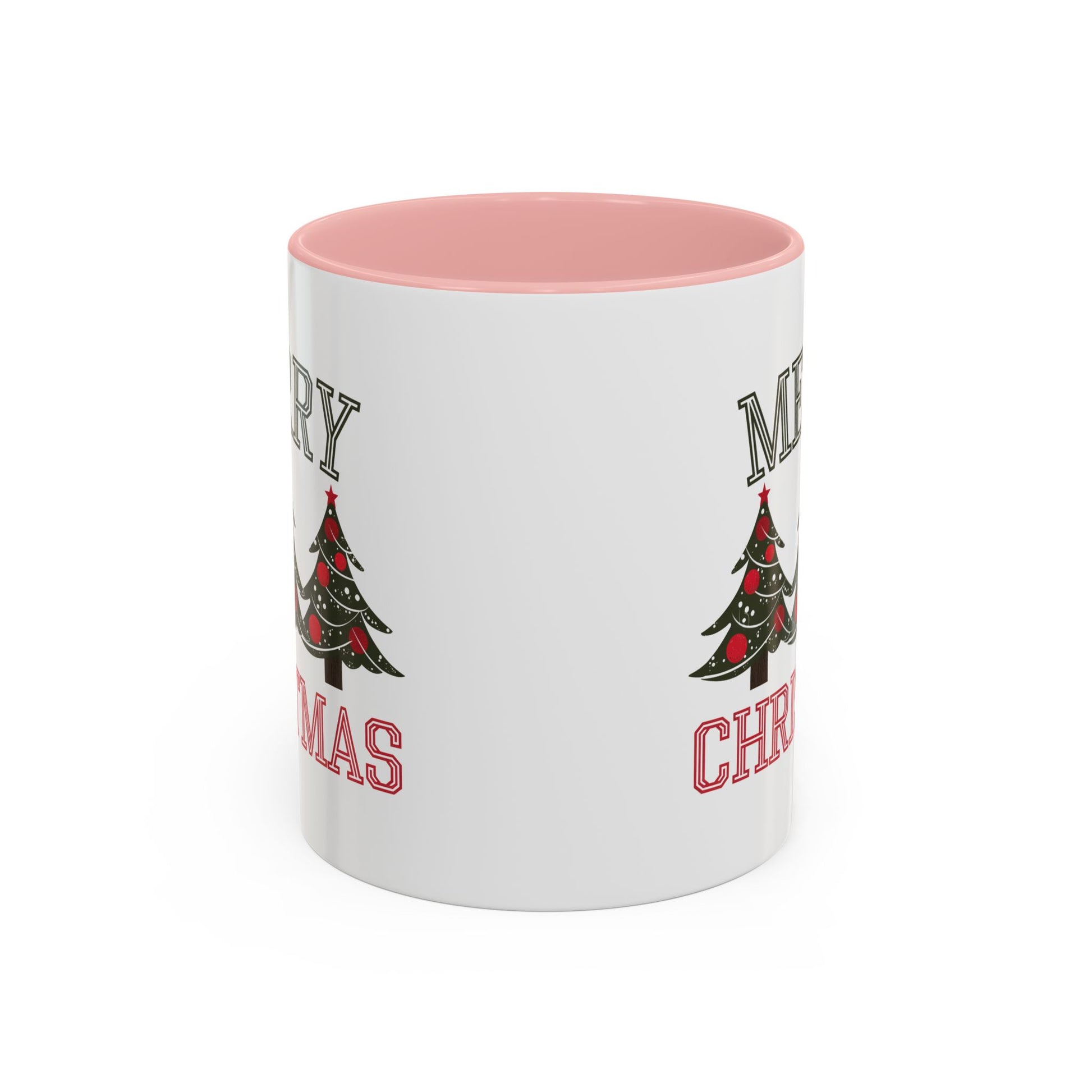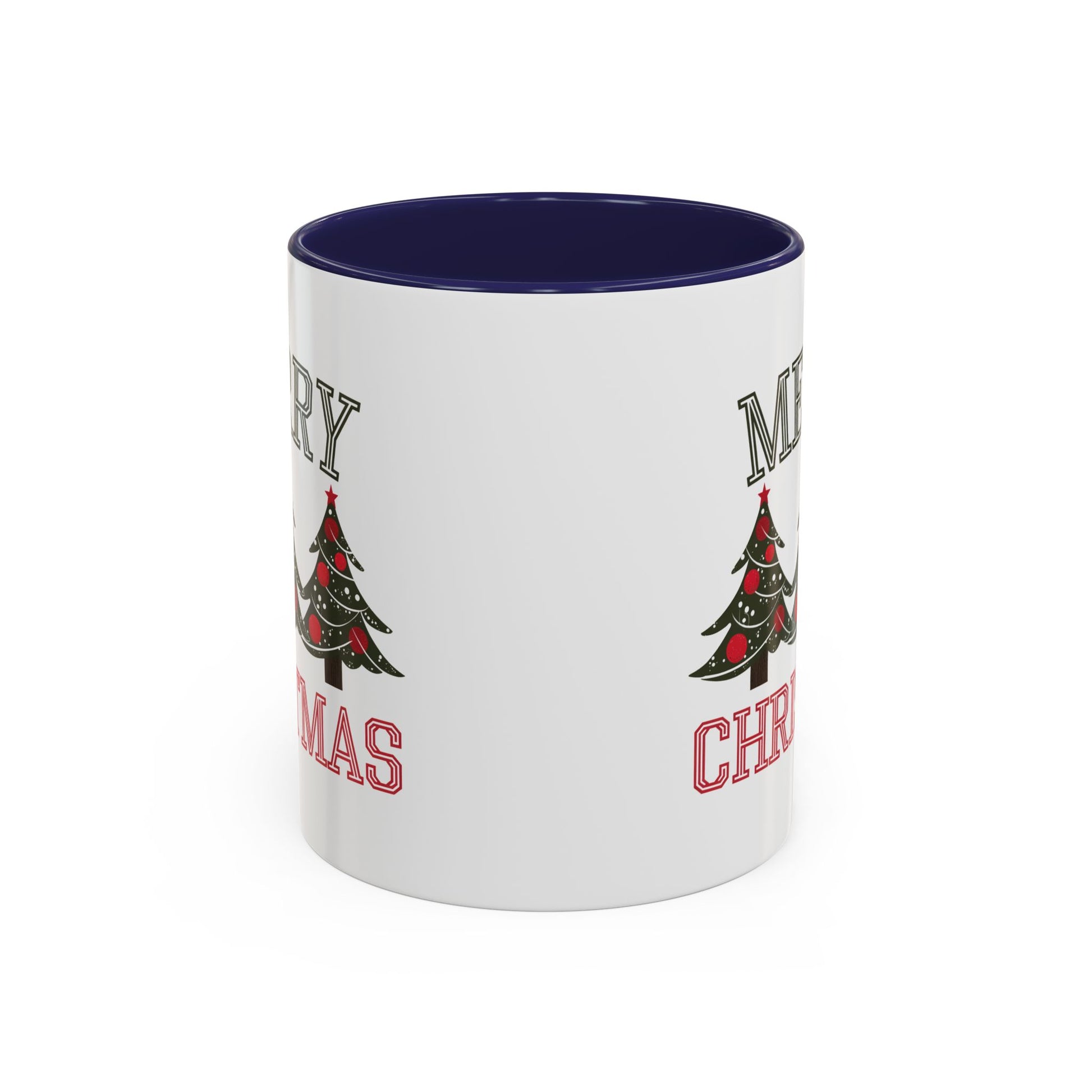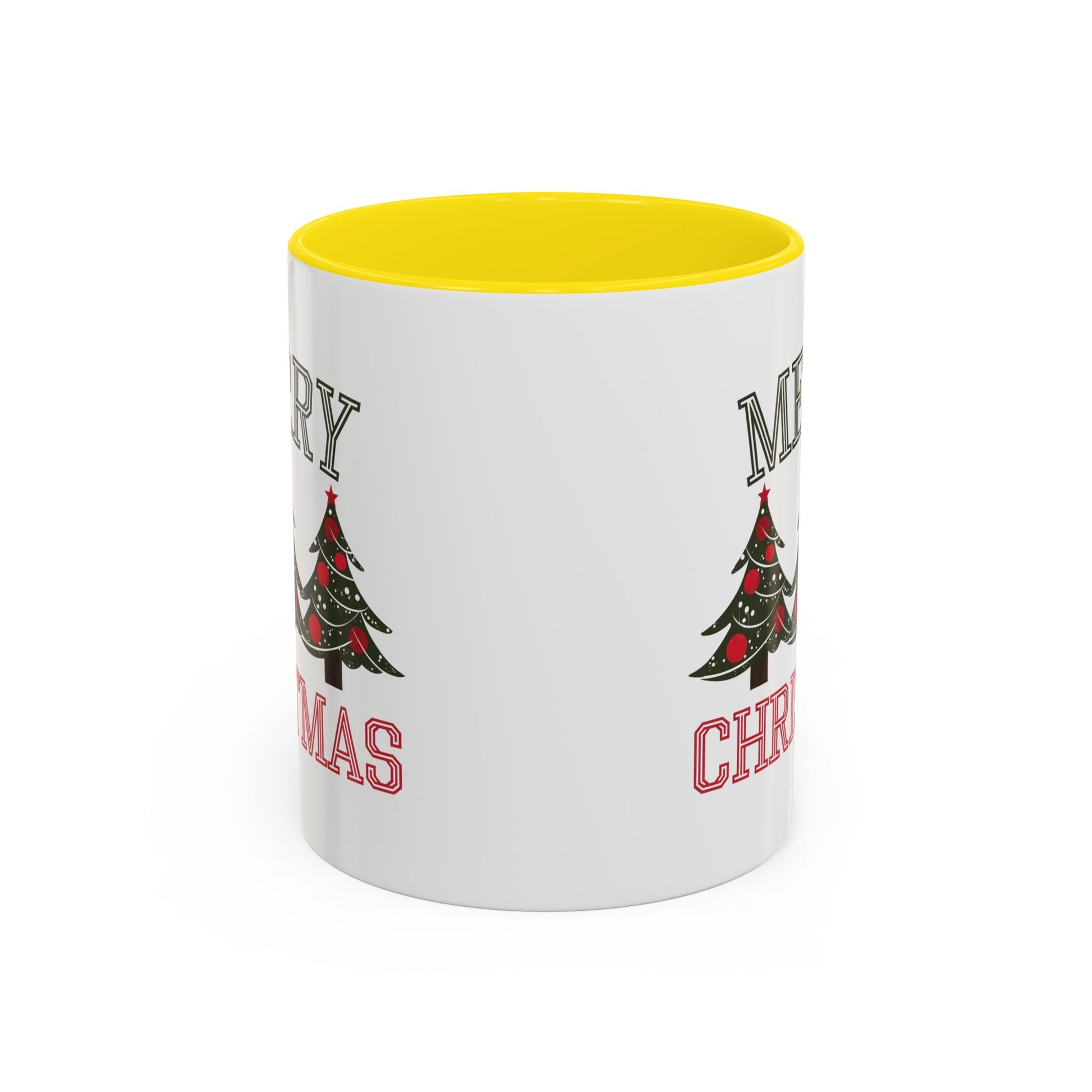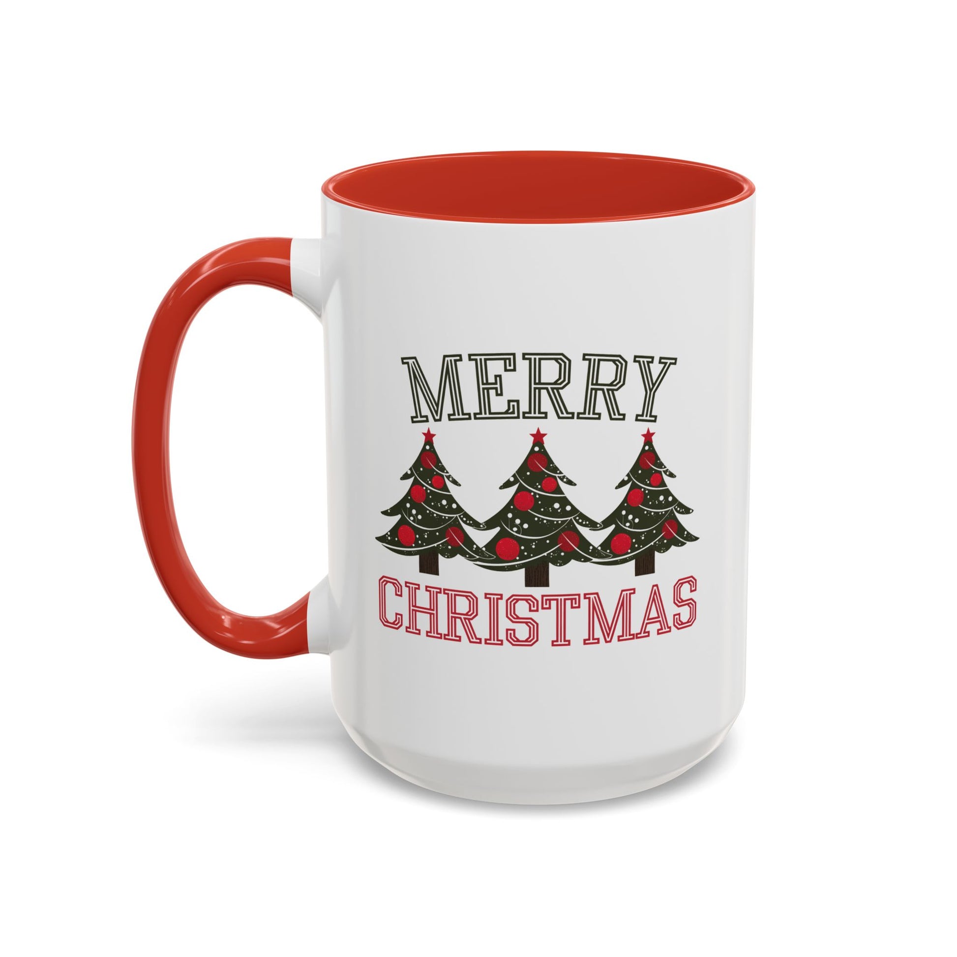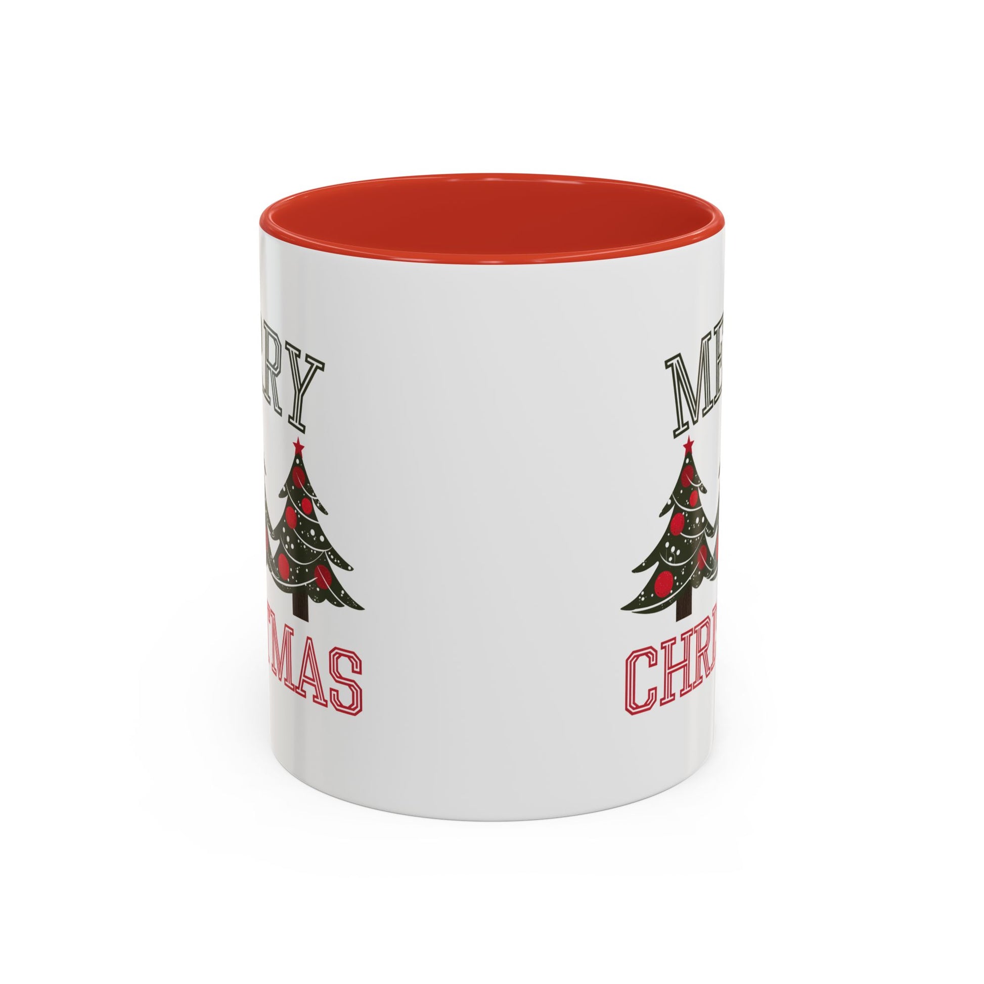 Christmas Mug - Merry Christmas Green & Red Text Decorative Trees