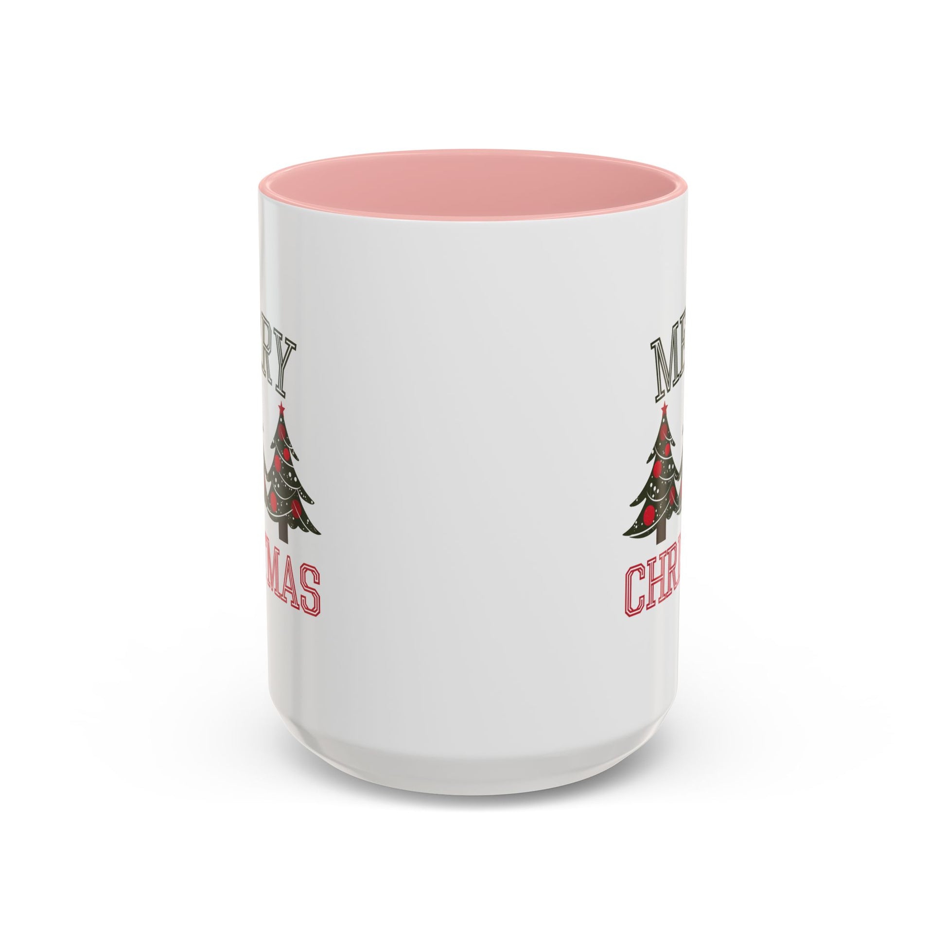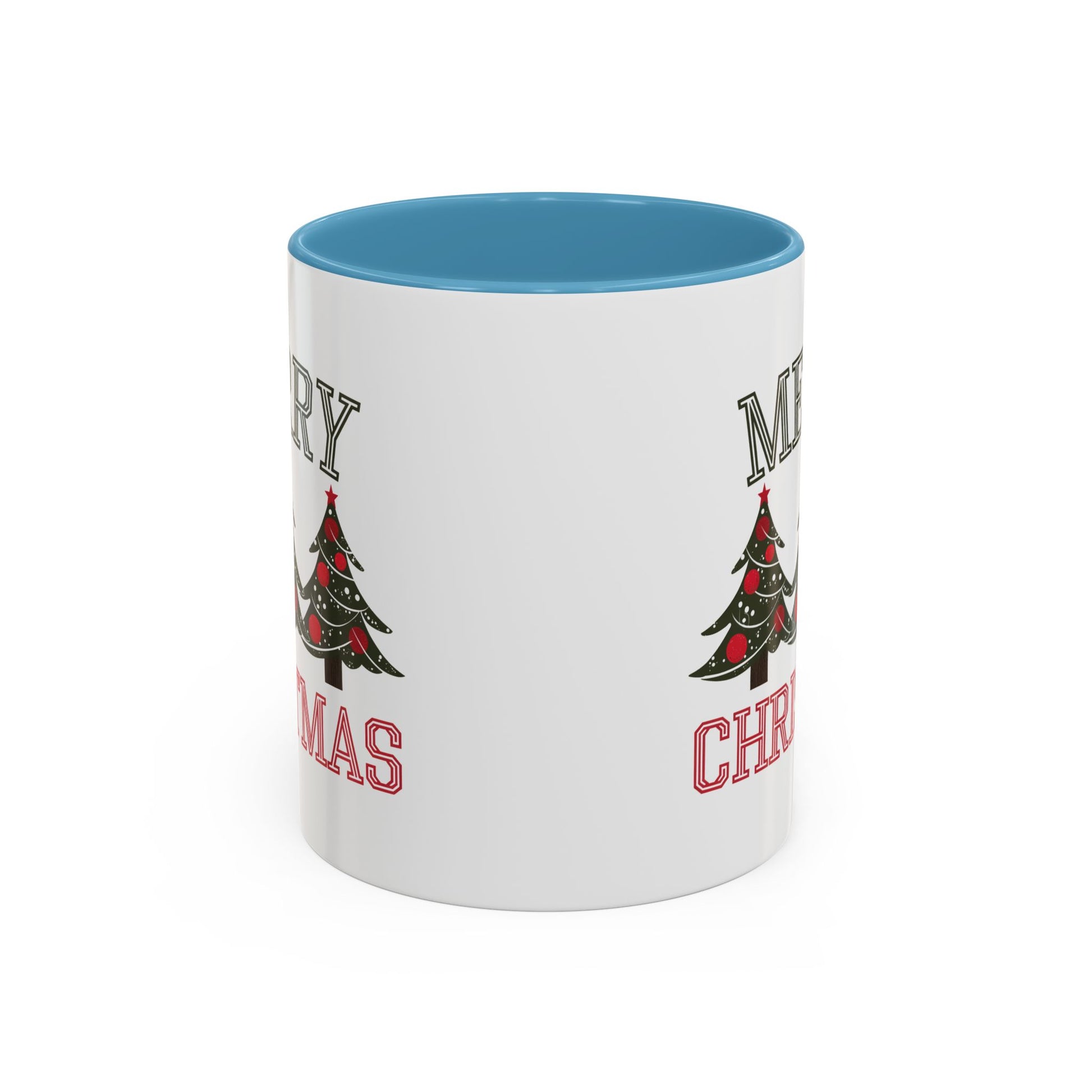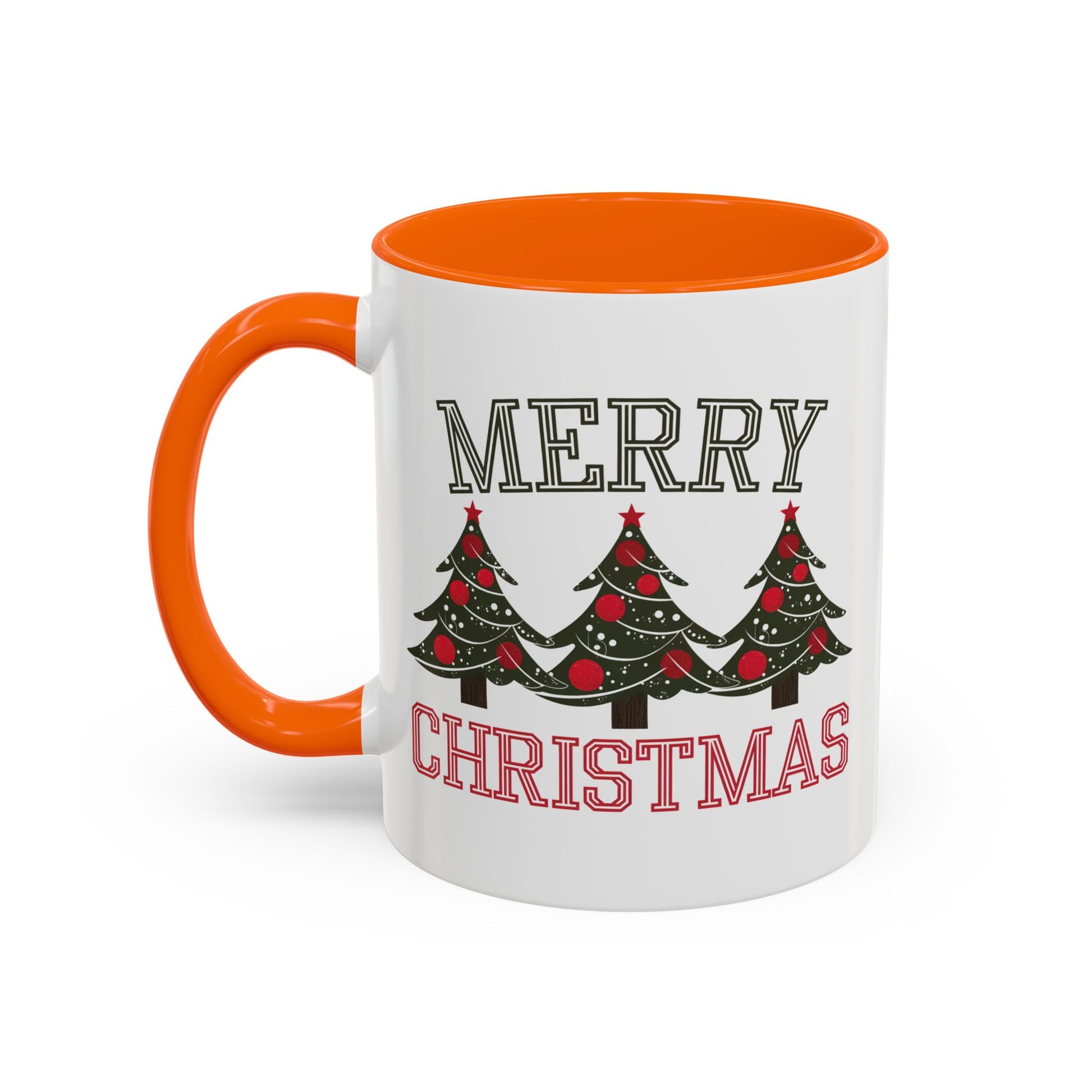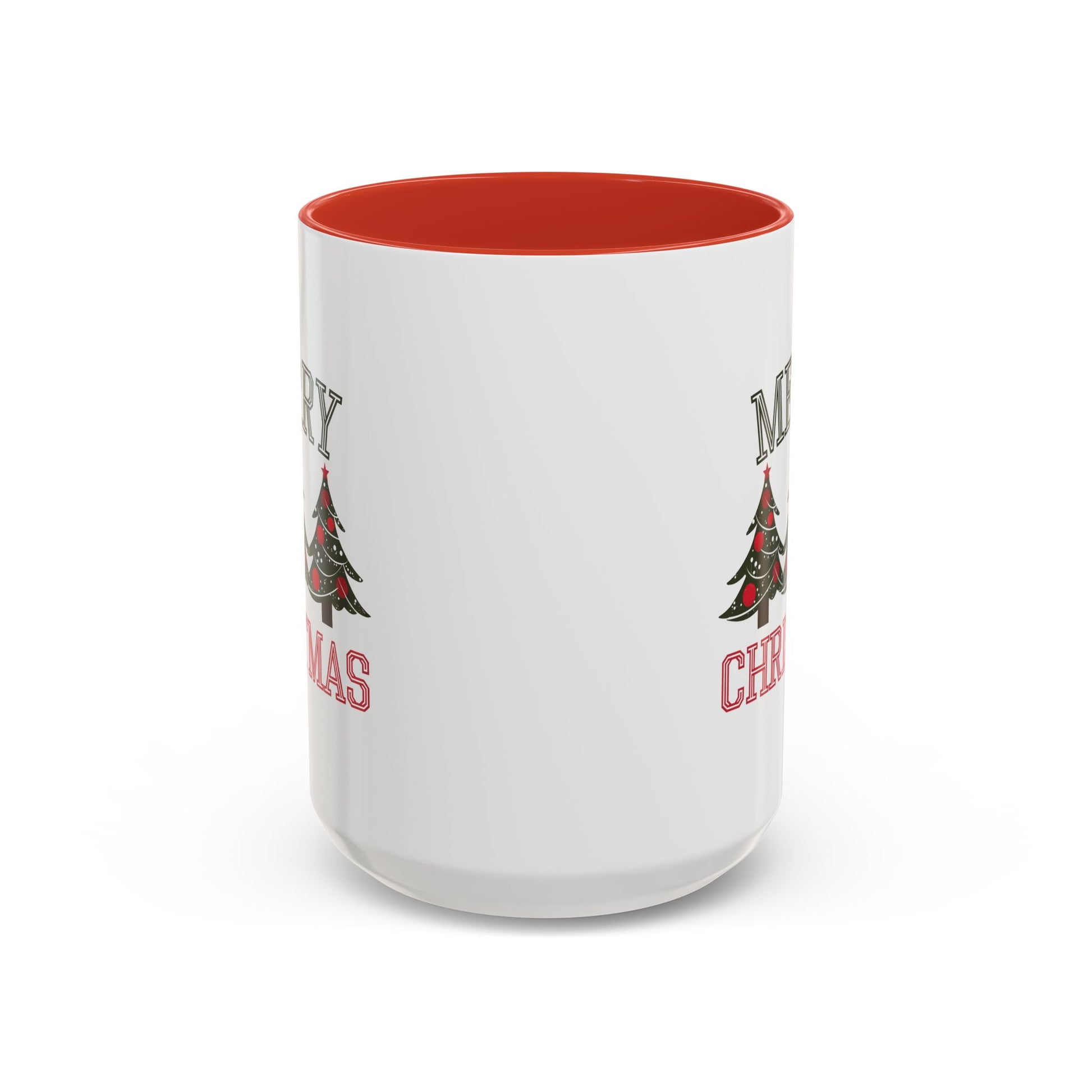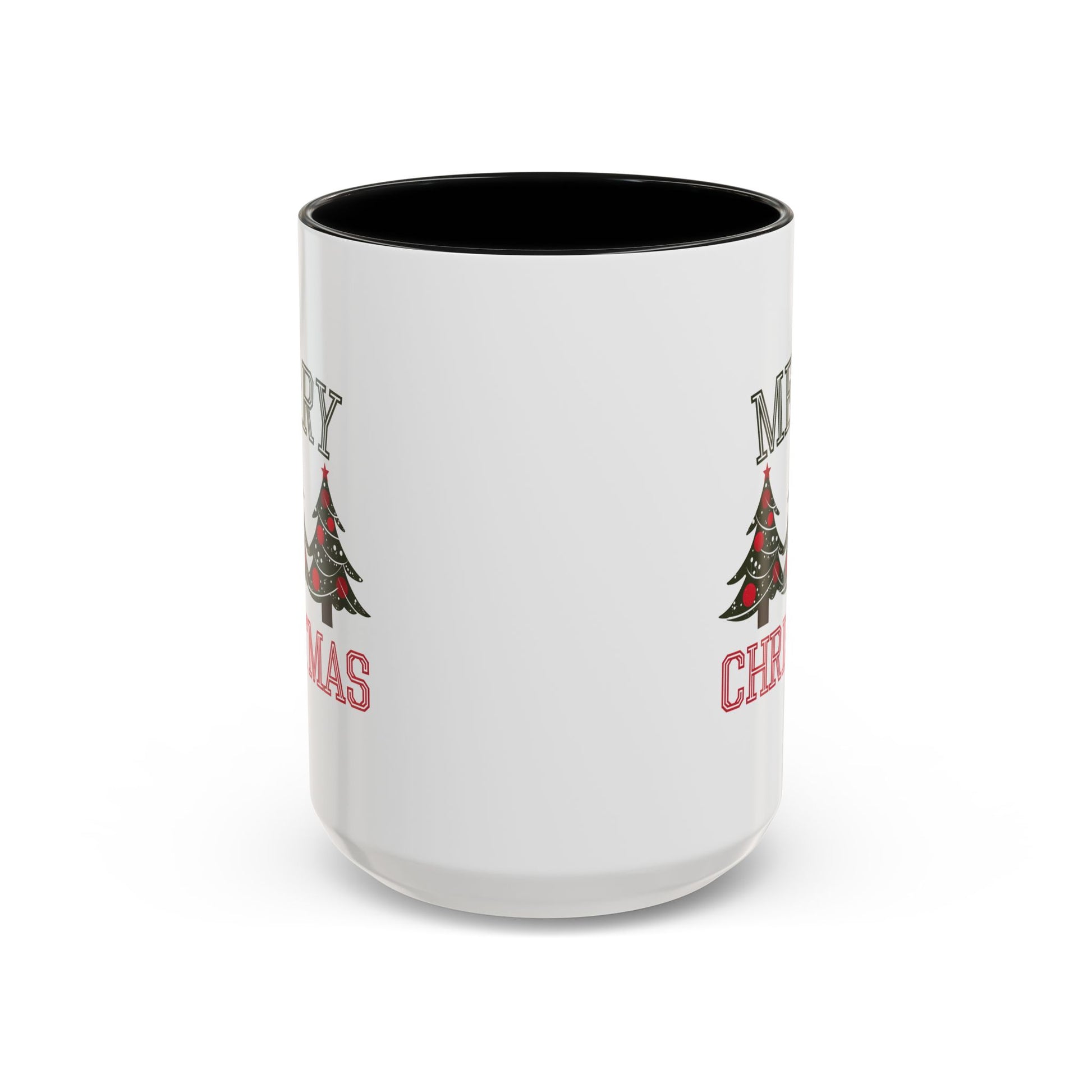 Christmas Mug - Merry Christmas Green & Red Text Decorative Trees