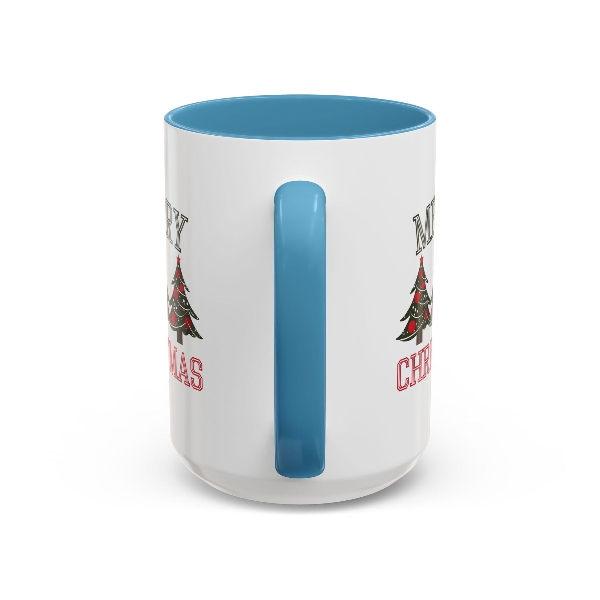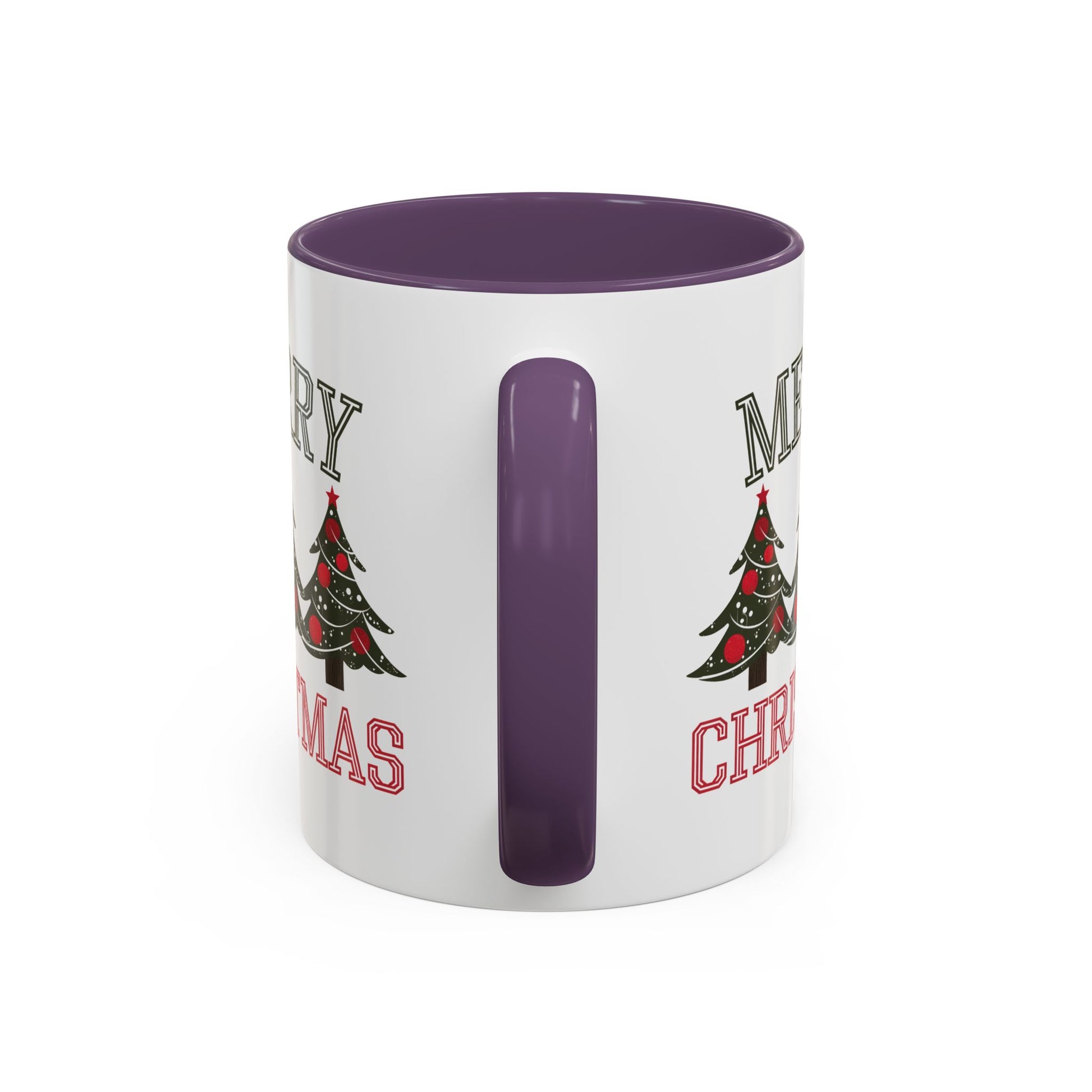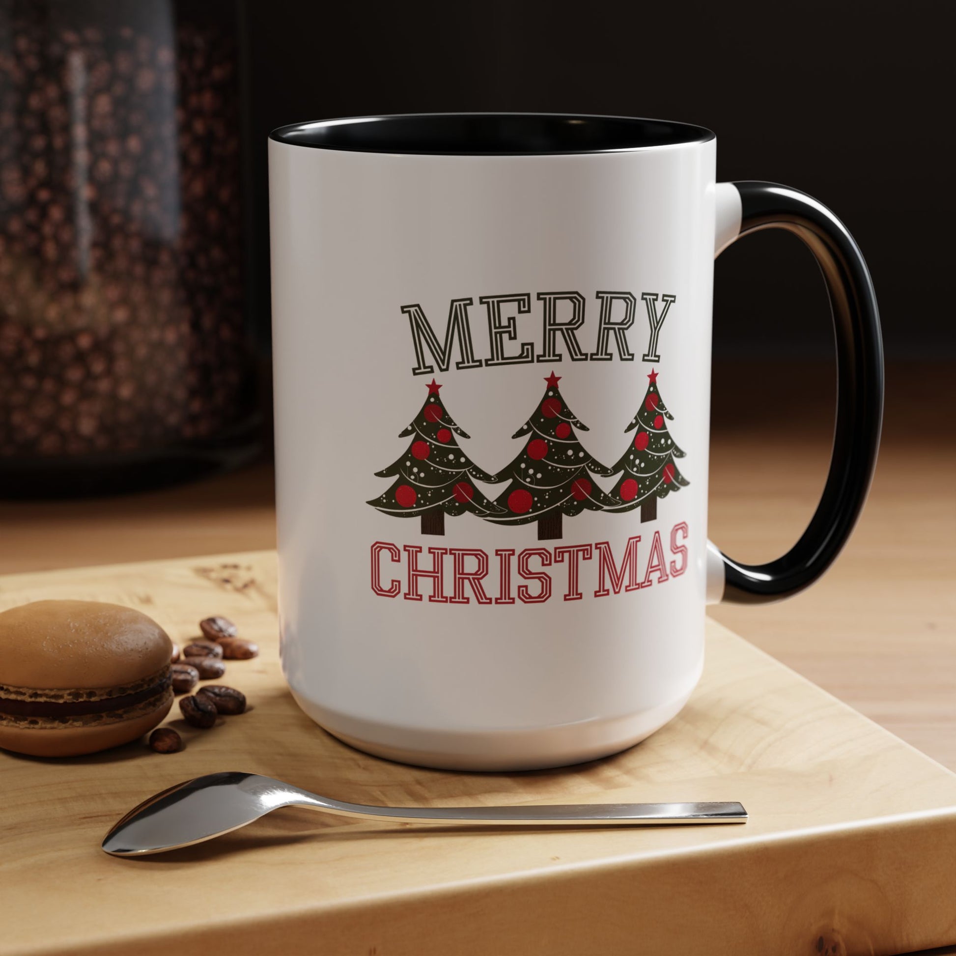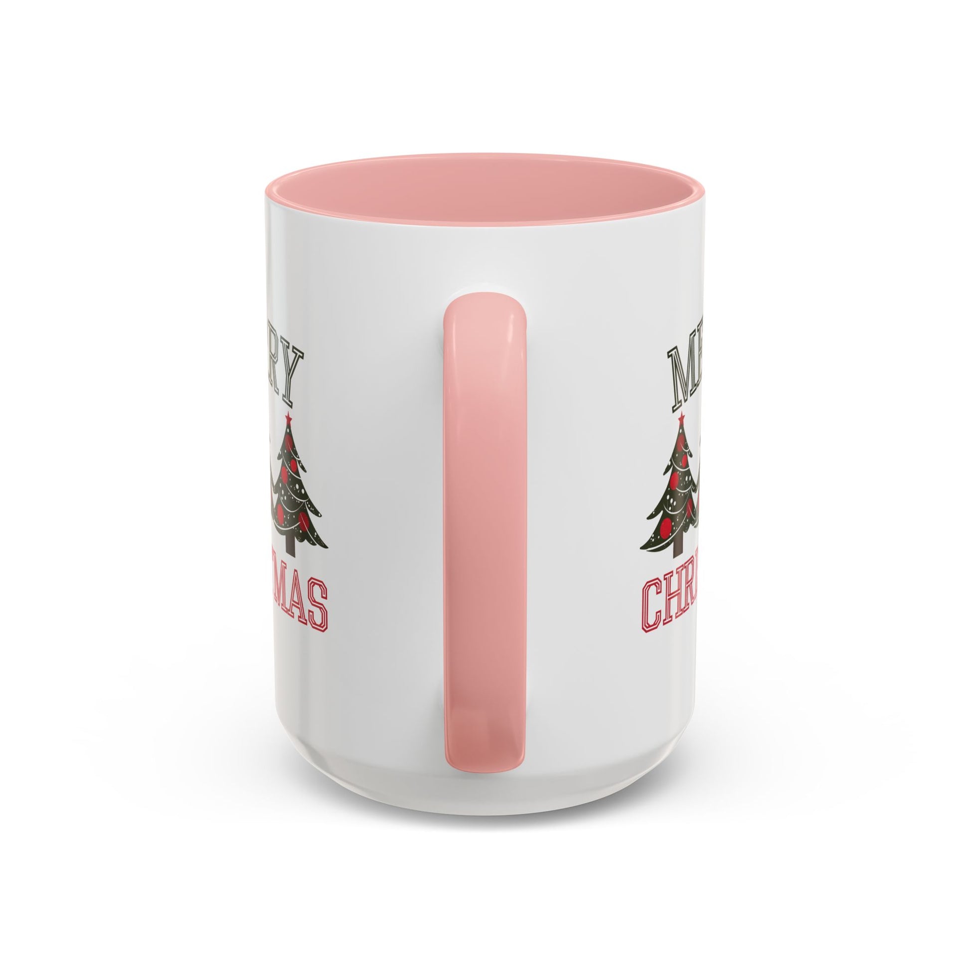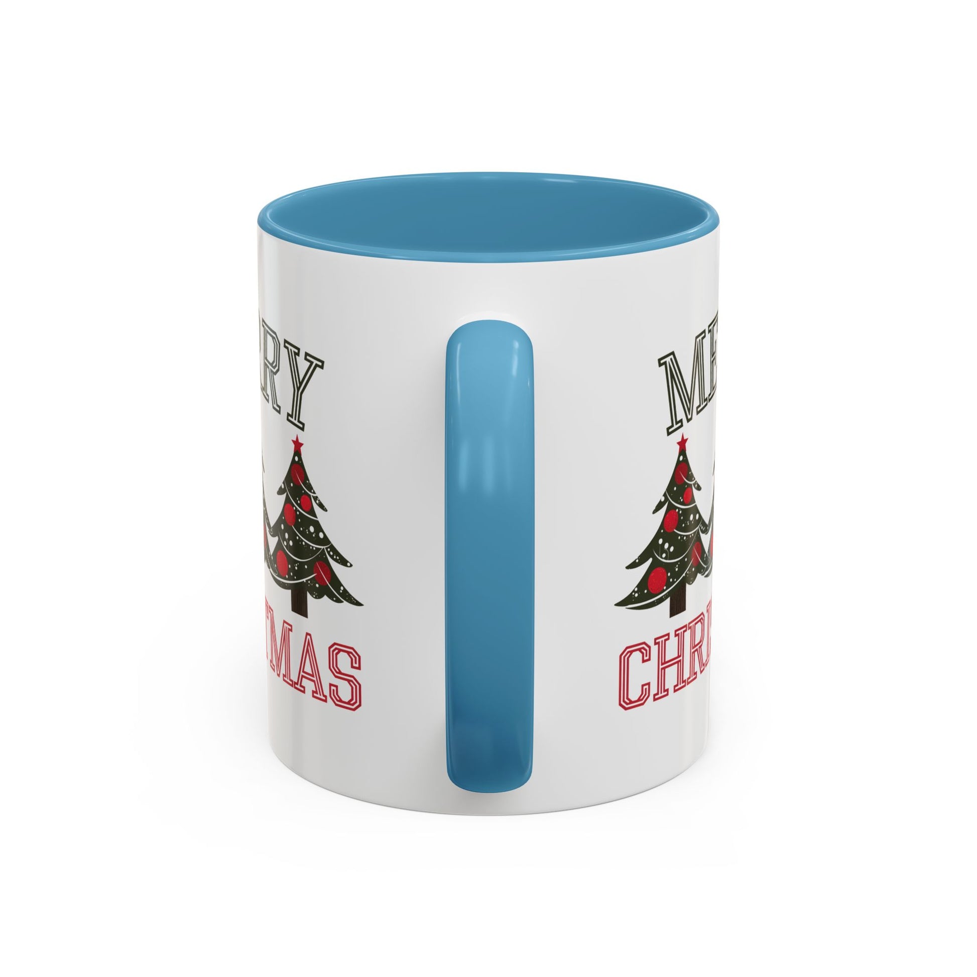 Christmas Mug - Merry Christmas Green & Red Text Decorative Trees
