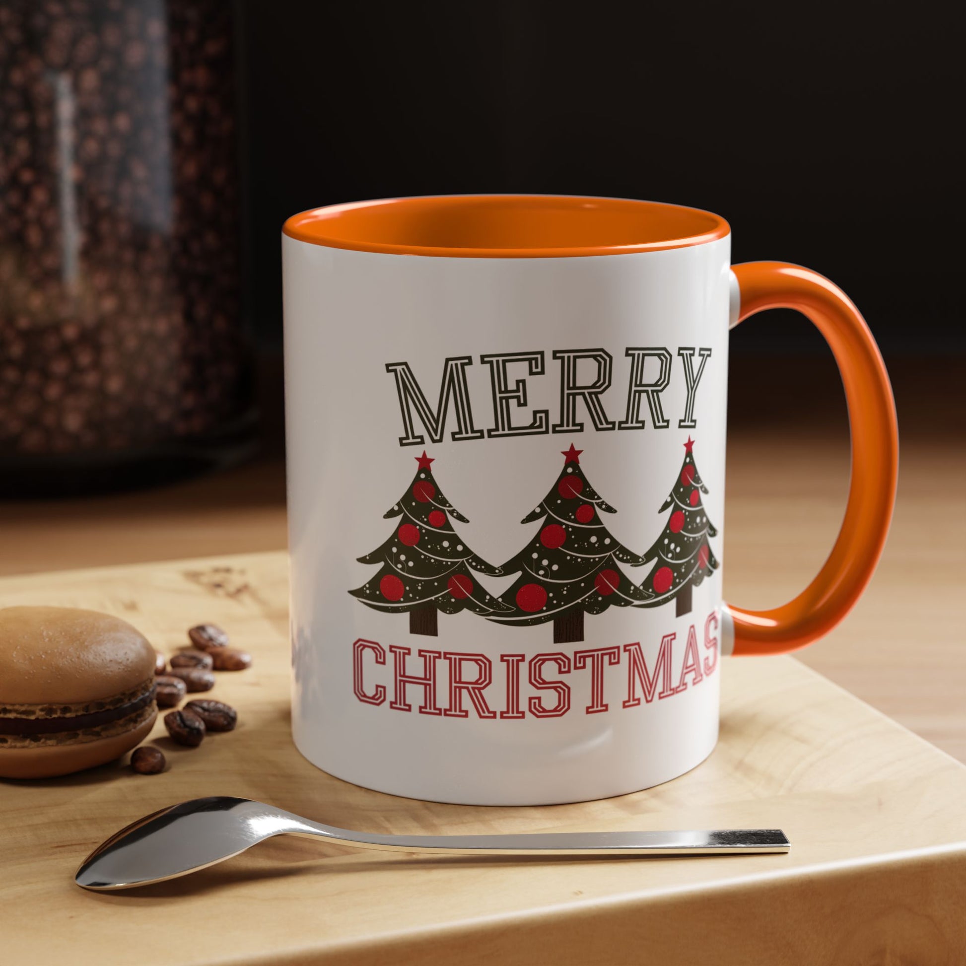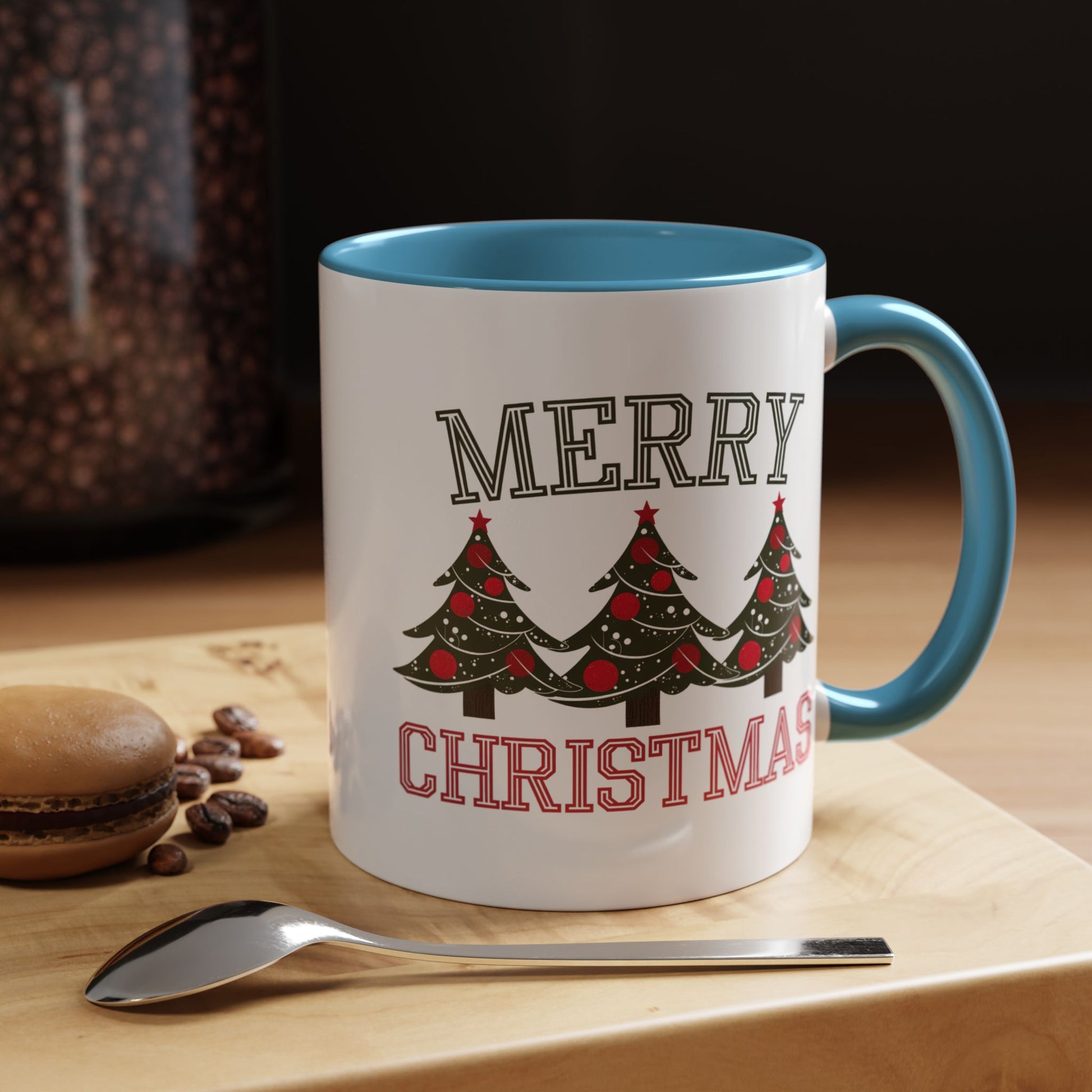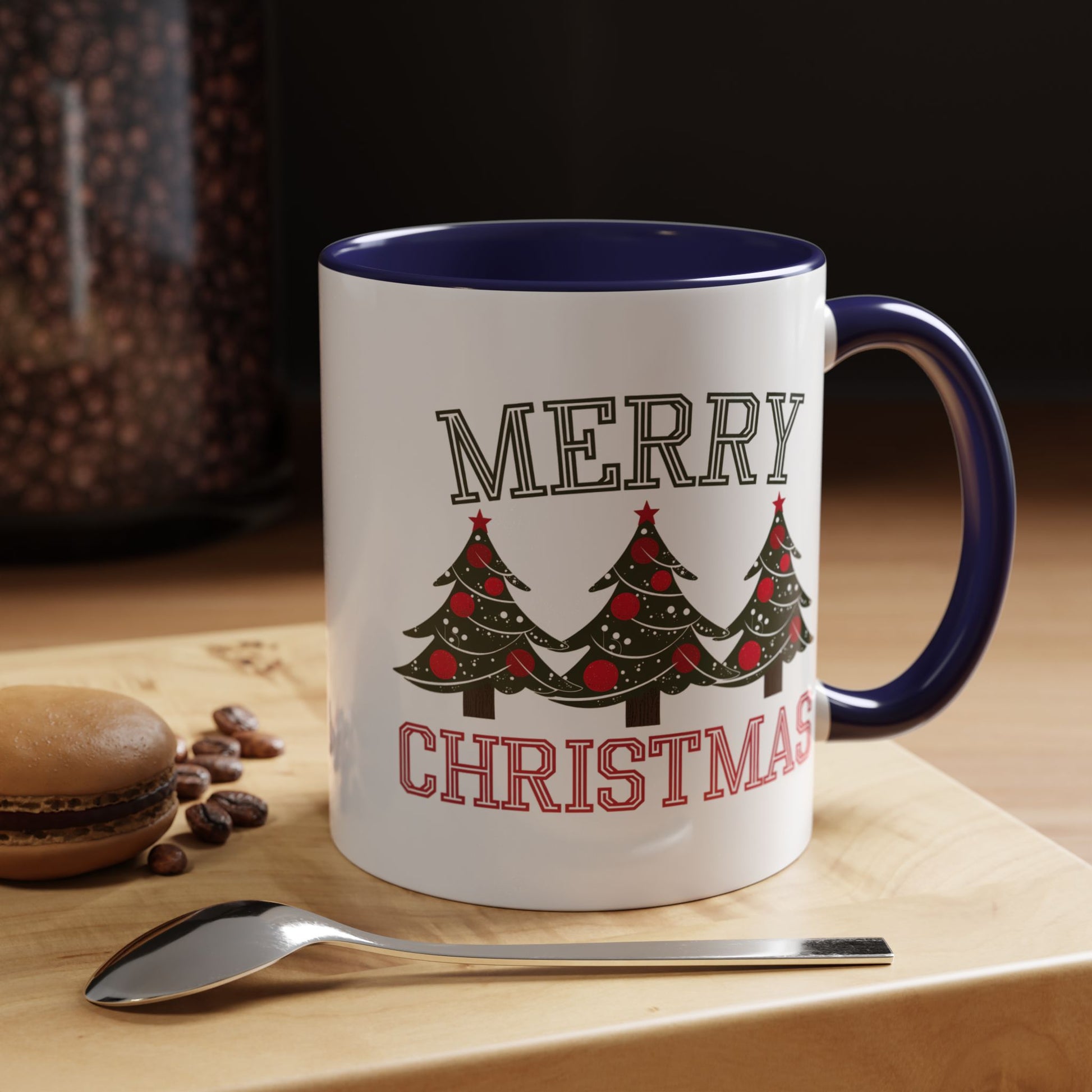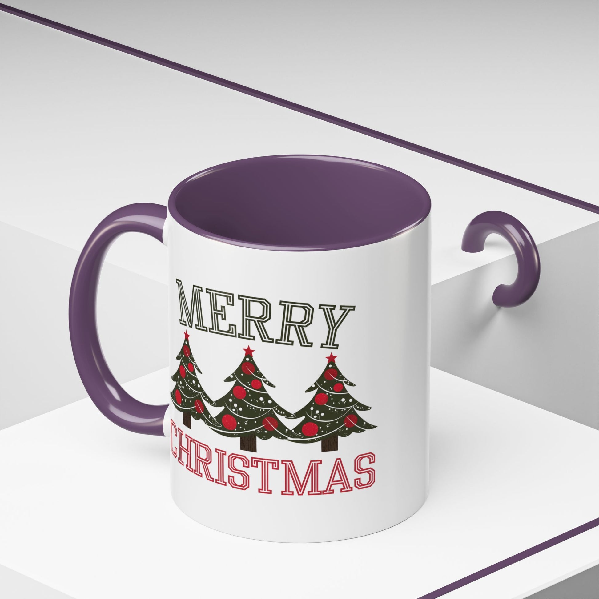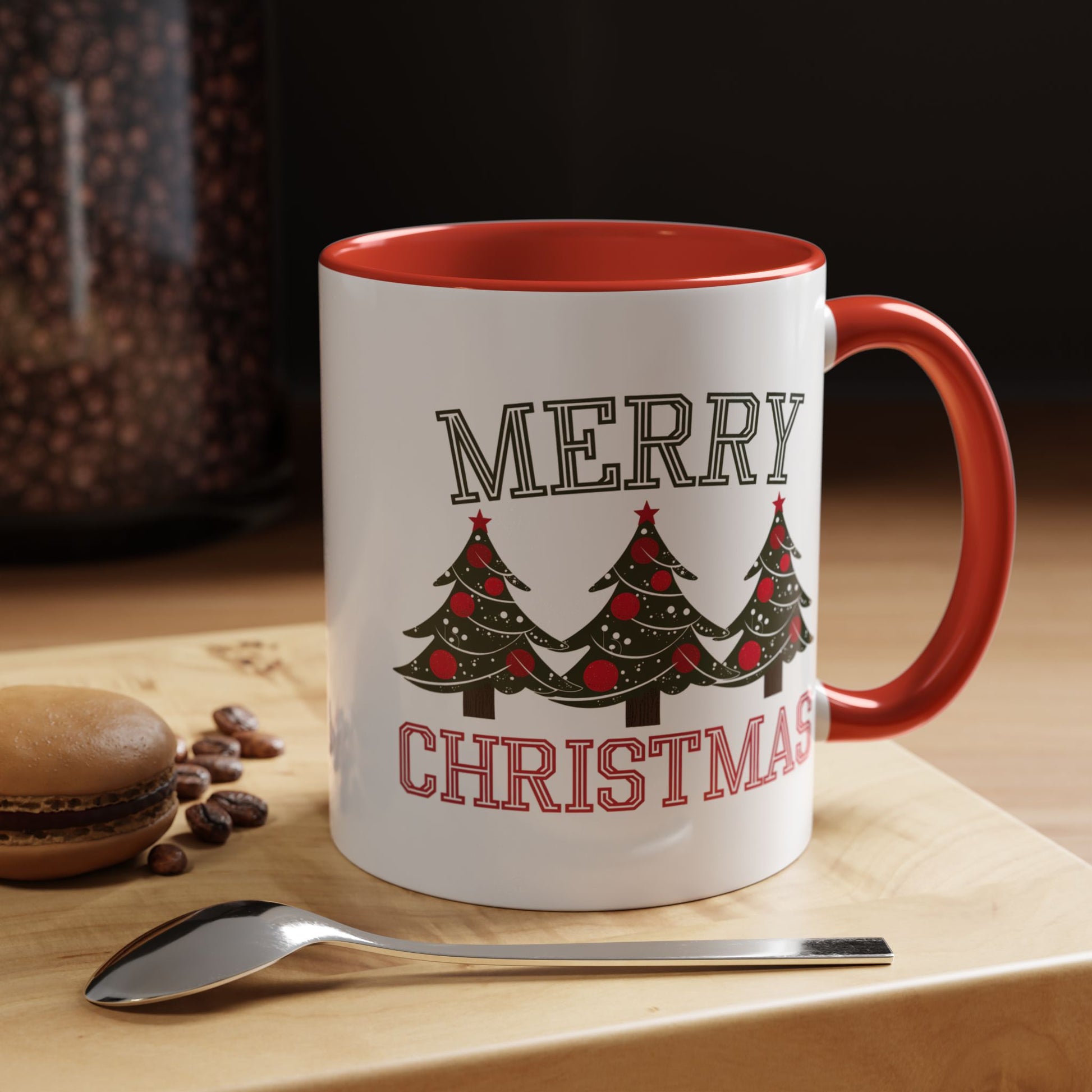 Christmas Mug - Merry Christmas Green & Red Text Decorative Trees