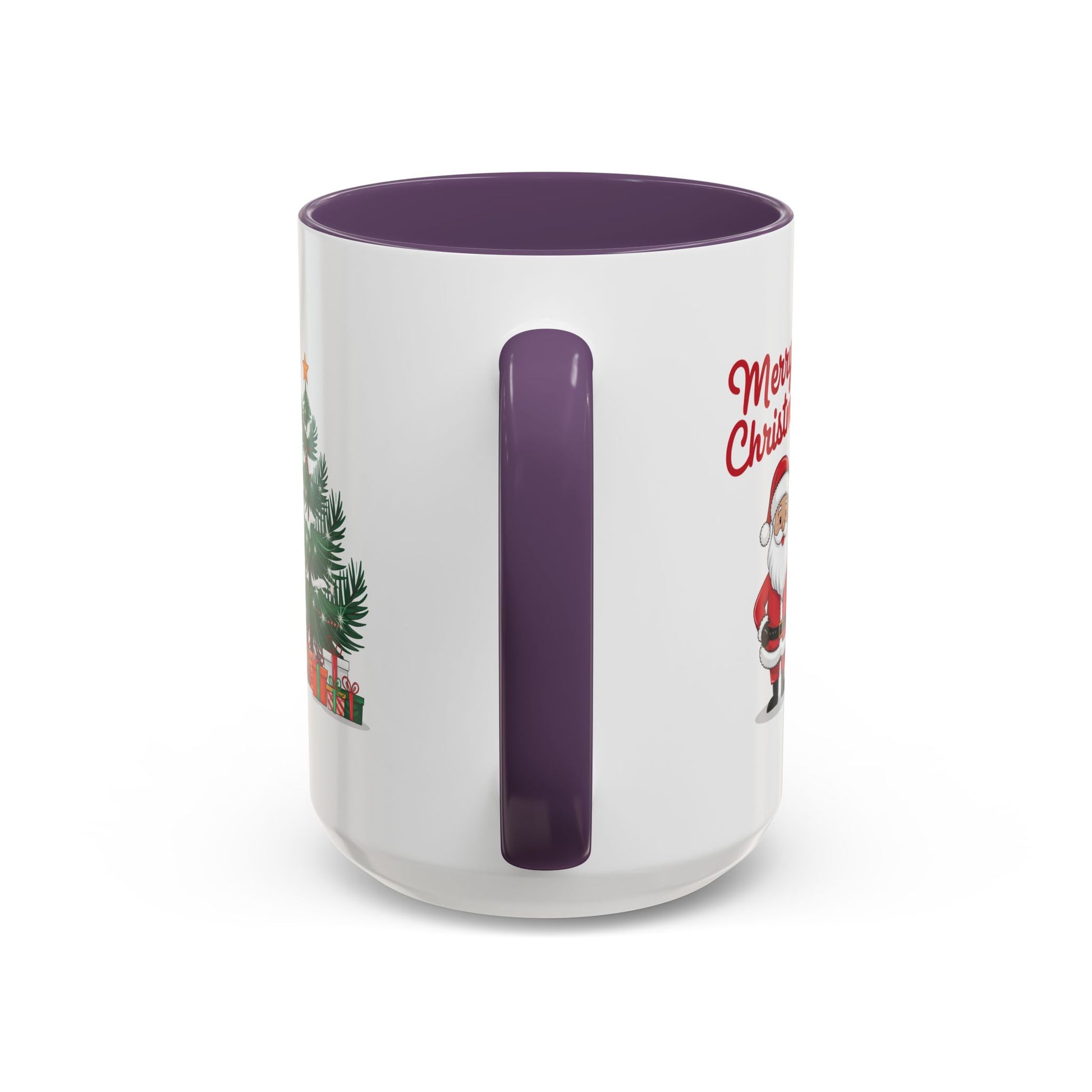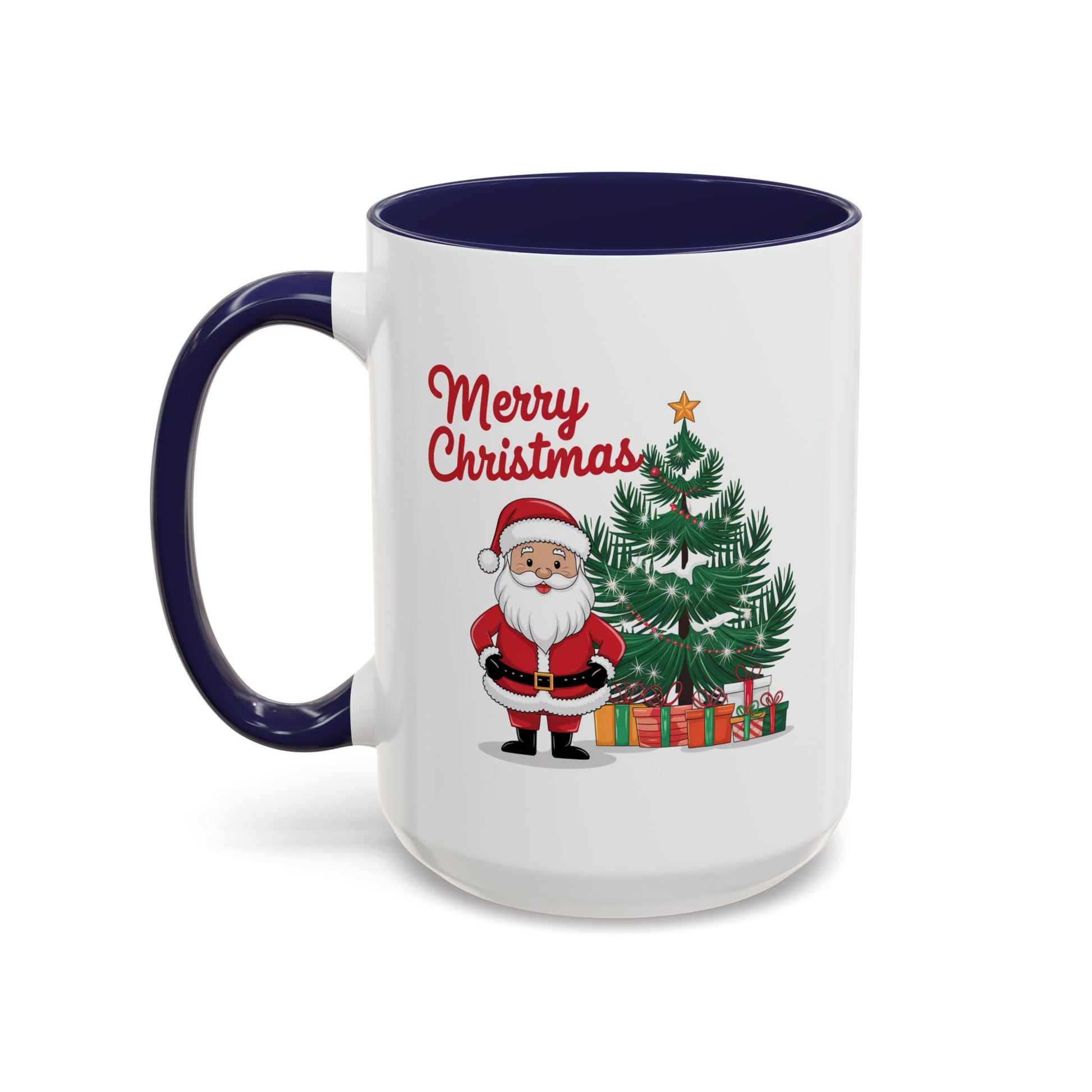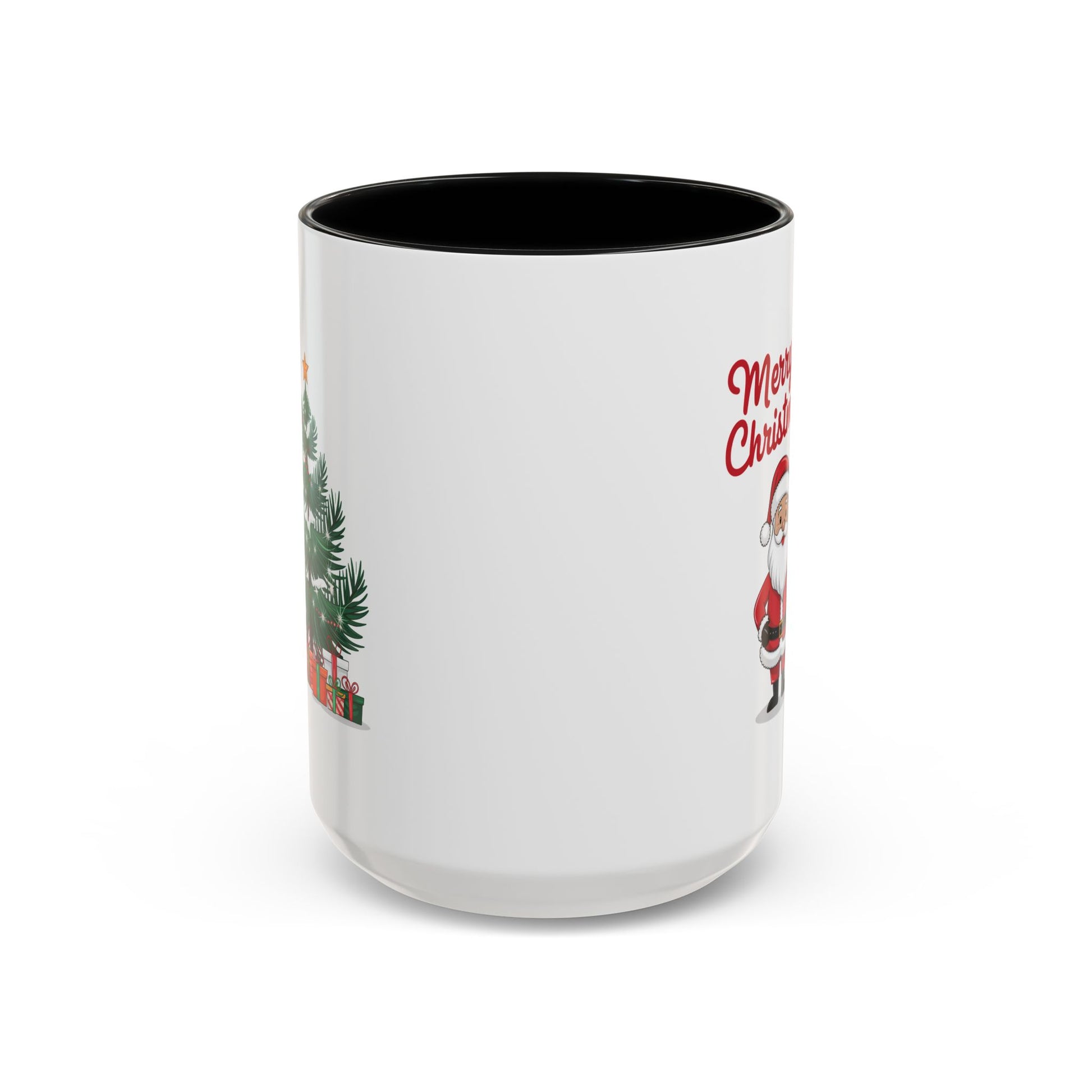 Christmas Mug - Merry Christmas Red Text Santa Tree Presents